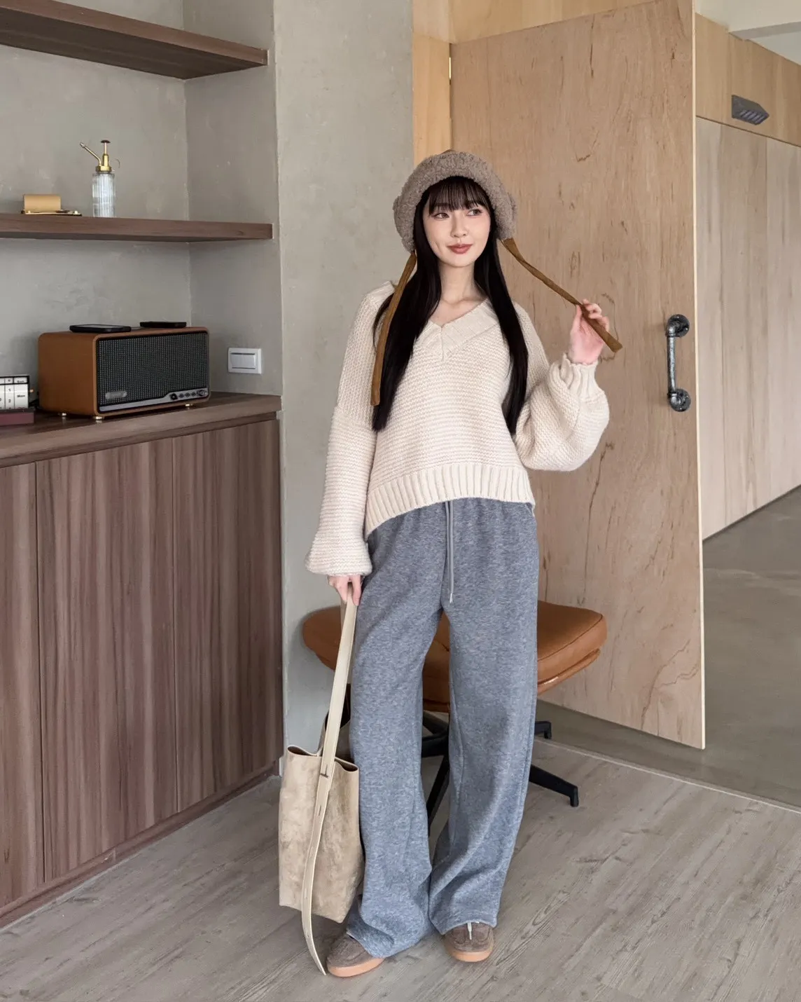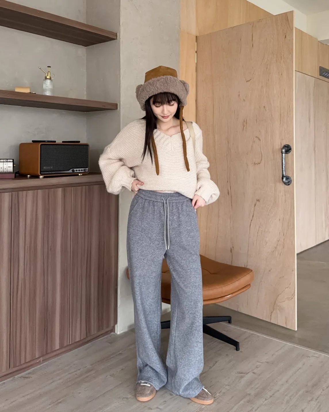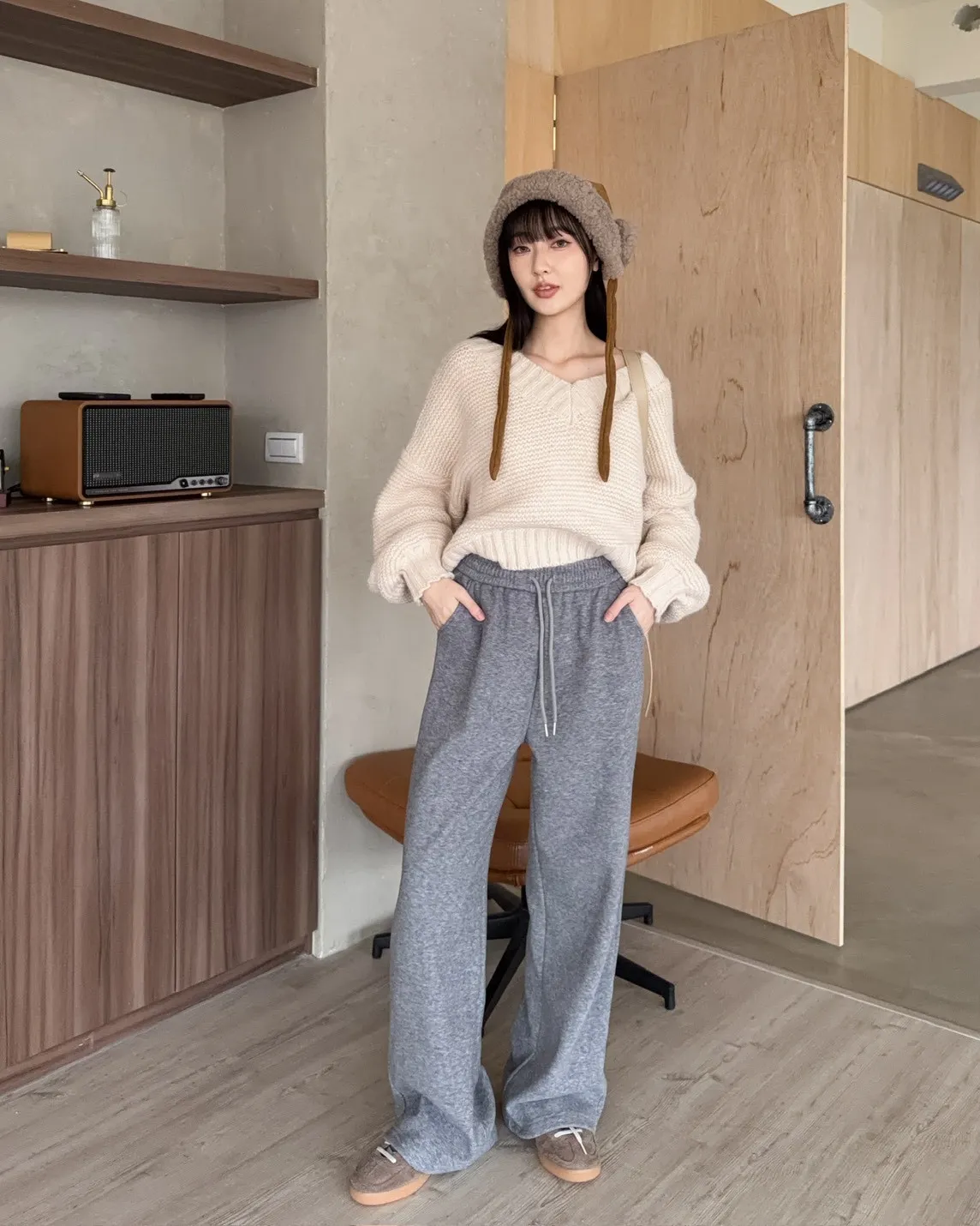 Y0008刷毛暖暖毛呢小直筒褲(燕麥/淺灰/黑灰)