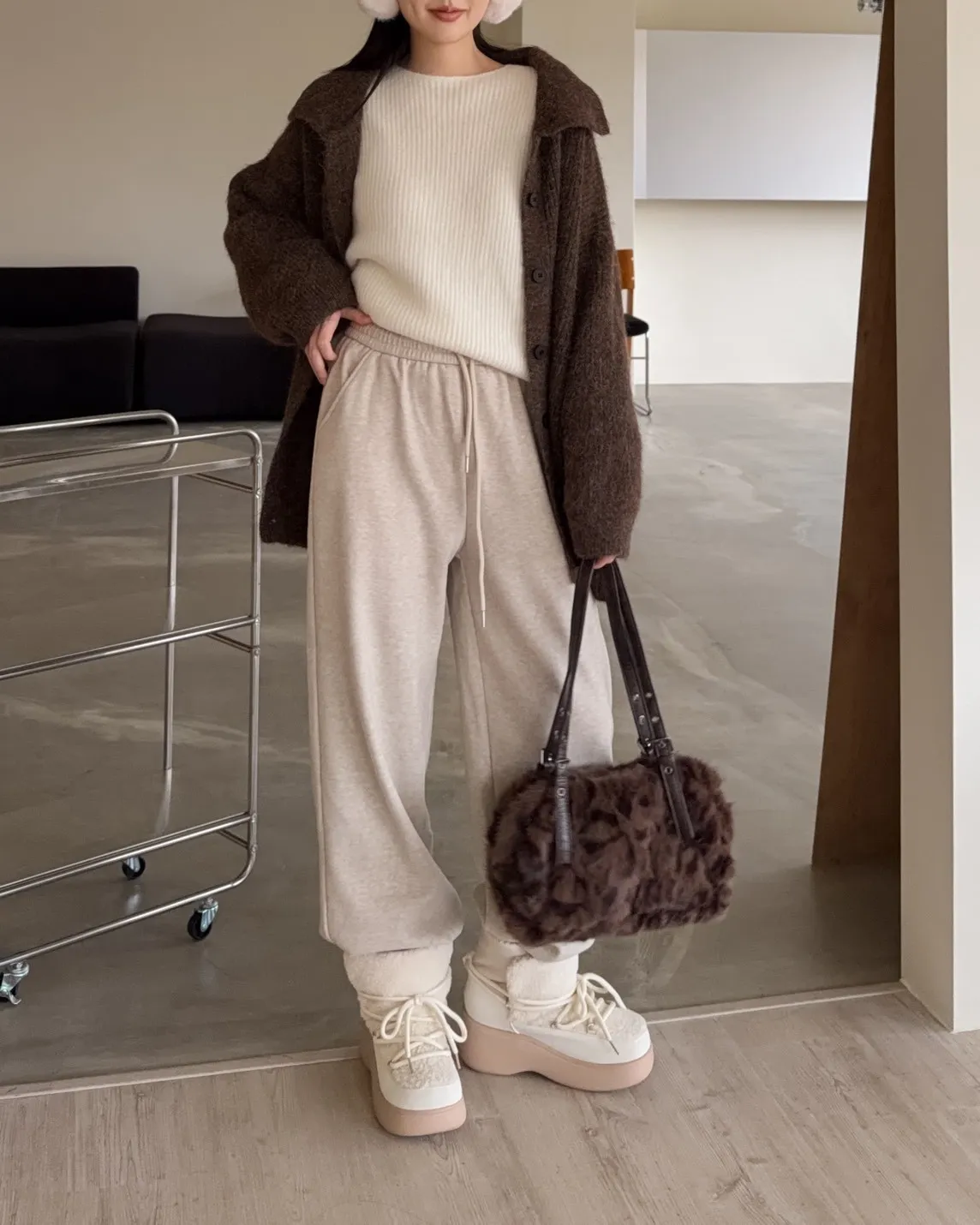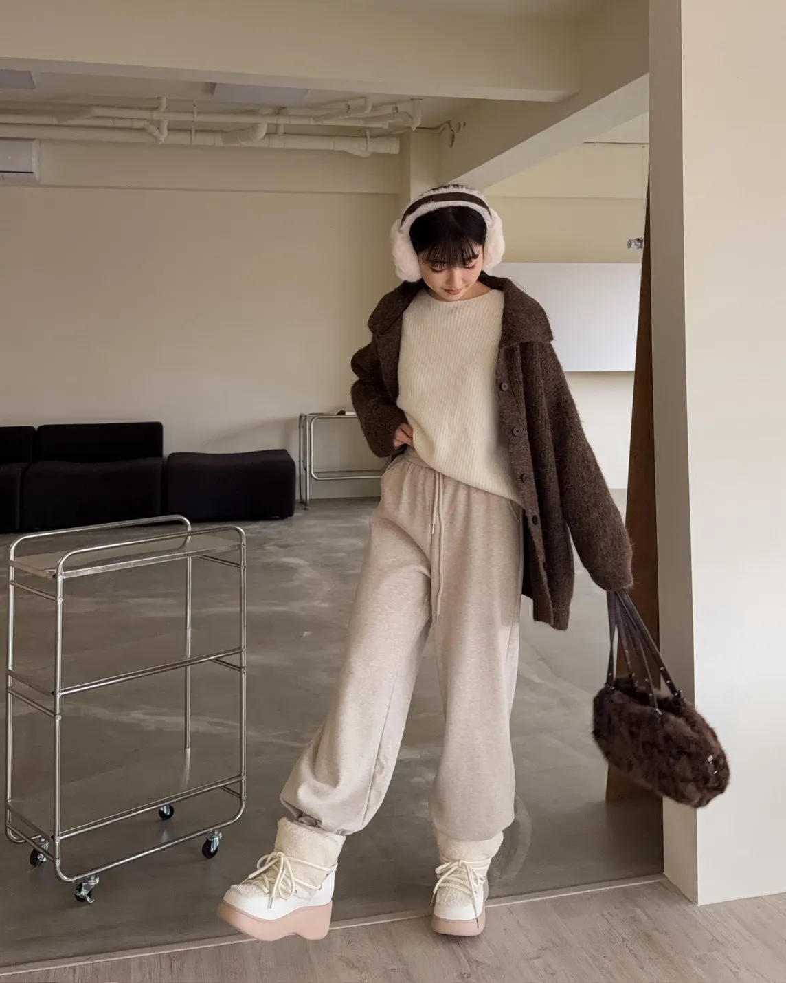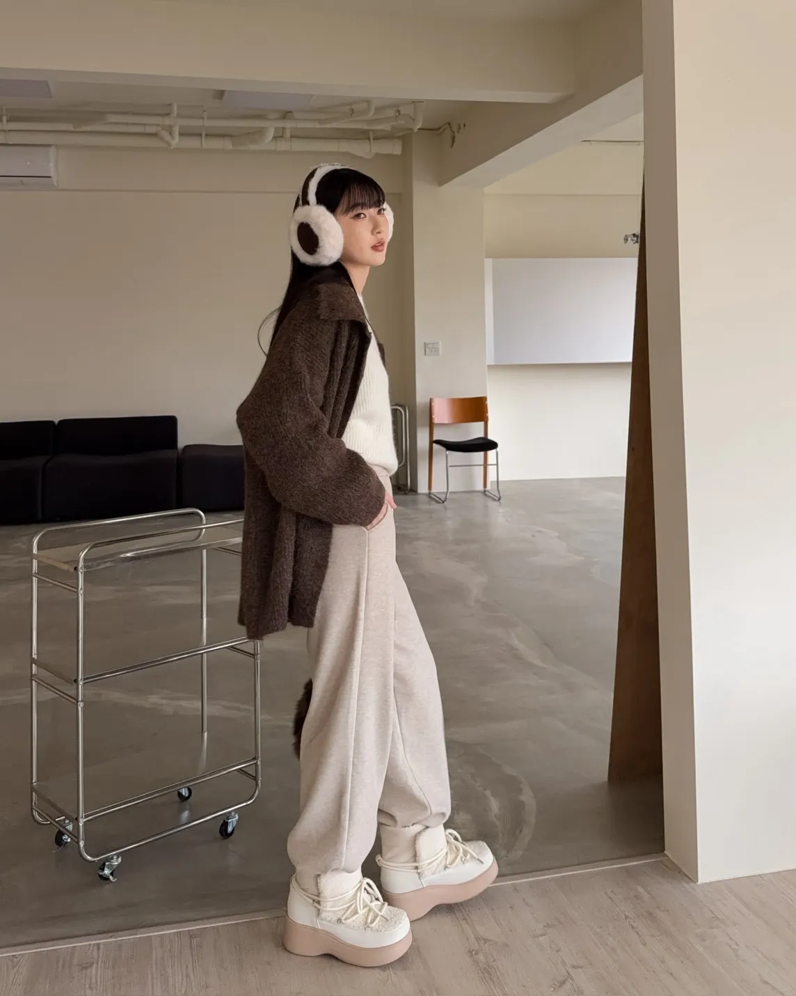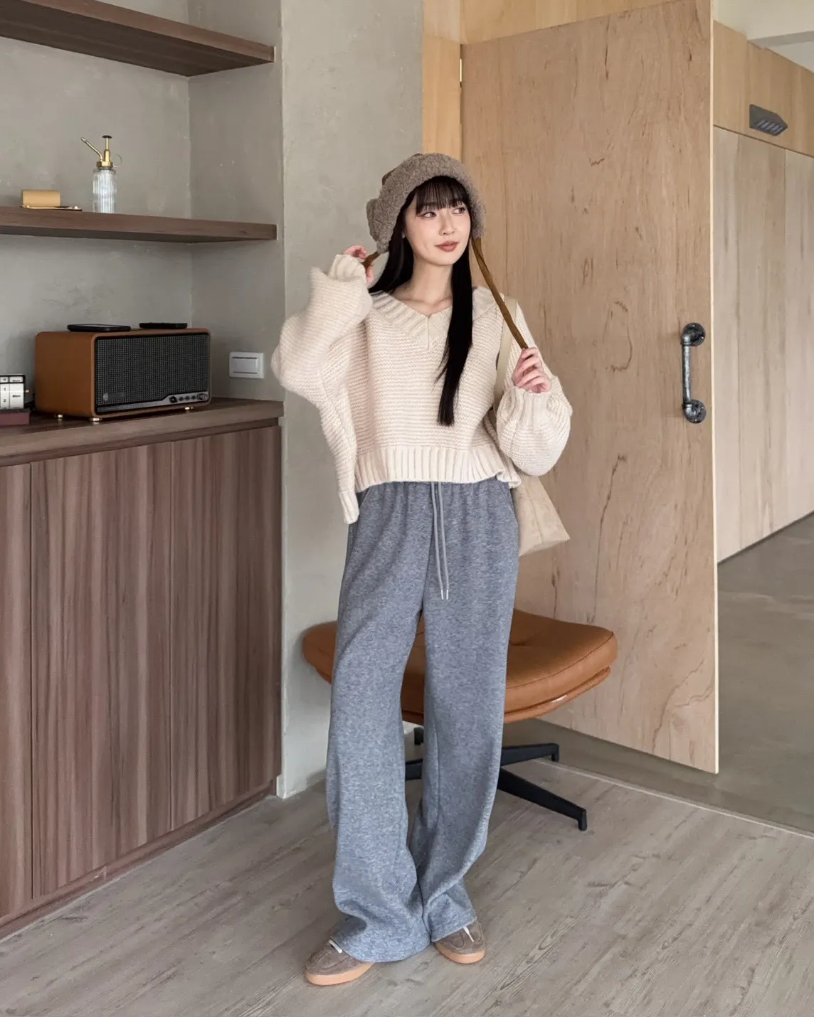 Y0008刷毛暖暖毛呢小直筒褲(燕麥/淺灰/黑灰)