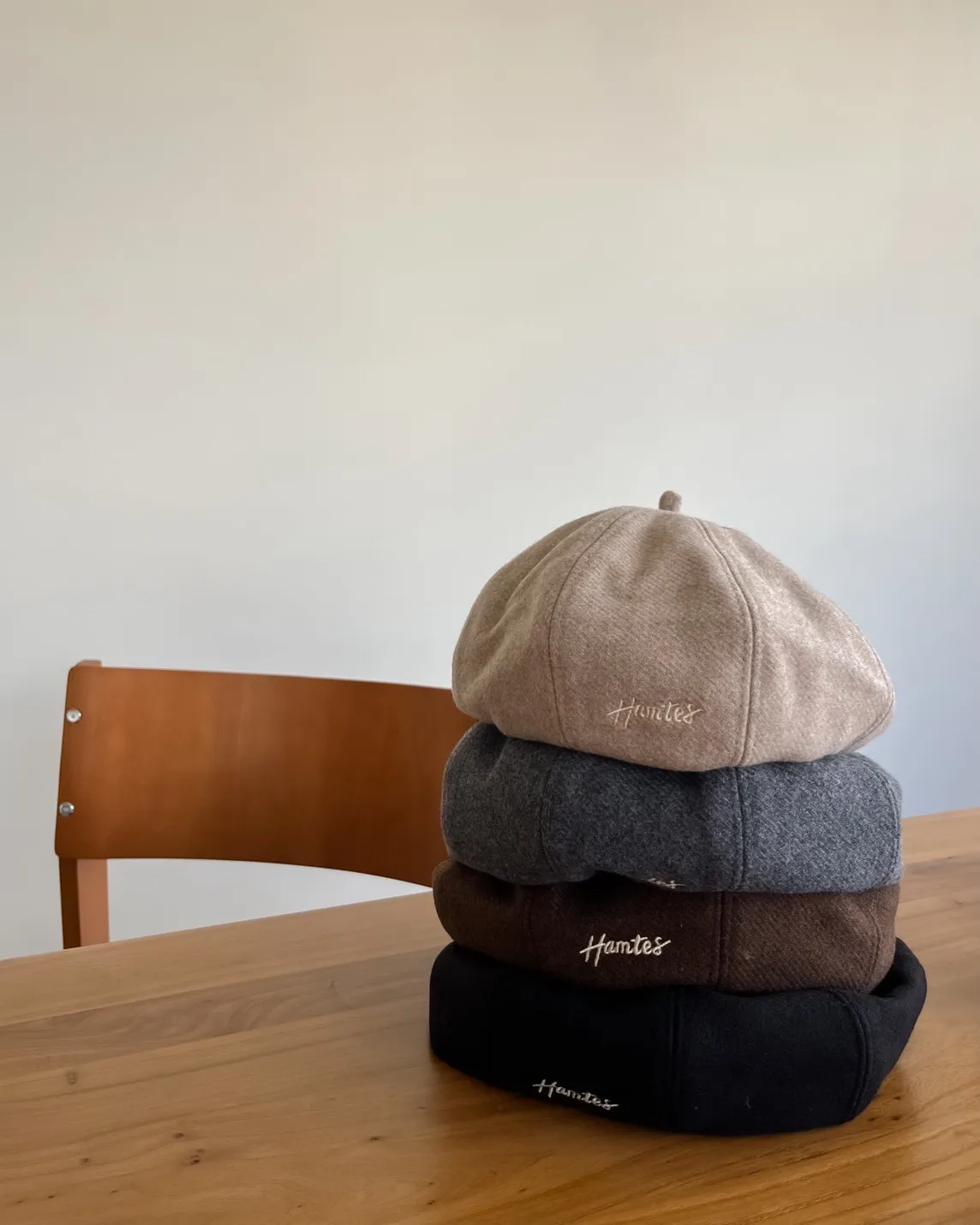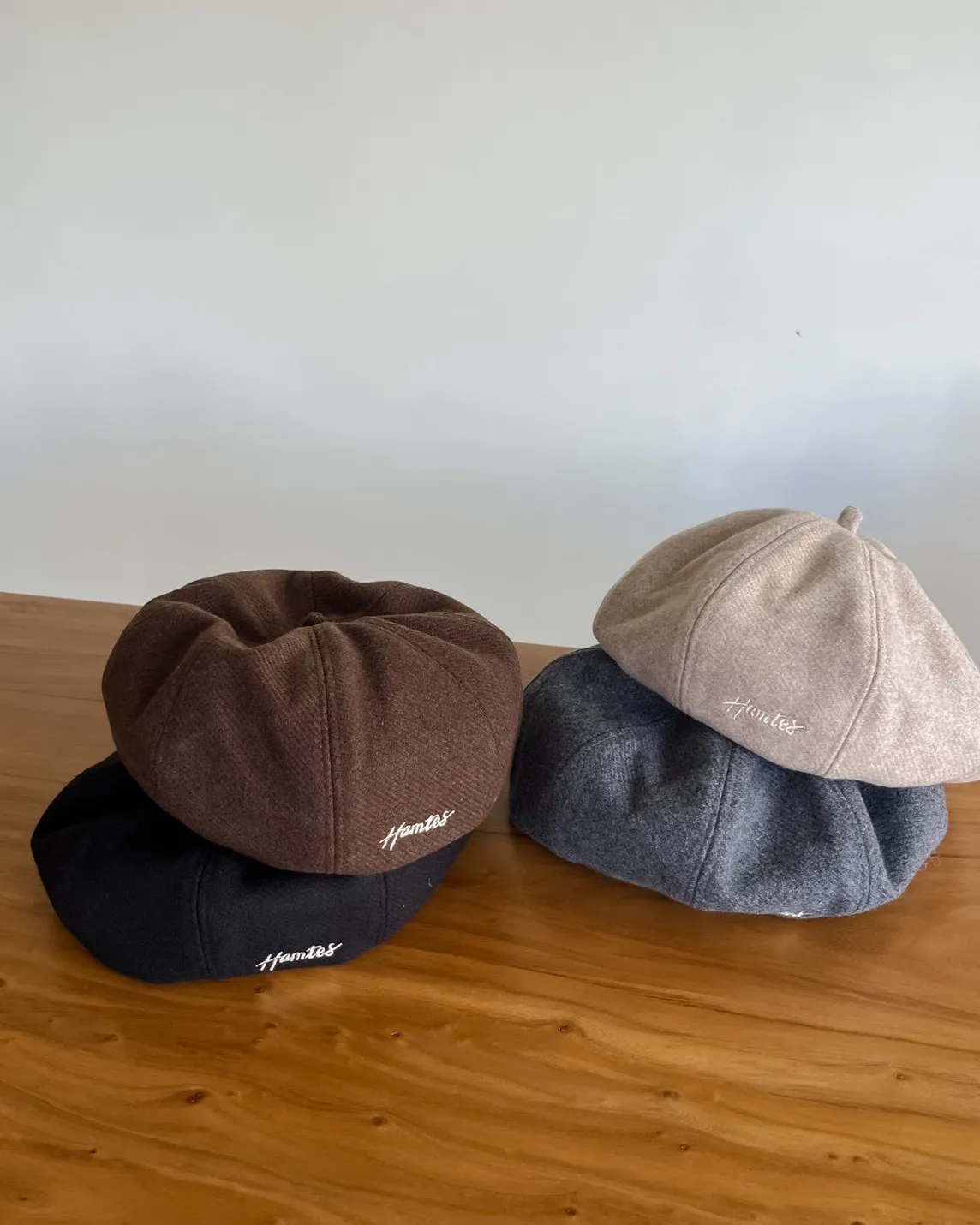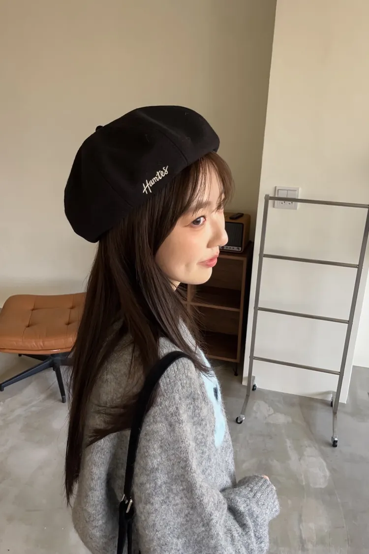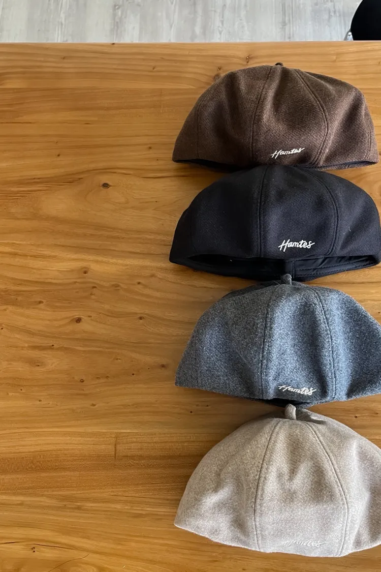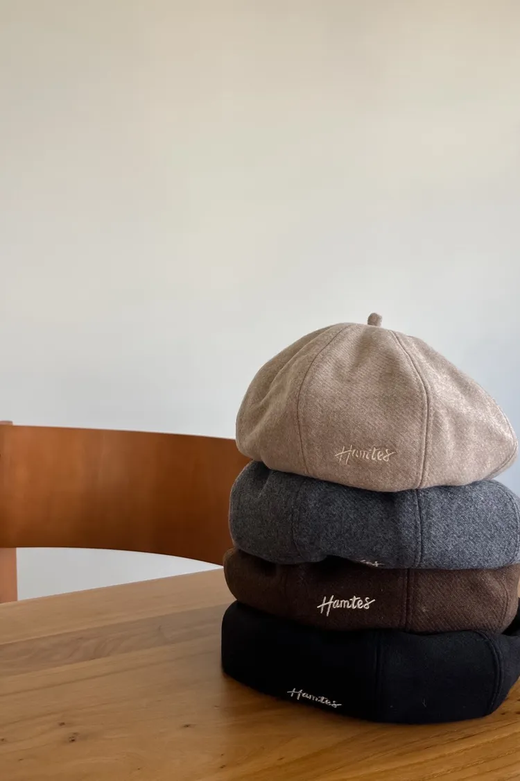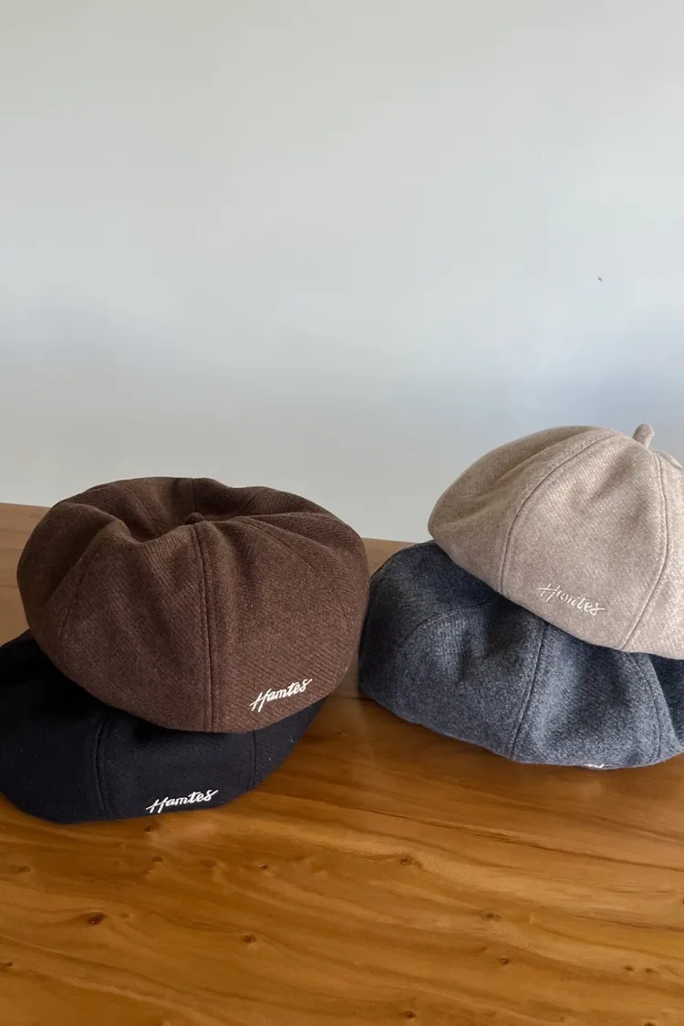 W0008刺繡毛呢貝蕾帽(杏/咖啡/深灰/黑)