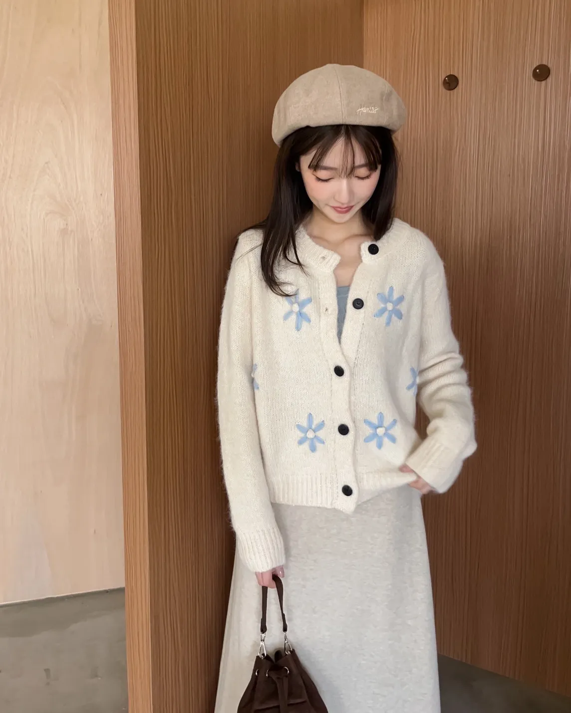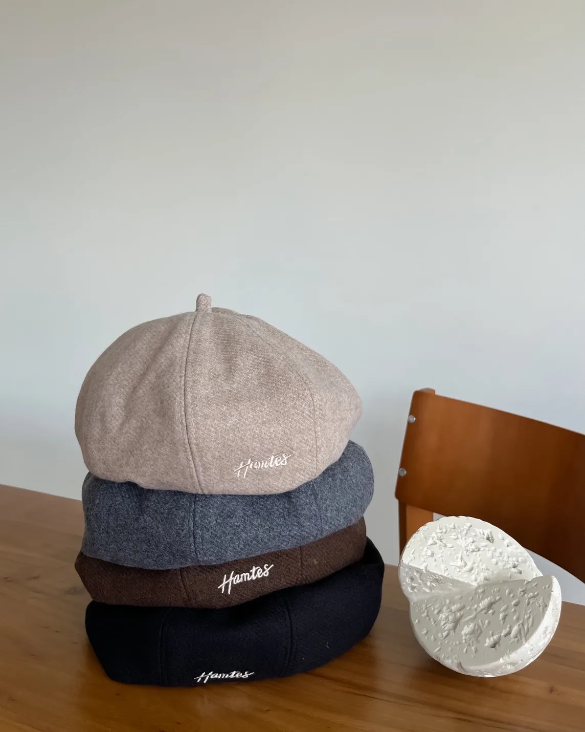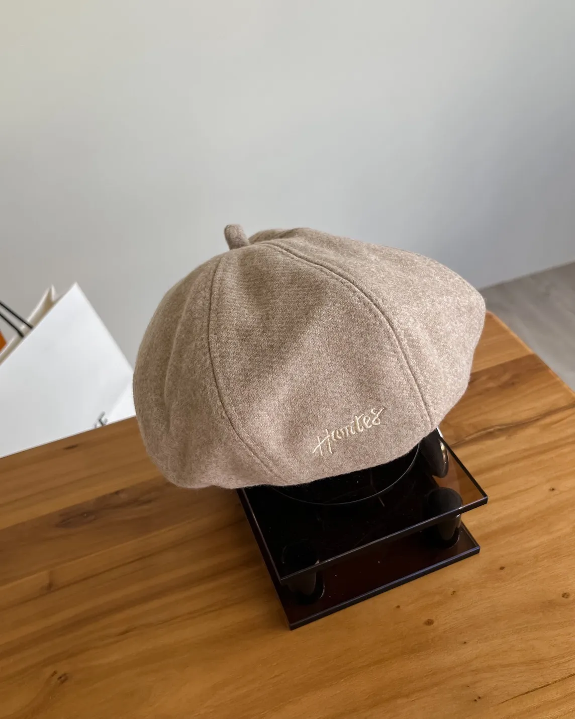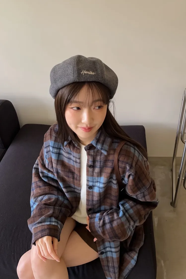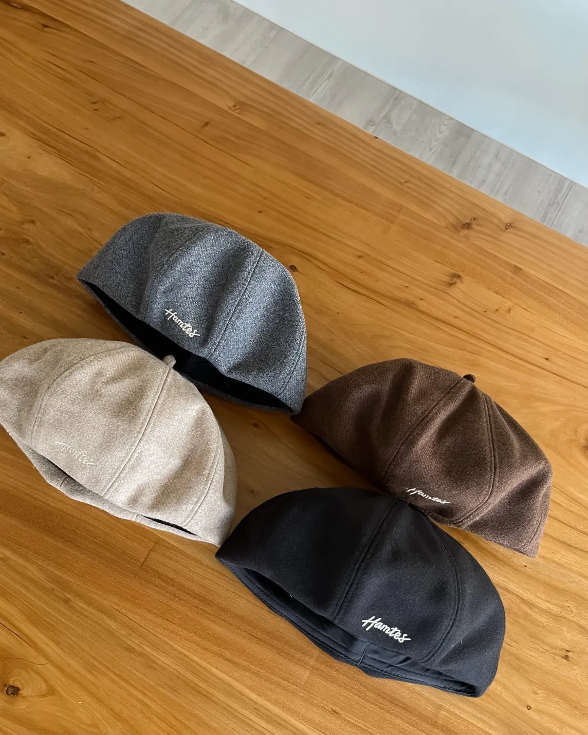 W0008刺繡毛呢貝蕾帽(杏/咖啡/深灰/黑)