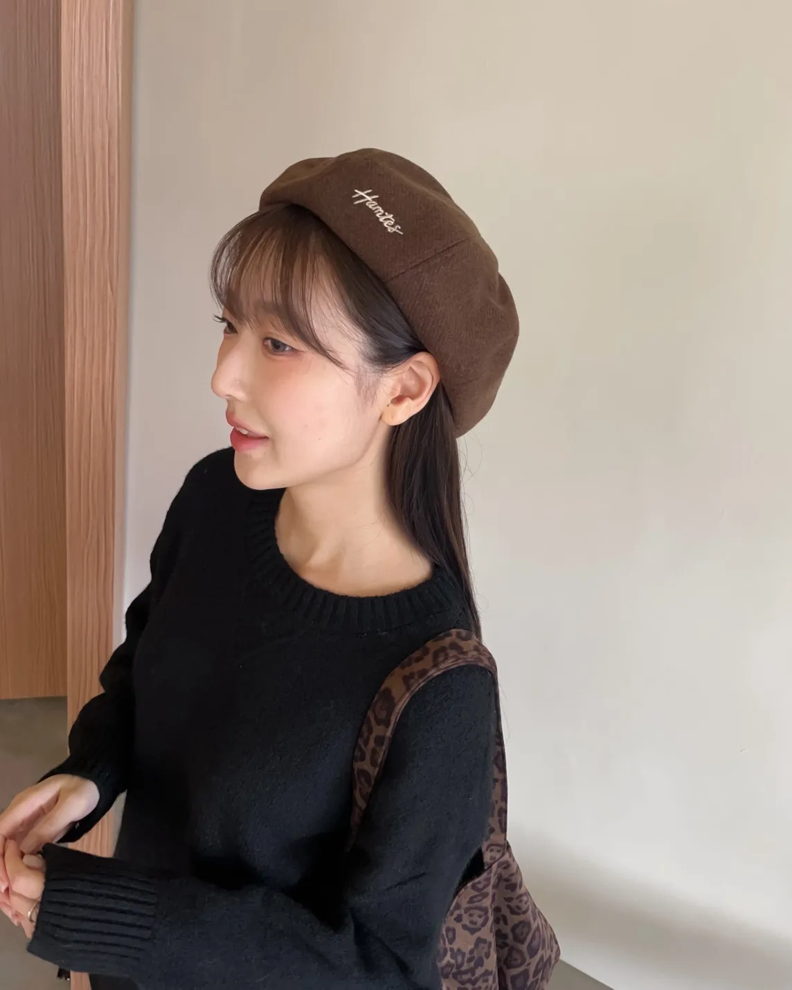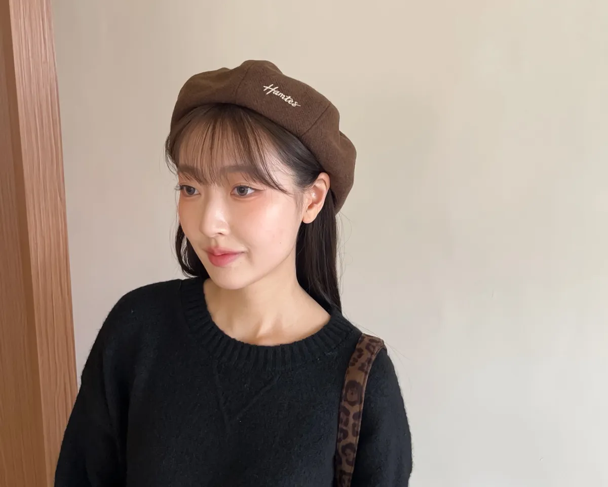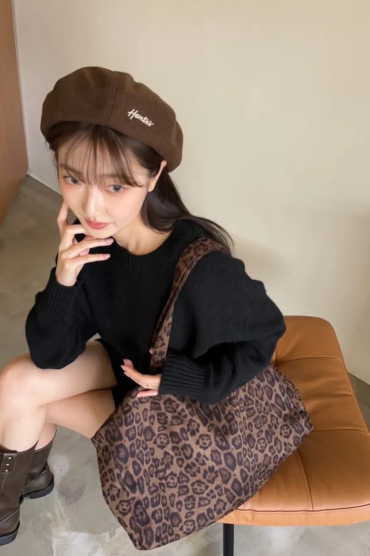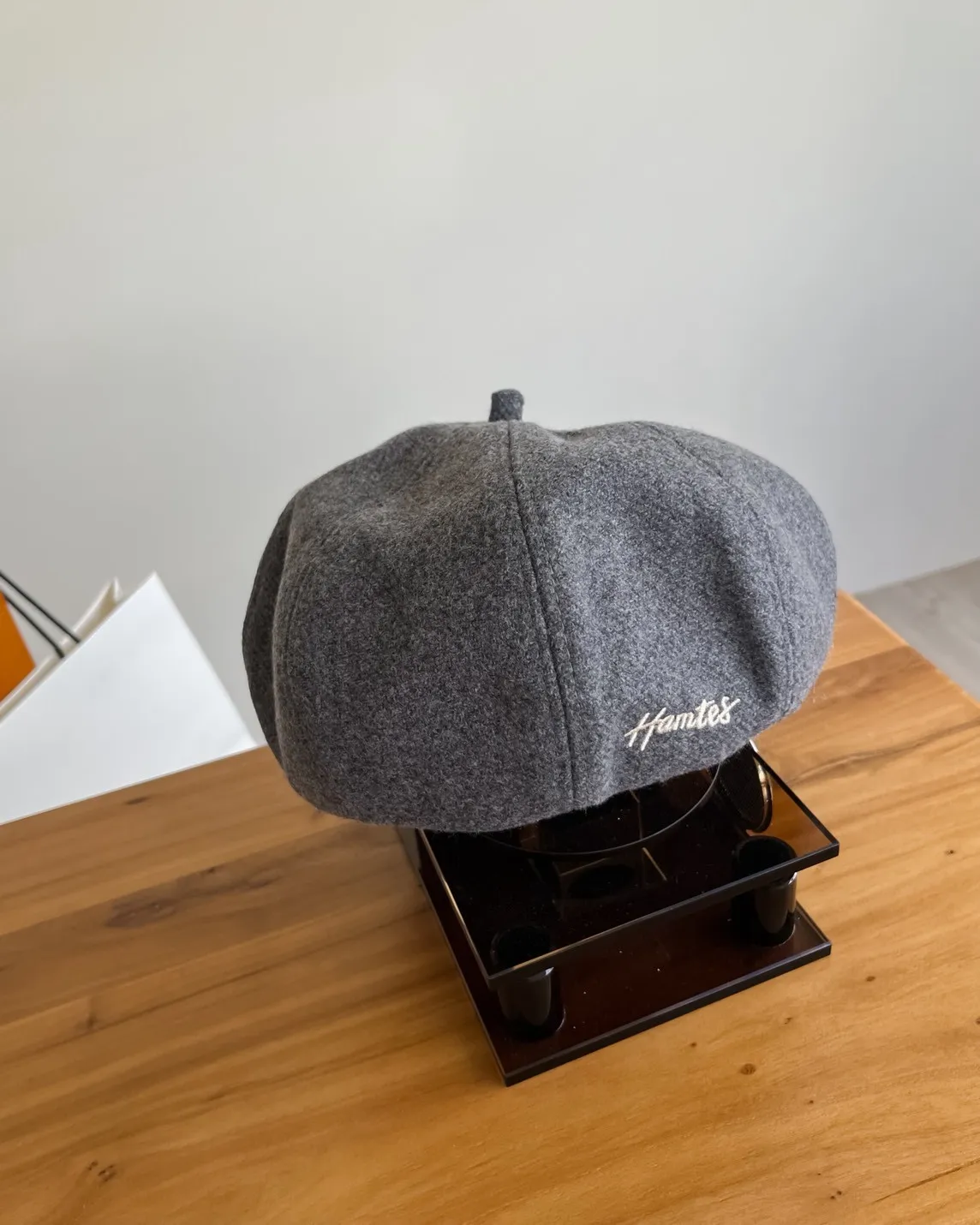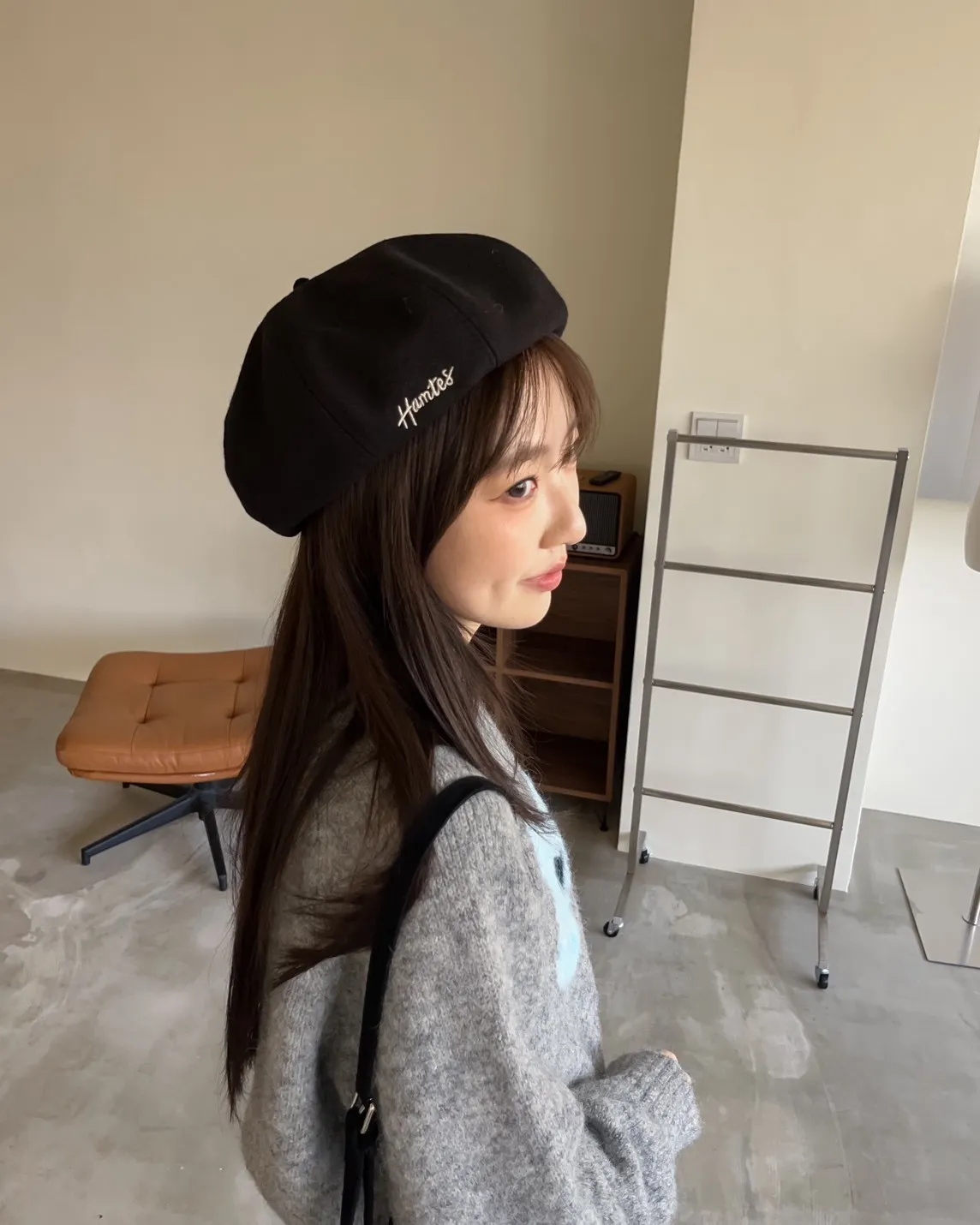W0008刺繡毛呢貝蕾帽(杏/咖啡/深灰/黑)