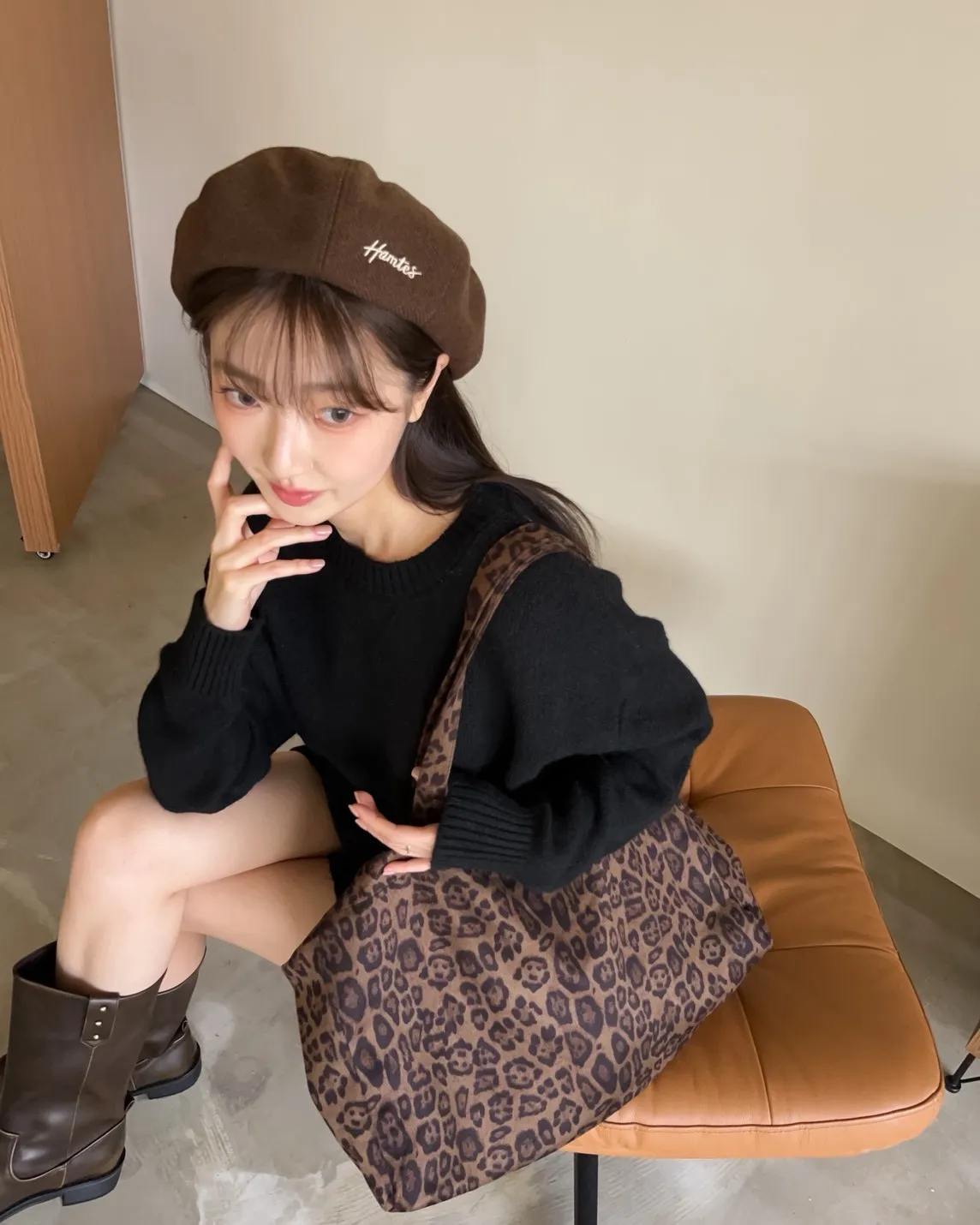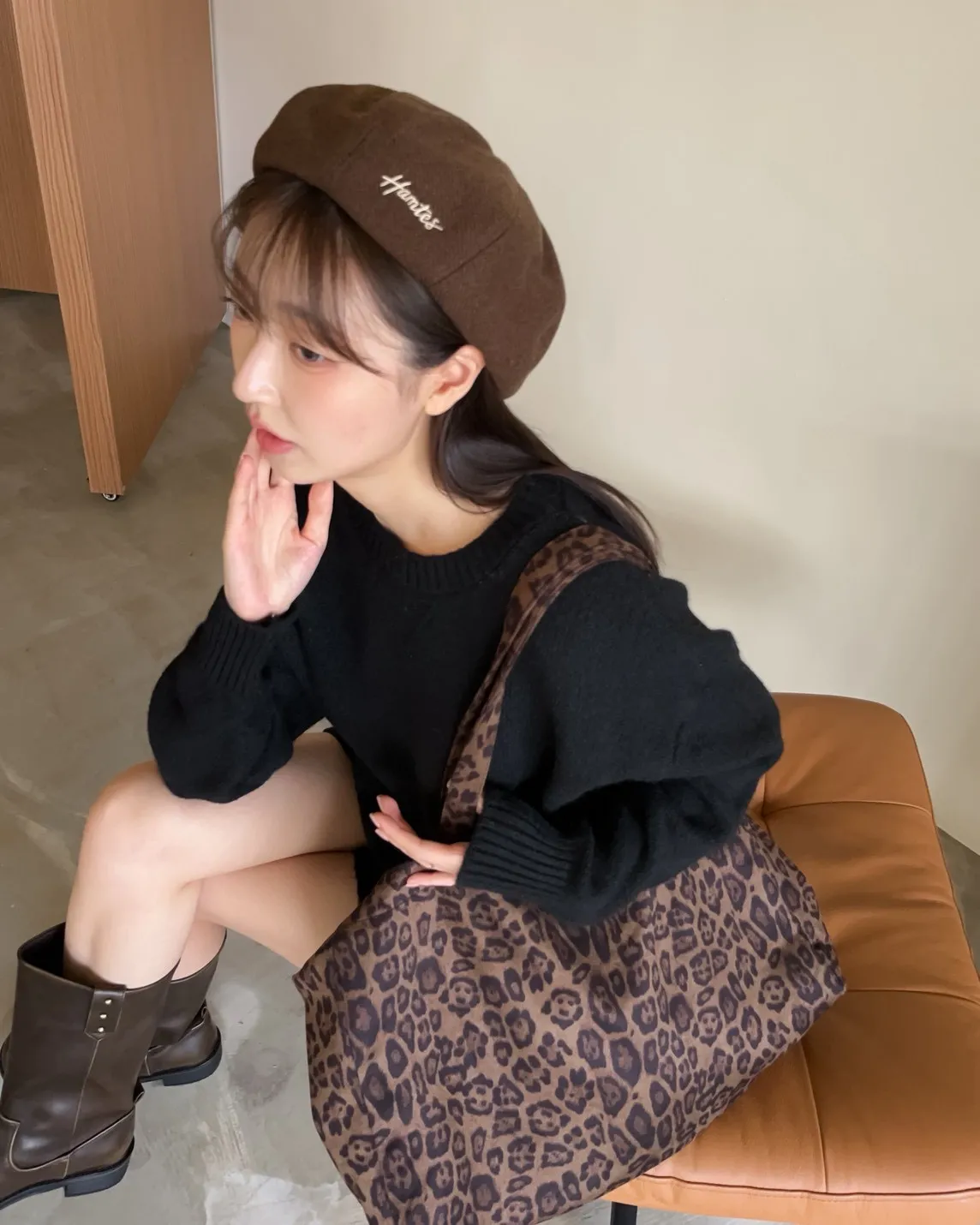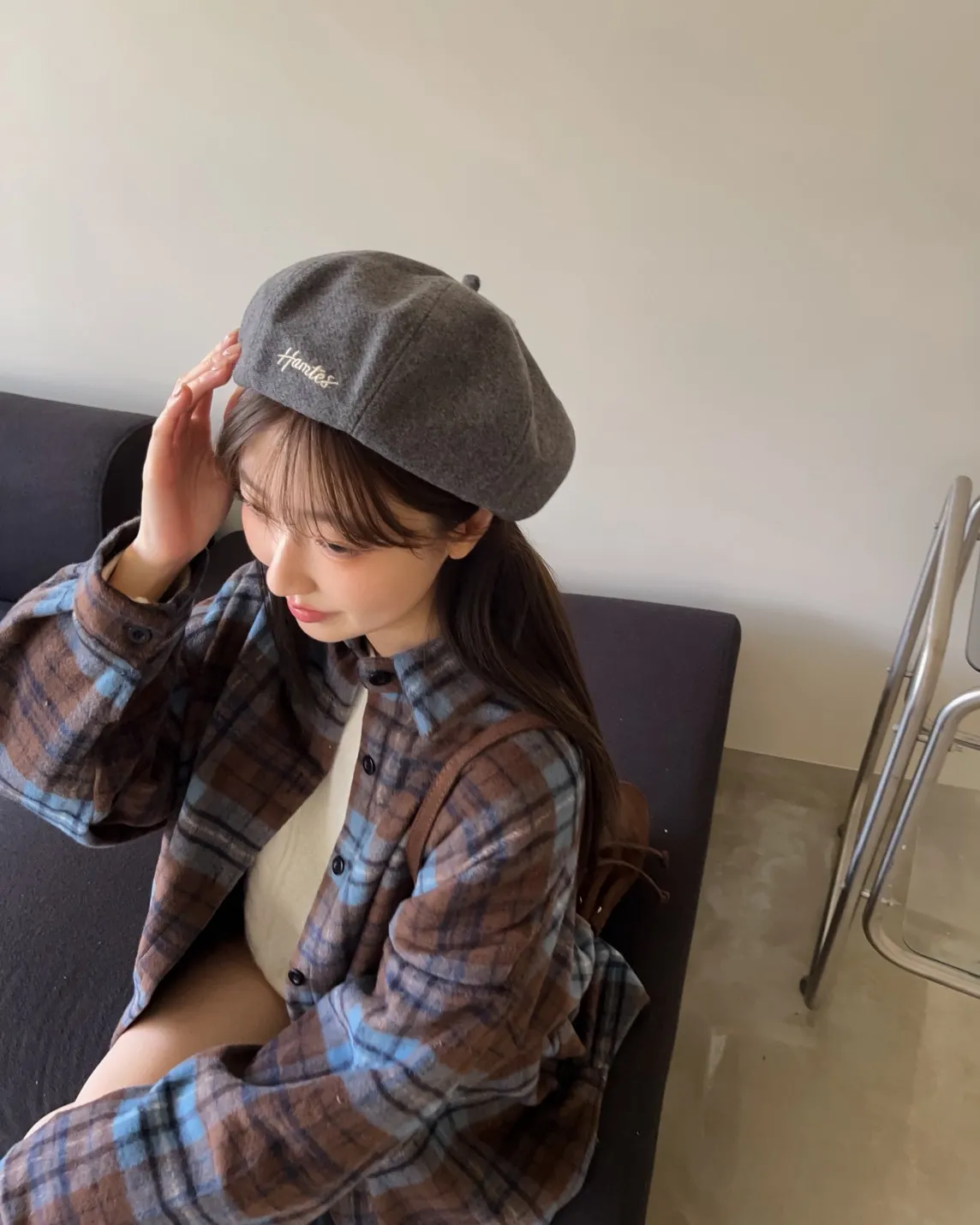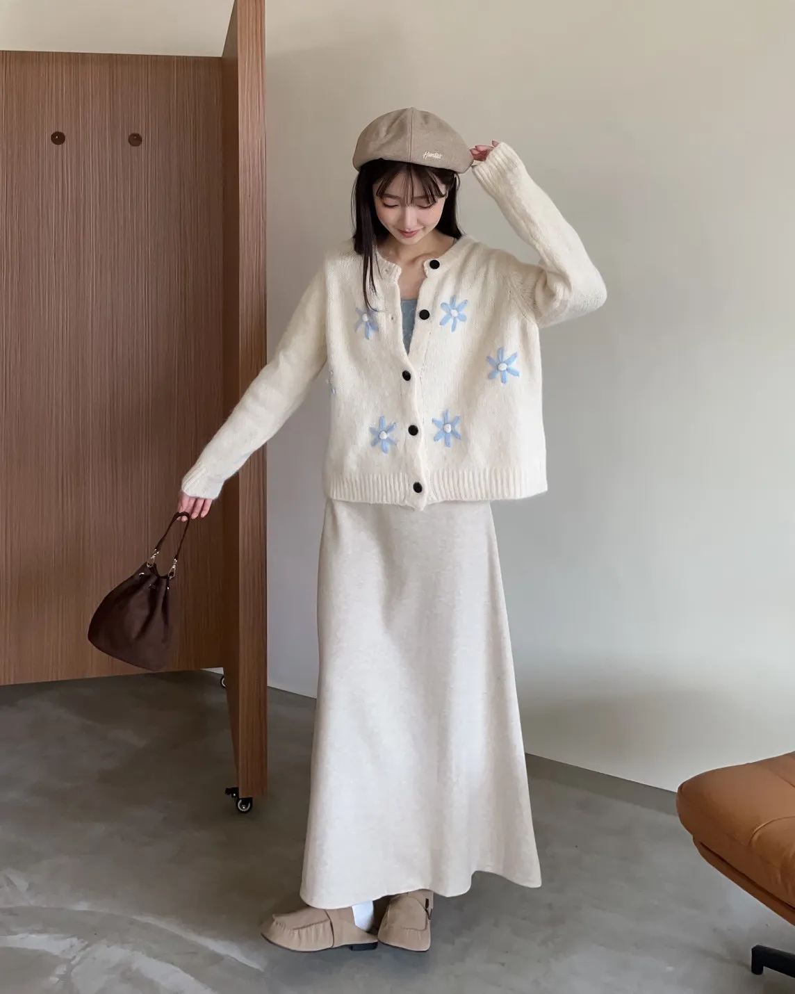 W0008刺繡毛呢貝蕾帽(杏/咖啡/深灰/黑)