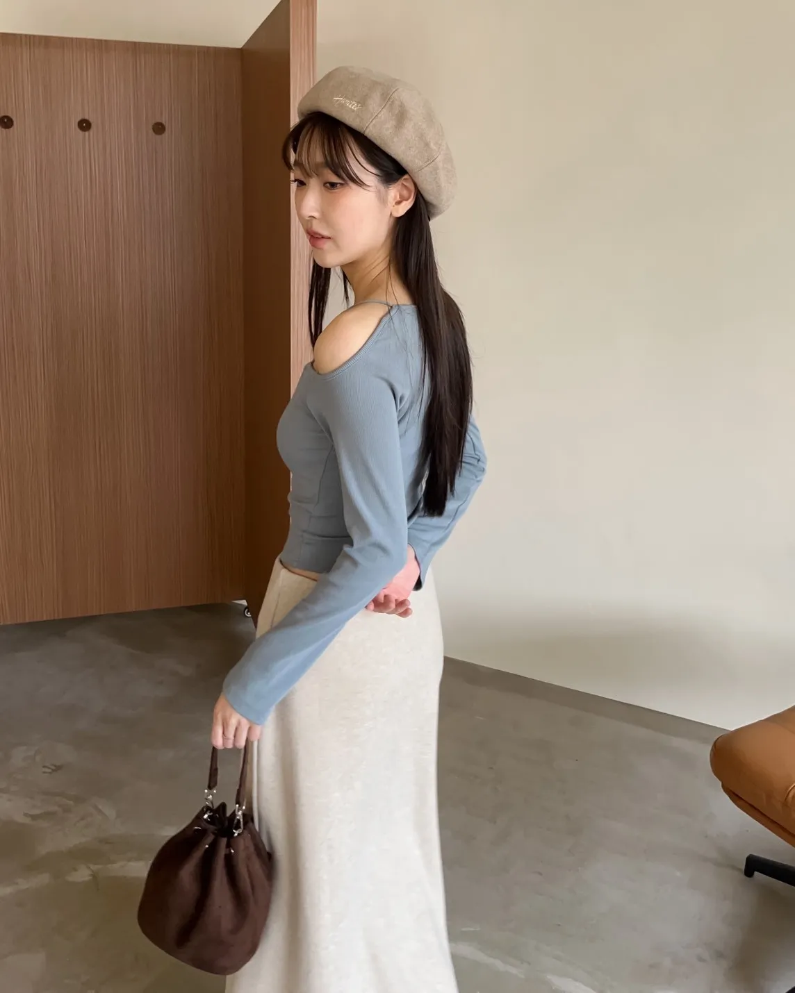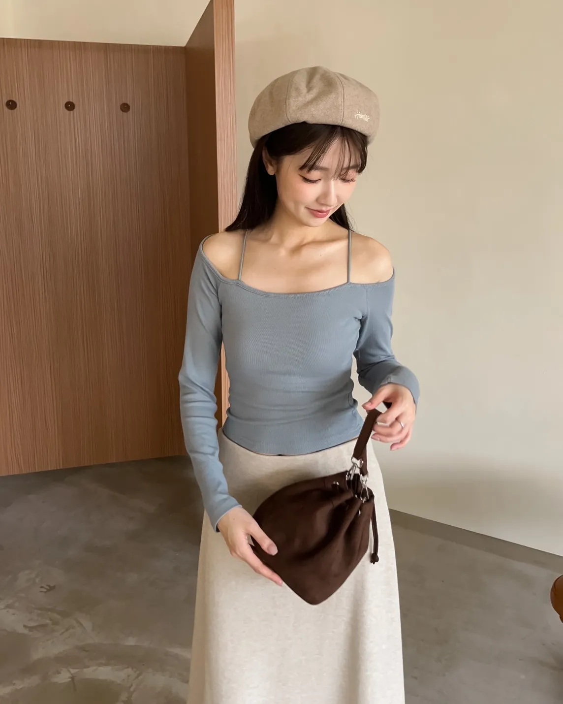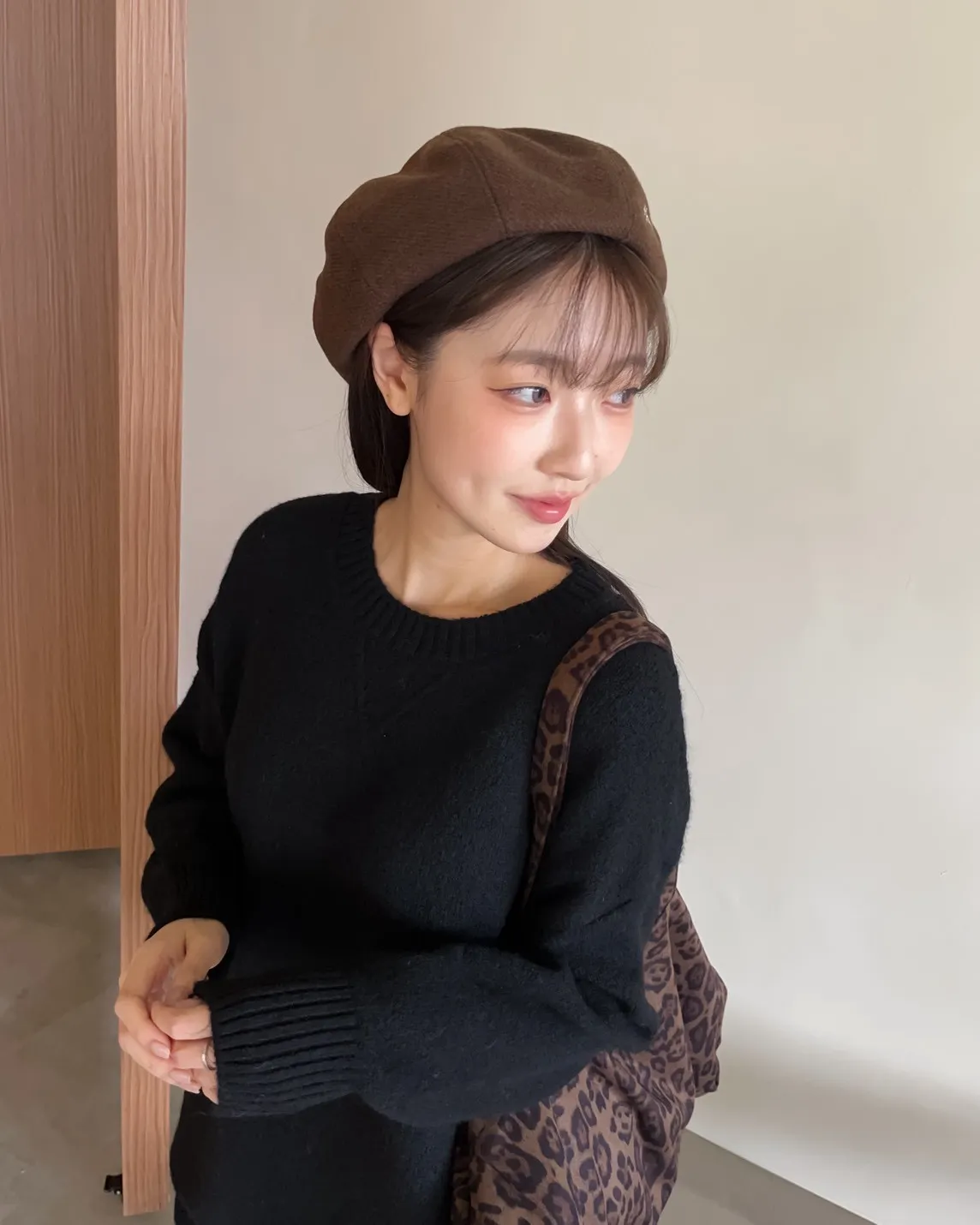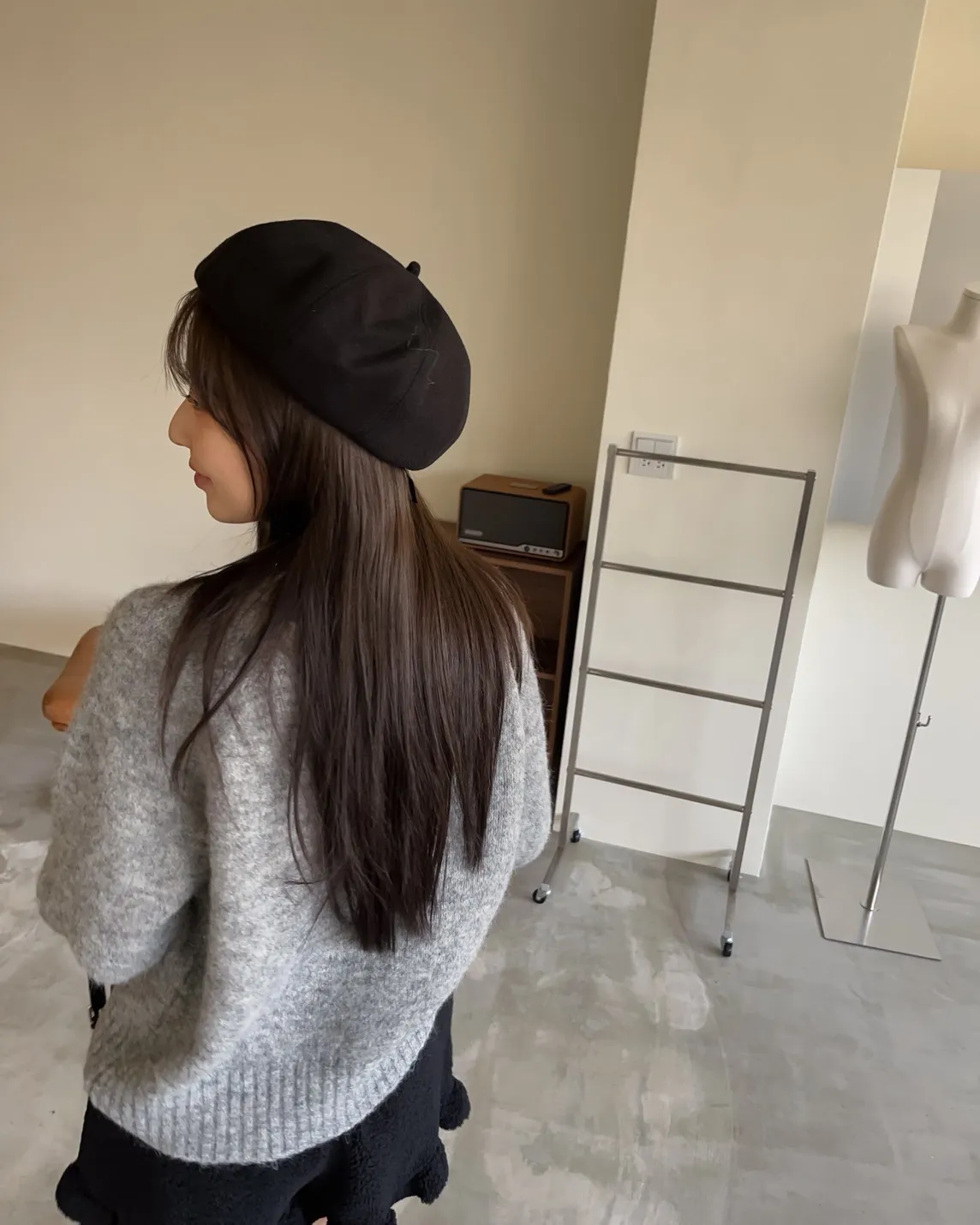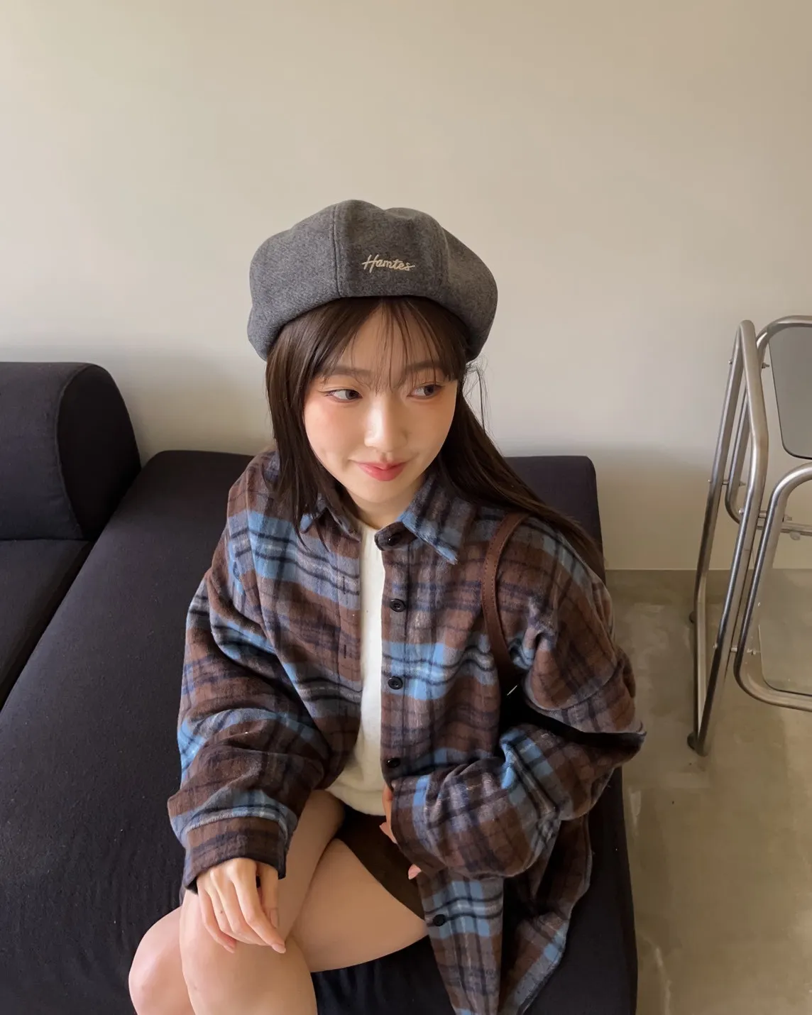 W0008刺繡毛呢貝蕾帽(杏/咖啡/深灰/黑)