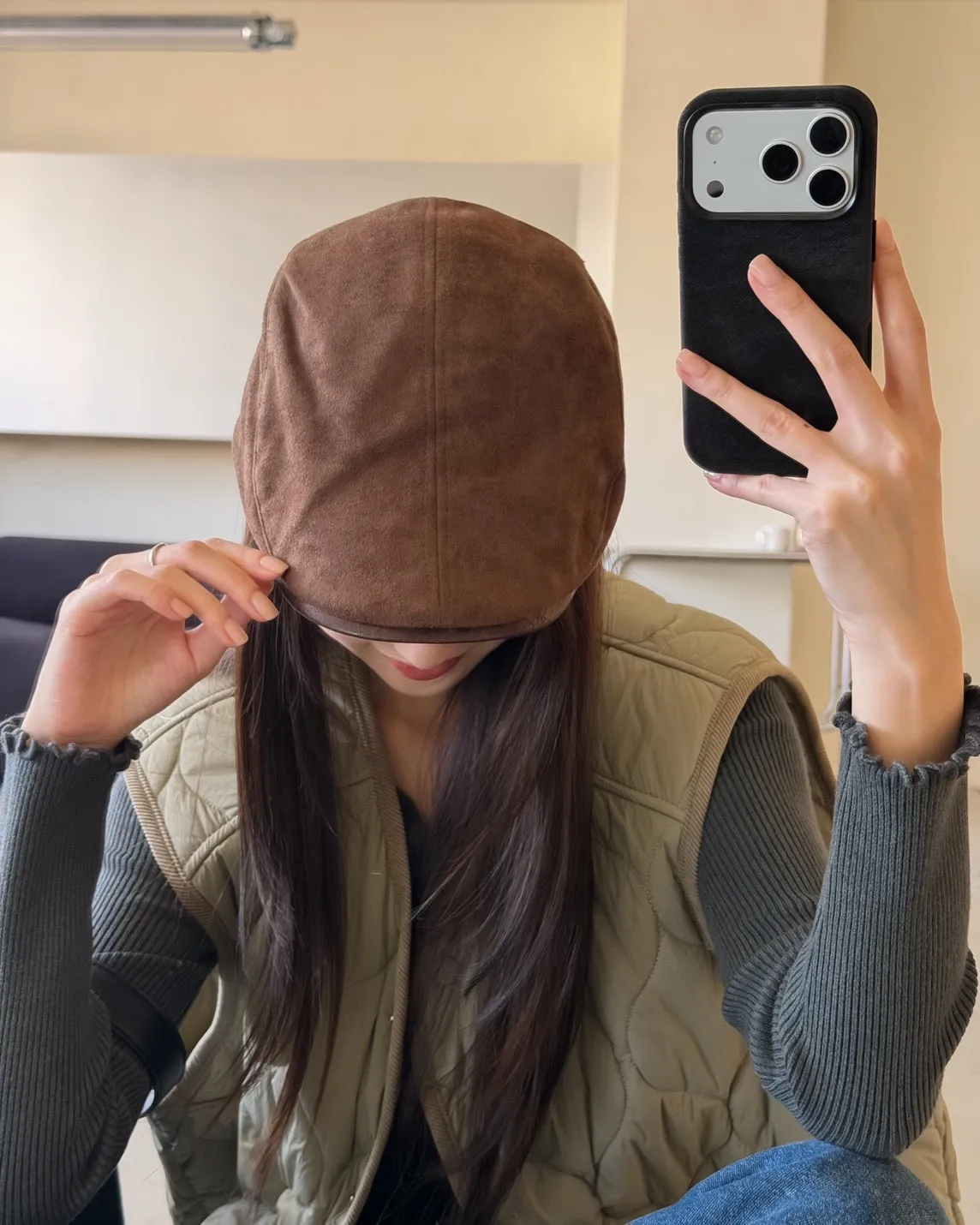 W0054質感麂皮小偷帽(淺咖啡/深咖啡/黑)