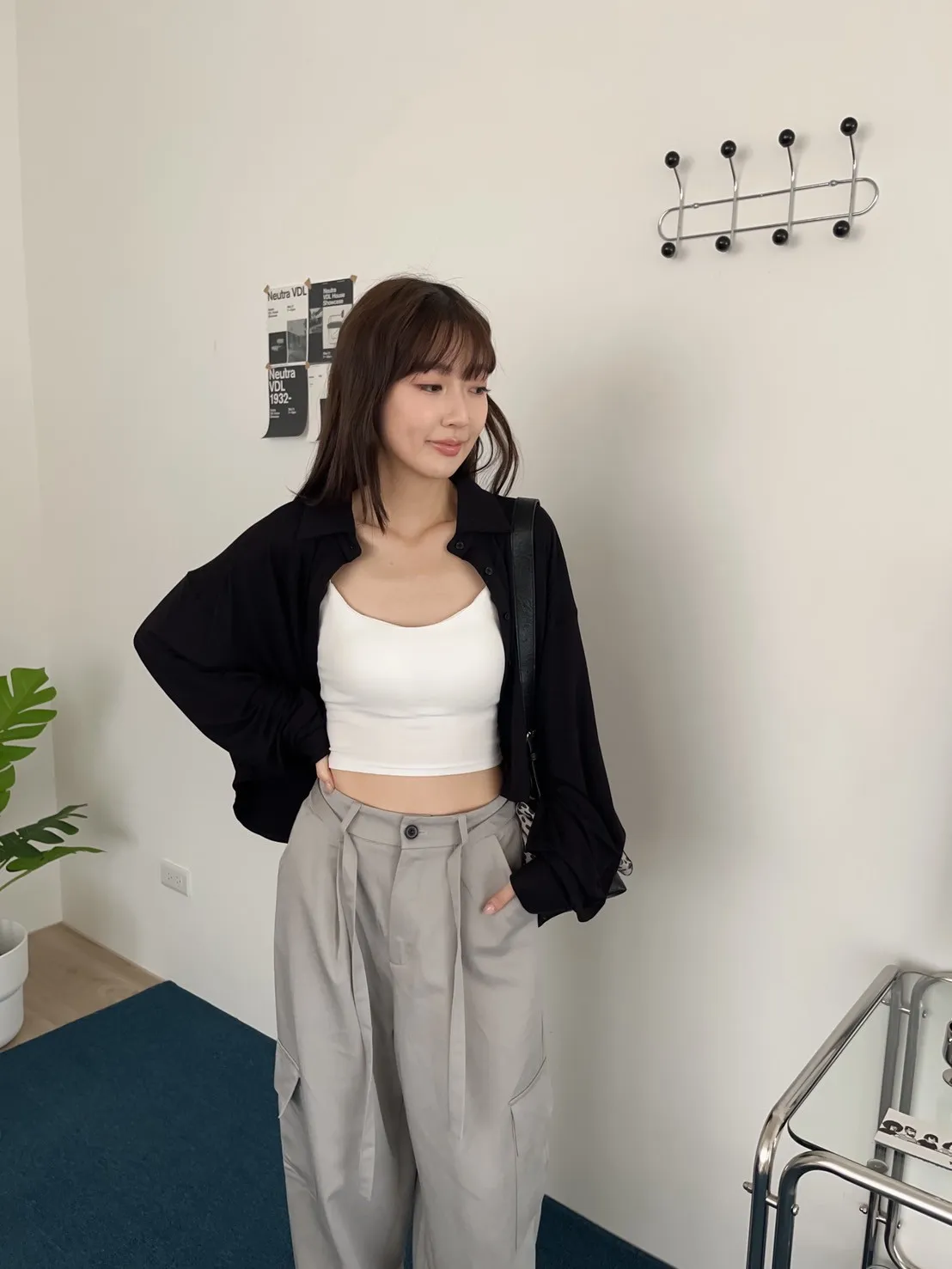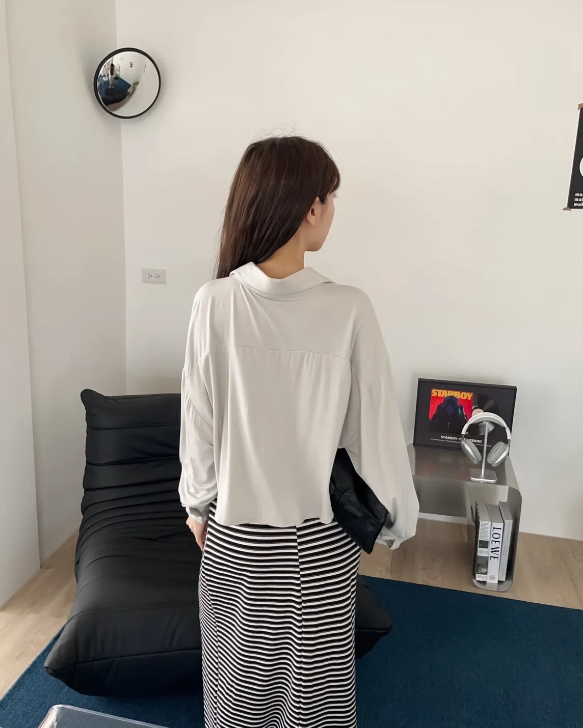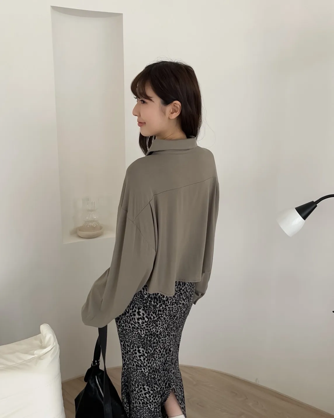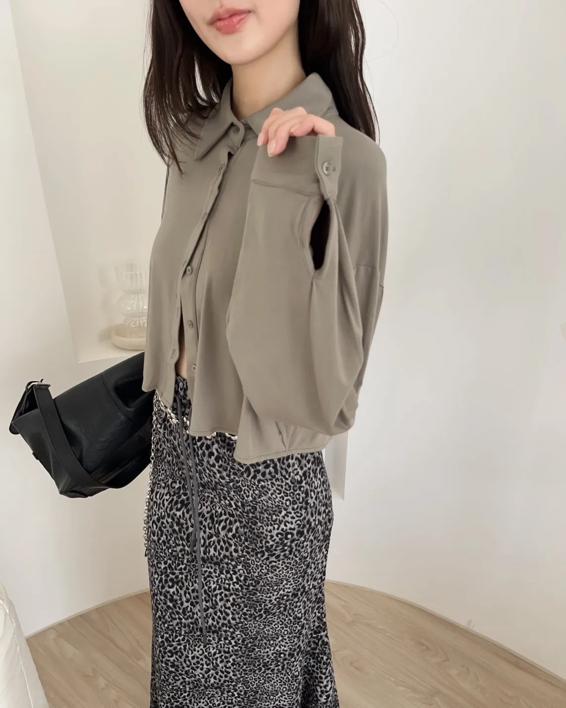 U0008莫代爾棉短版翻領排扣上衣(杏/綠/黑)
