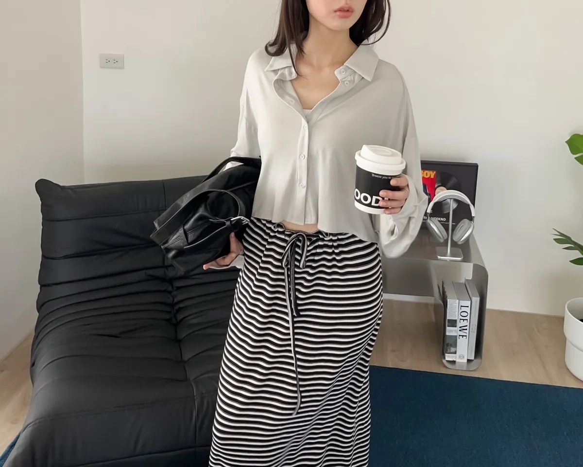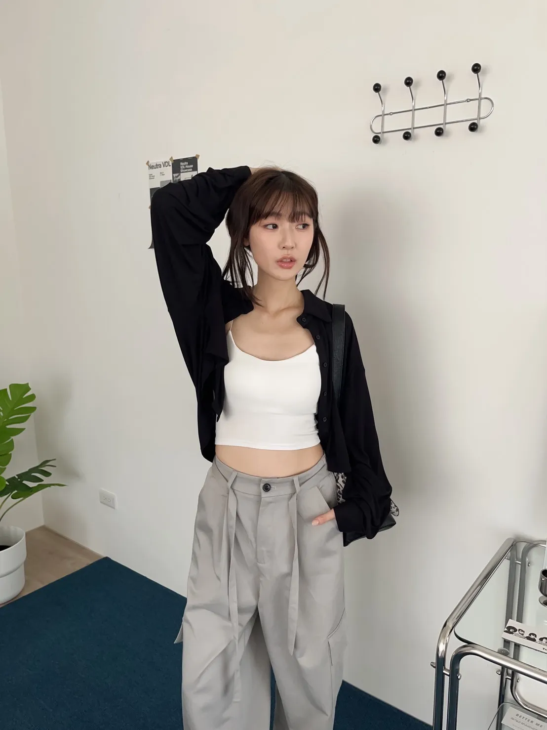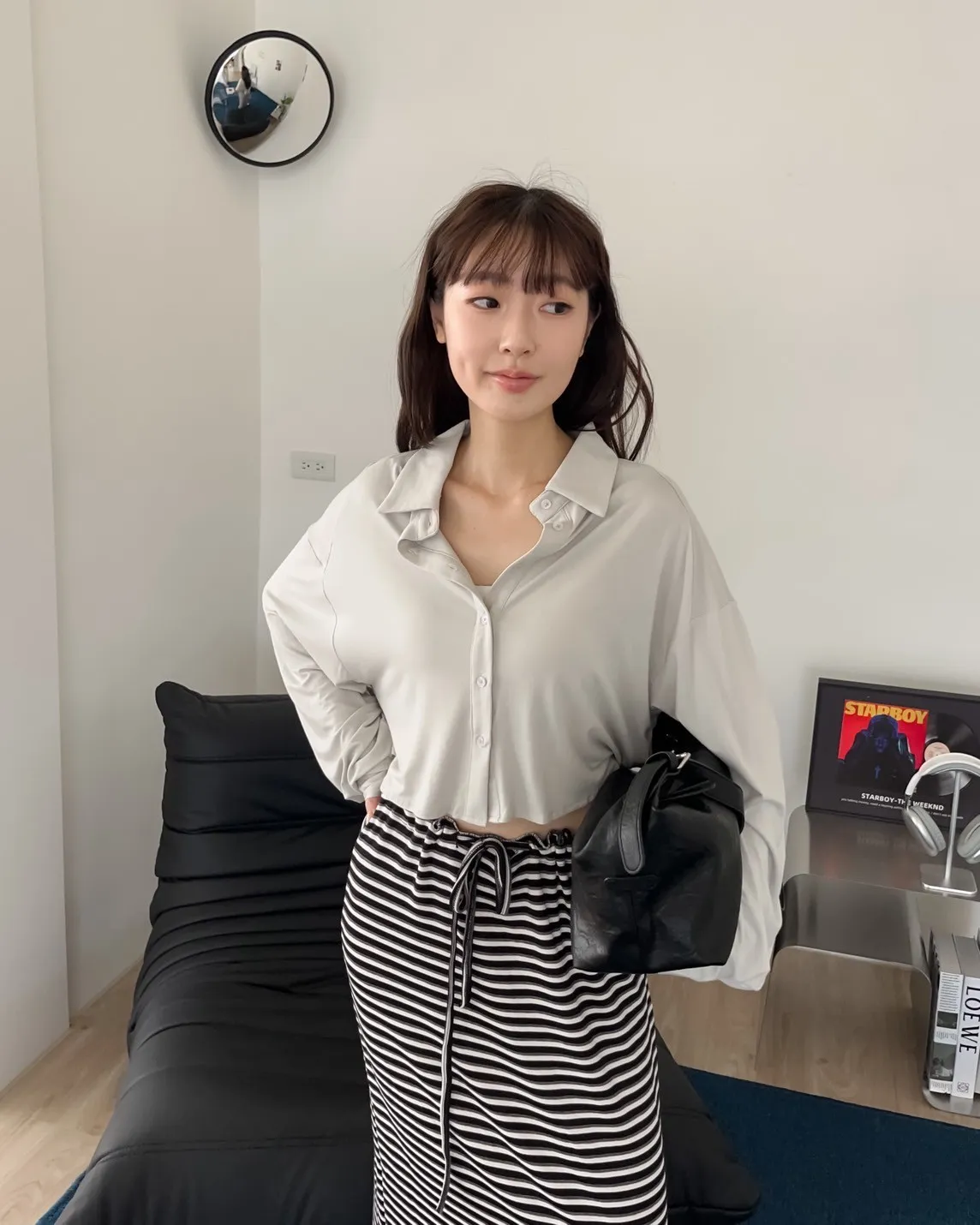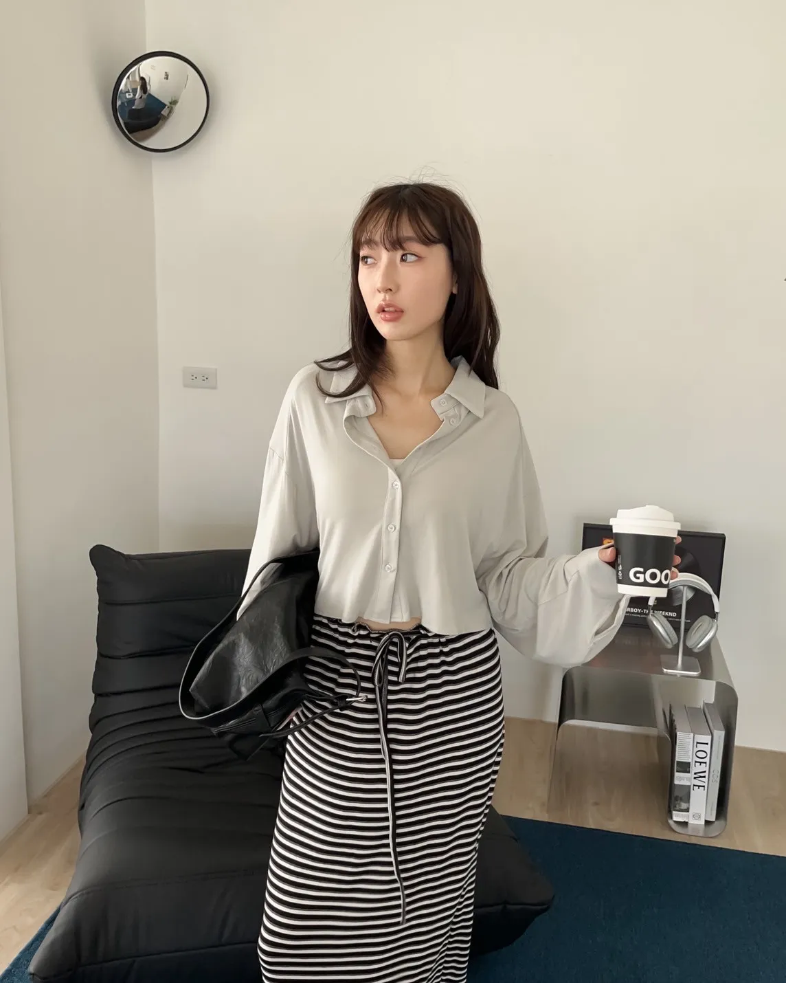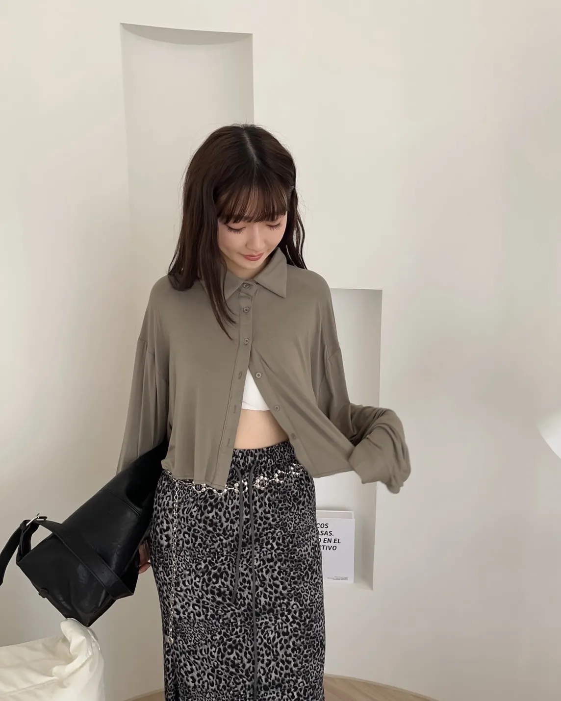 U0008莫代爾棉短版翻領排扣上衣(杏/綠/黑)