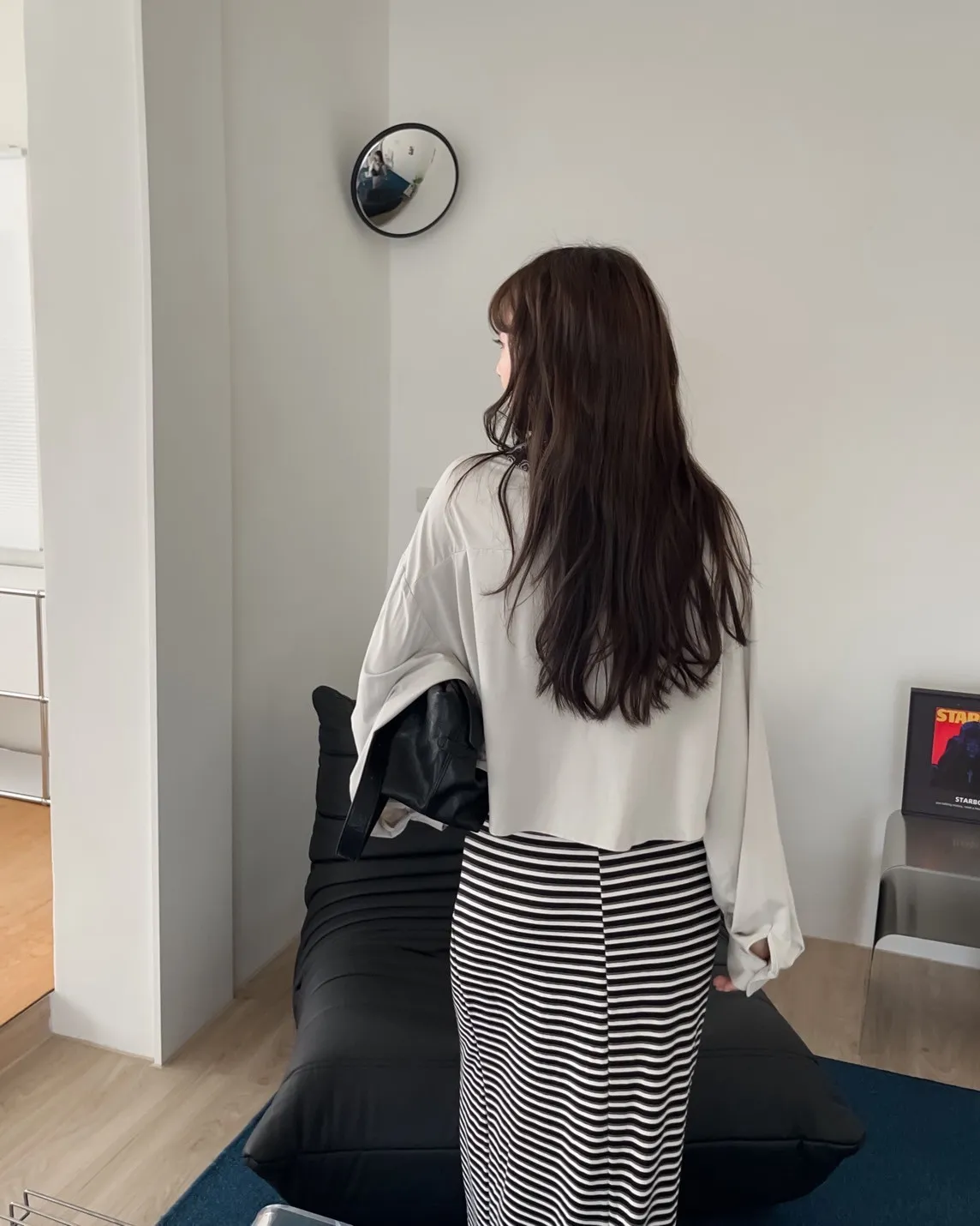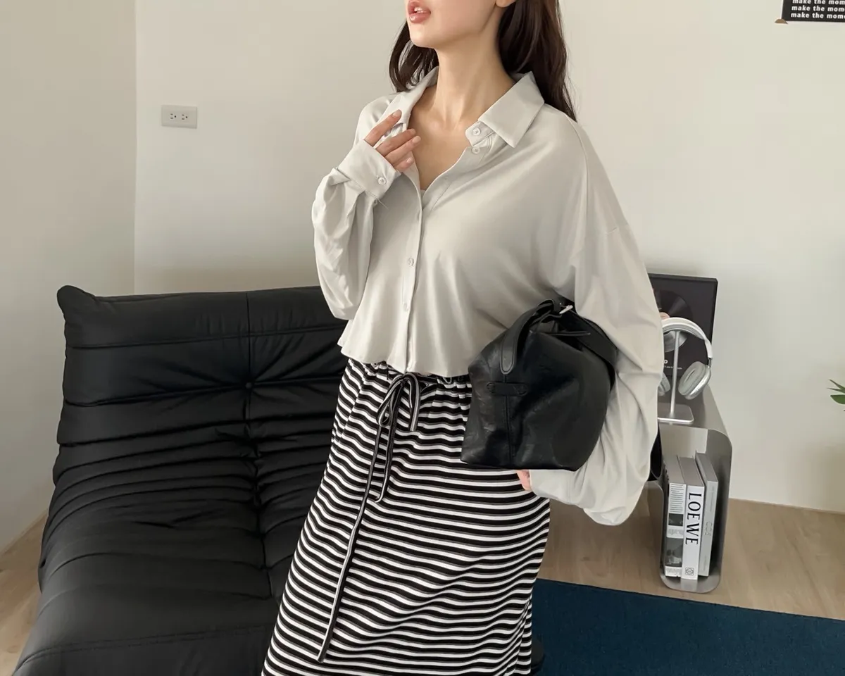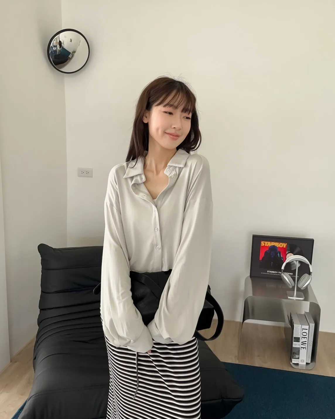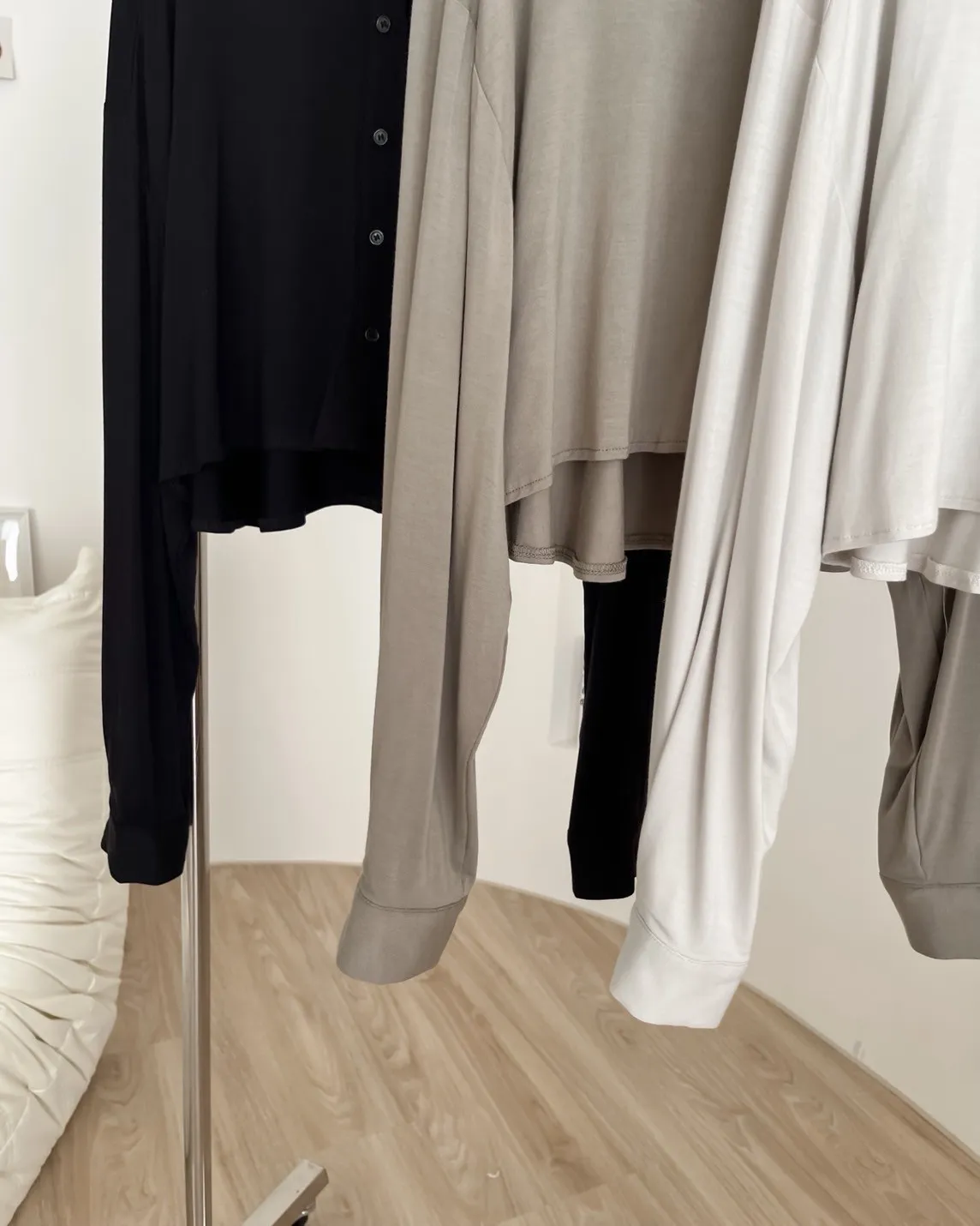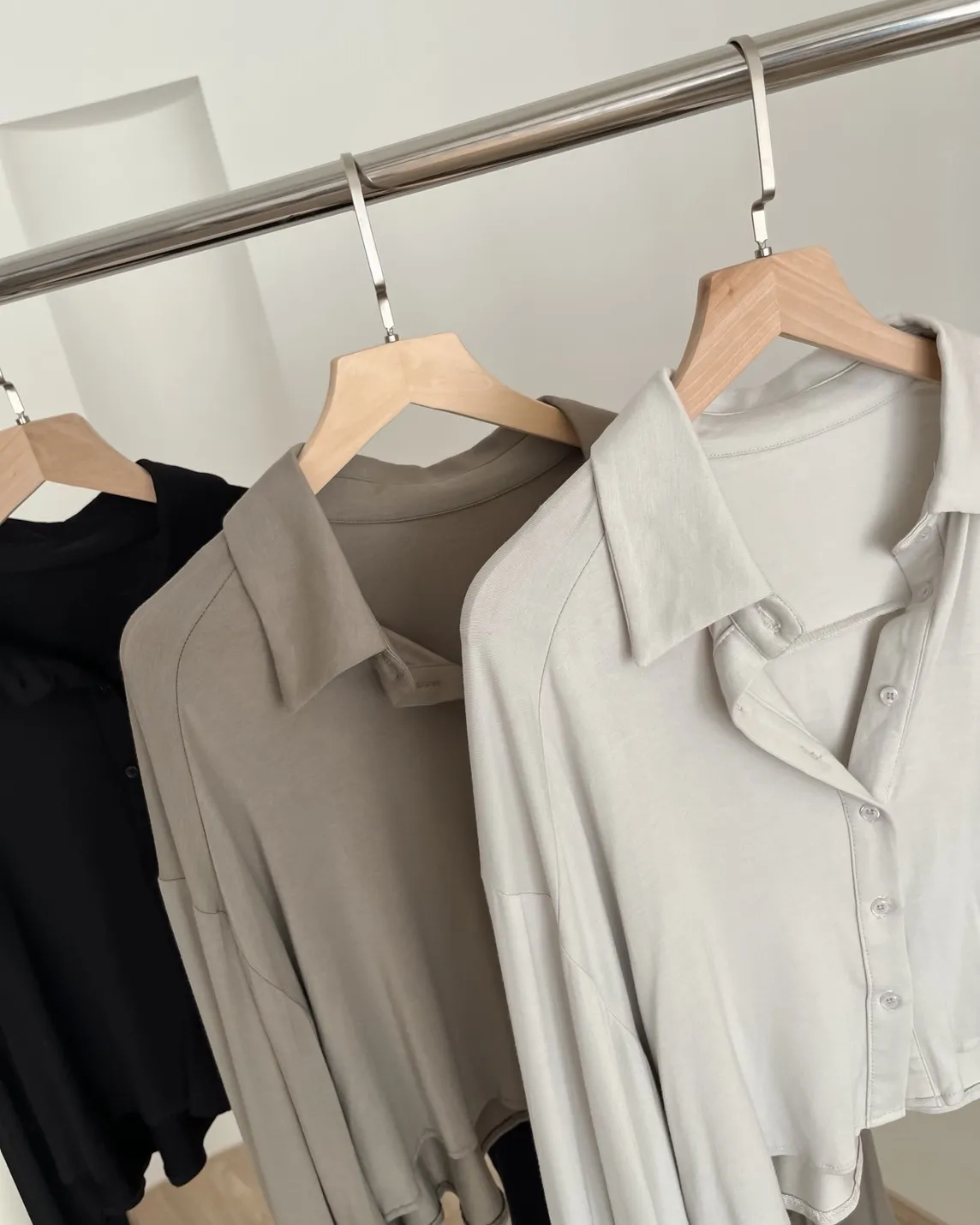 很軟很軟的棉料 同色系鈕扣 翻領 中短版 前短後長