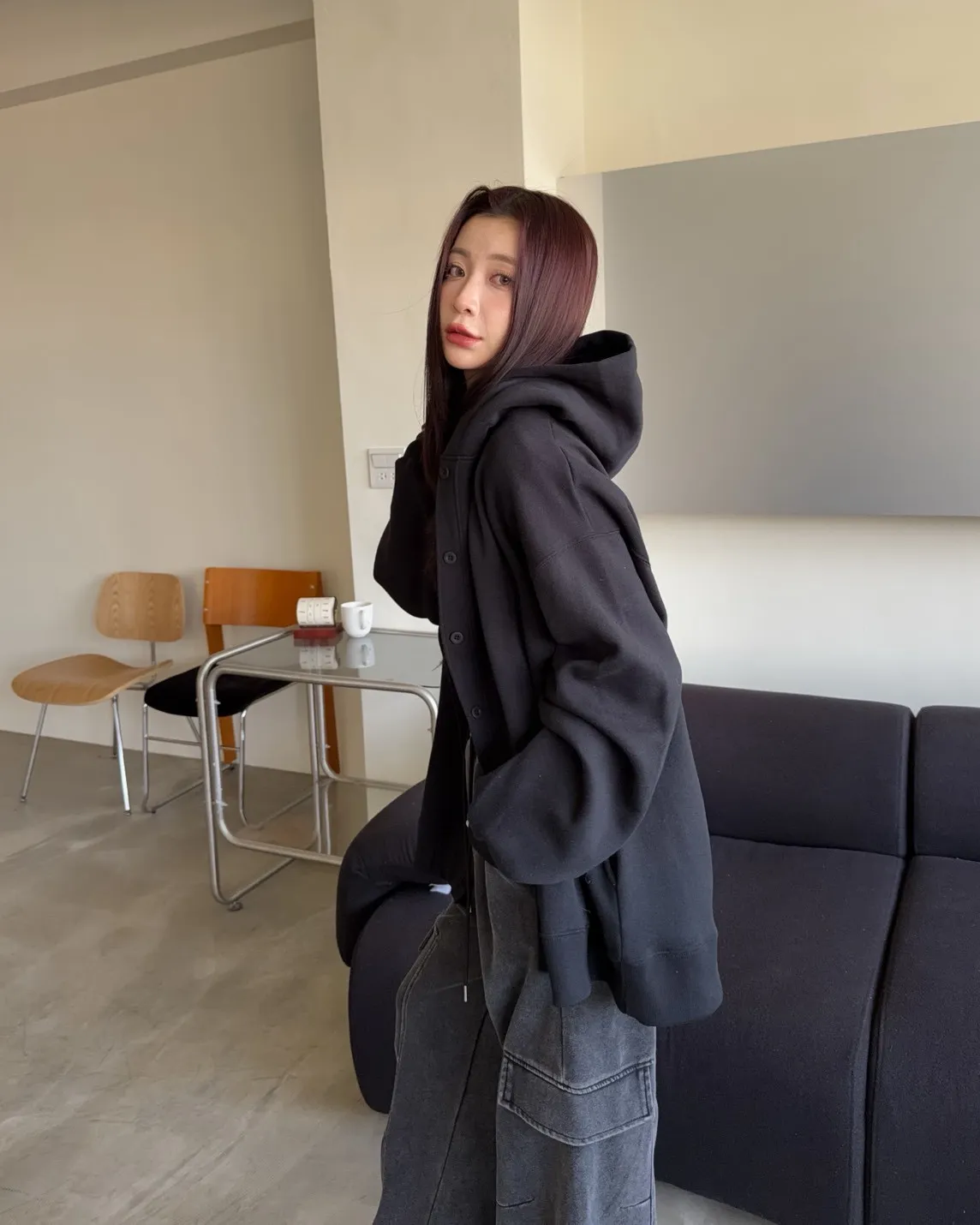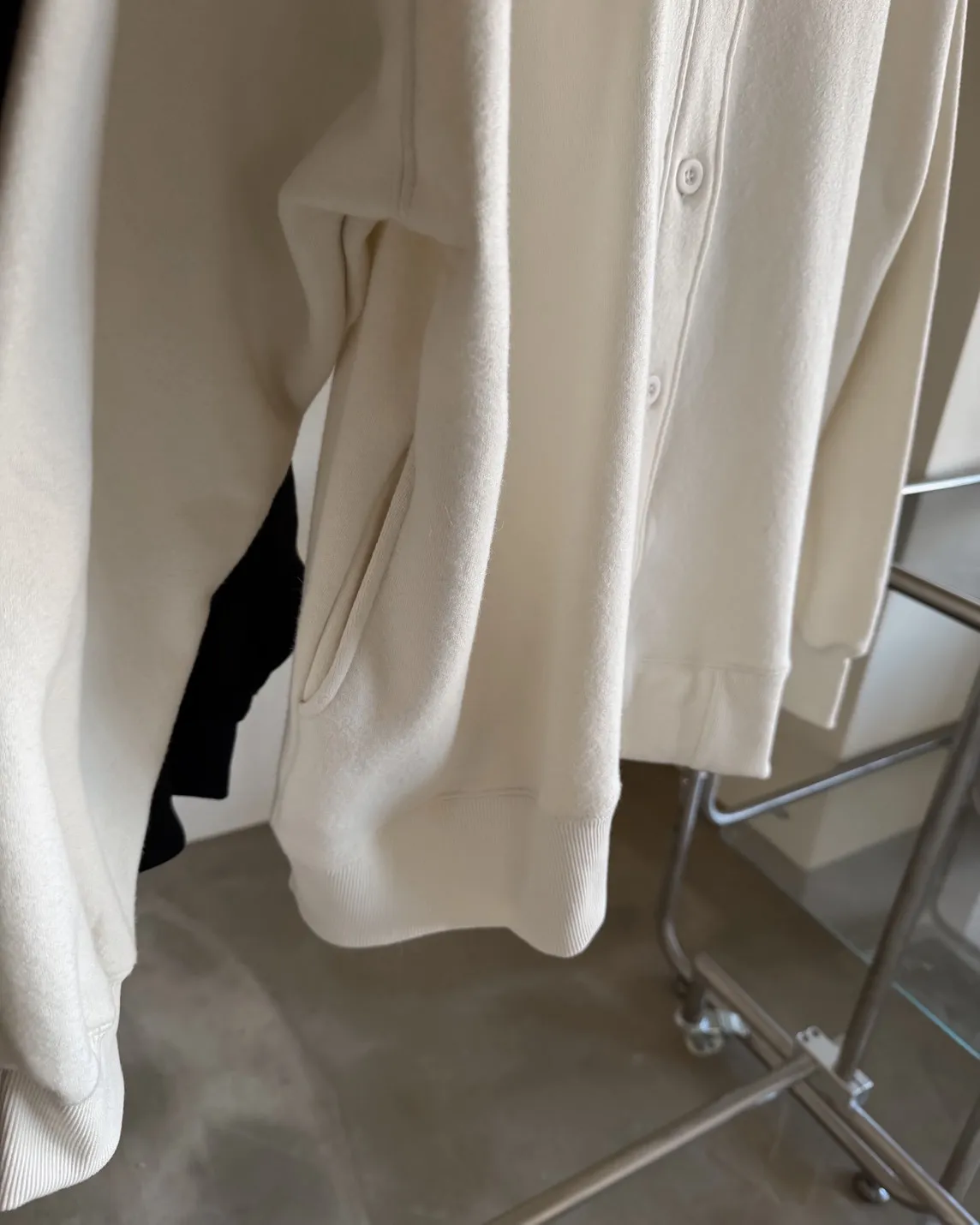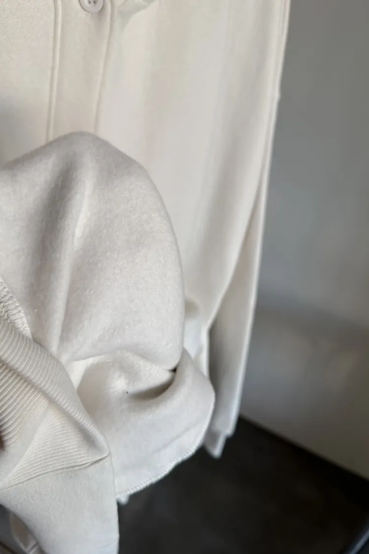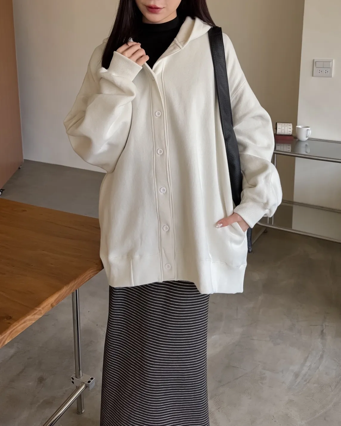 連帽 內刷毛 兩側口袋 同色系鈕扣 寬鬆落肩