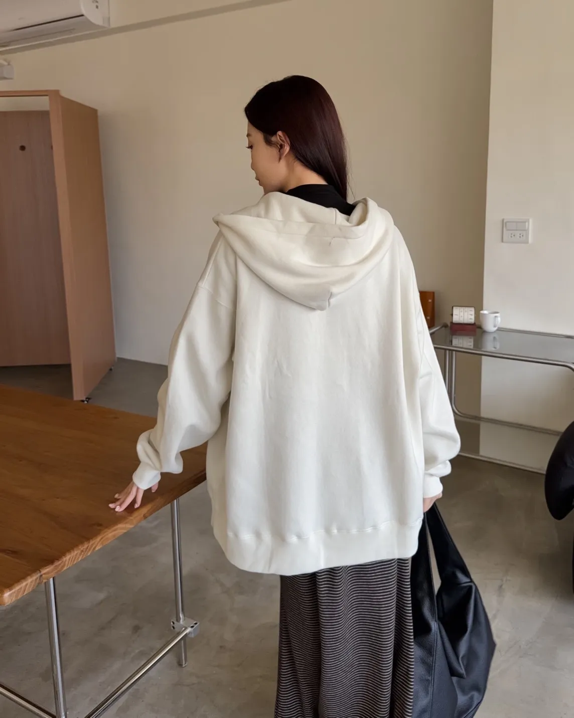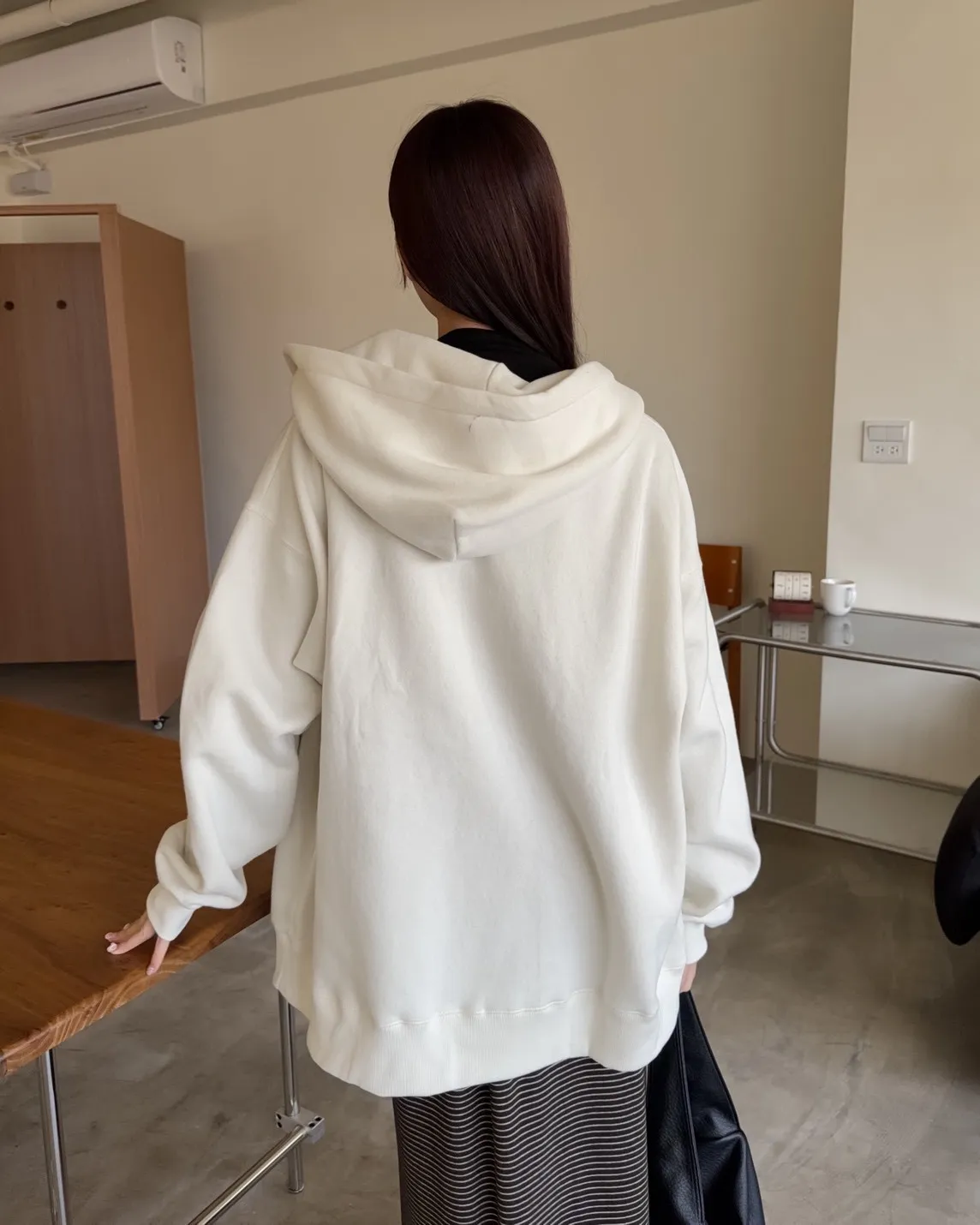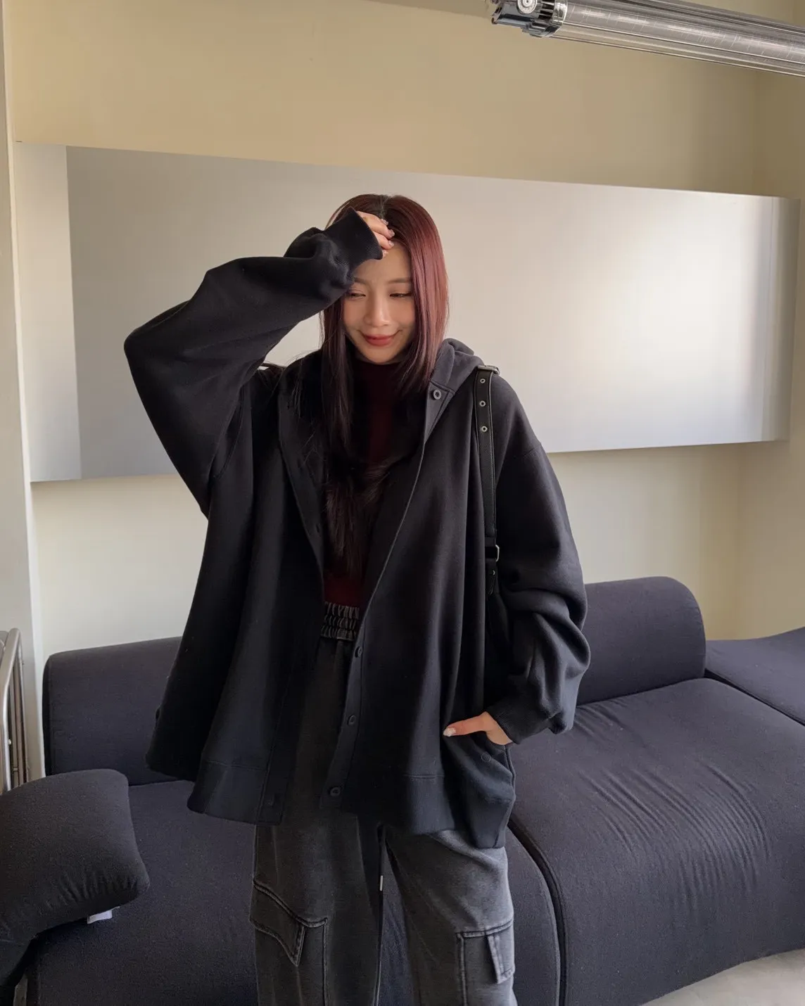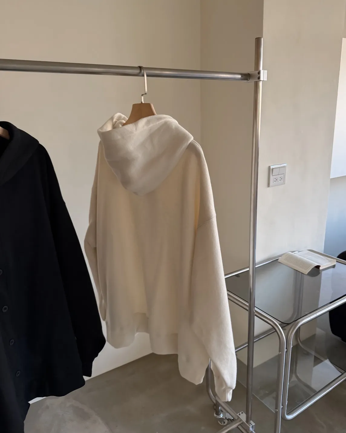 連帽 內刷毛 兩側口袋 同色系鈕扣 寬鬆落肩