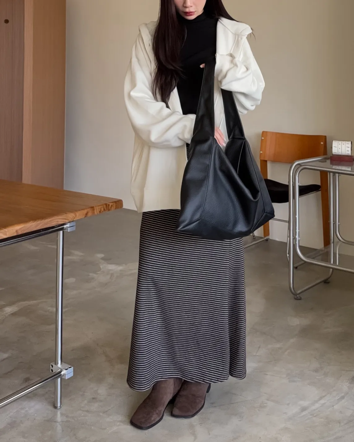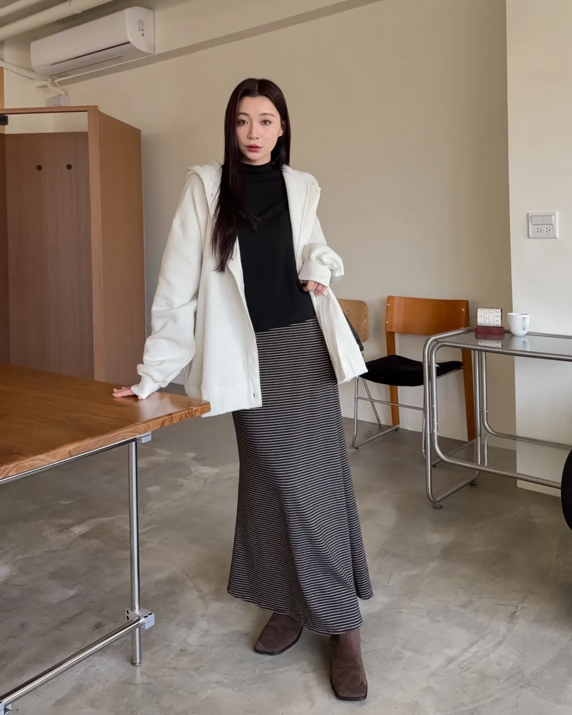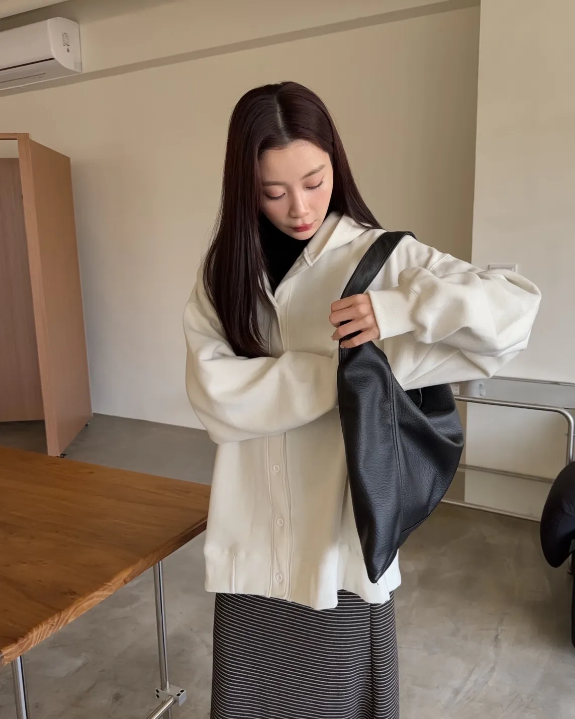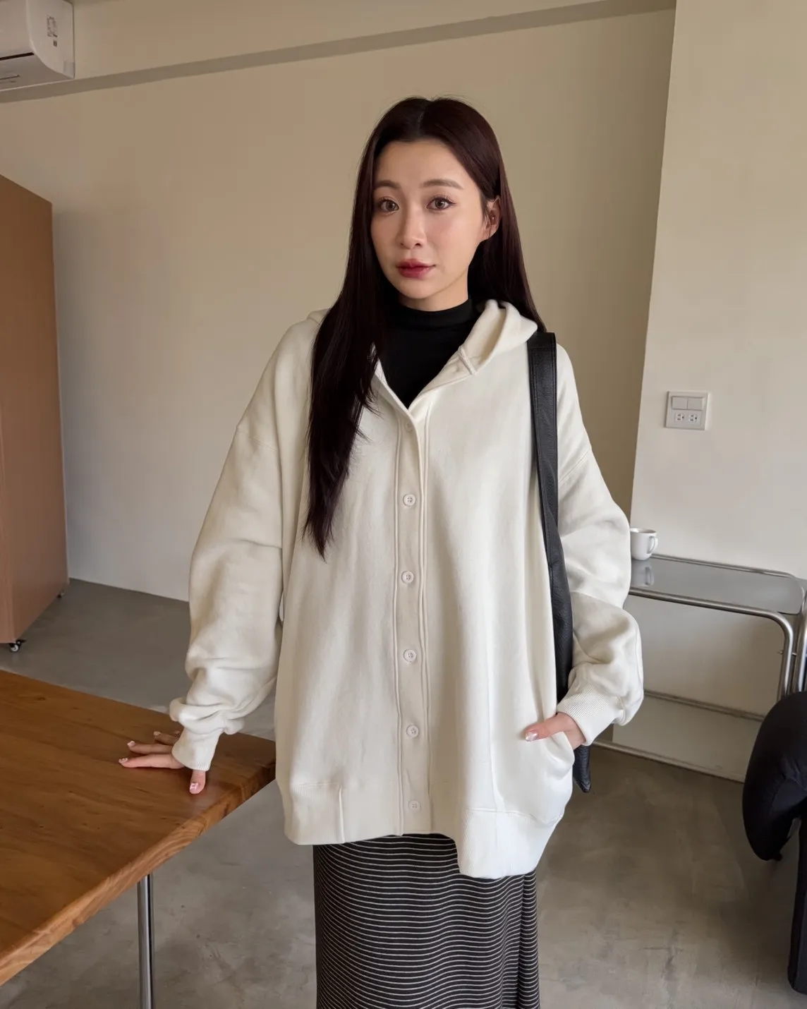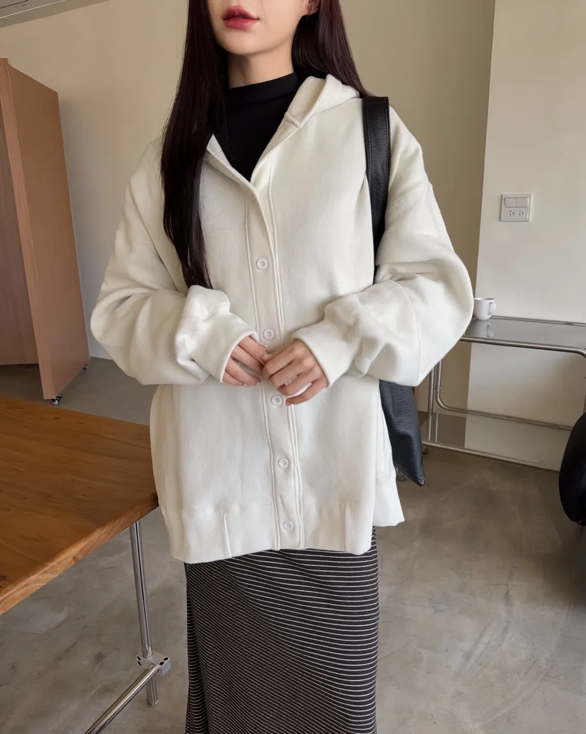 X0001可愛爆炸排釦刷毛連帽外套(米白/黑)