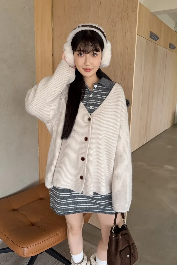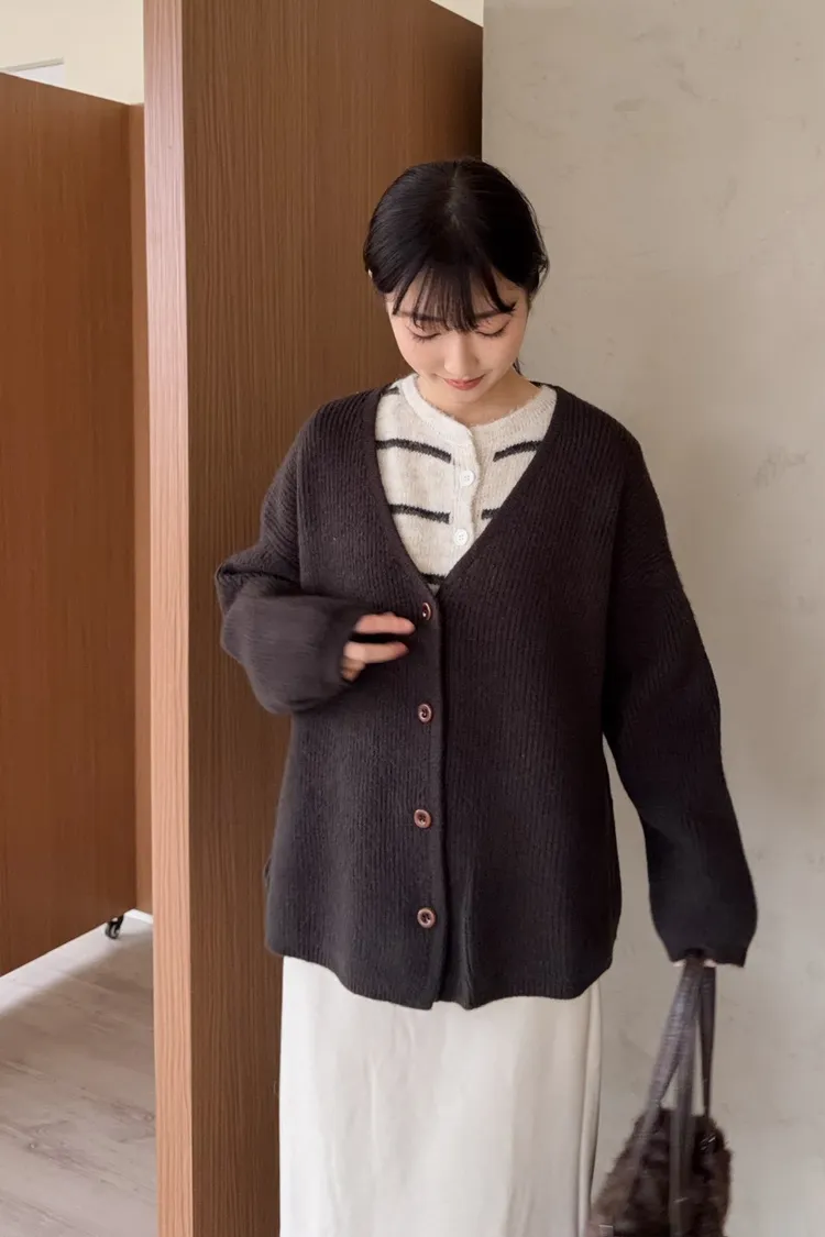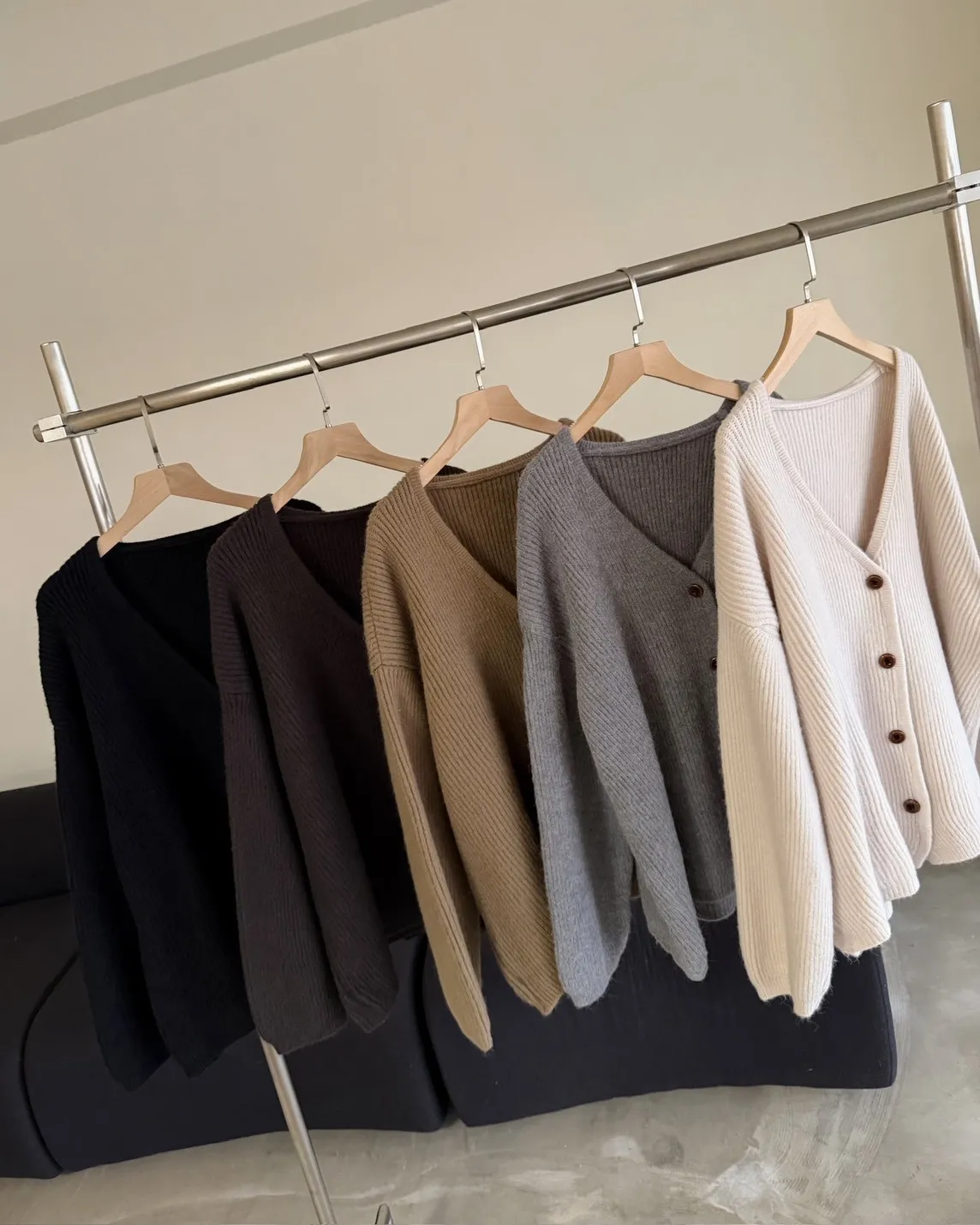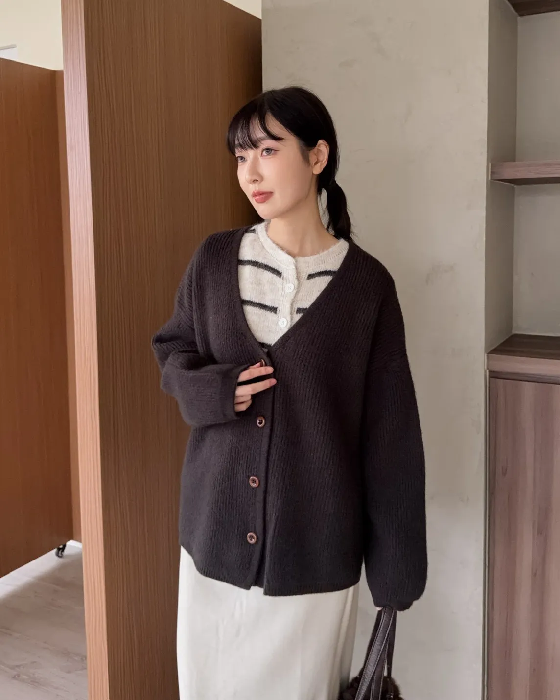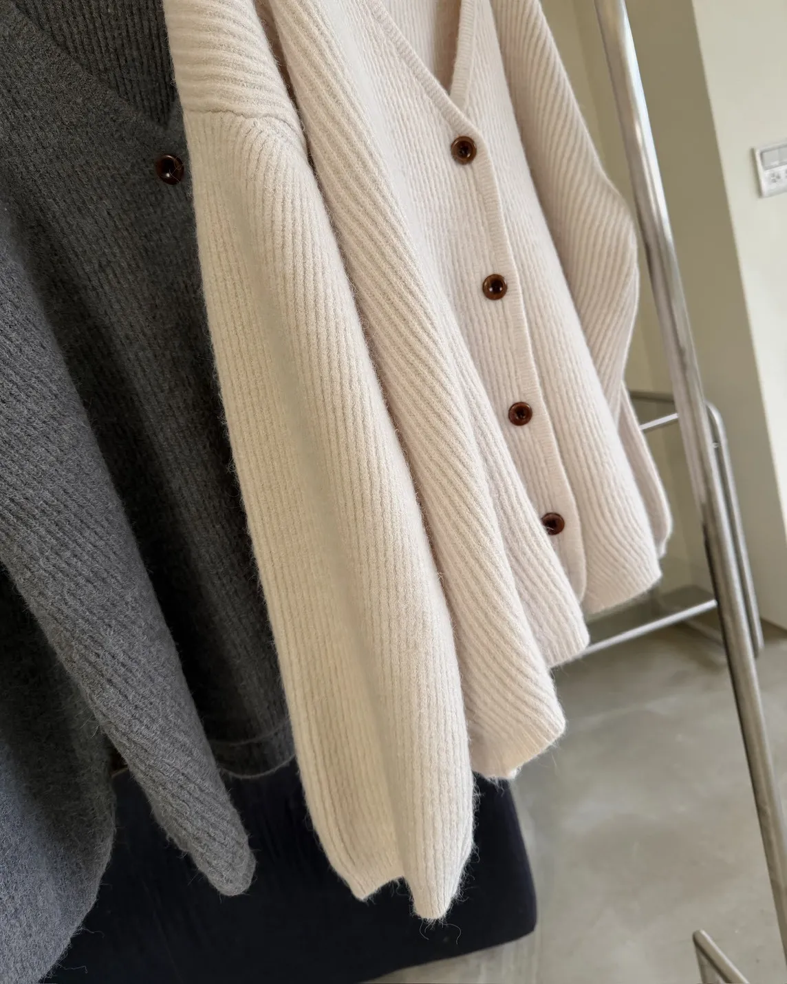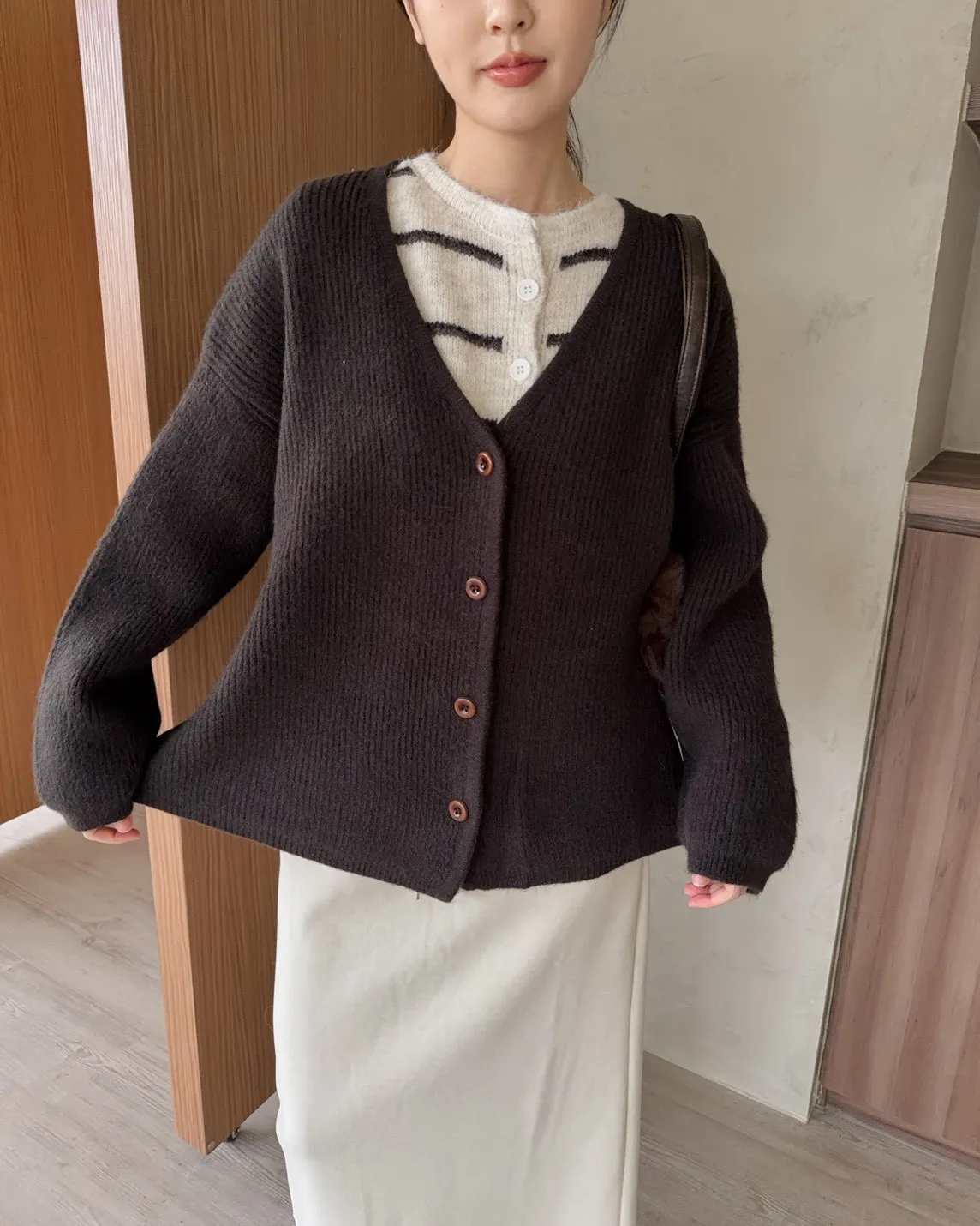 Y0018(五色)木紋紐扣針織上衣/外套(米白/淺咖啡/深咖啡/灰/黑)