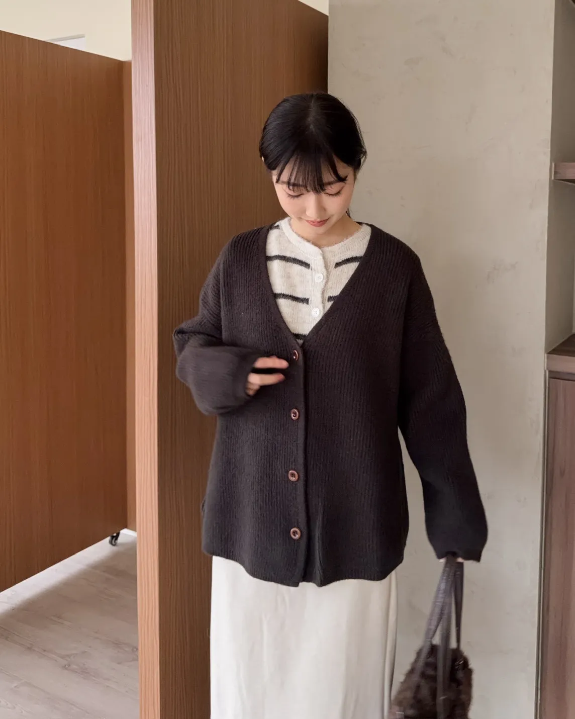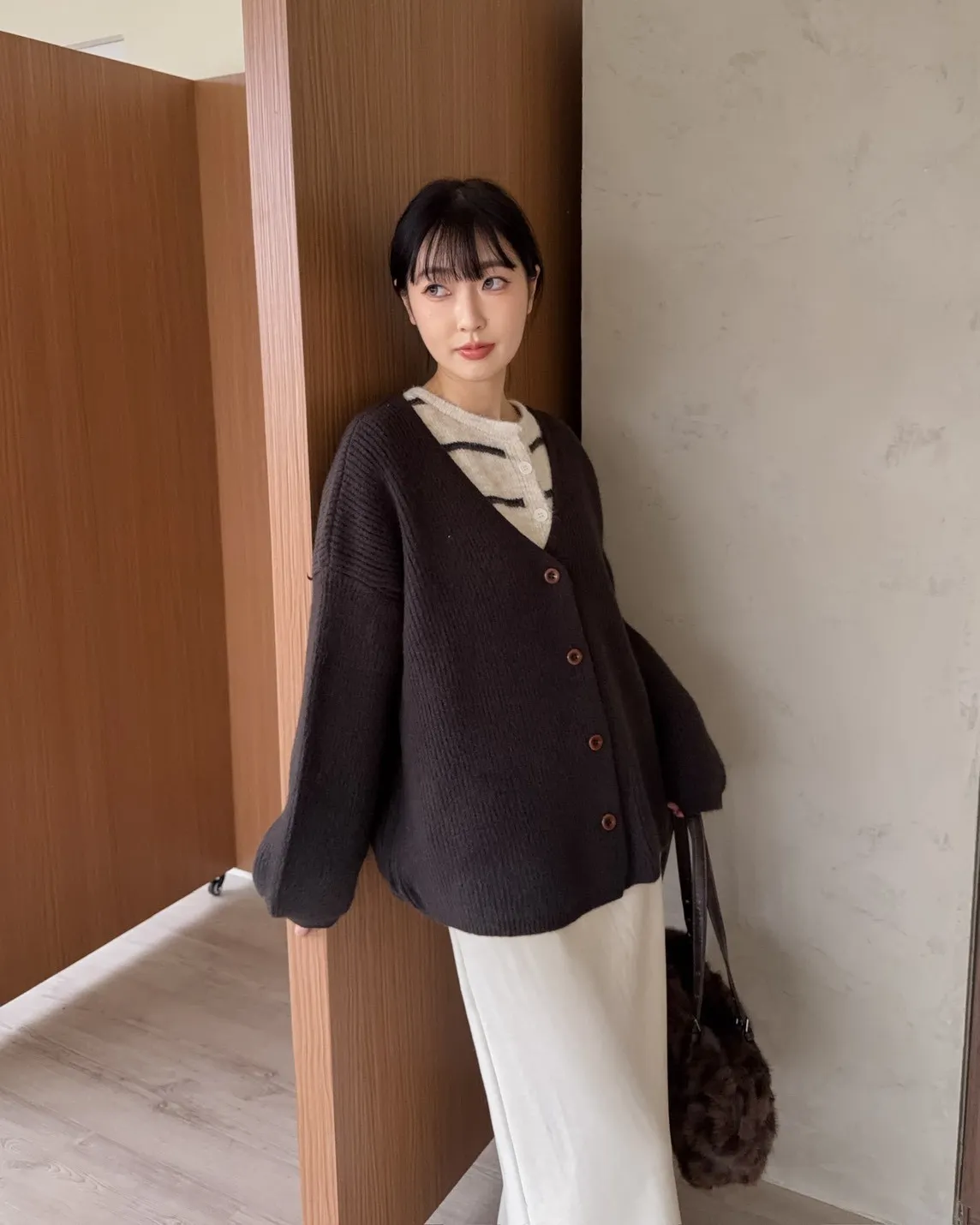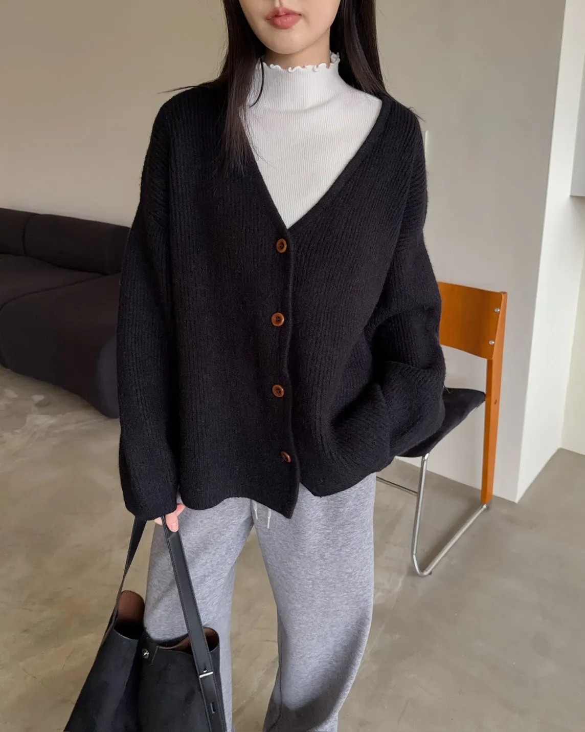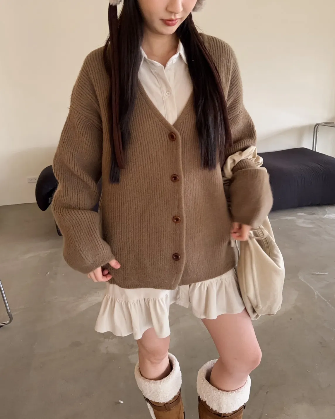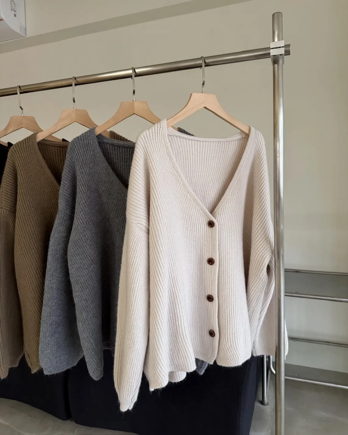 Y0018(五色)木紋紐扣針織上衣/外套(米白/淺咖啡/深咖啡/灰/黑)