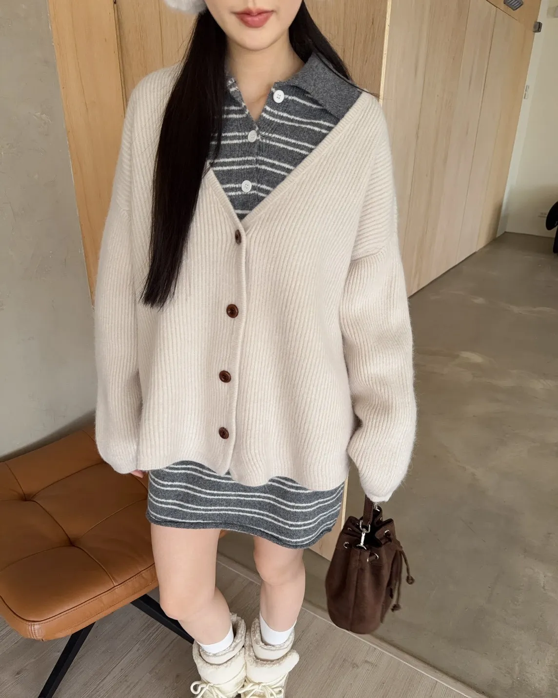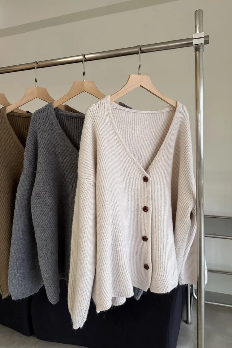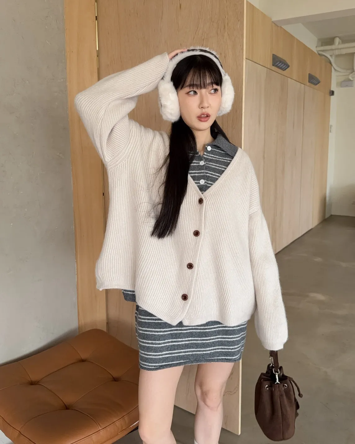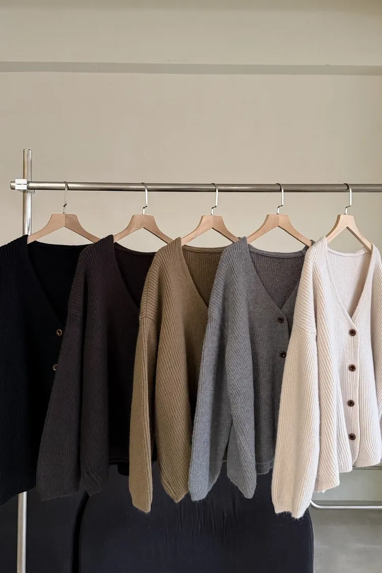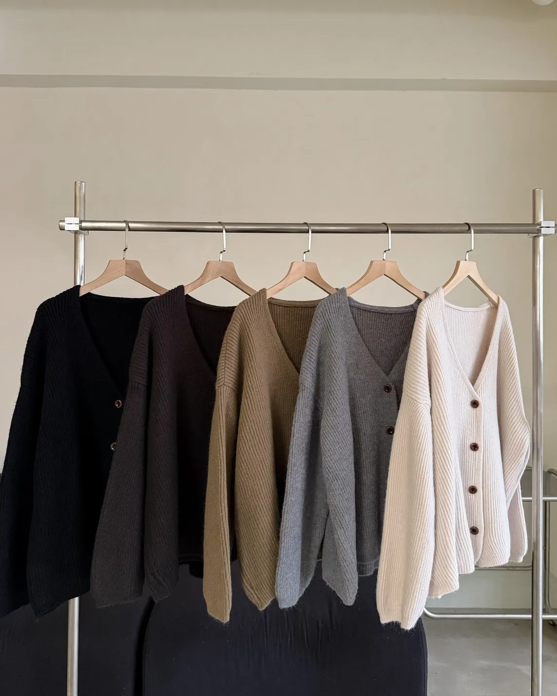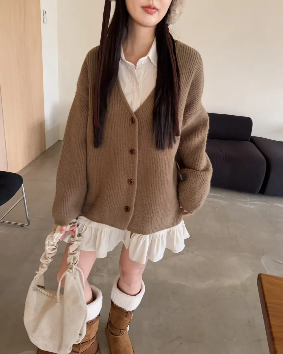 Y0018(五色)木紋紐扣針織上衣/外套(米白/淺咖啡/深咖啡/灰/黑)