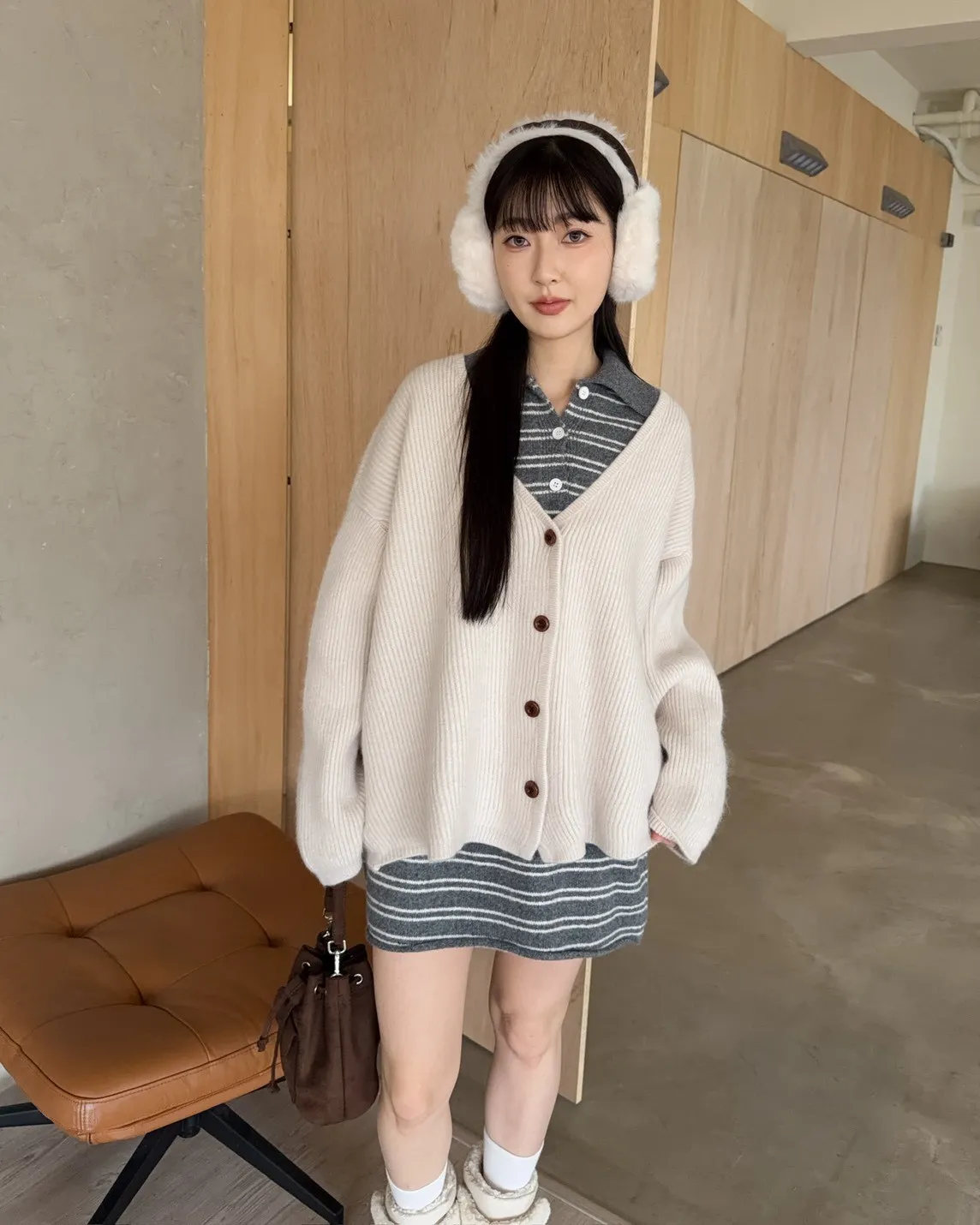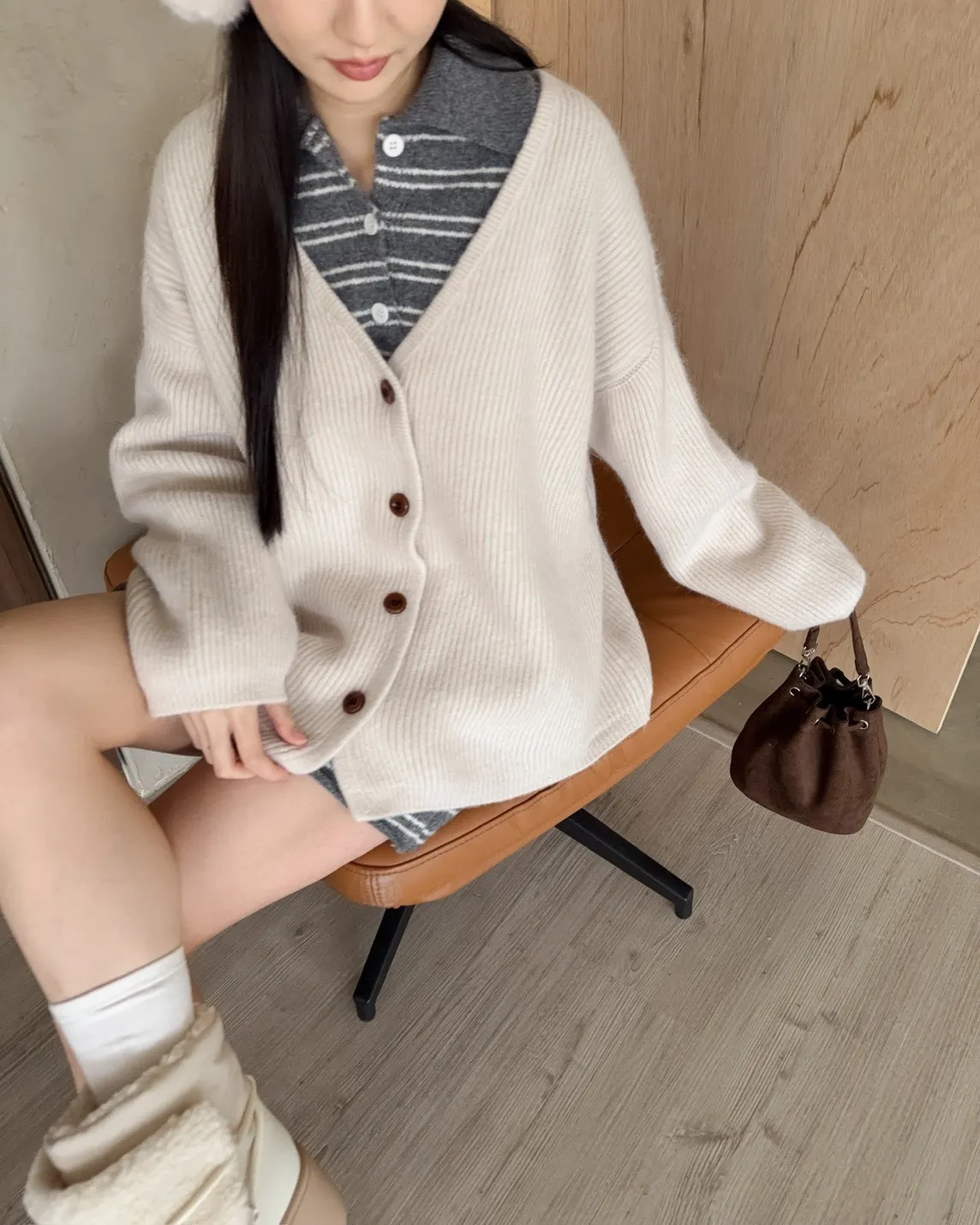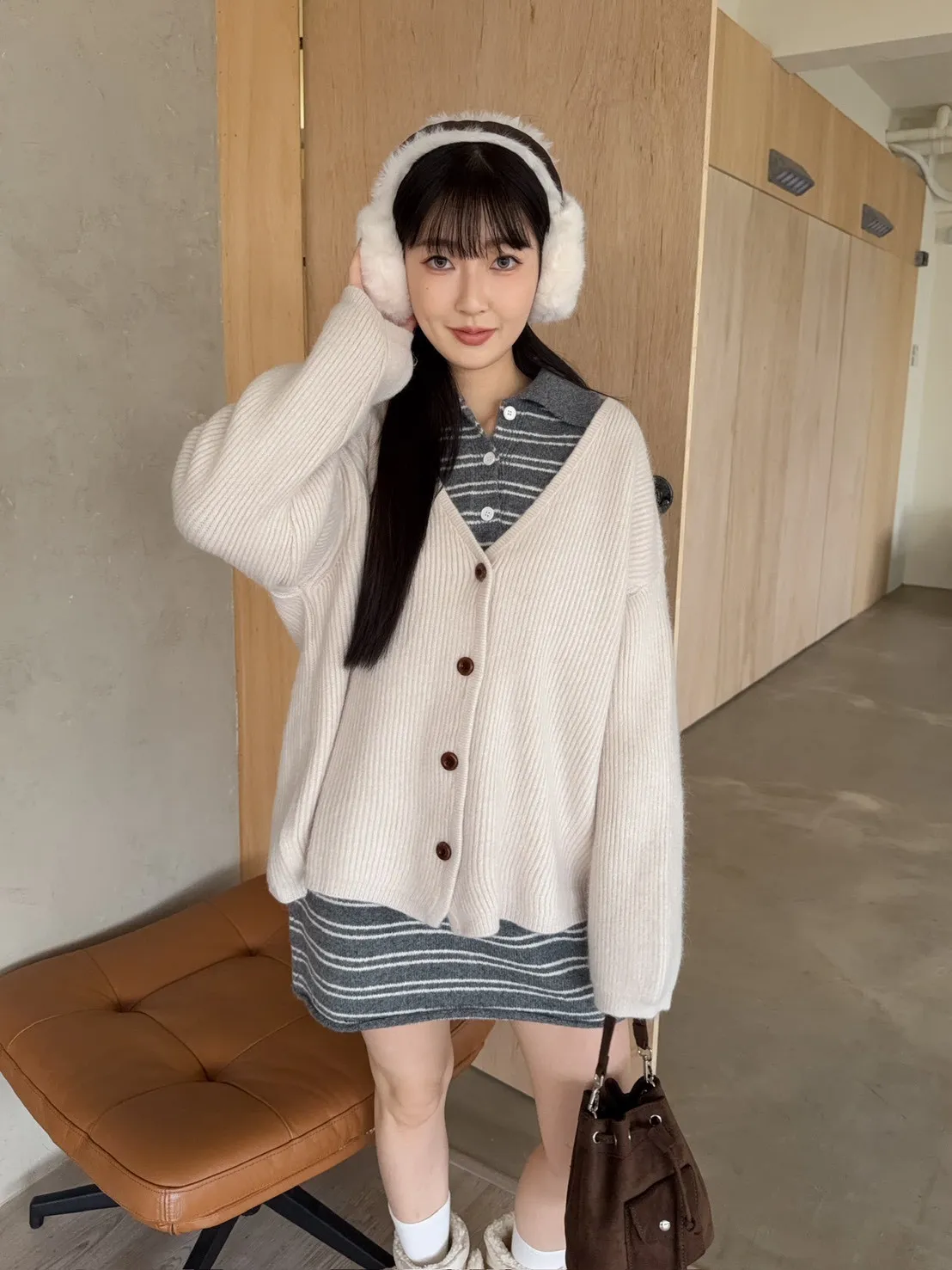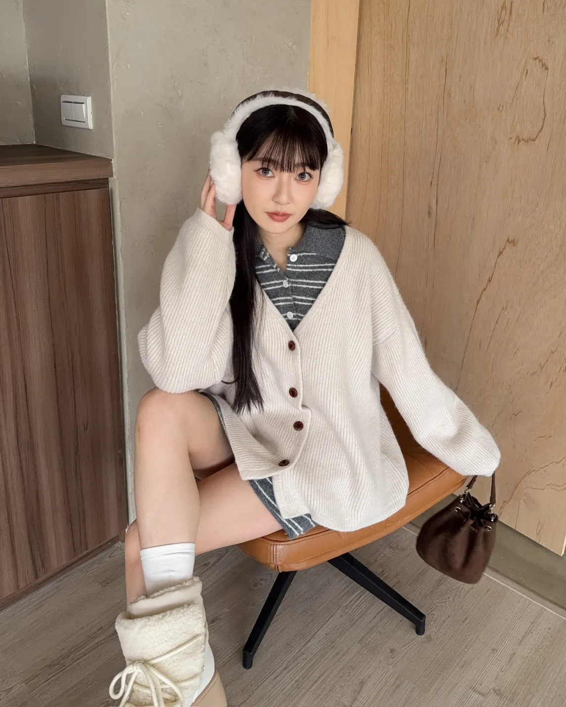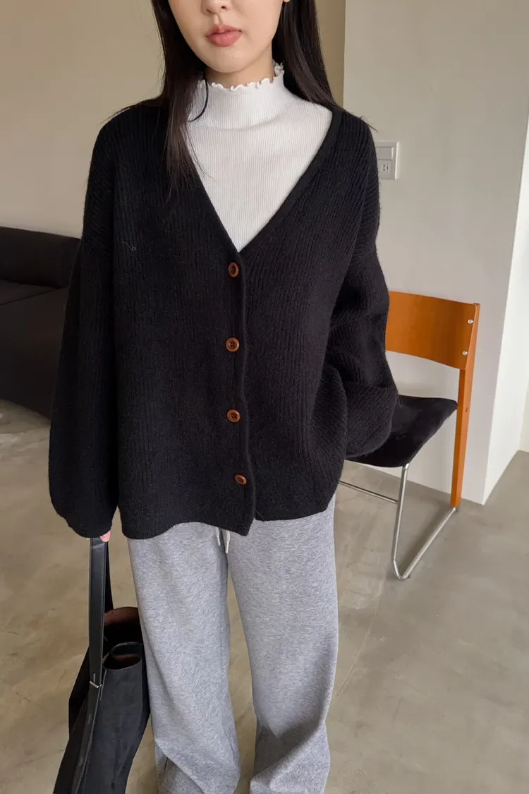 Y0018(五色)木紋紐扣針織上衣/外套(米白/淺咖啡/深咖啡/灰/黑)