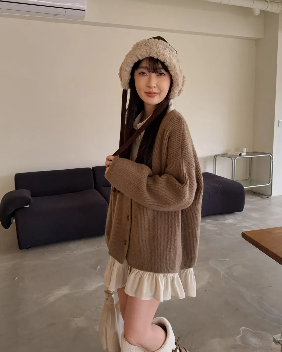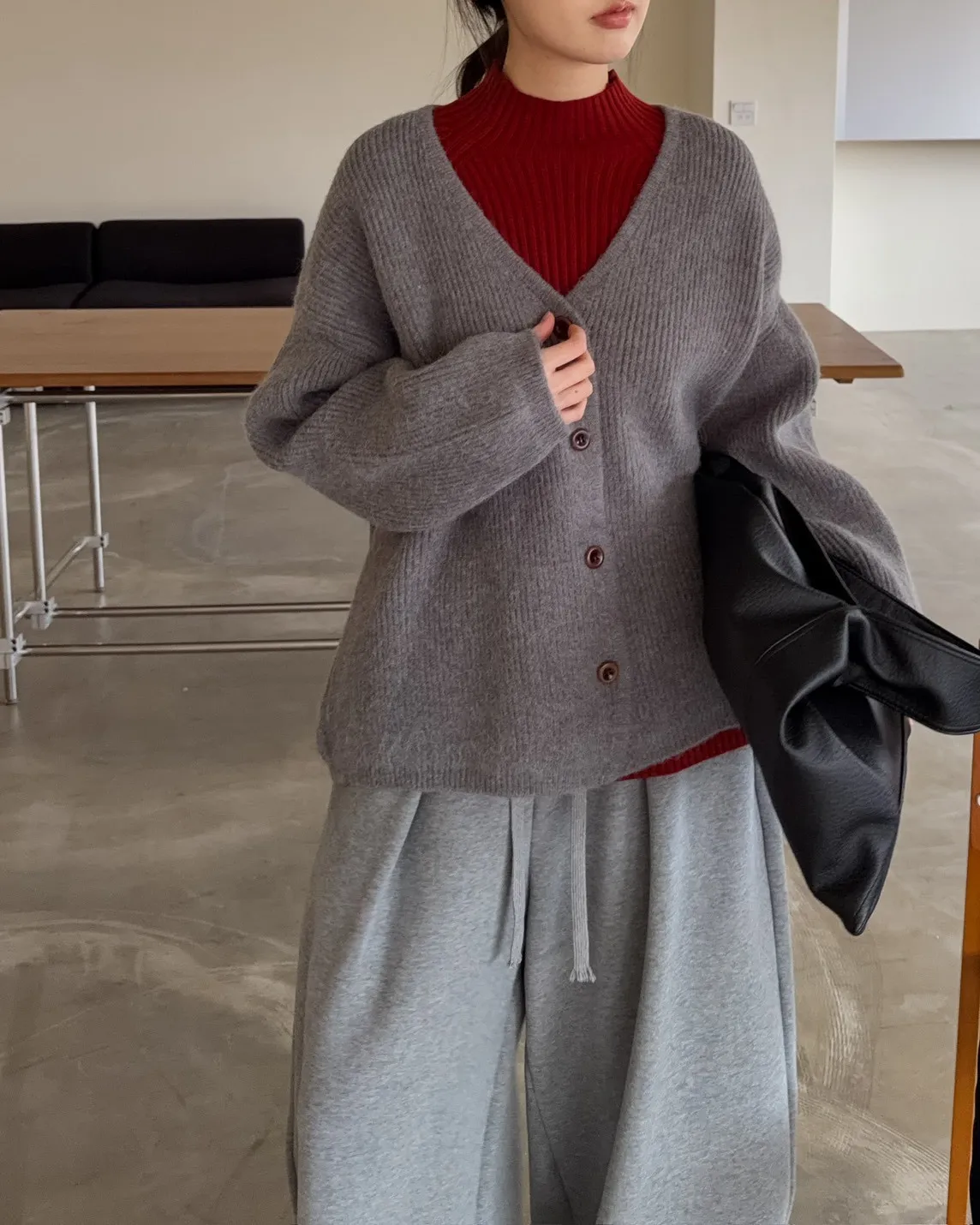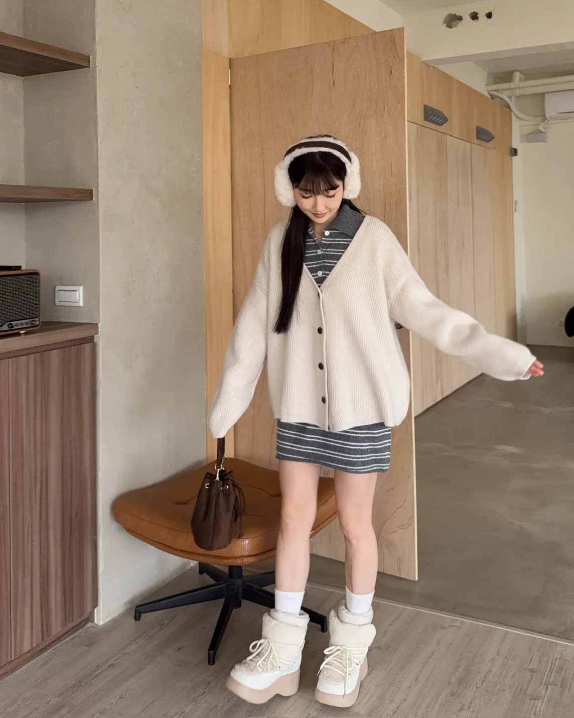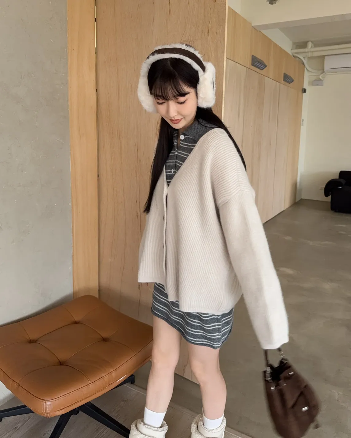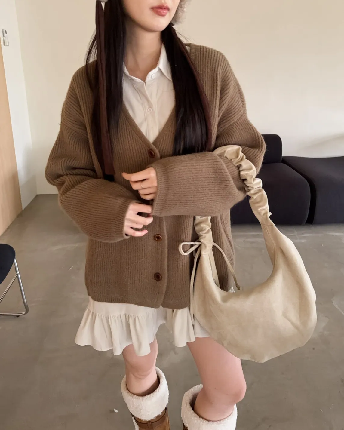 Y0018(五色)木紋紐扣針織上衣/外套(米白/淺咖啡/深咖啡/灰/黑)