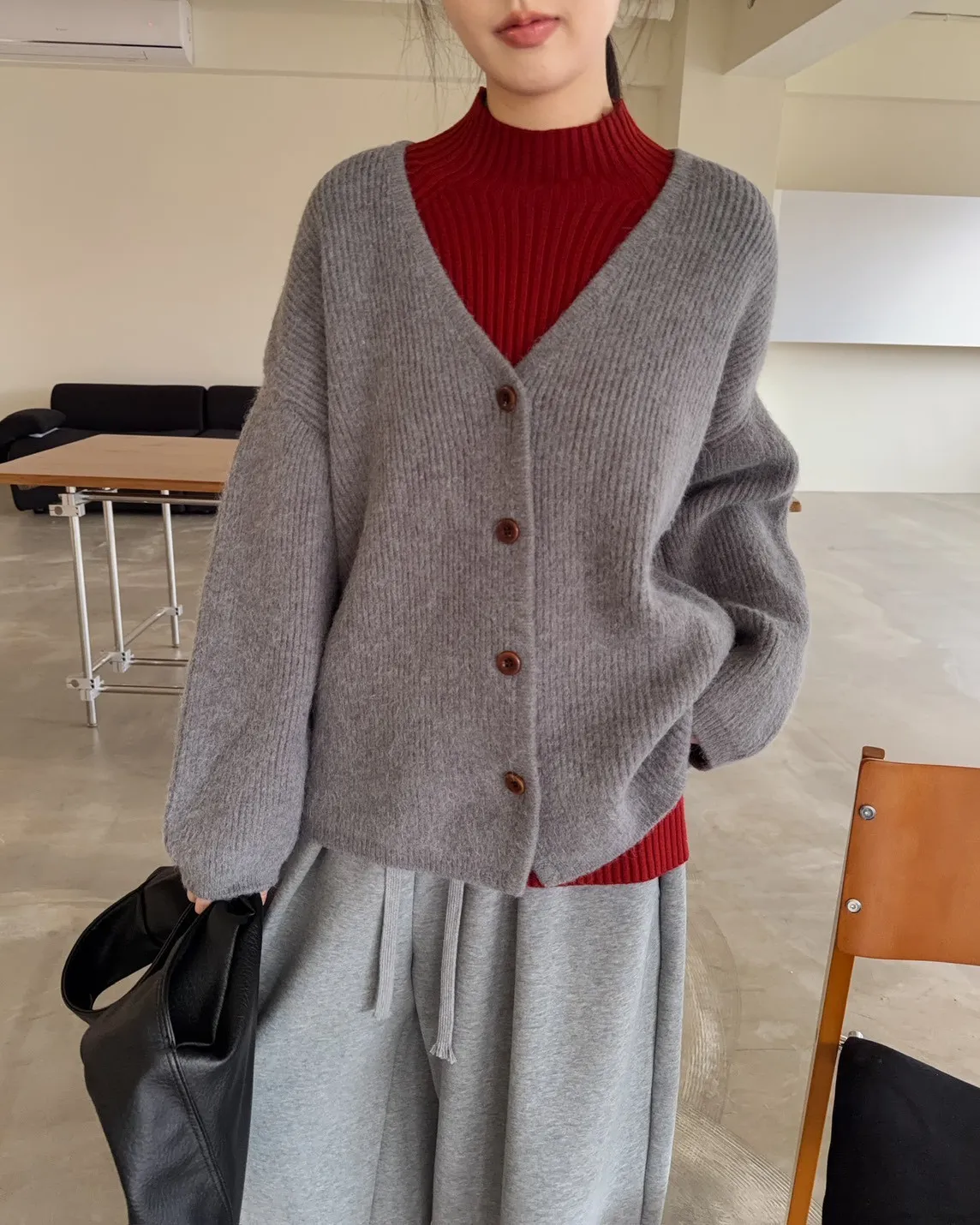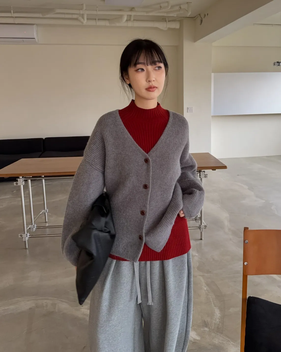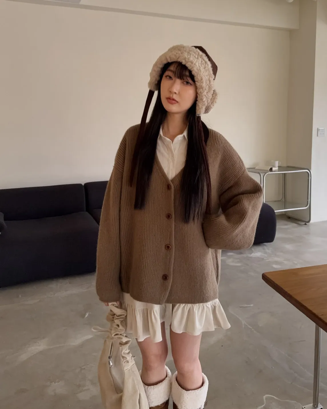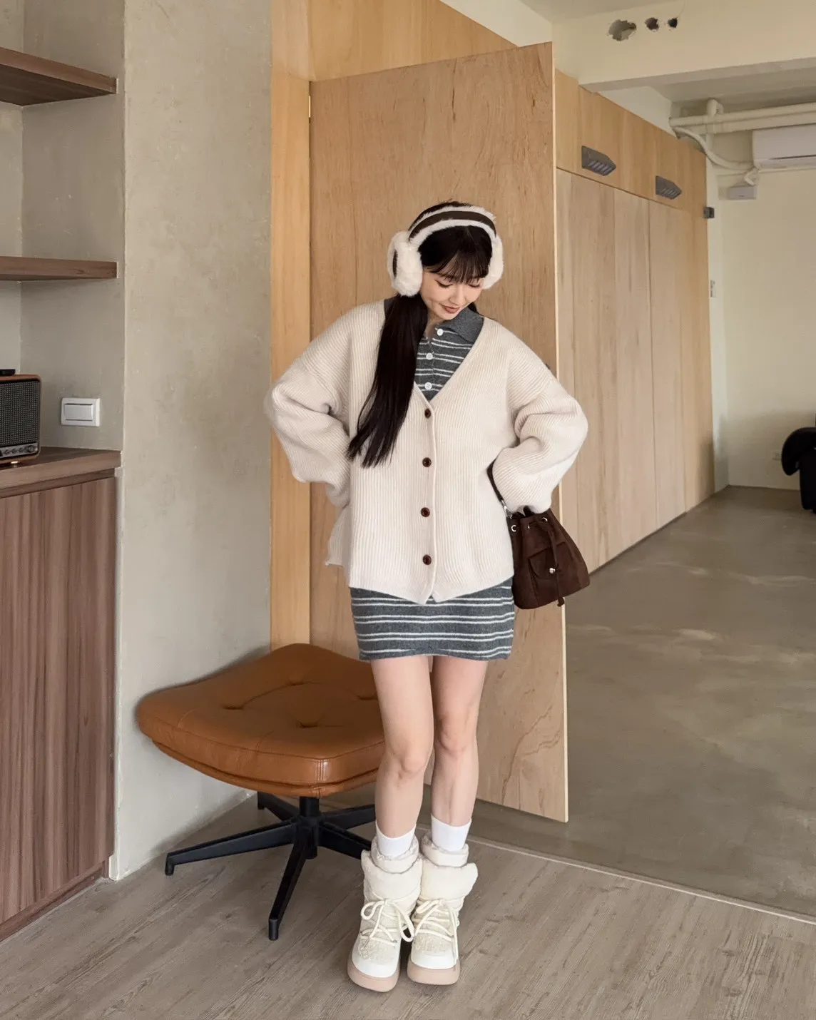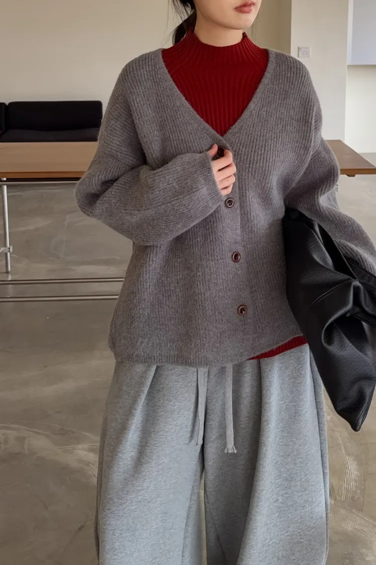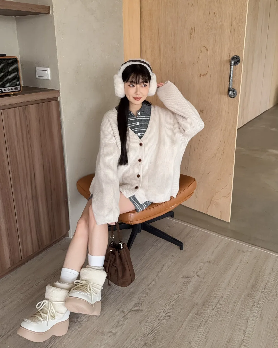 Y0018(五色)木紋紐扣針織上衣/外套(米白/淺咖啡/深咖啡/灰/黑)
