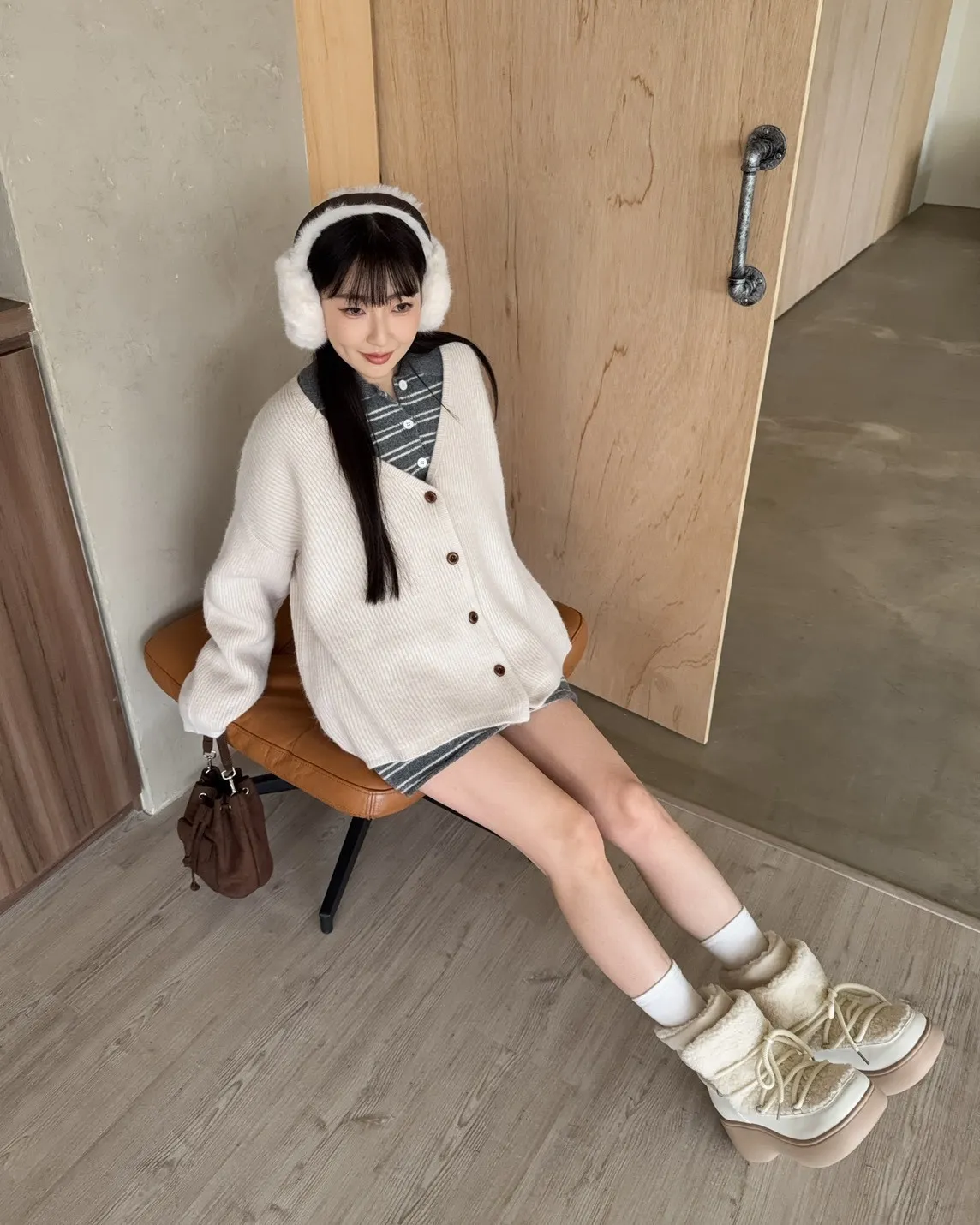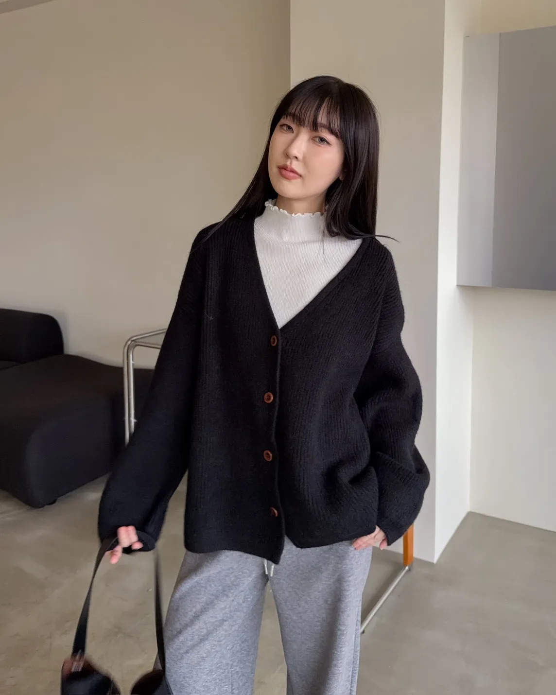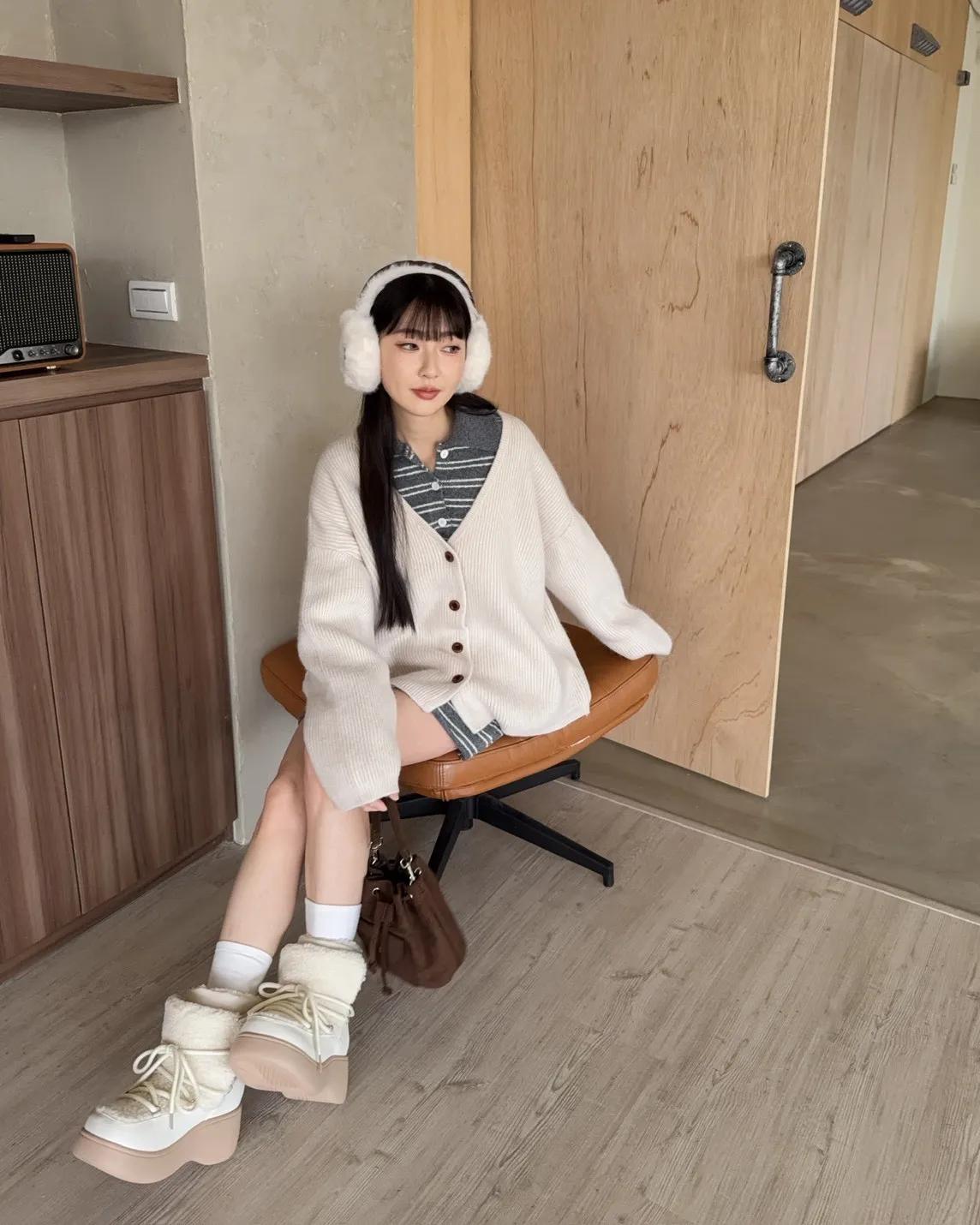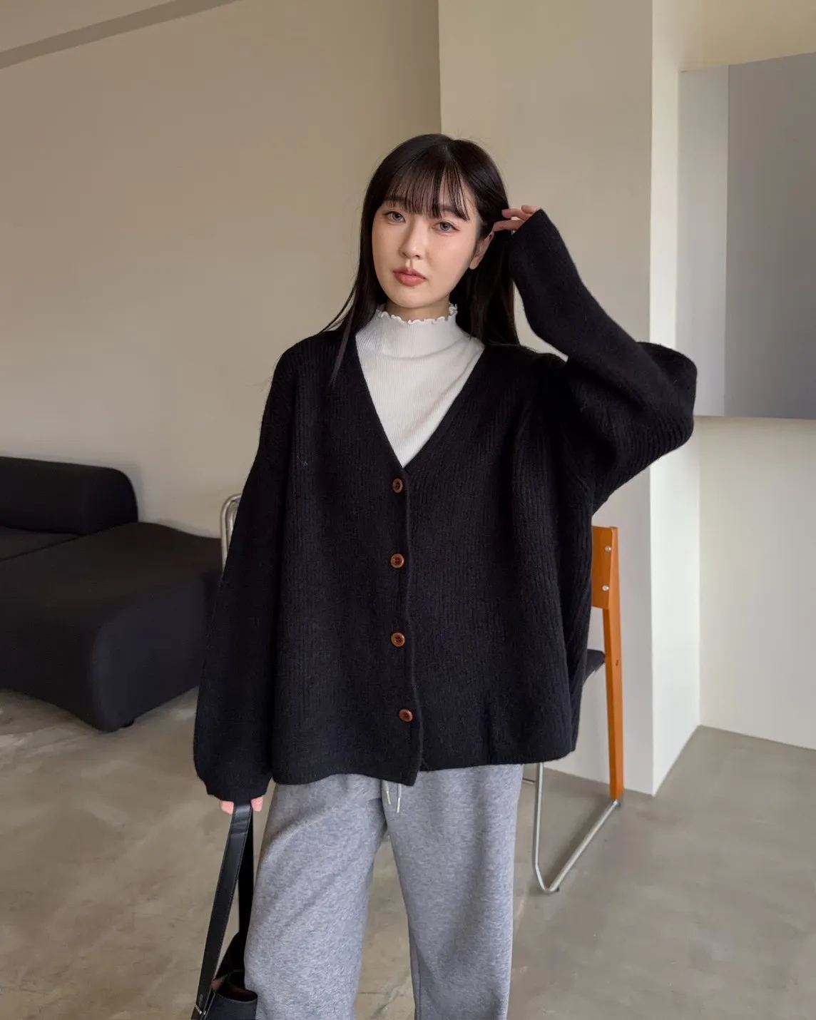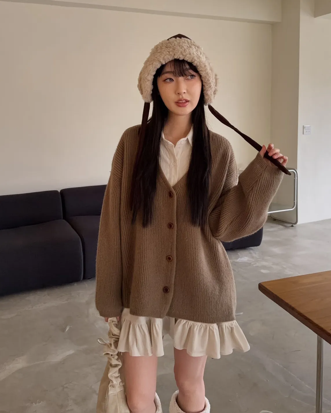 Y0018(五色)木紋紐扣針織上衣/外套(米白/淺咖啡/深咖啡/灰/黑)
