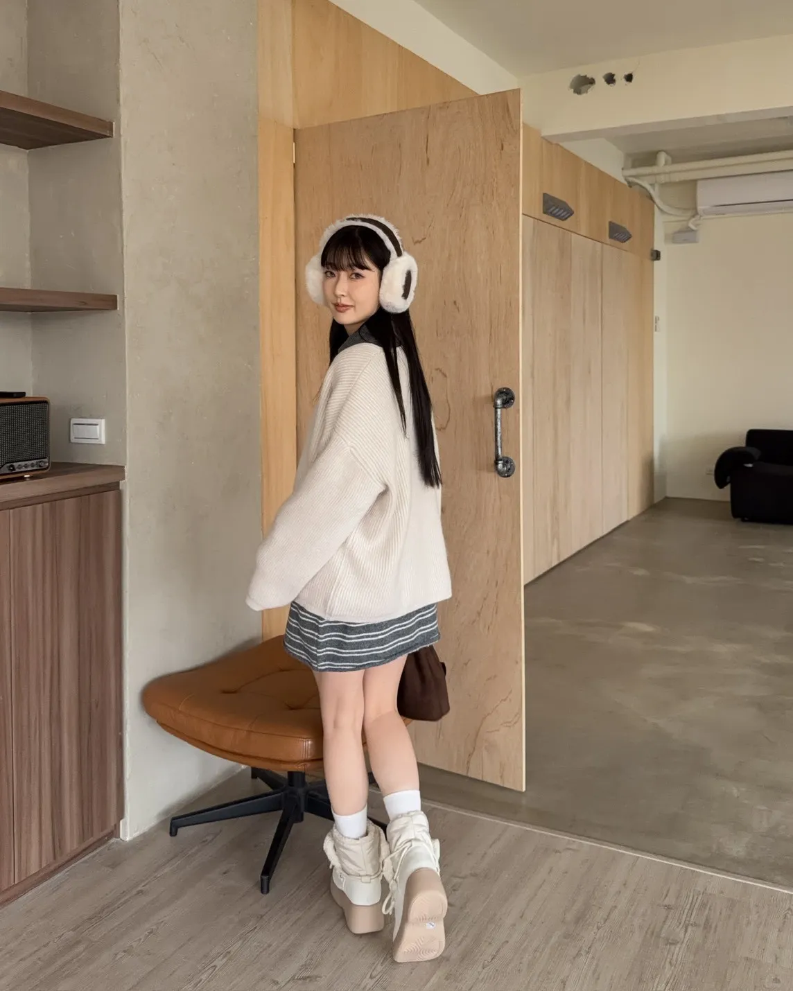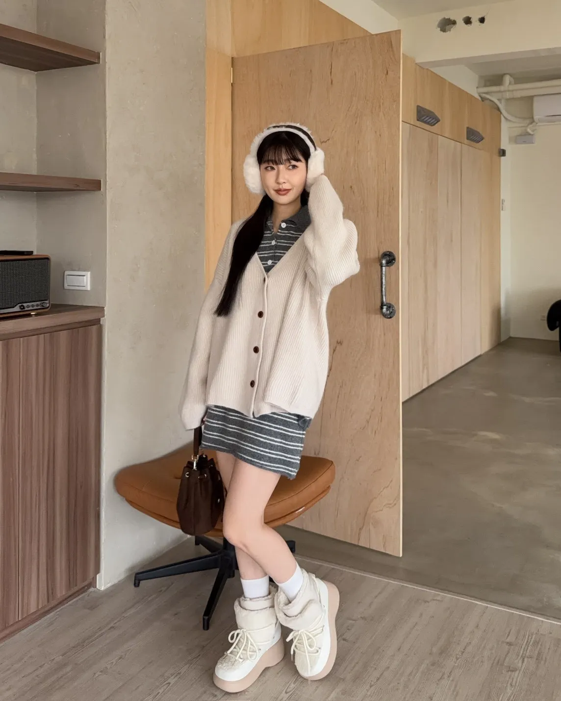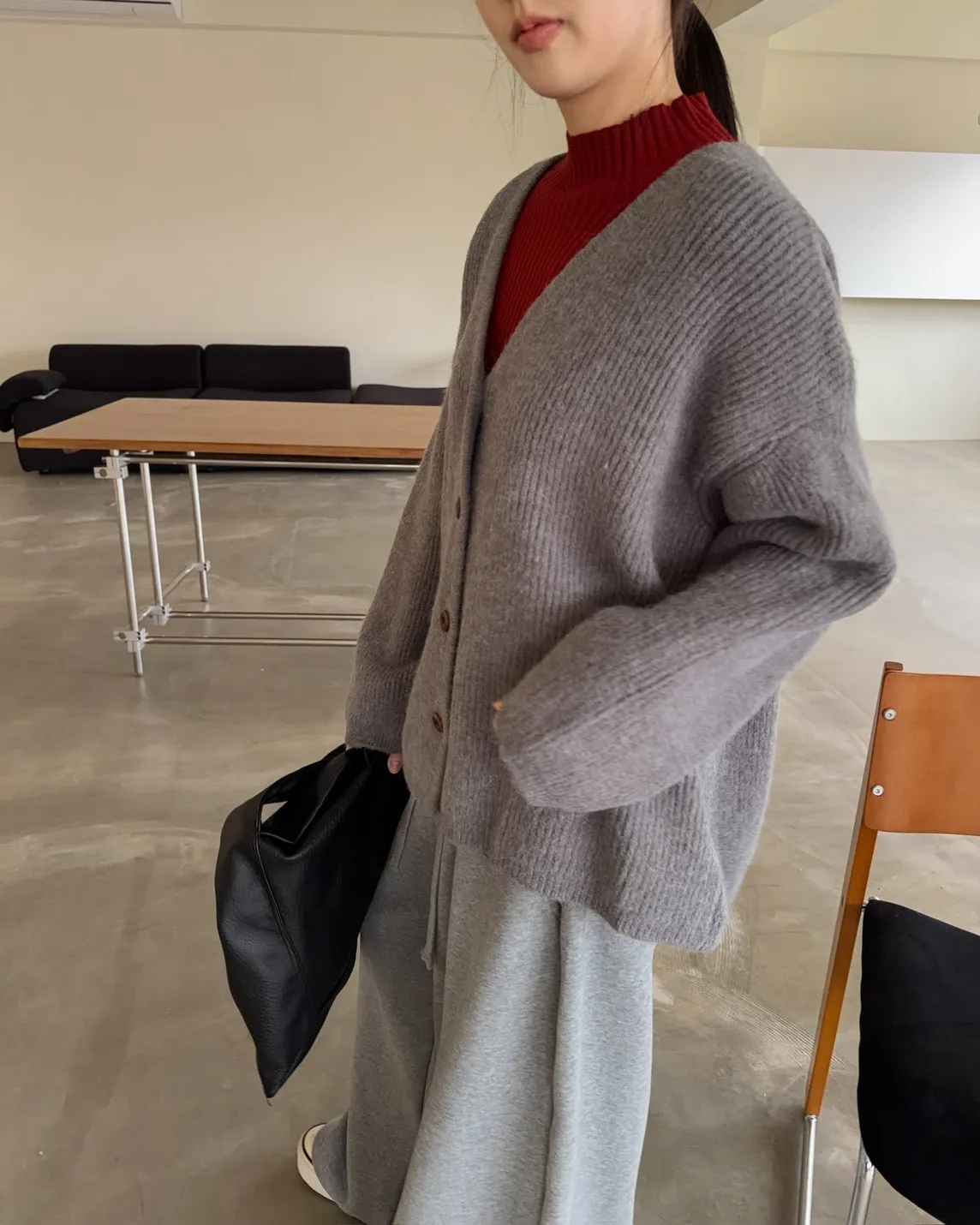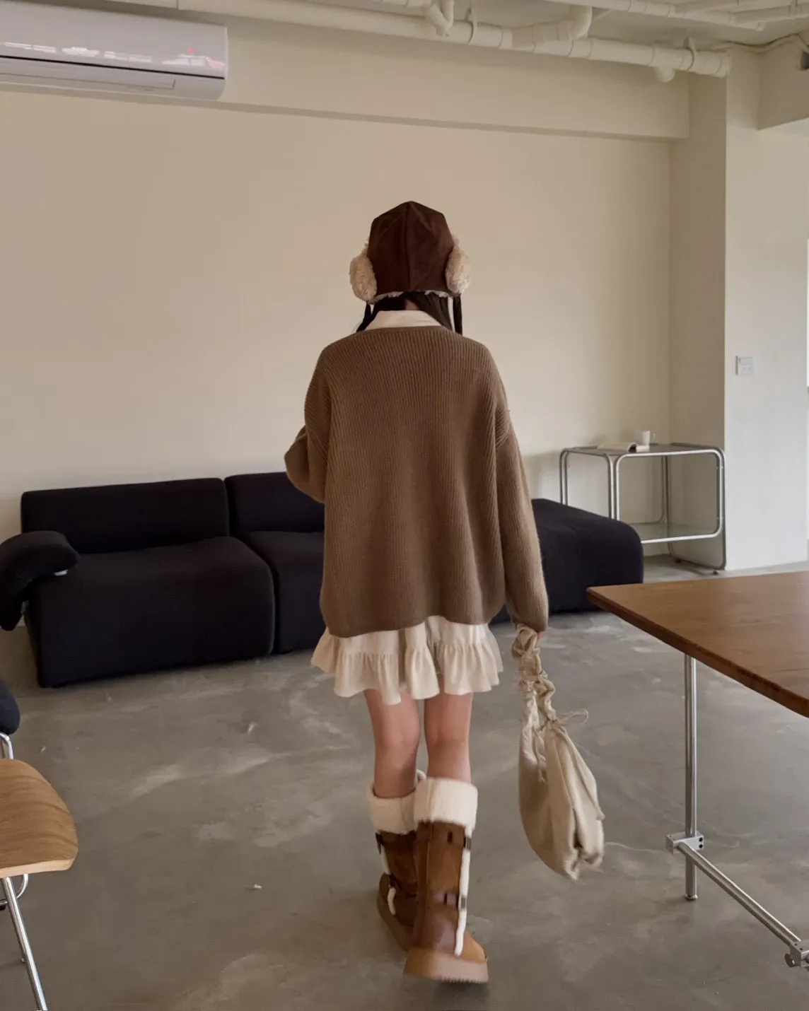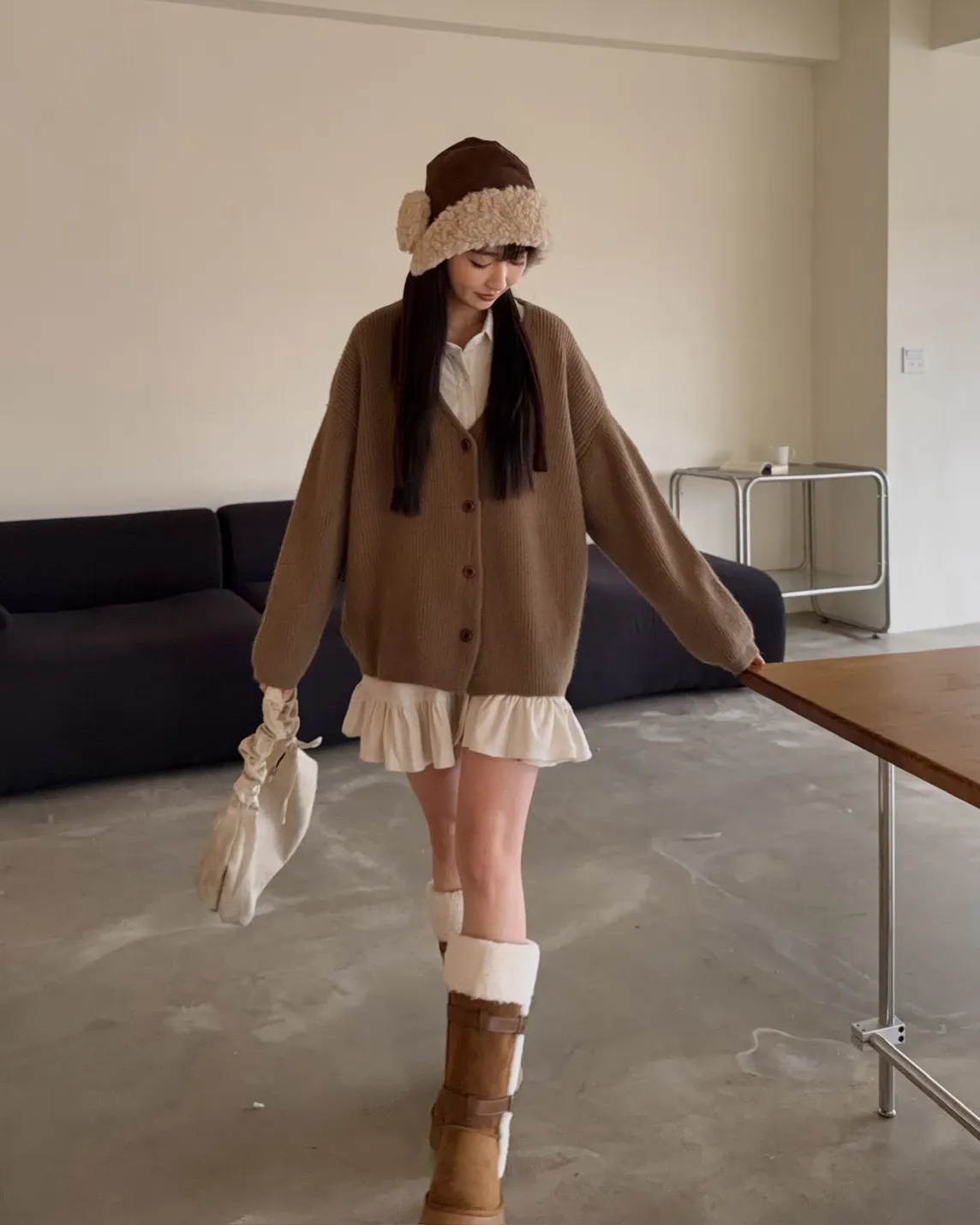 Y0018(五色)木紋紐扣針織上衣/外套(米白/淺咖啡/深咖啡/灰/黑)