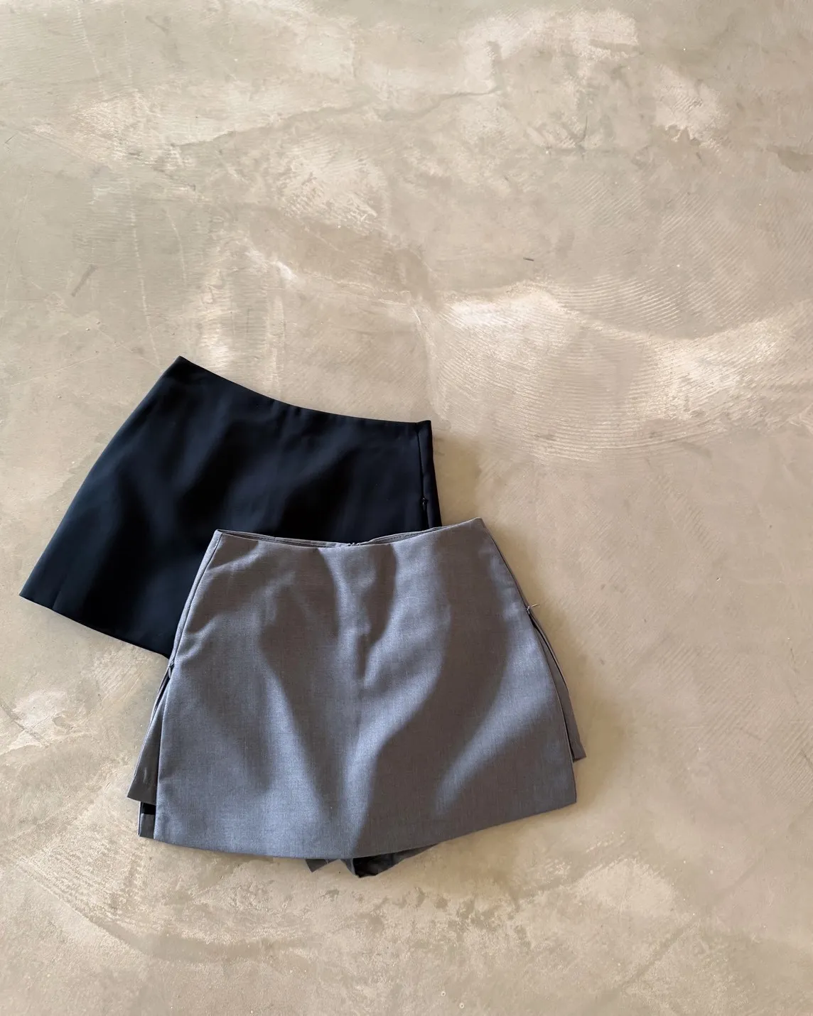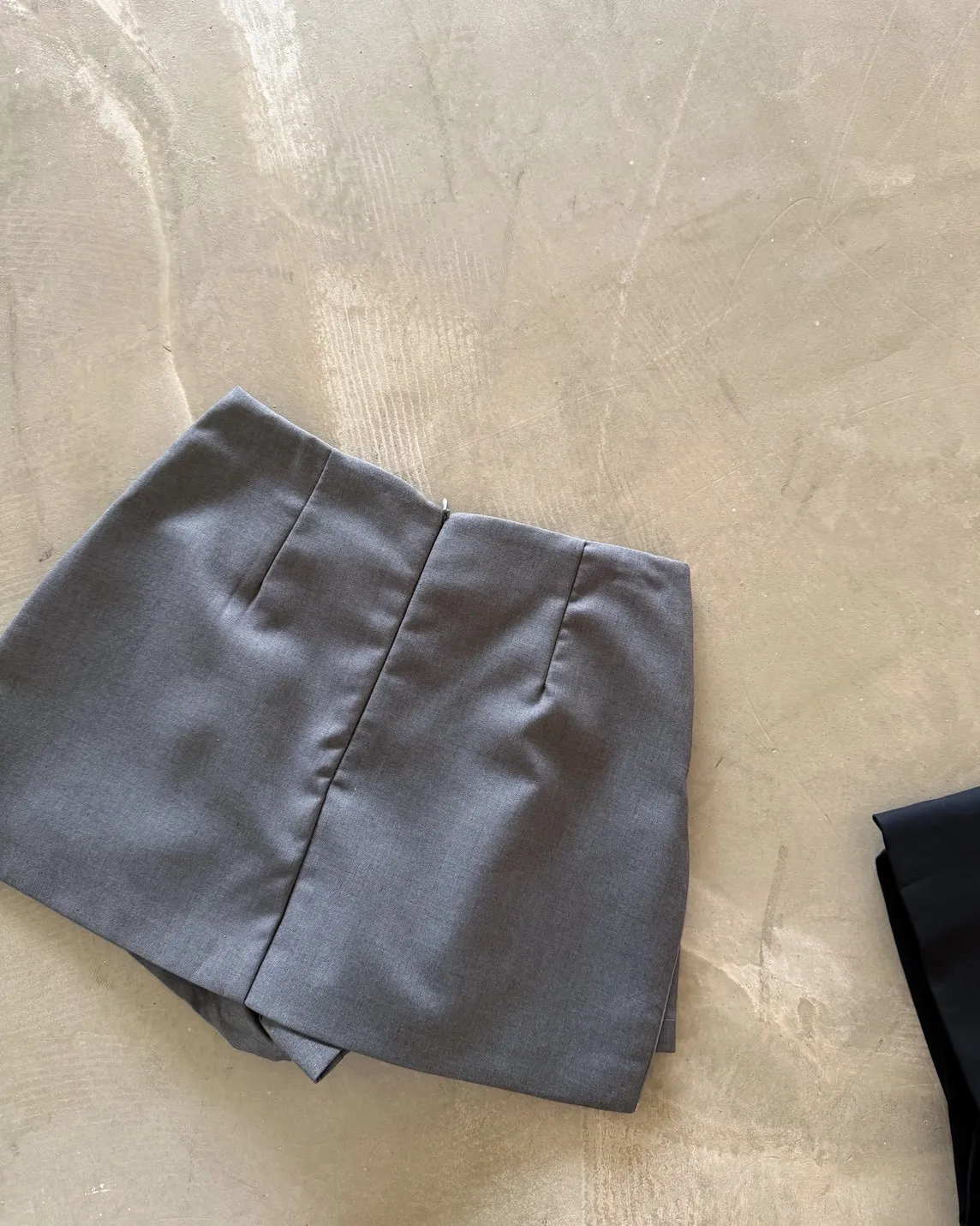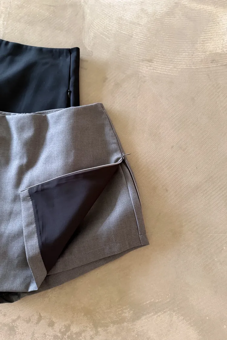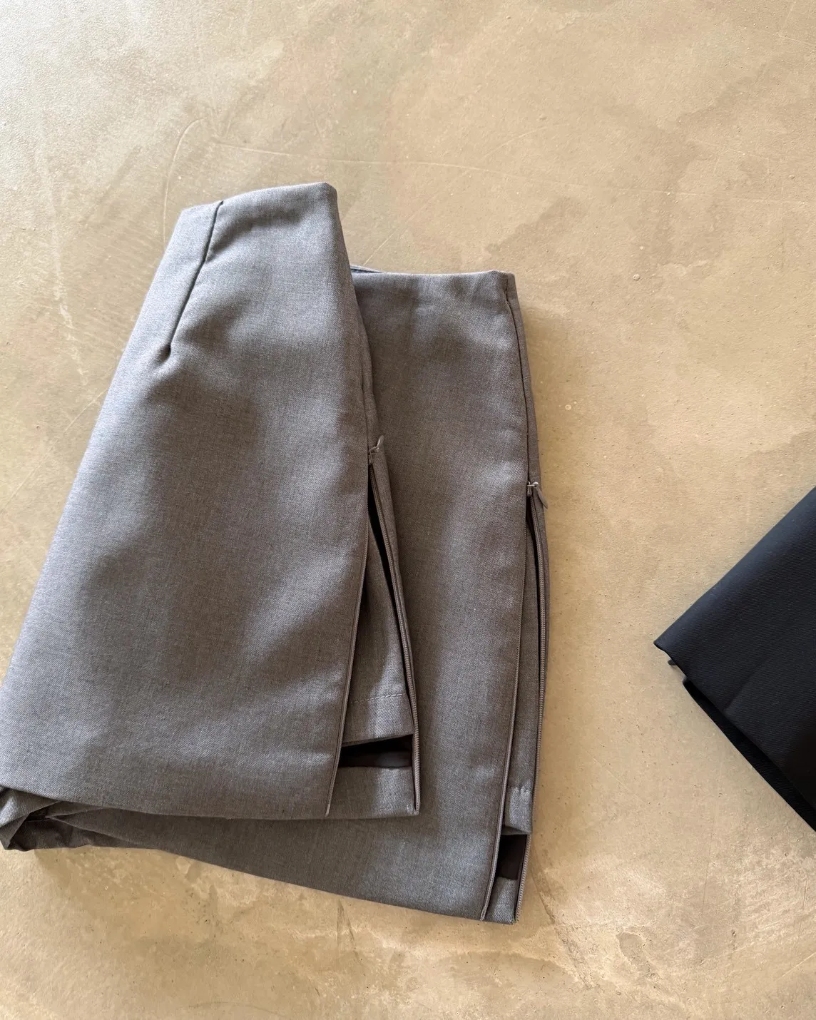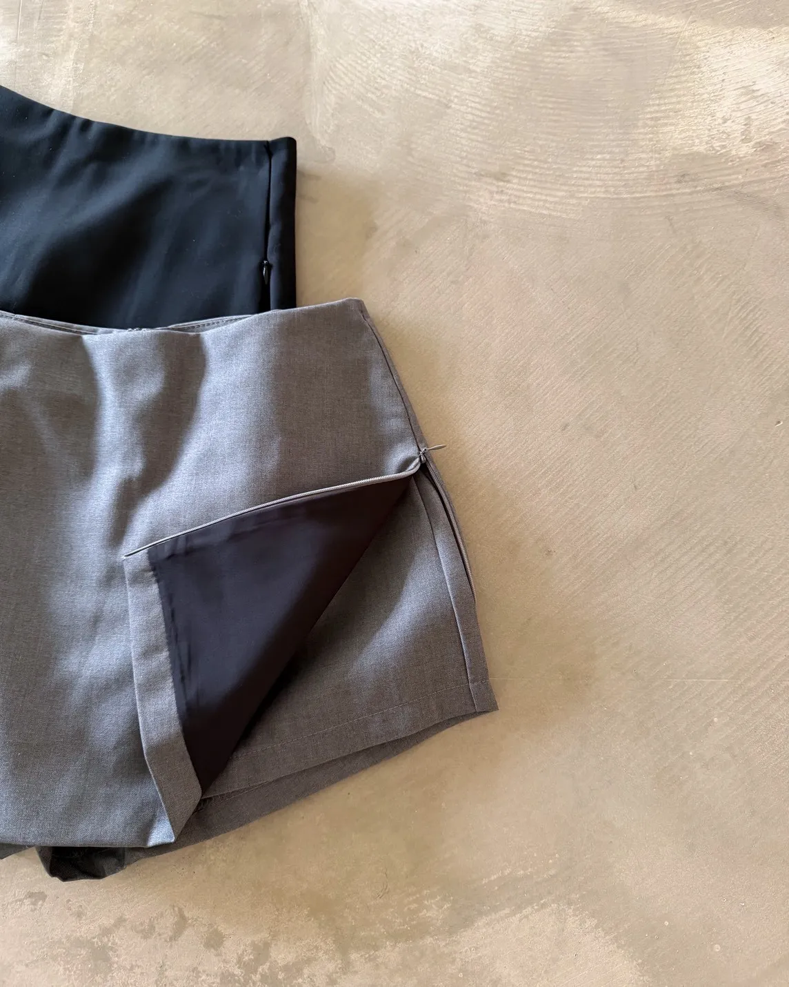 B0044兩側拉鍊開衩西裝褲裙(灰/黑)