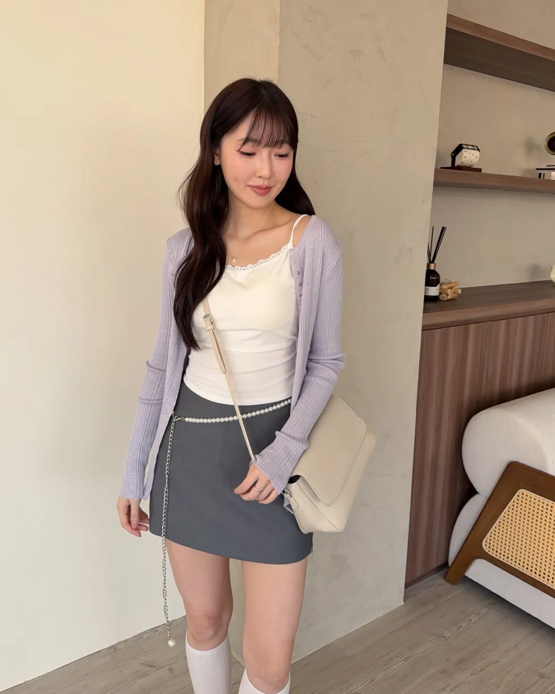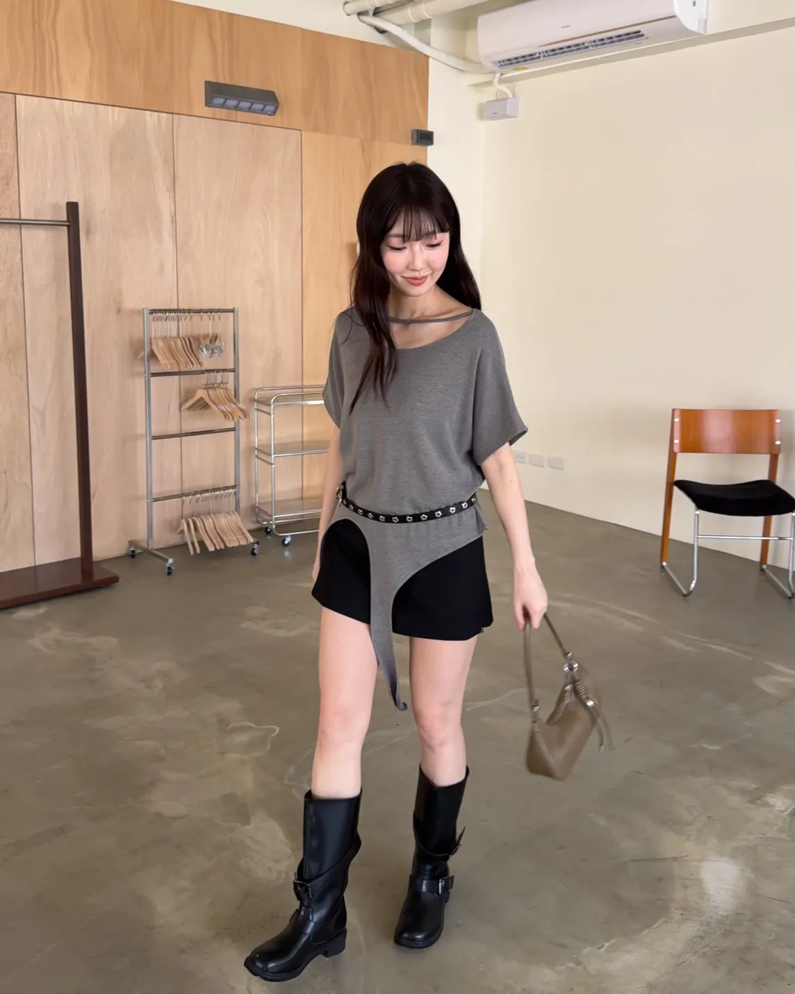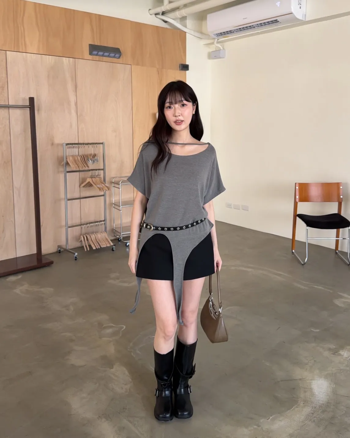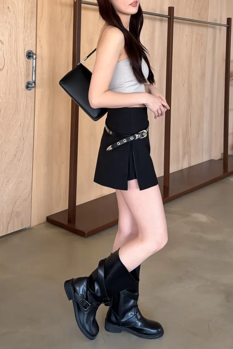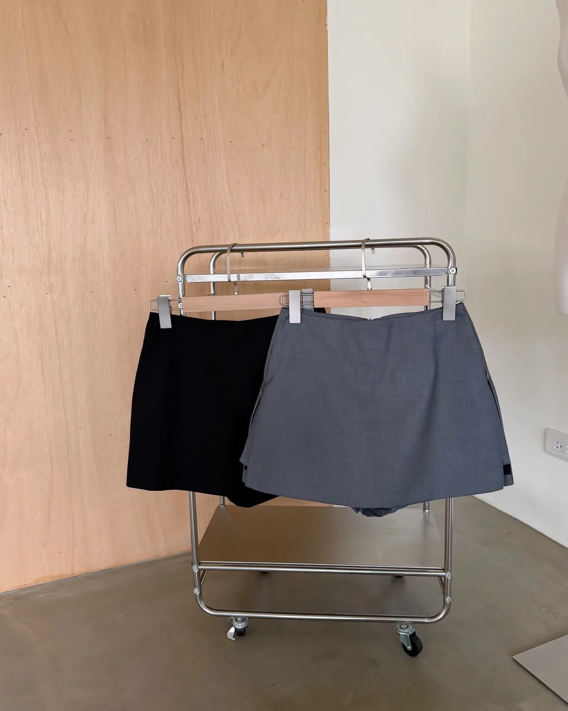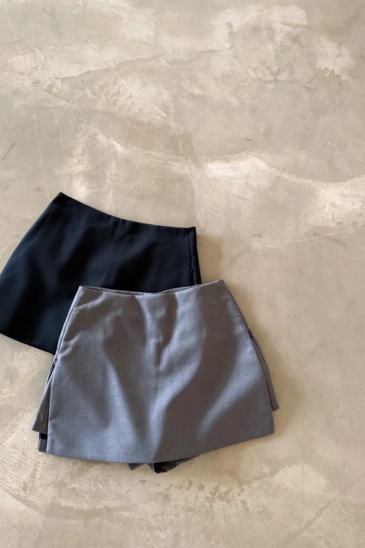 B0044兩側拉鍊開衩西裝褲裙(灰/黑)