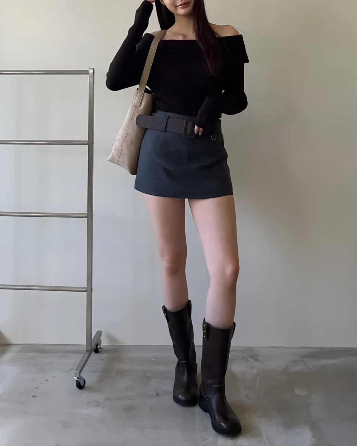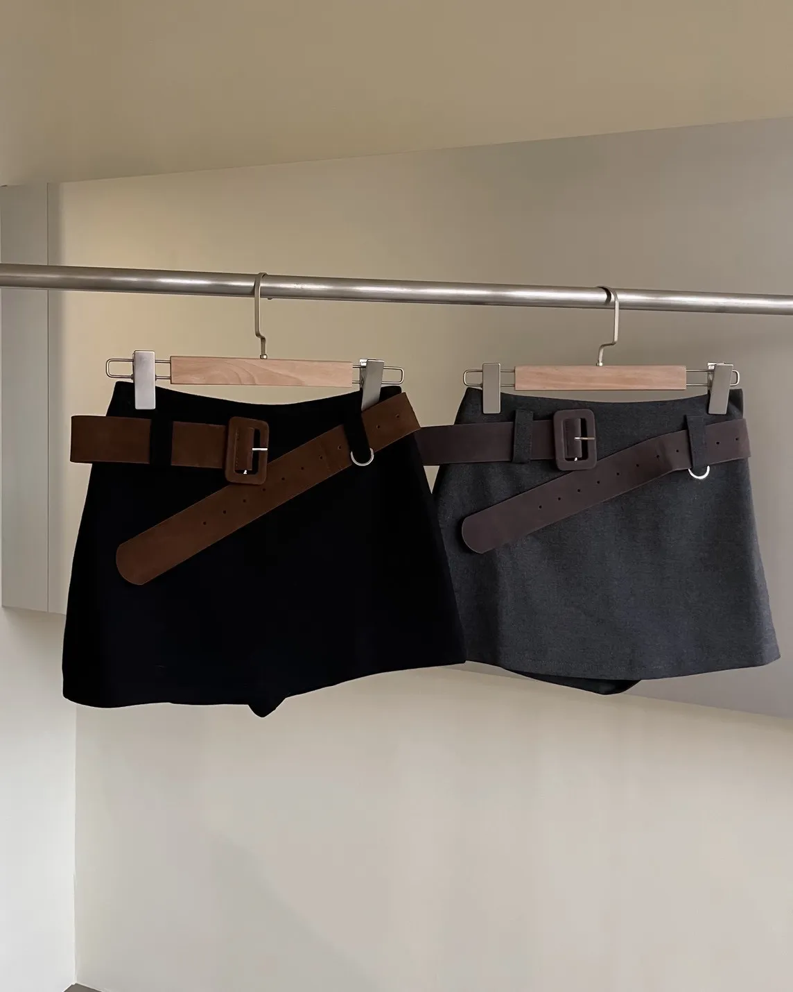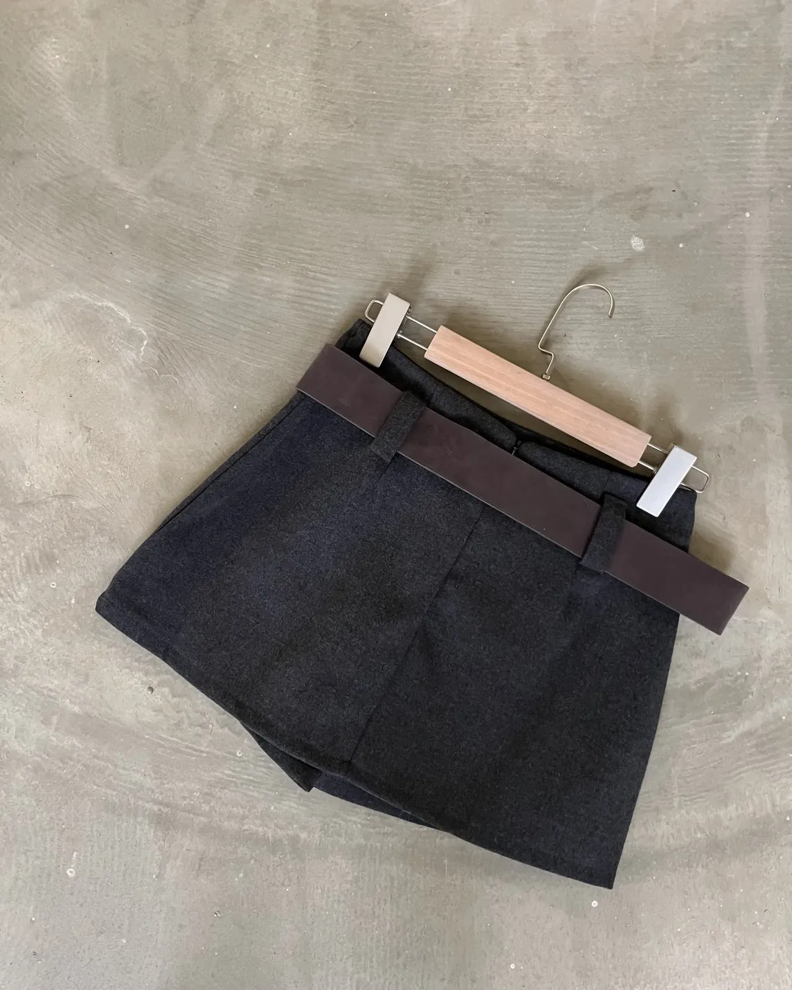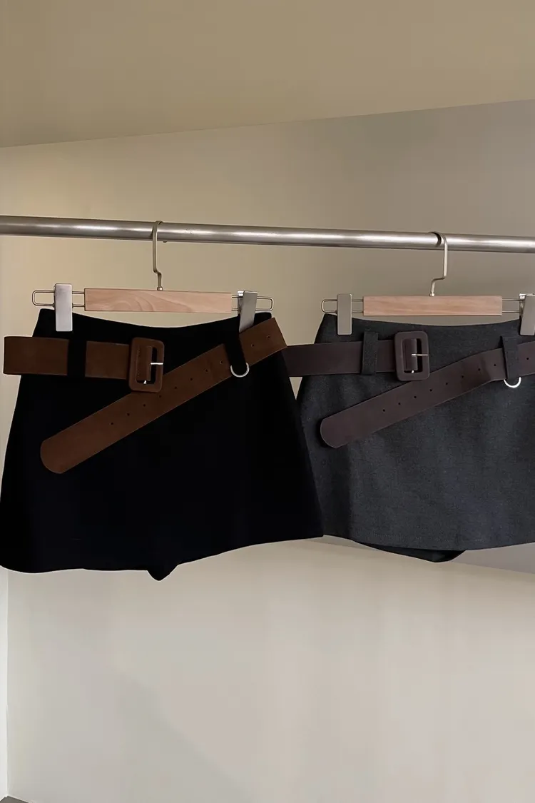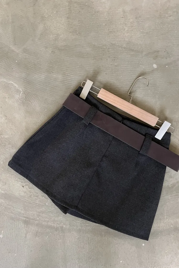 版型正常 附麂皮寬皮帶 毛呢布料 內有短褲(一樣毛呢布料) 無口袋