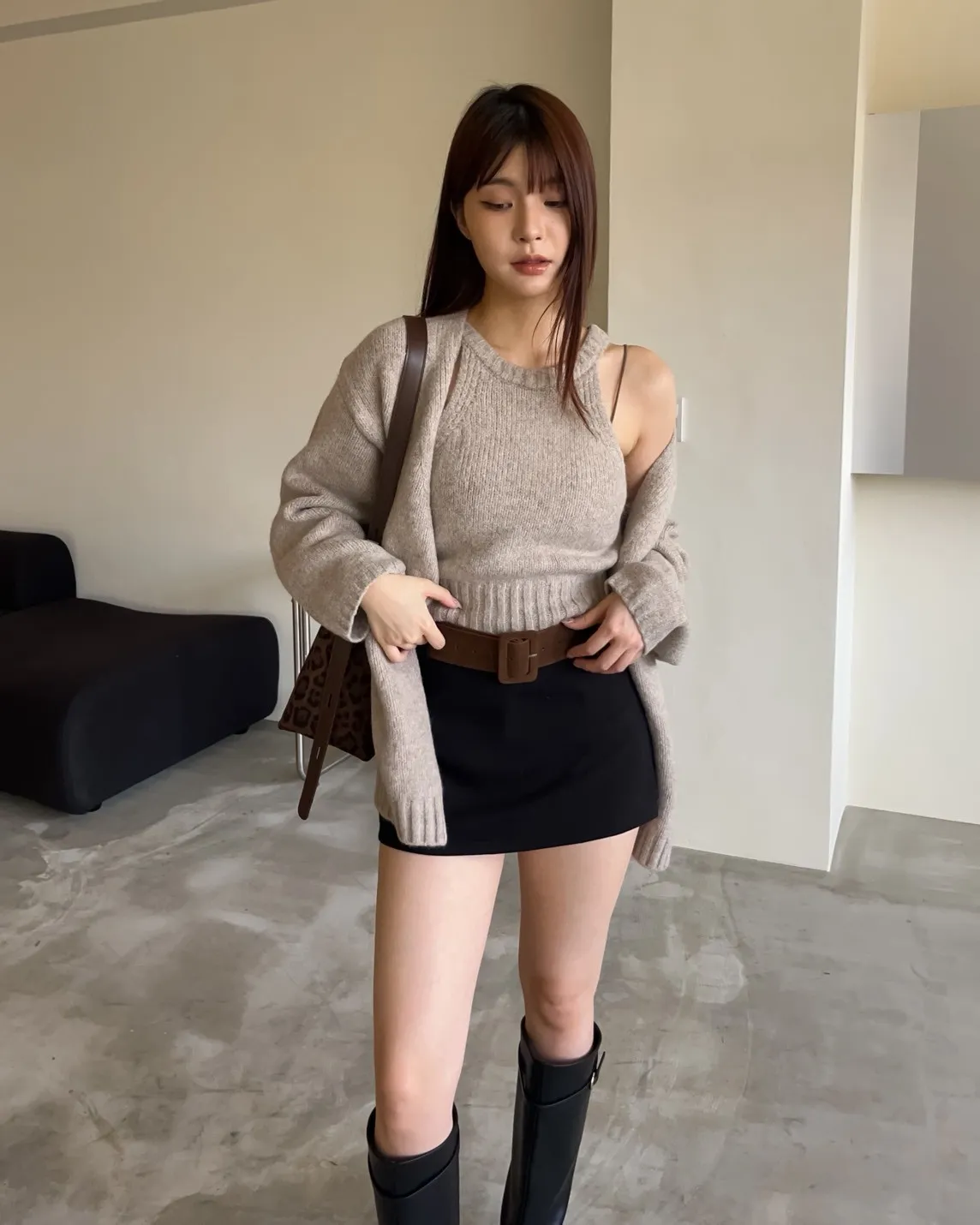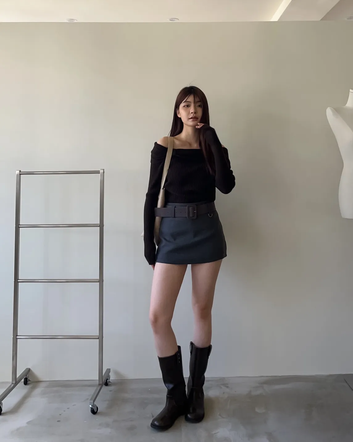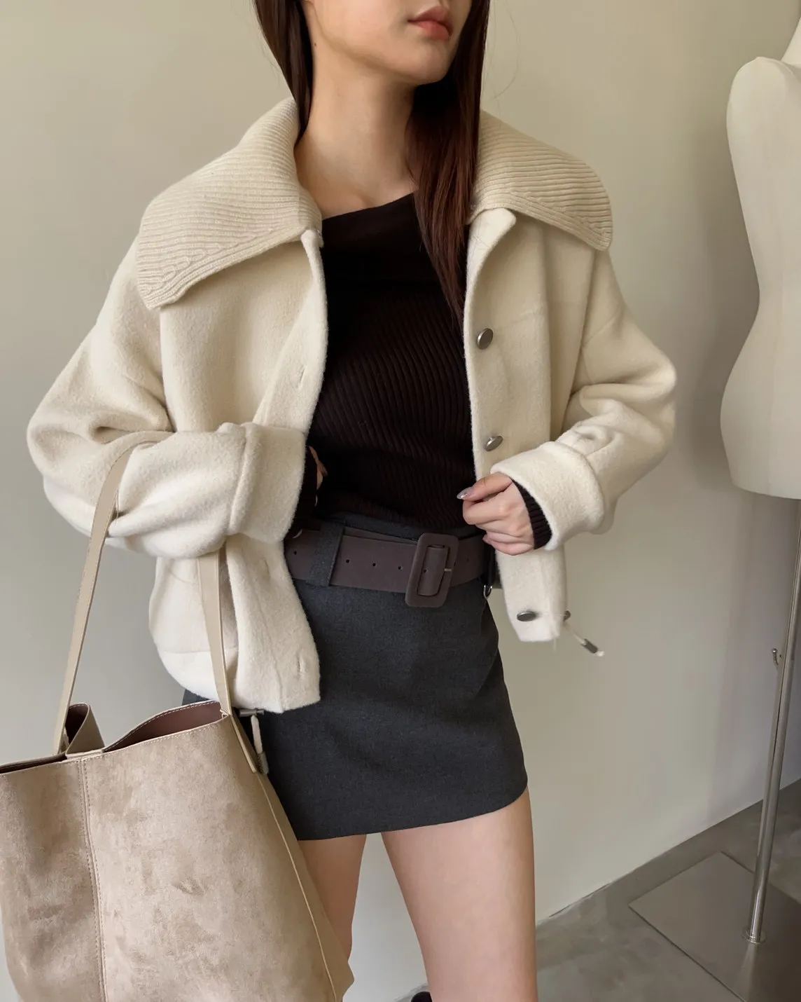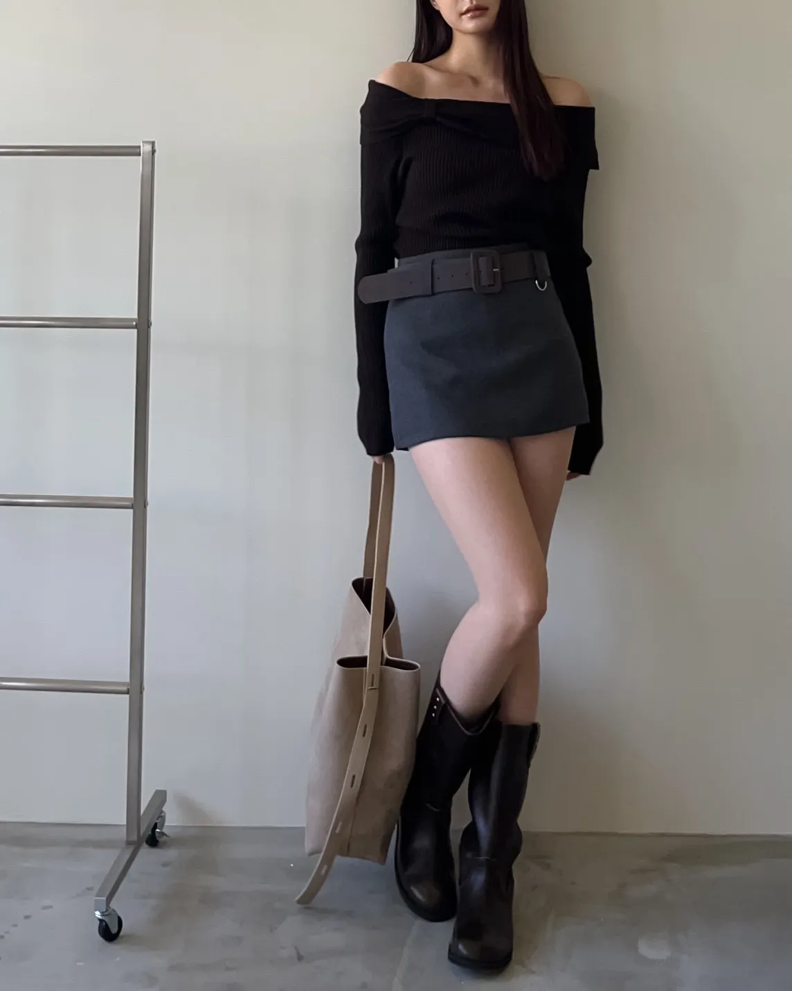 版型正常 附麂皮寬皮帶 毛呢布料 內有短褲(一樣毛呢布料) 無口袋