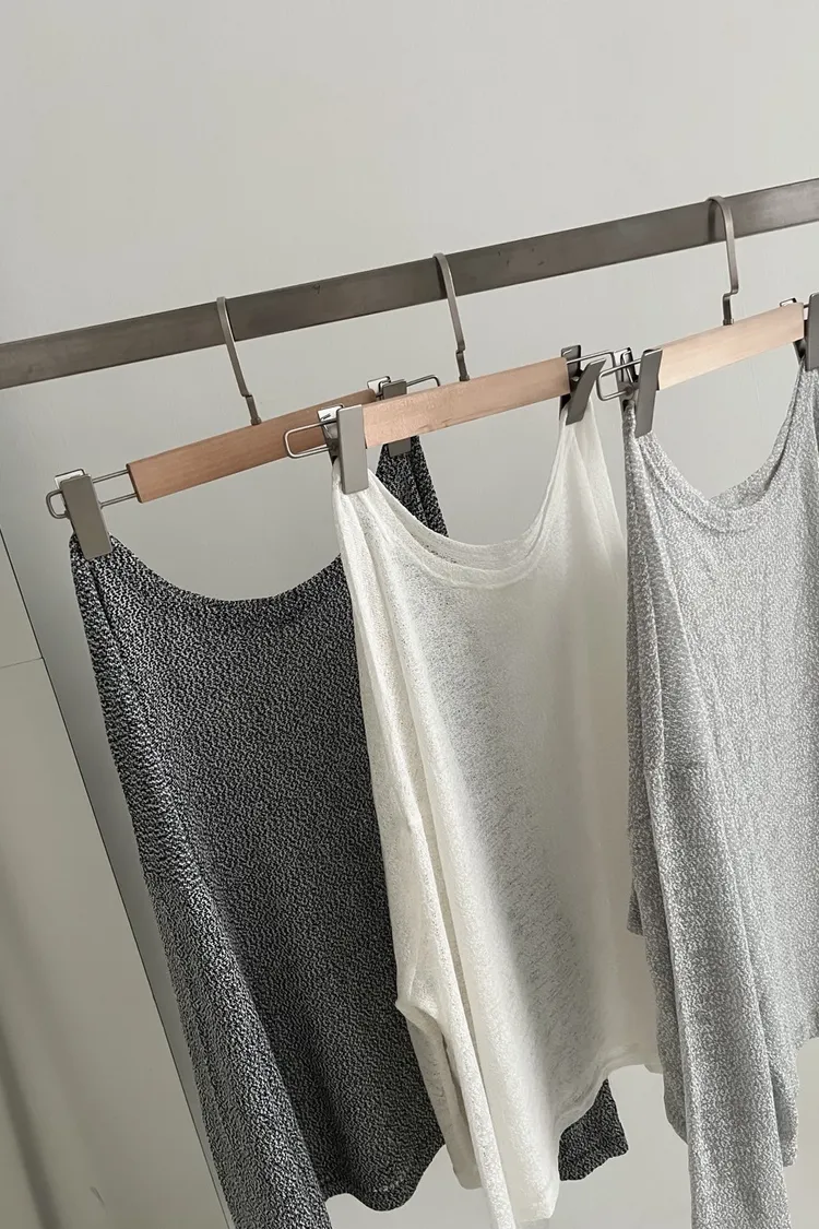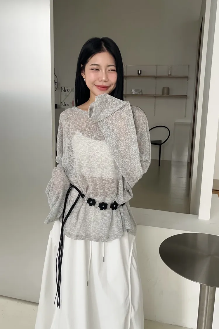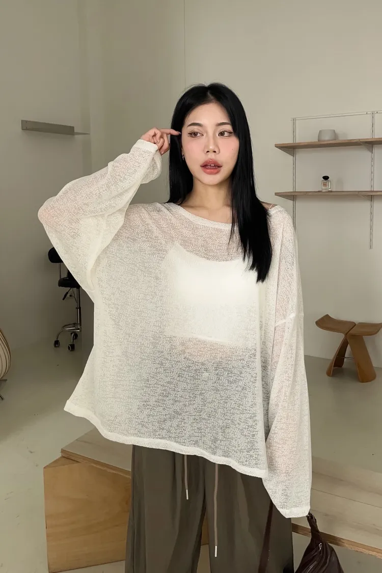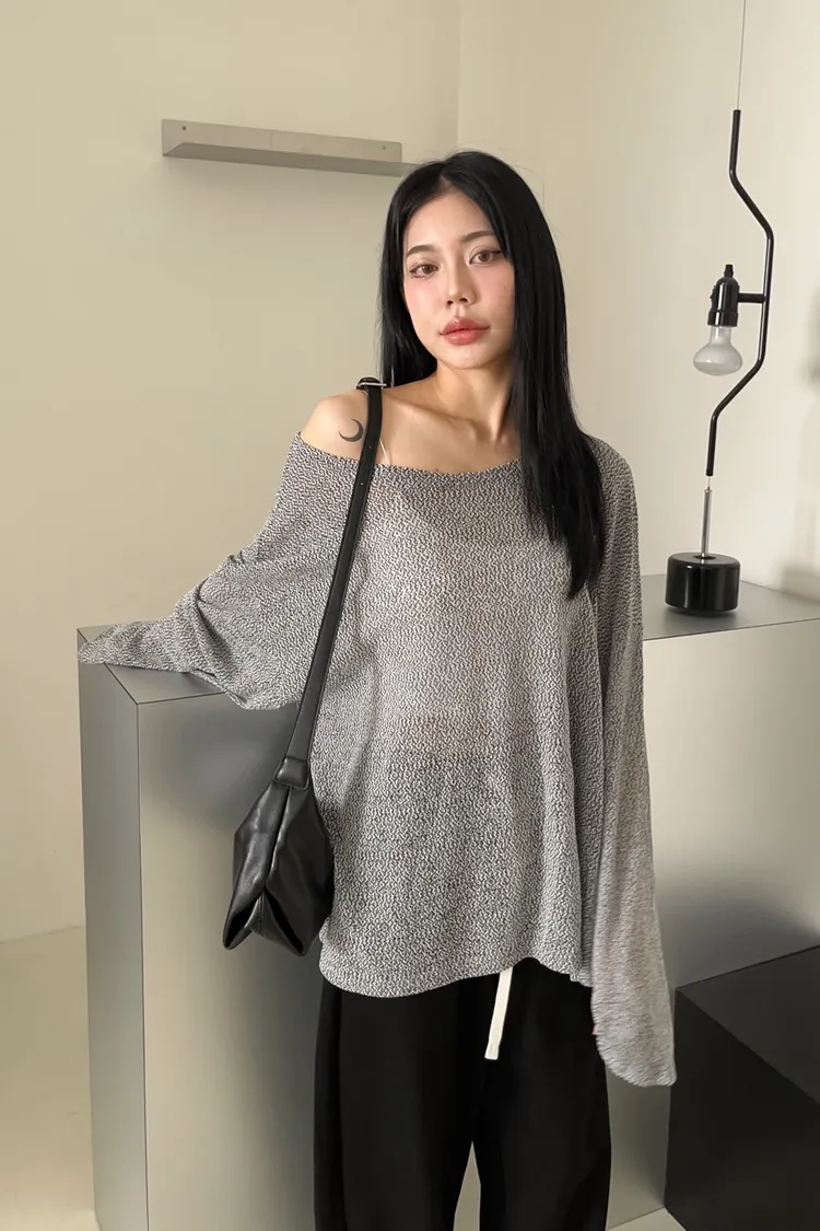 雪花雜訊紋路 彈性圓領 寬鬆落肩 微透膚