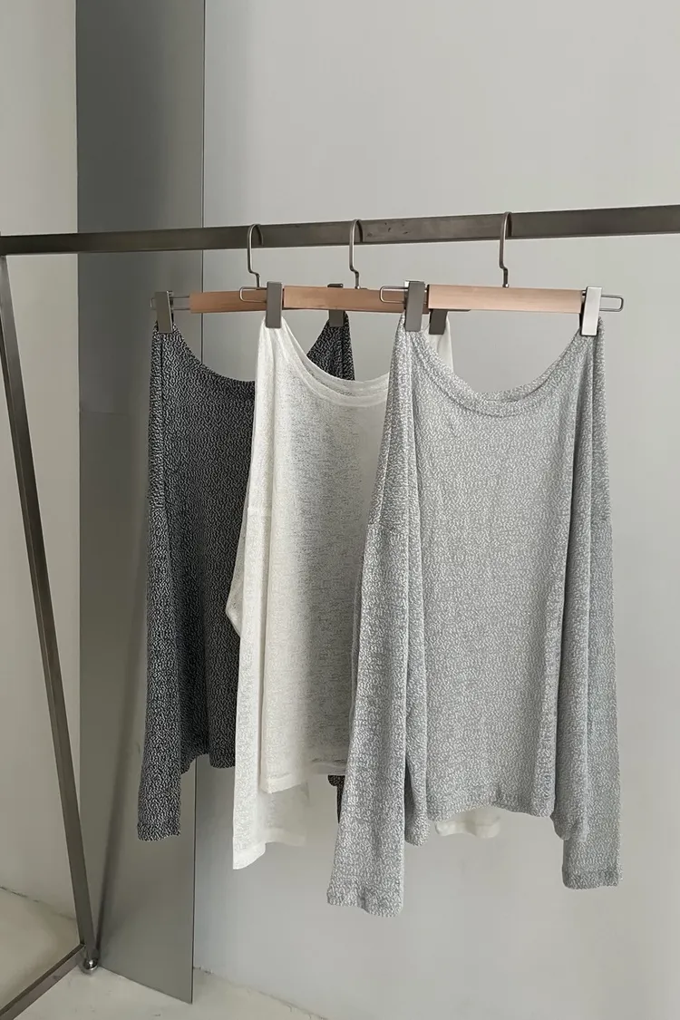 U0045滋滋滋雜訊感針織上衣(米/灰/黑)