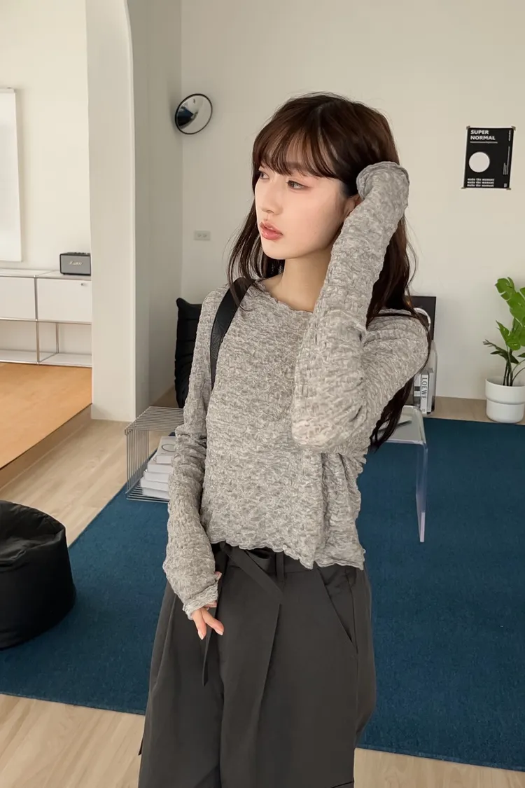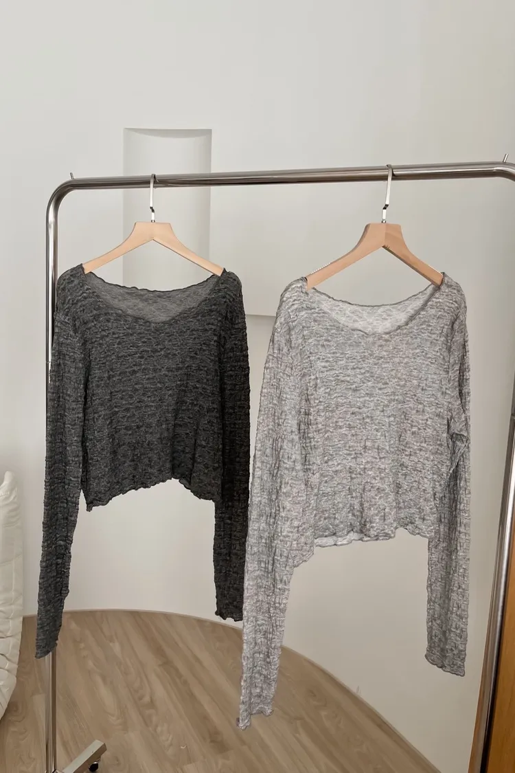 U0012皺巴巴墨染捲邊上衣(淺灰/深灰)