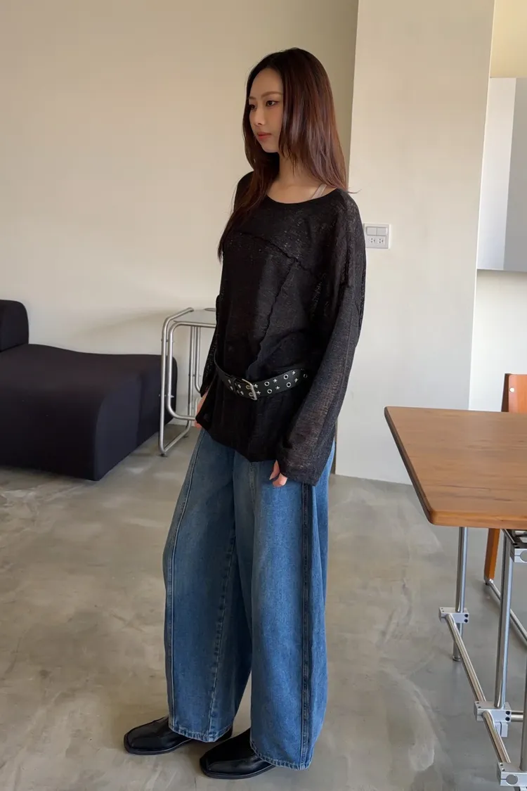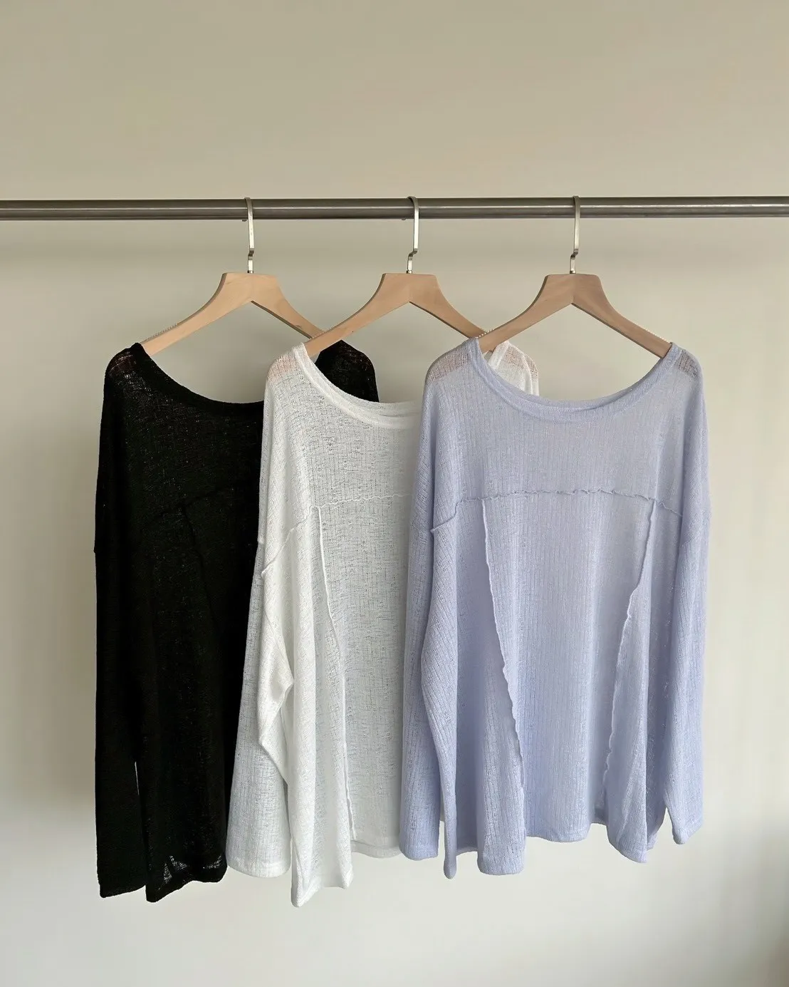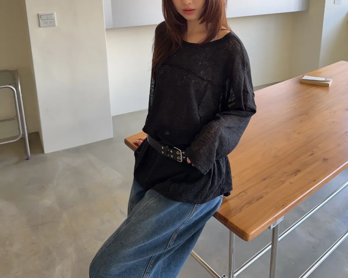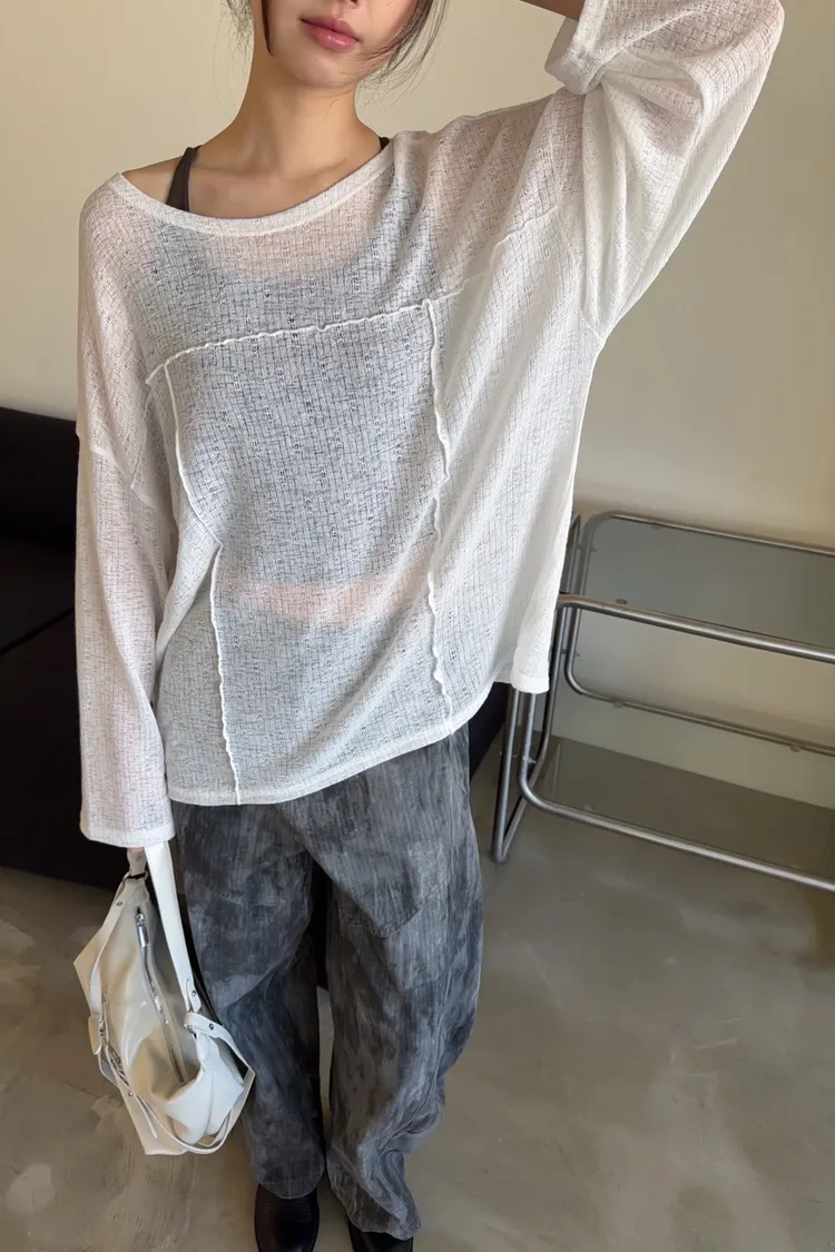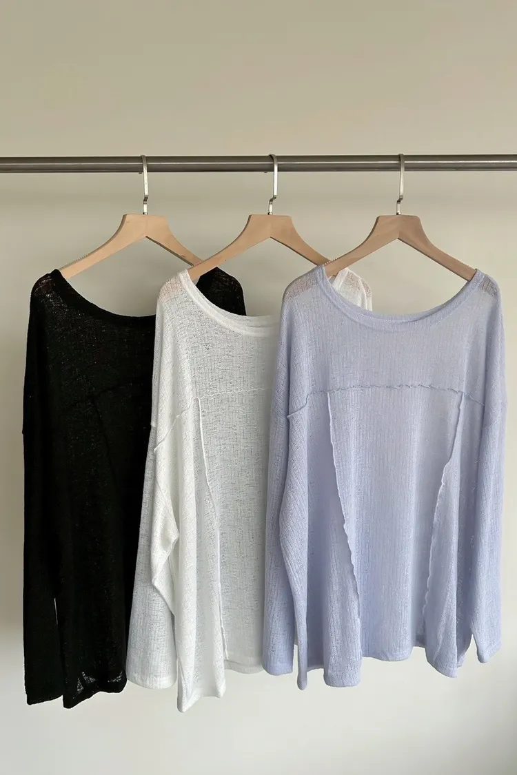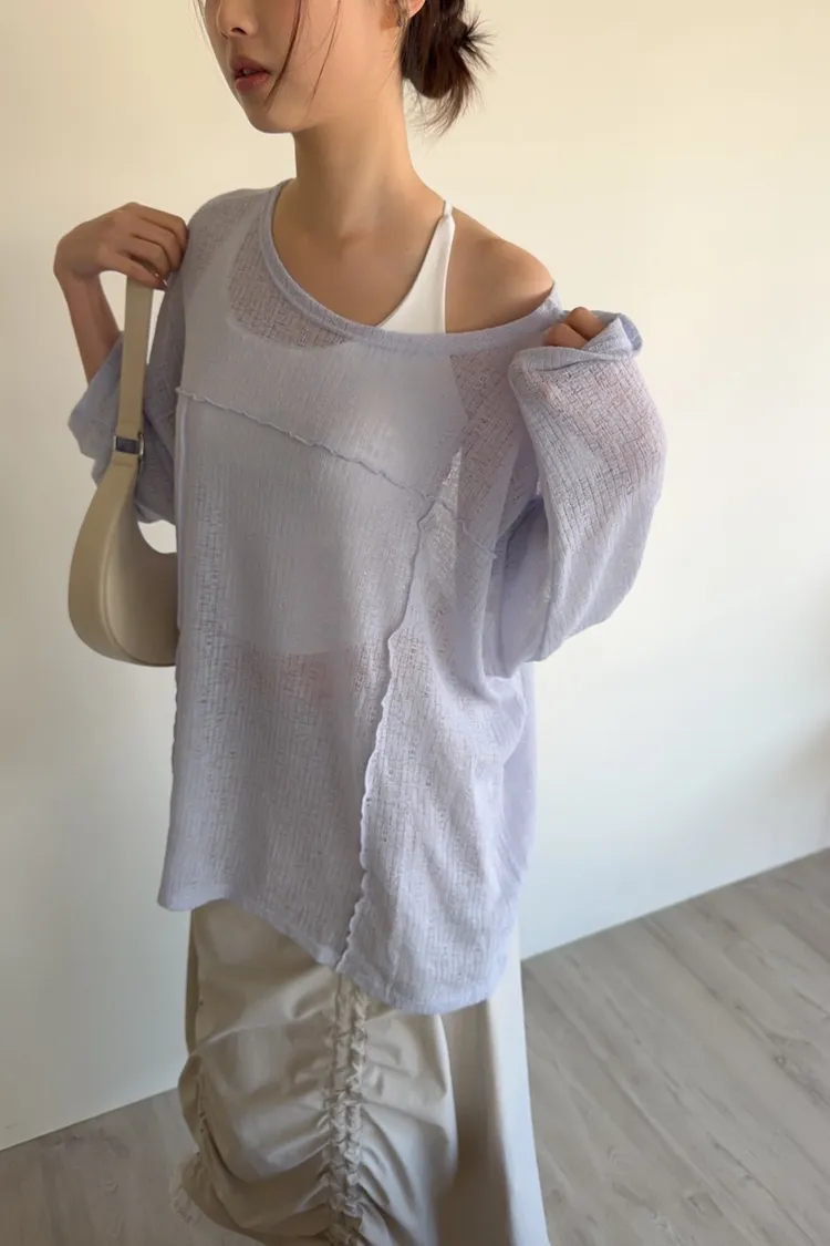 彈性領口 可以斜肩/一字領 薄透針織 立體QQ車線 寬鬆落肩