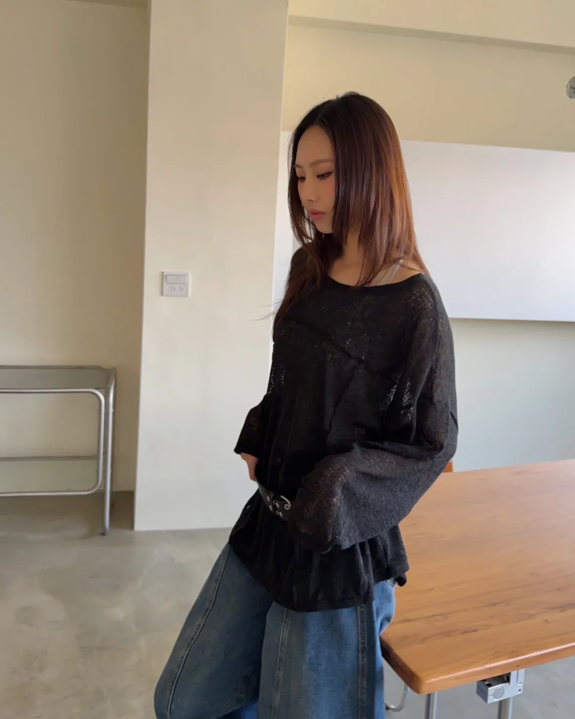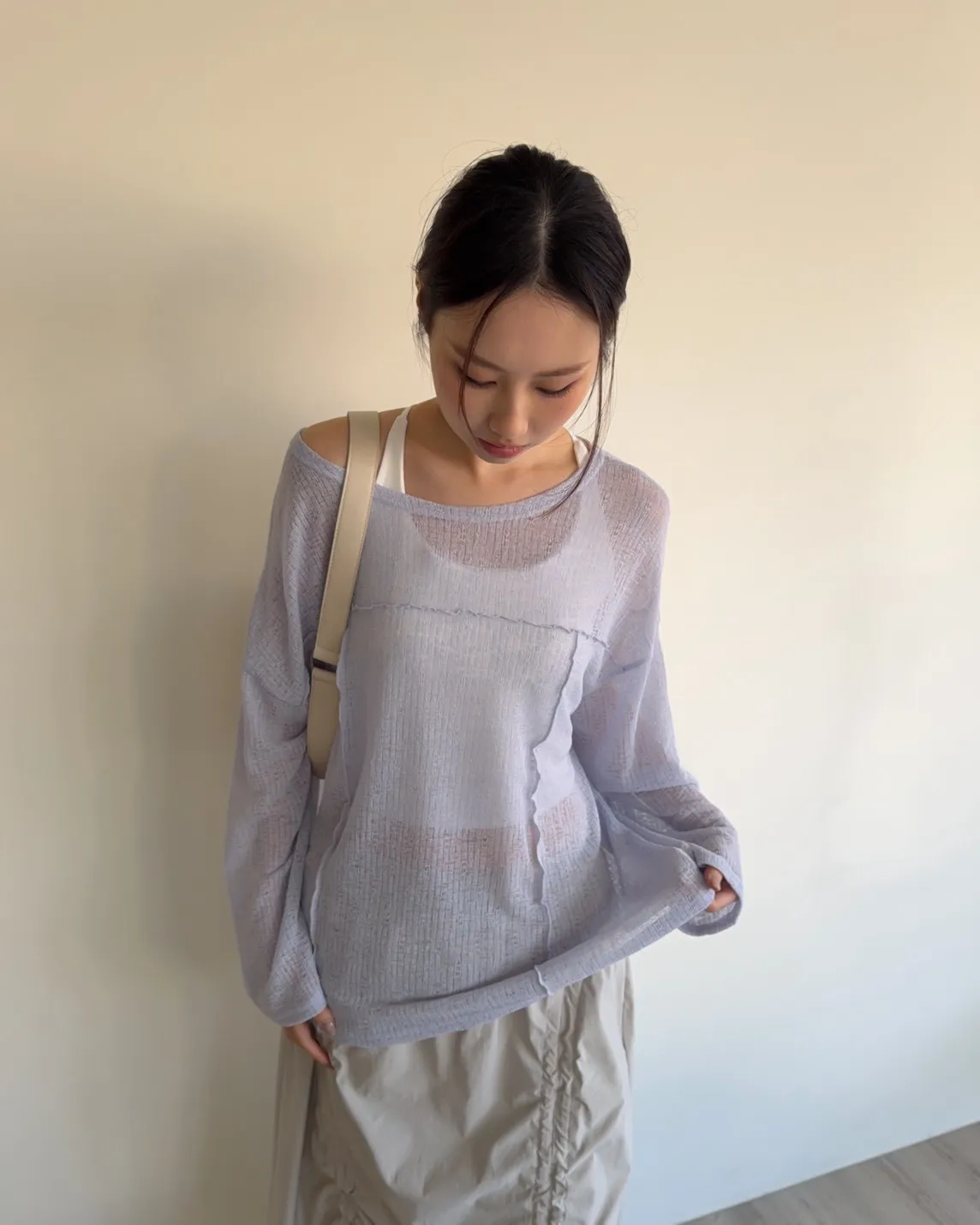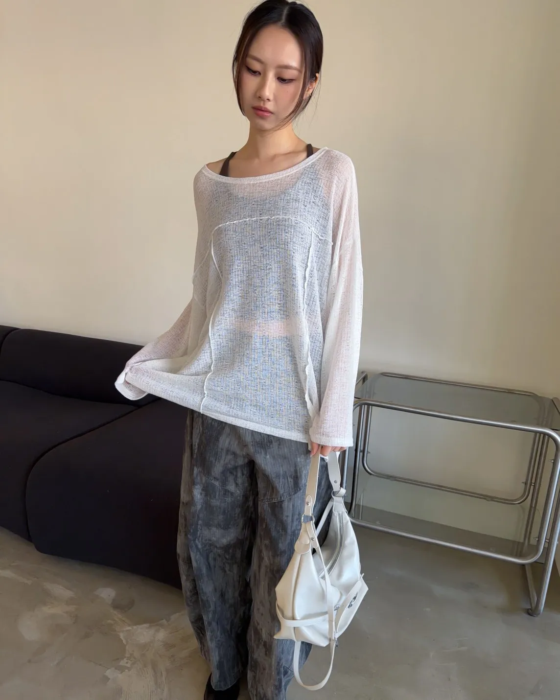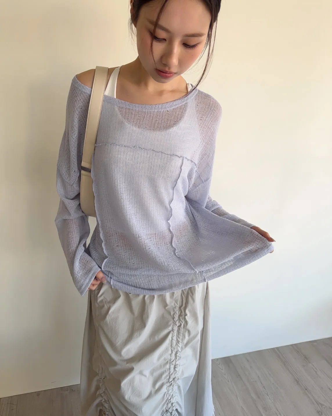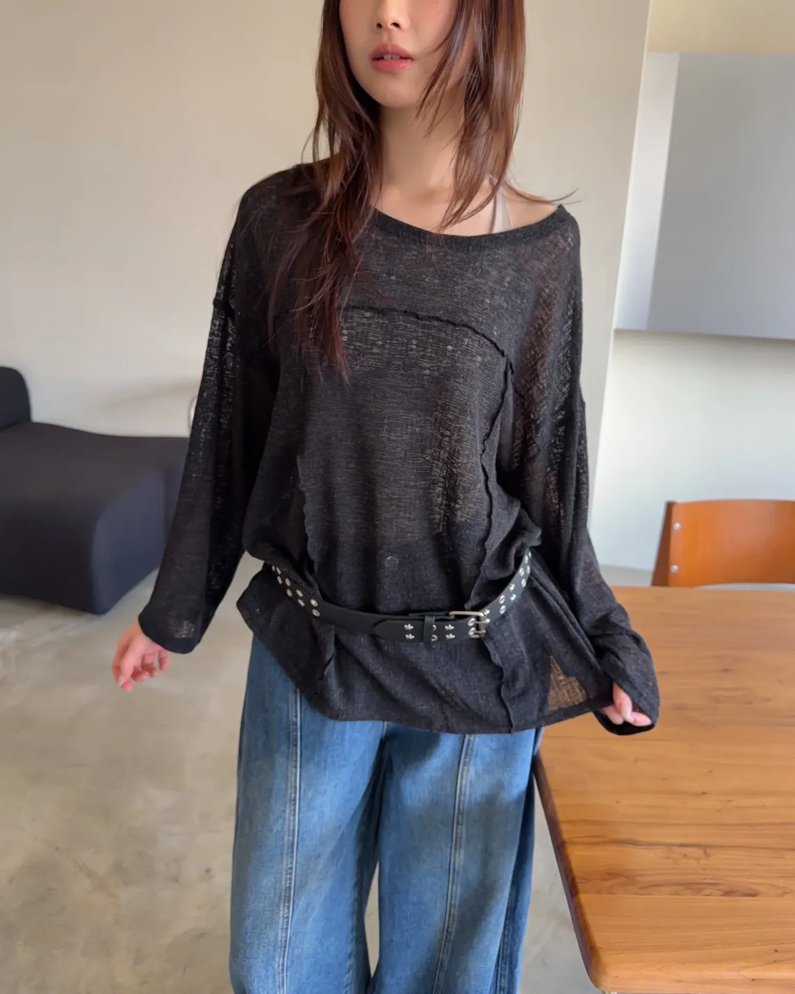 彈性領口 可以斜肩/一字領 薄透針織 立體QQ車線 寬鬆落肩