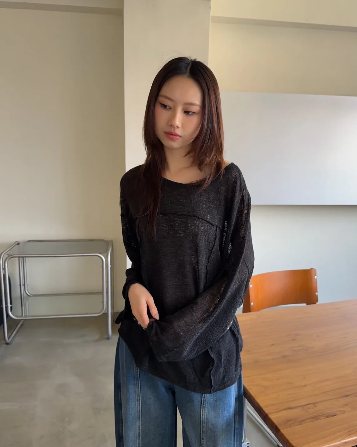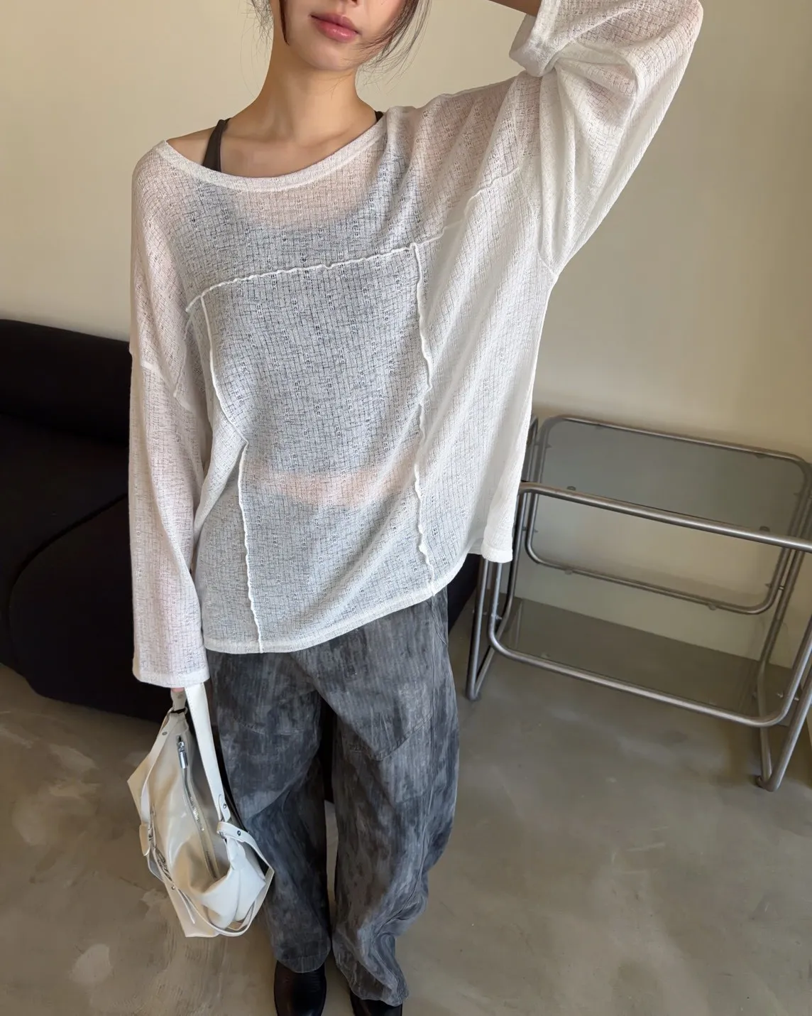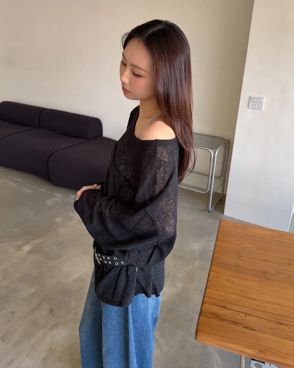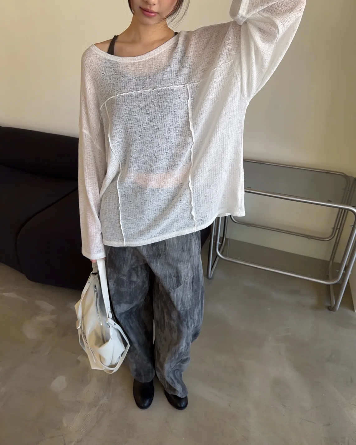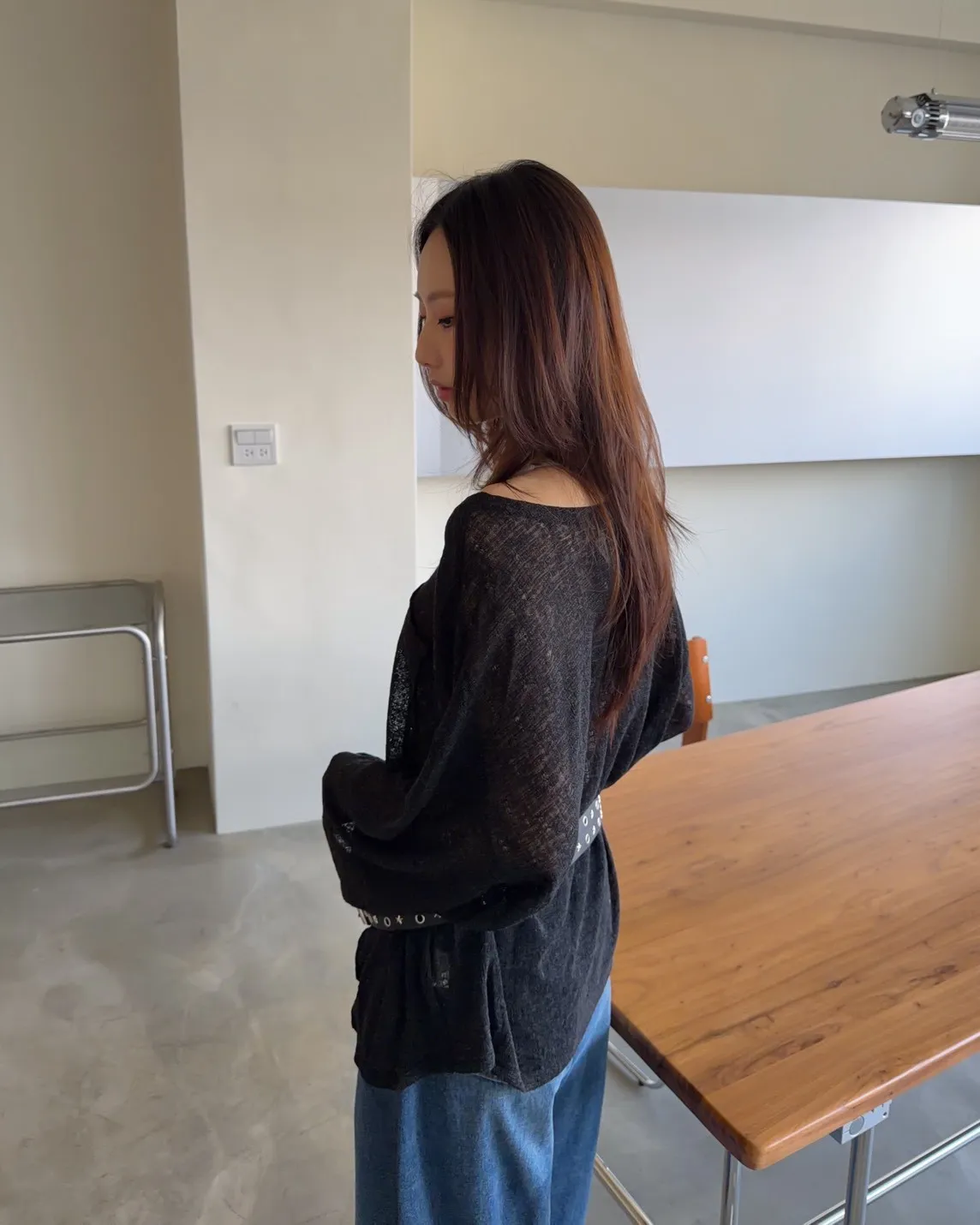 彈性領口 可以斜肩/一字領 薄透針織 立體QQ車線 寬鬆落肩