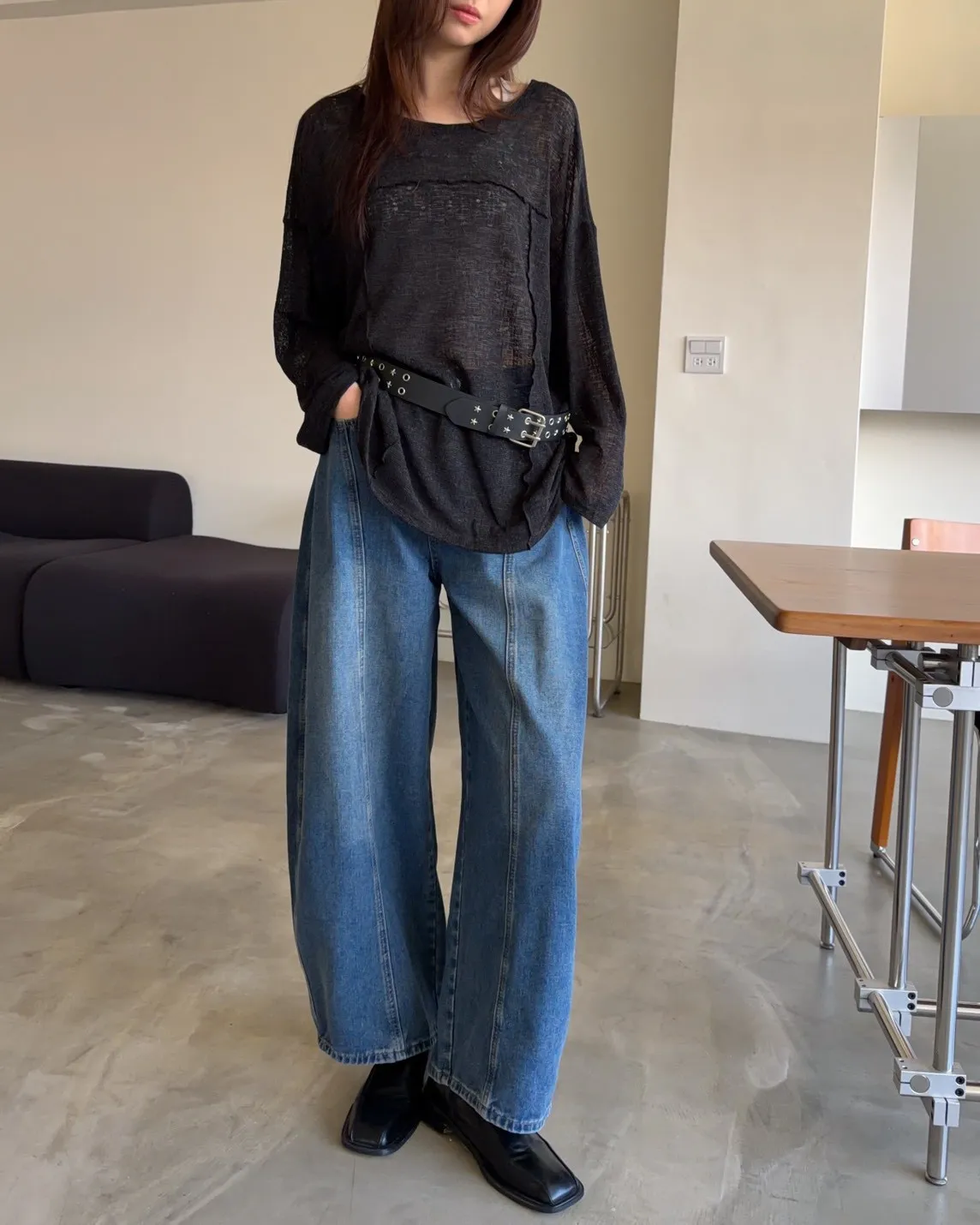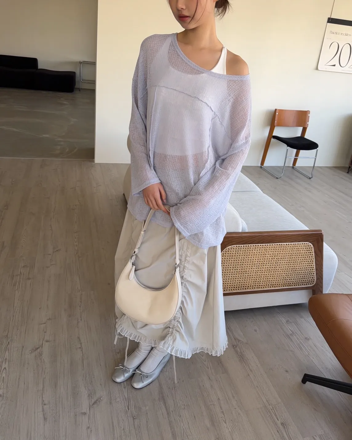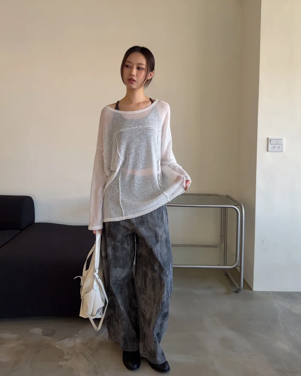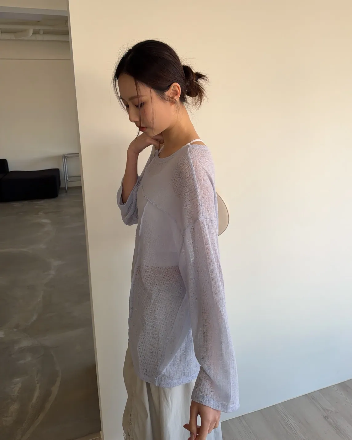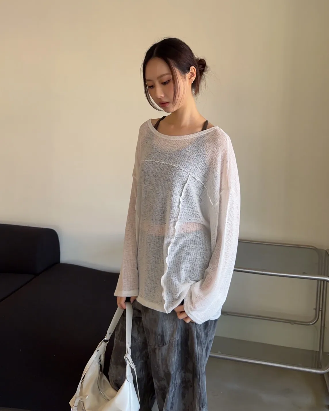 彈性領口 可以斜肩/一字領 薄透針織 立體QQ車線 寬鬆落肩
