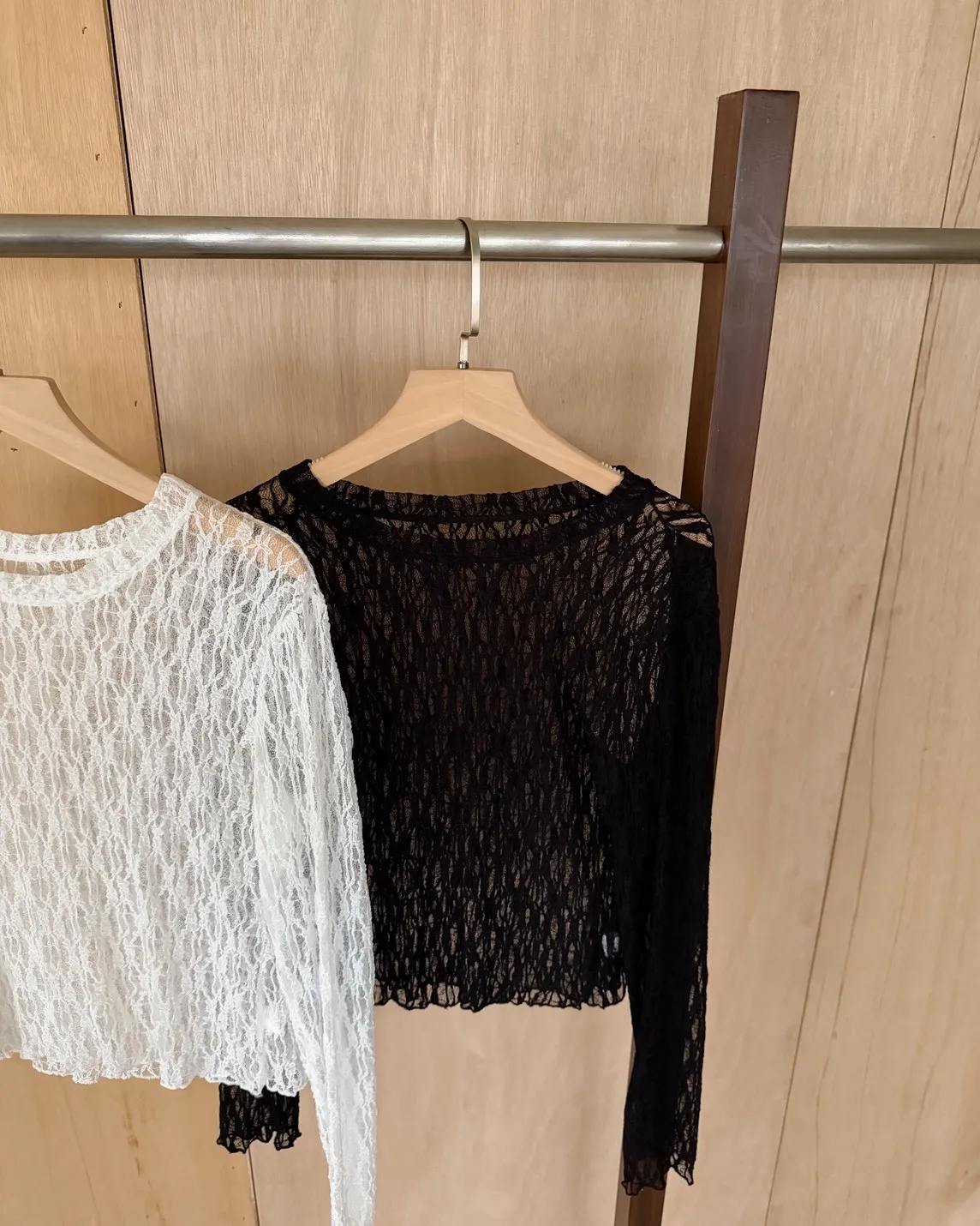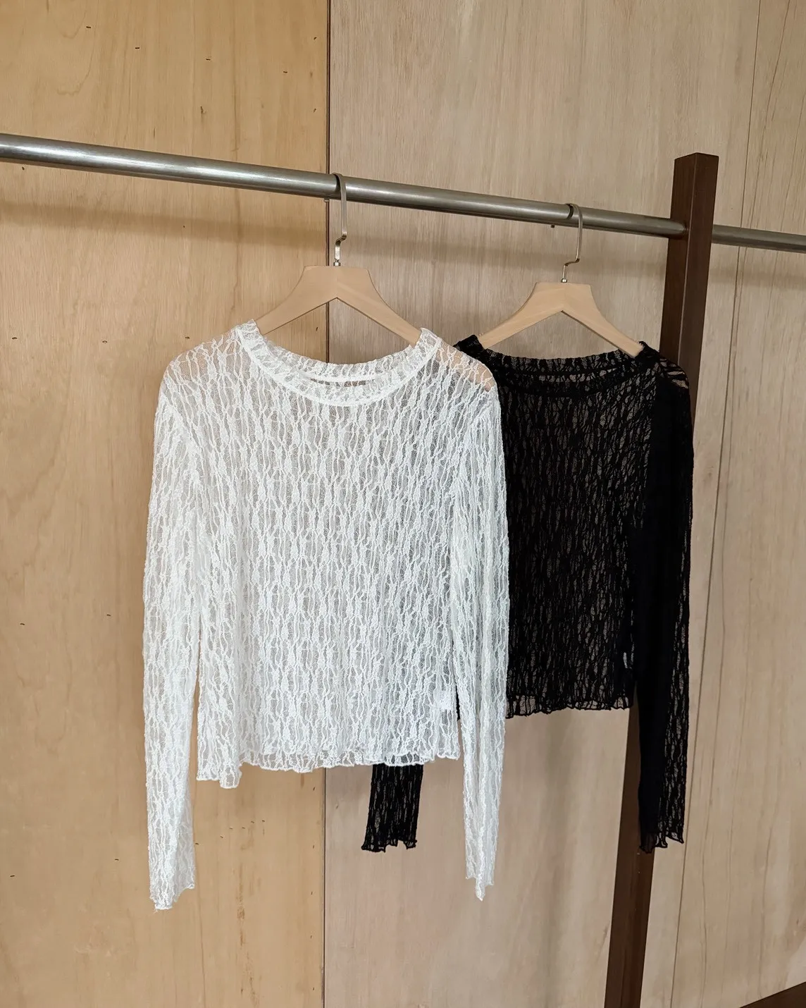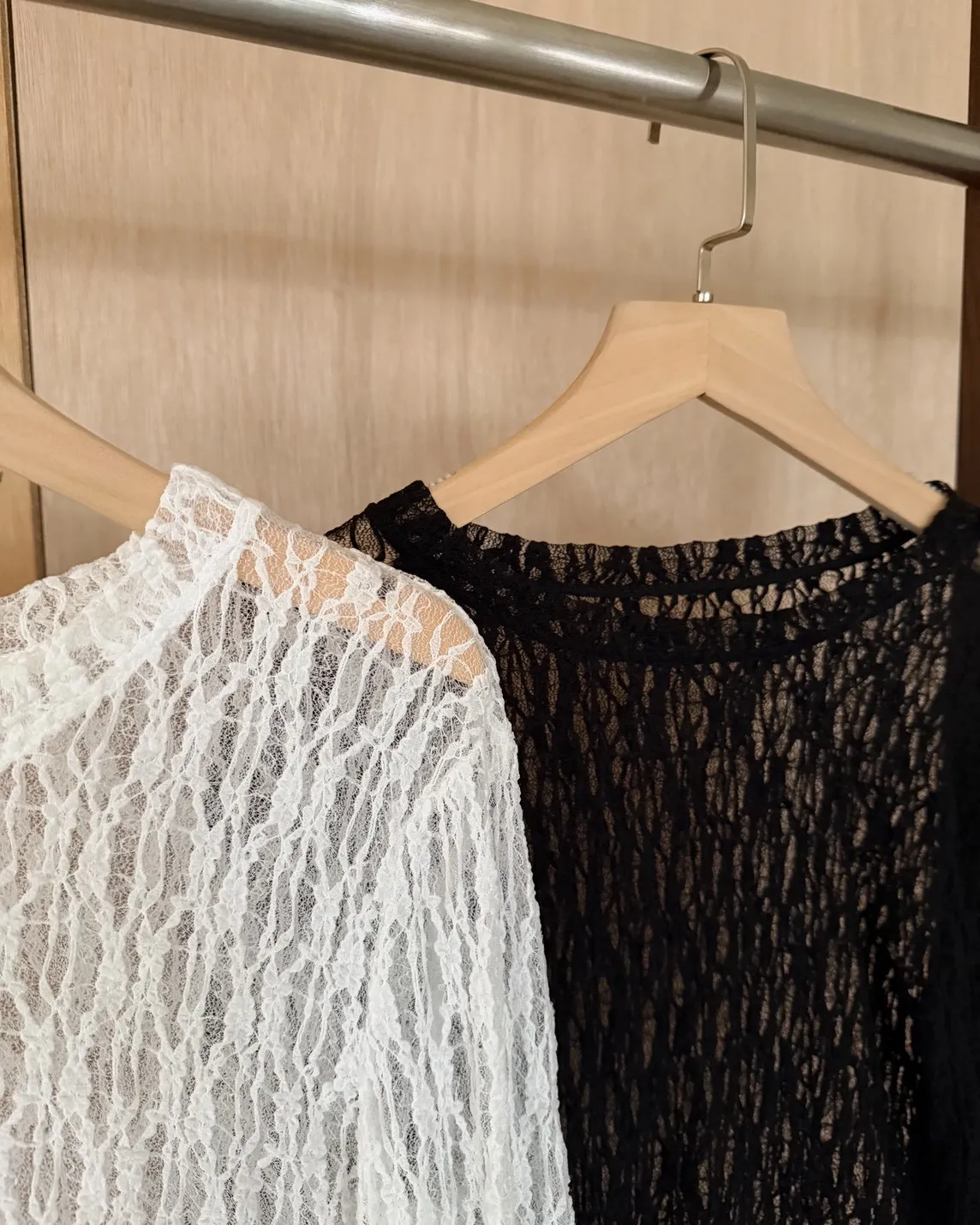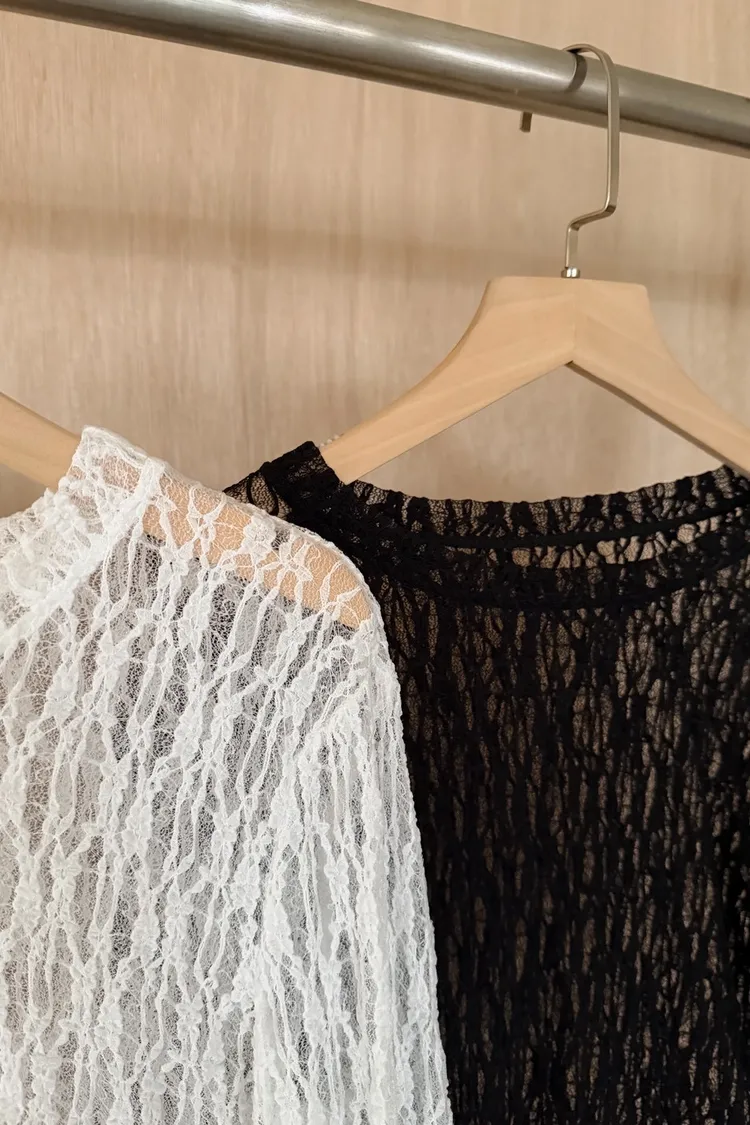 A0012有彈性微寬鬆蕾絲打底衣(白/黑)