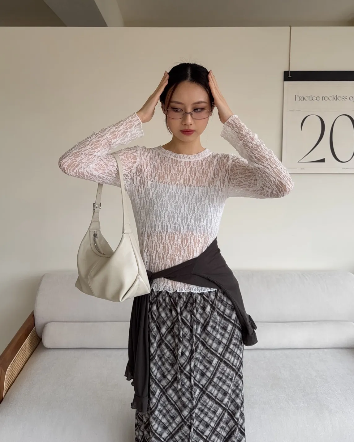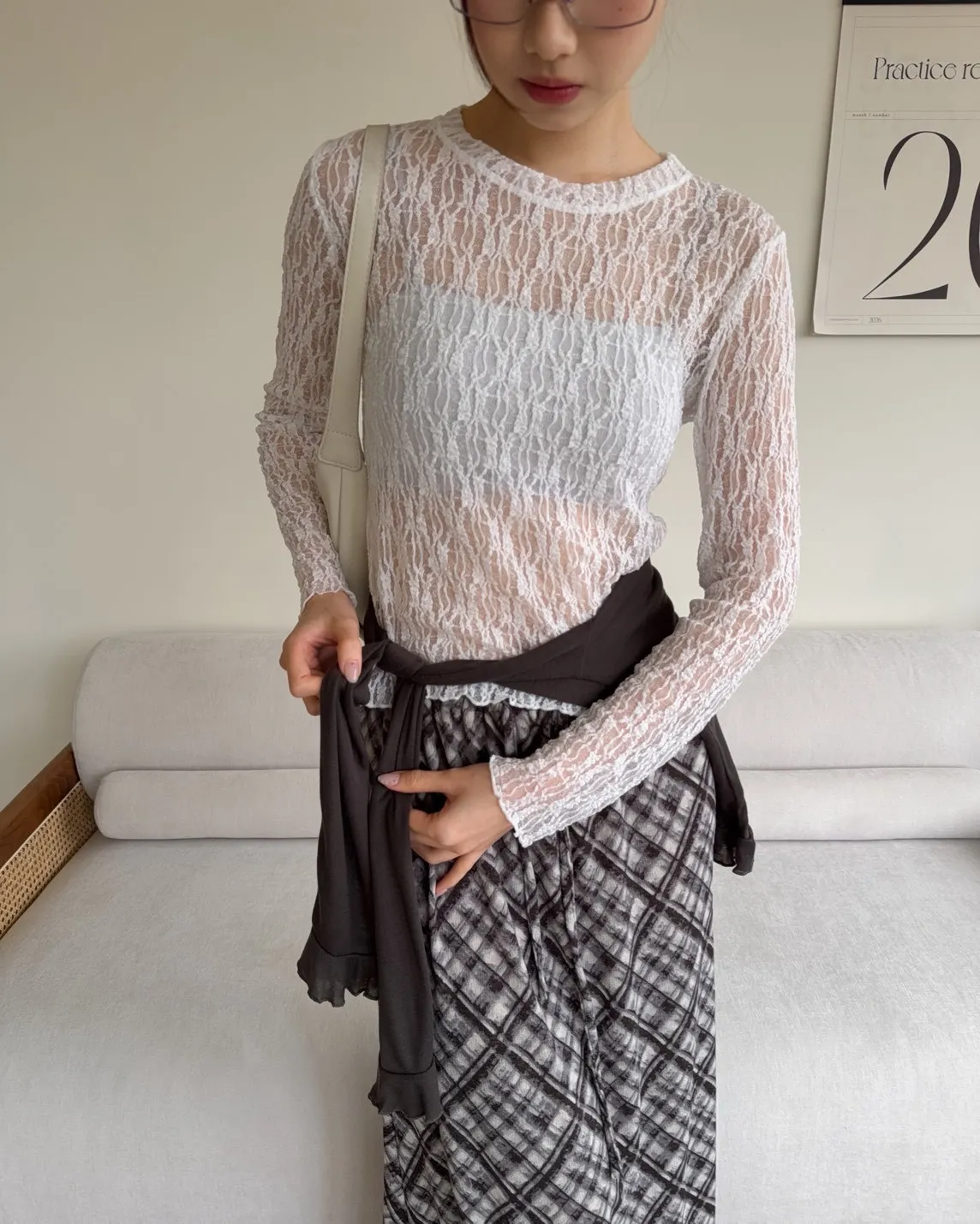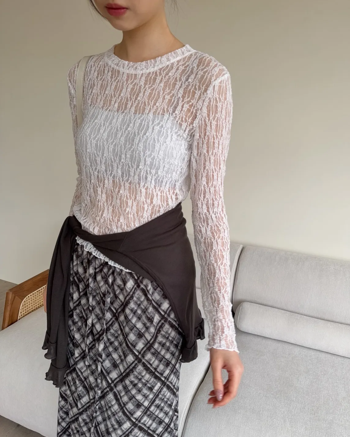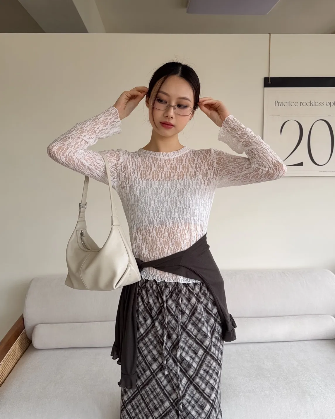 A0012有彈性微寬鬆蕾絲打底衣(白/黑)