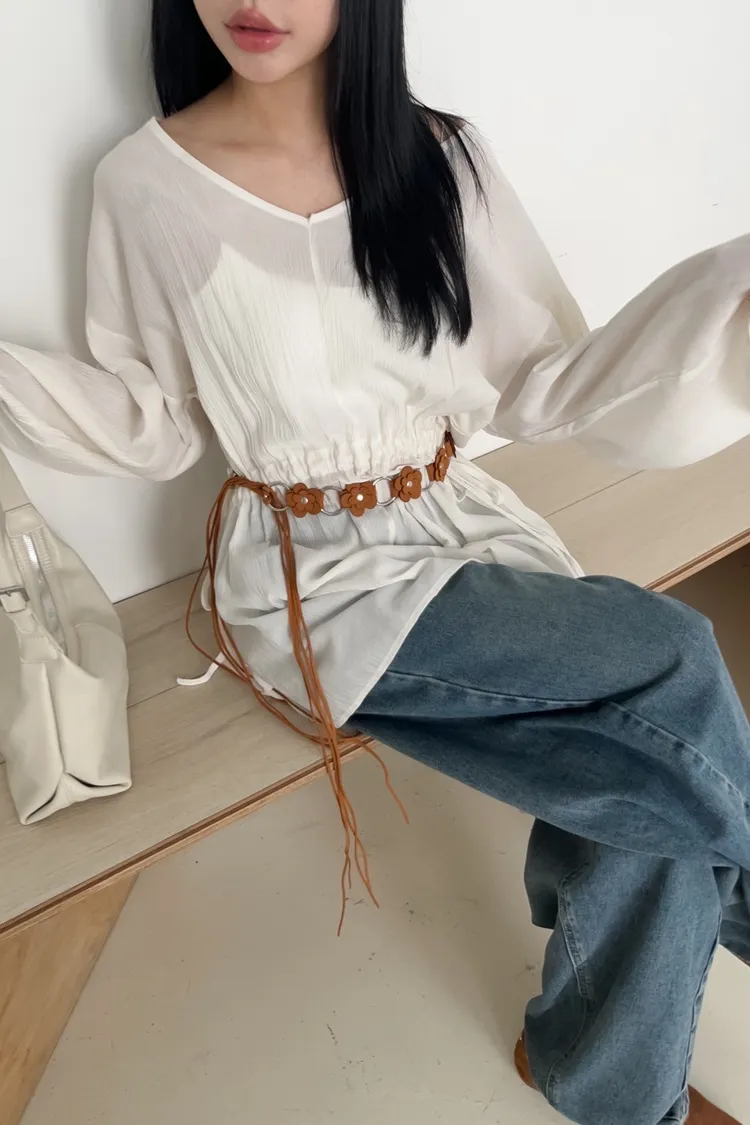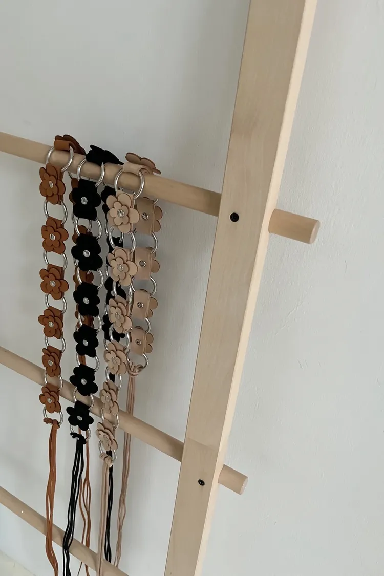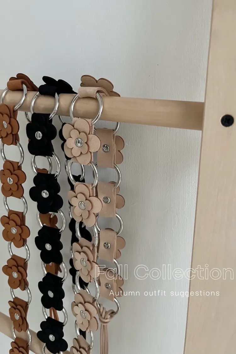 U0037流蘇花花腰鍊(杏/焦糖/黑)