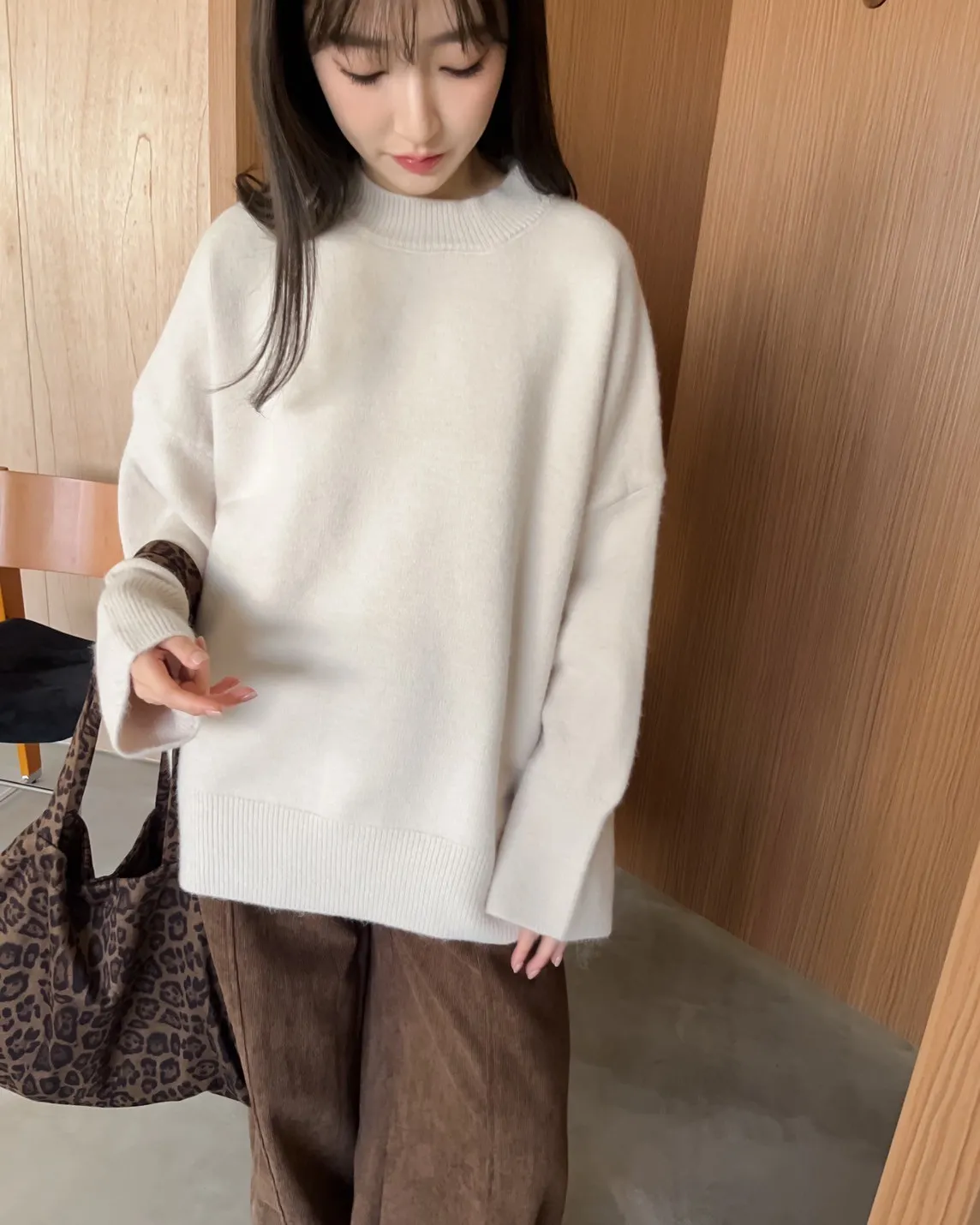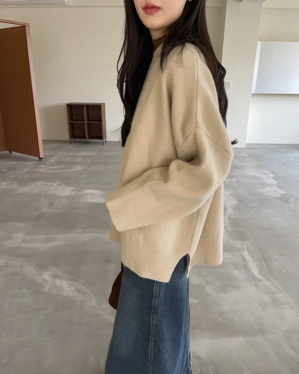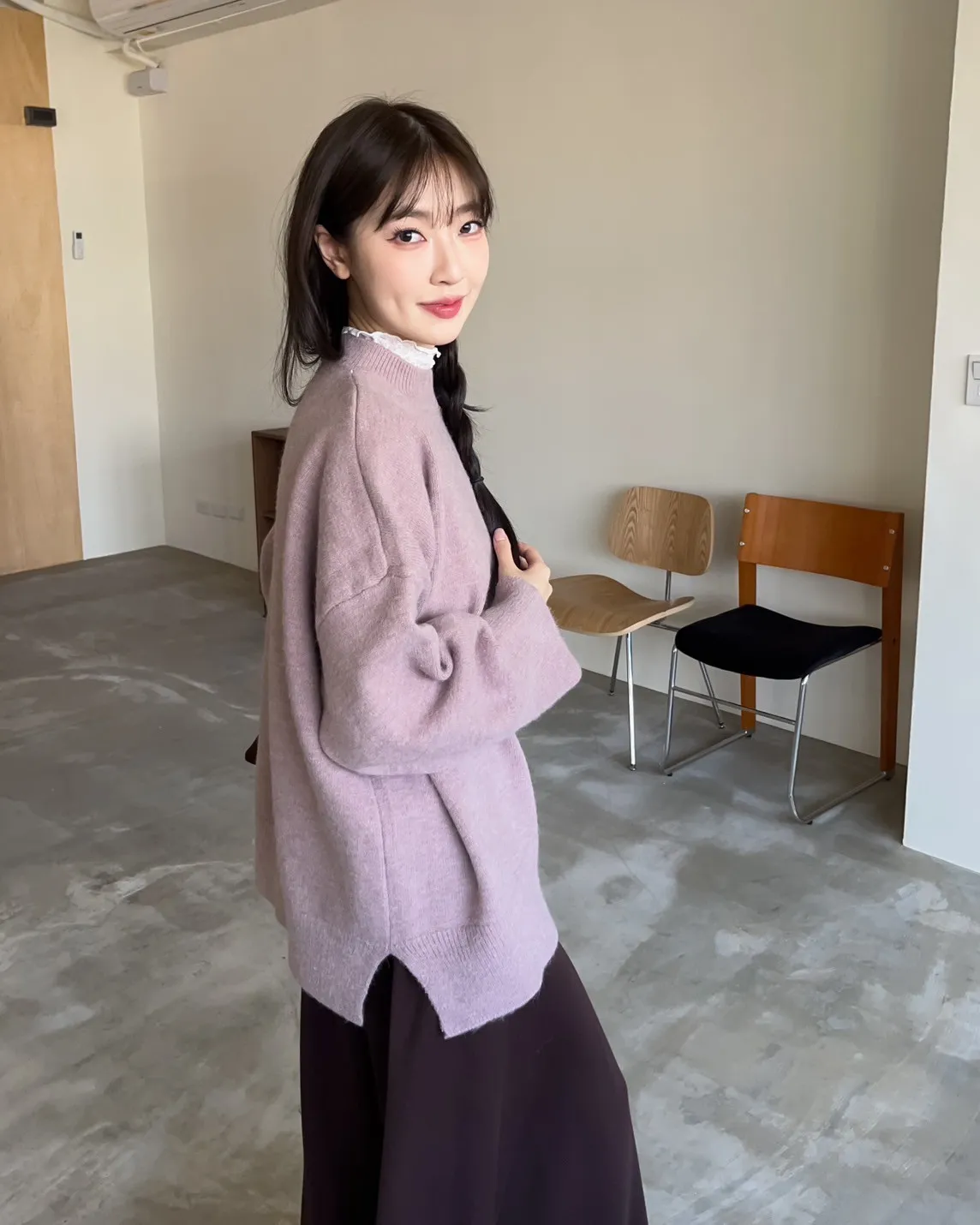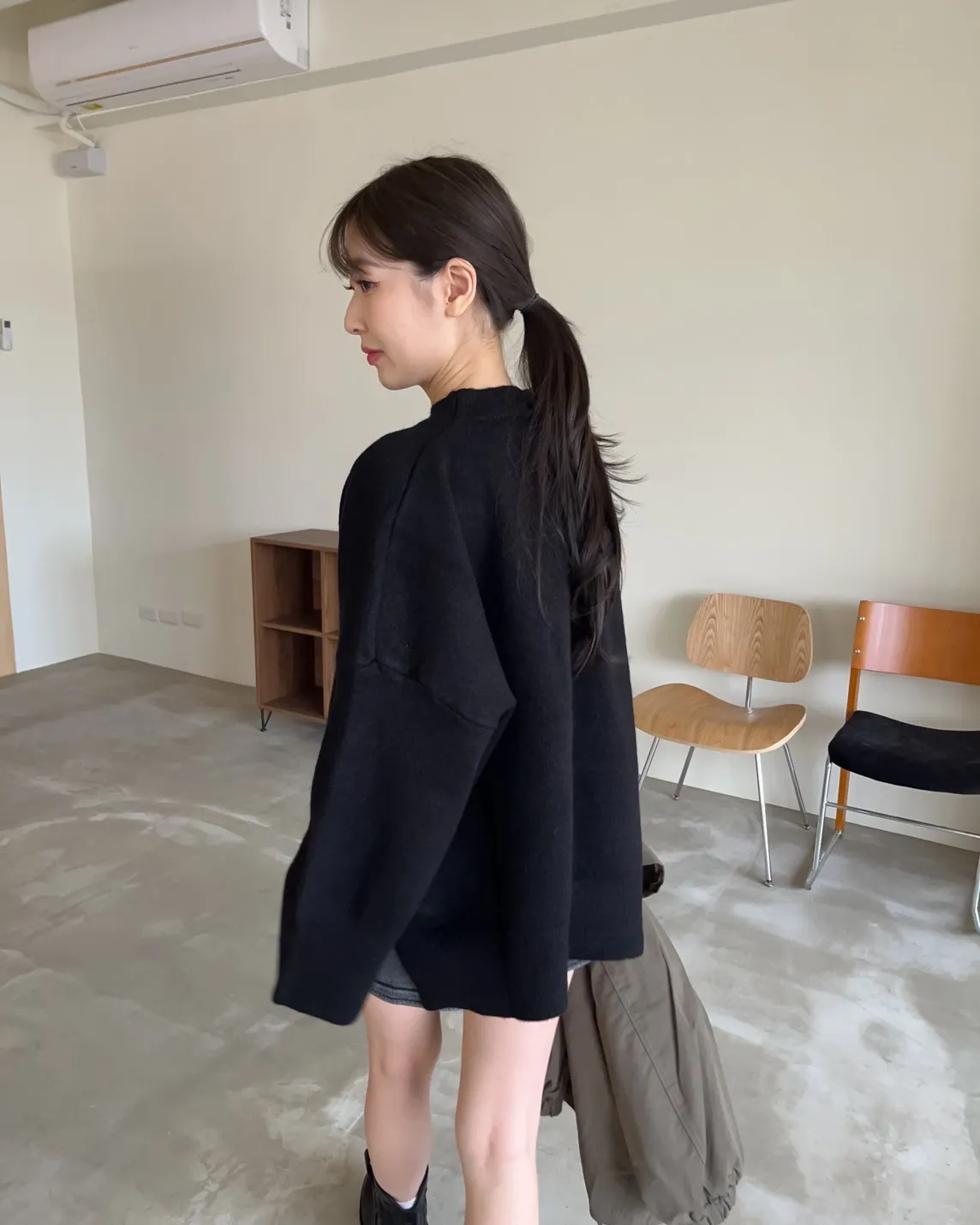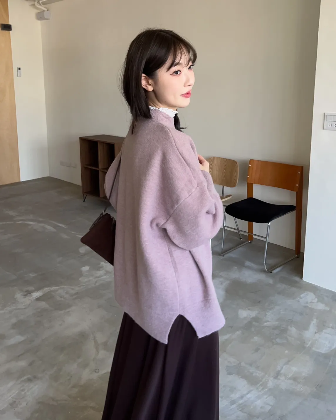 有厚度混毛針織 寬鬆大件 兩側小開岔 中長版