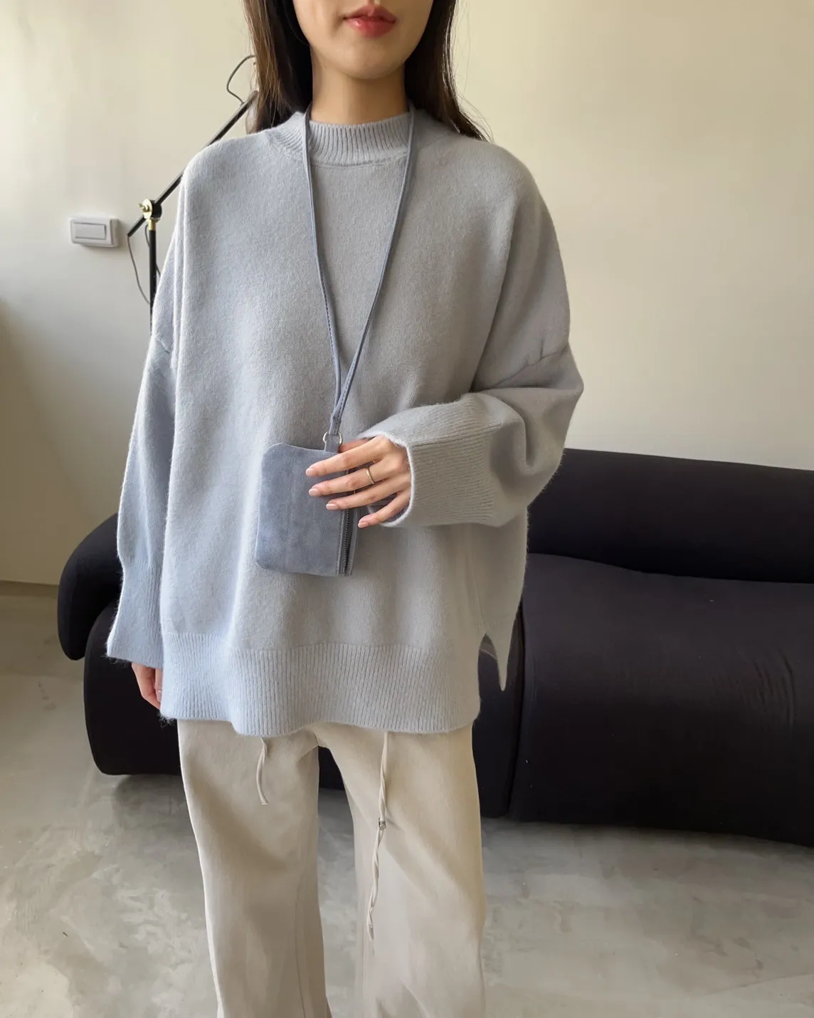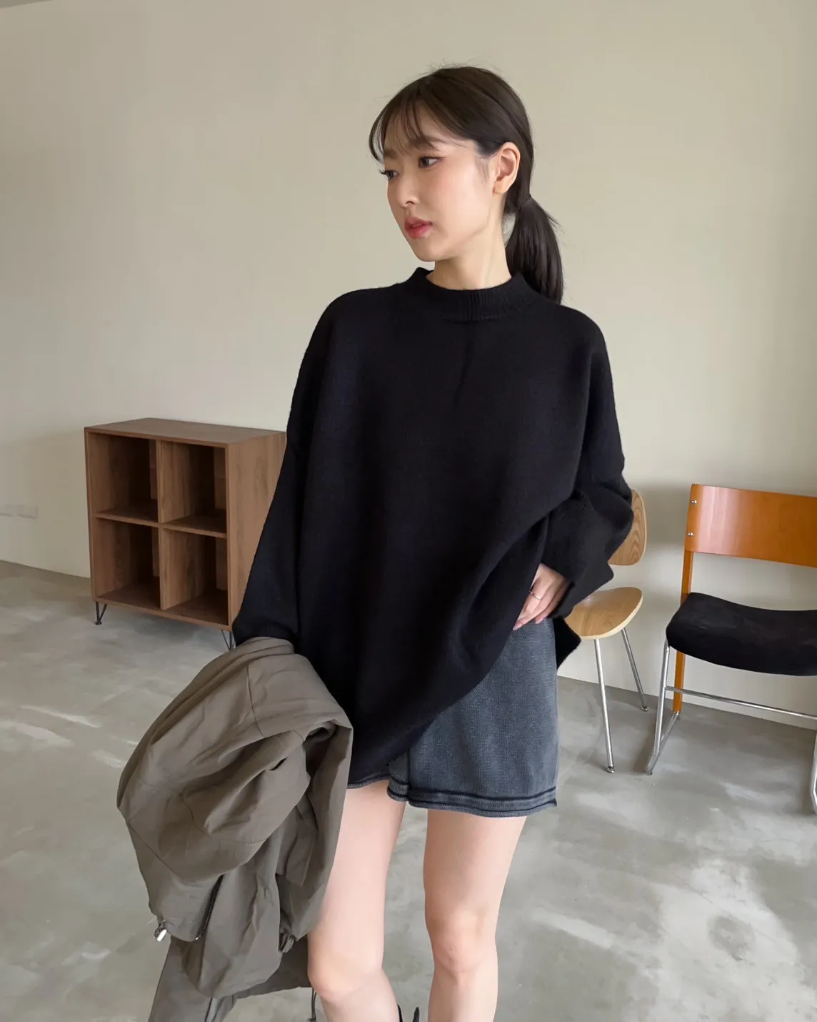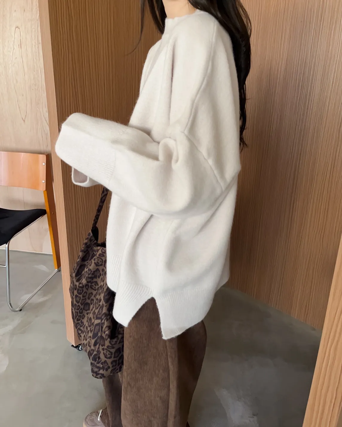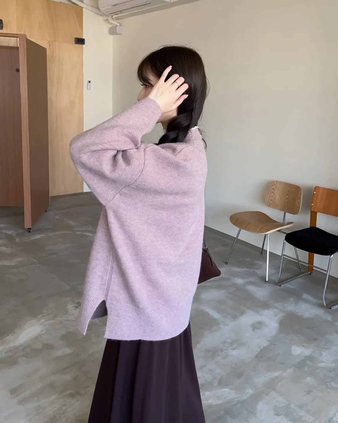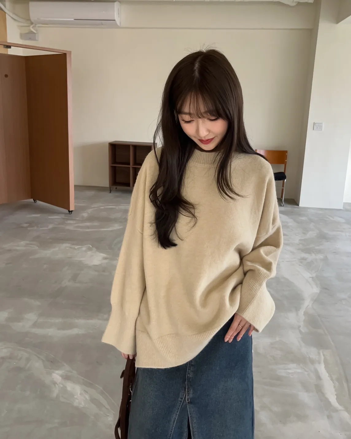 有厚度混毛針織 寬鬆大件 兩側小開岔 中長版