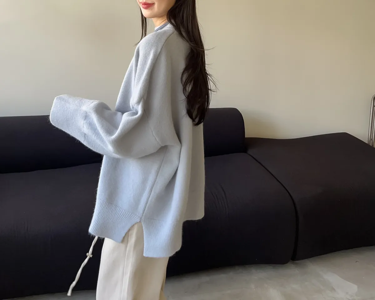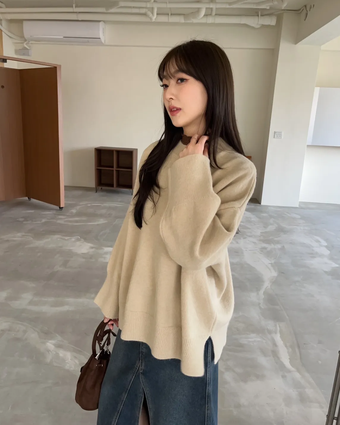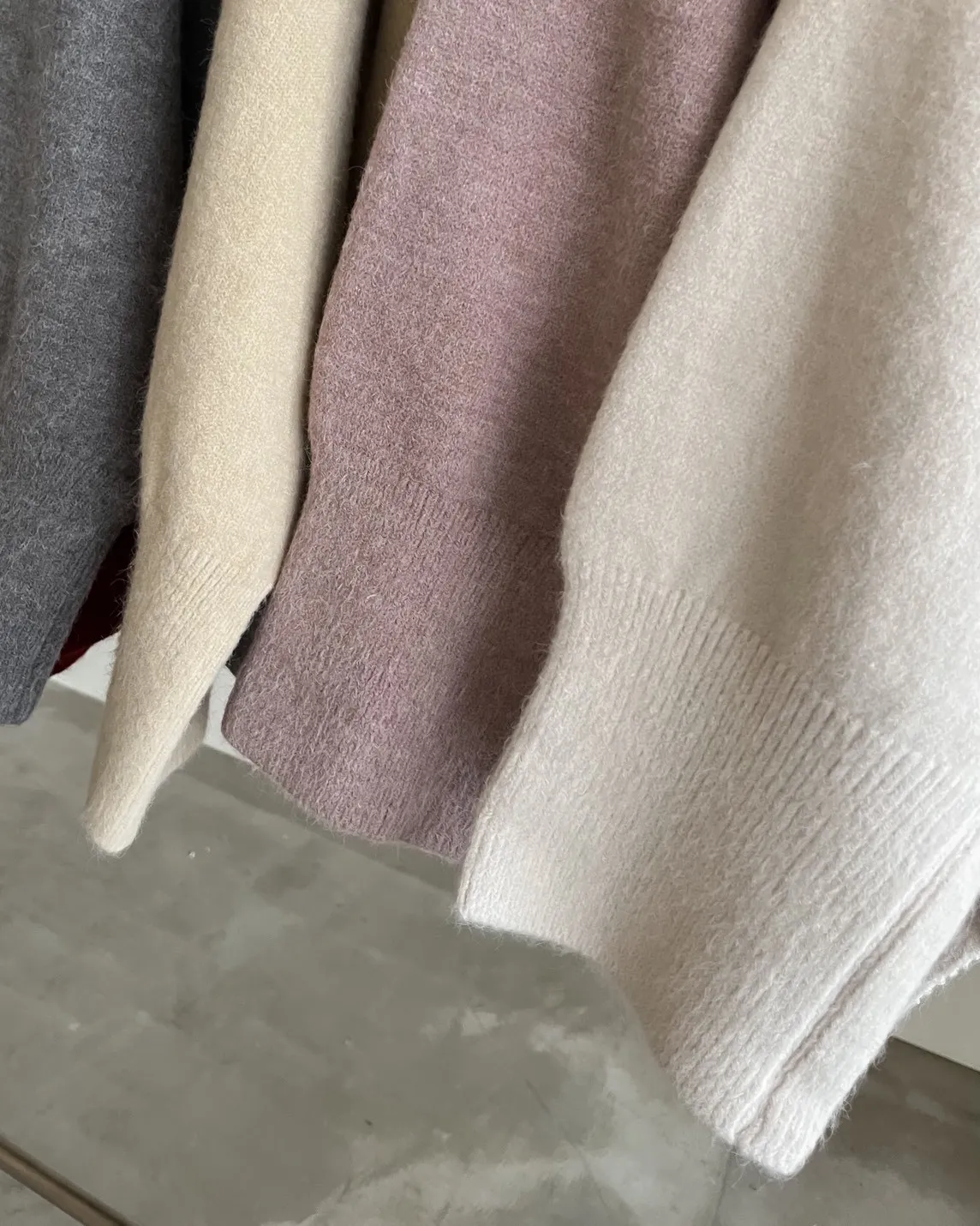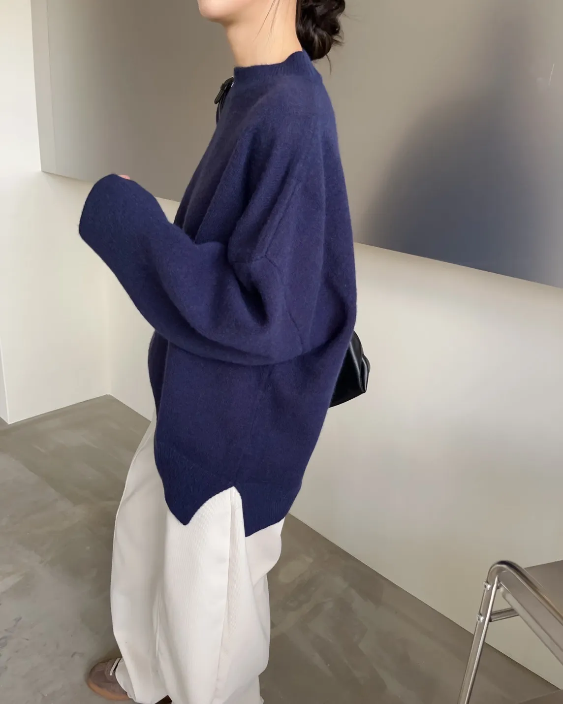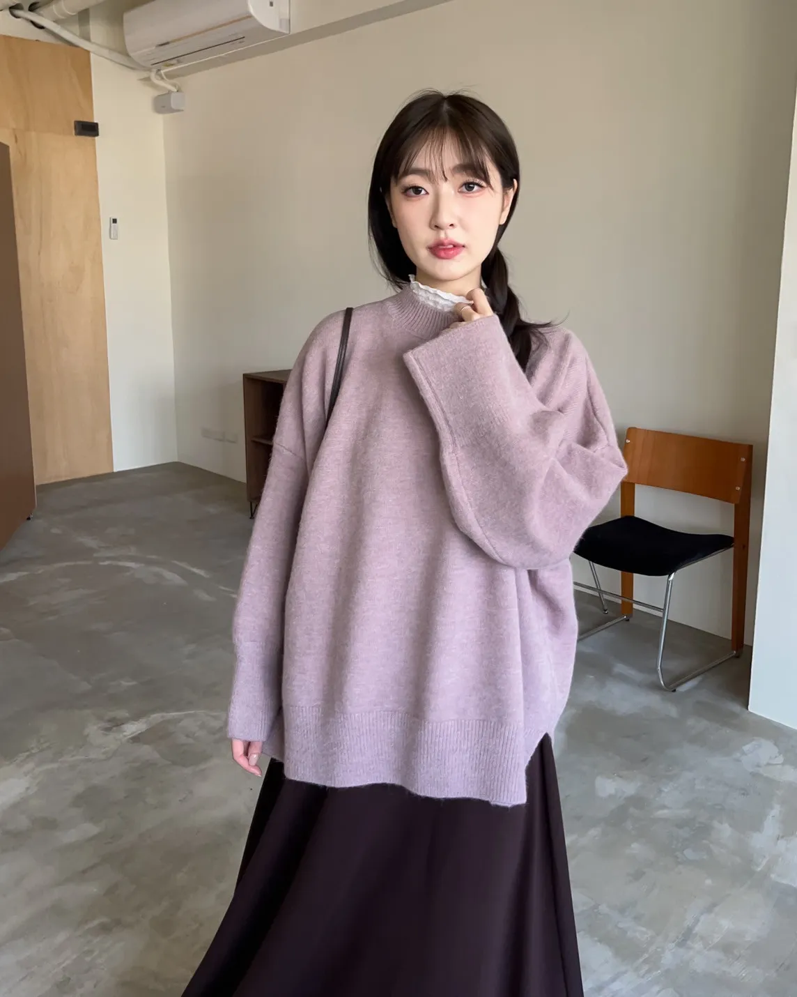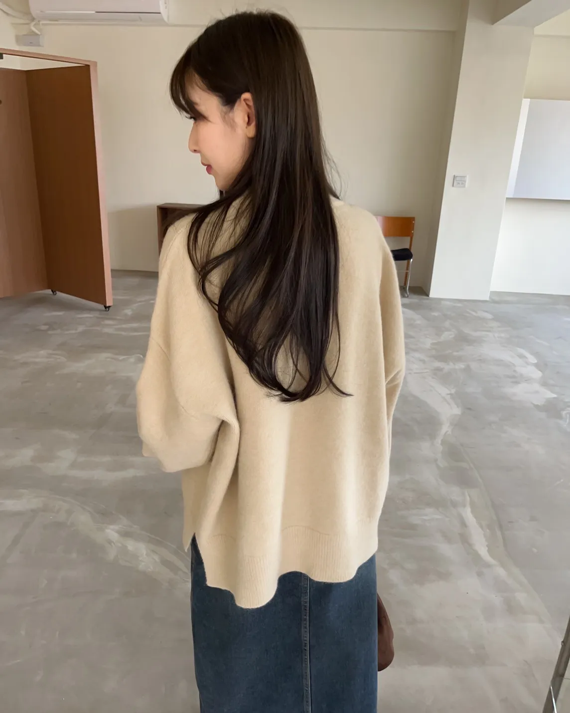 有厚度混毛針織 寬鬆大件 兩側小開岔 中長版