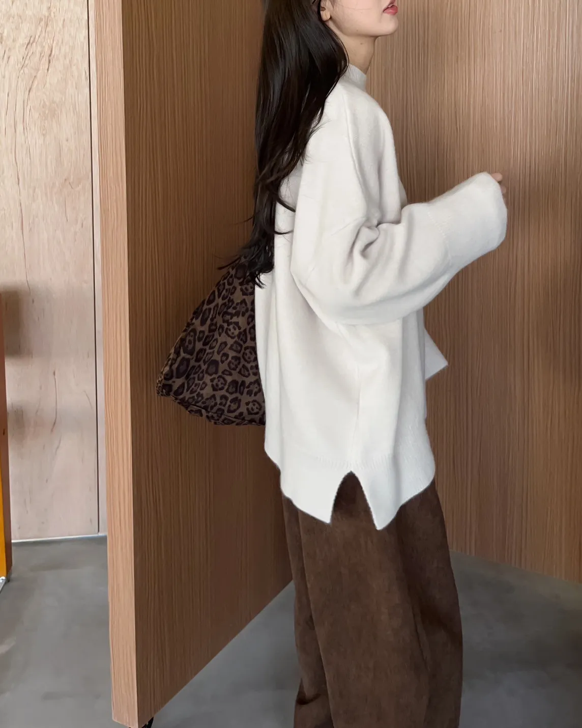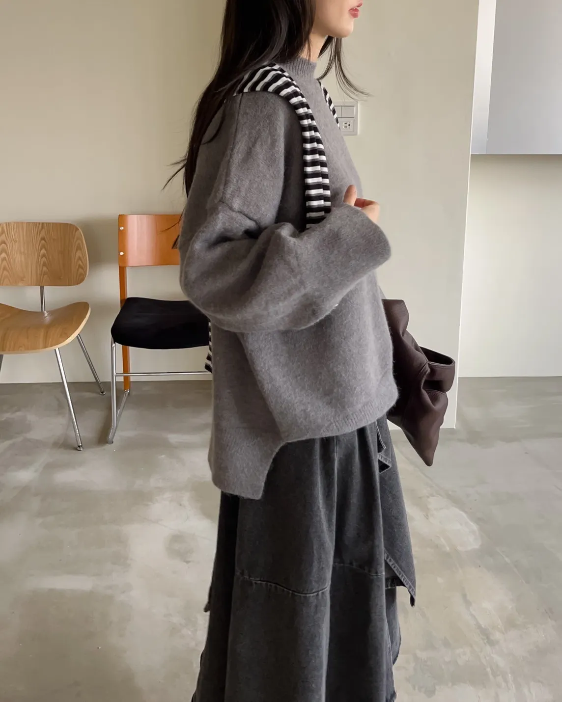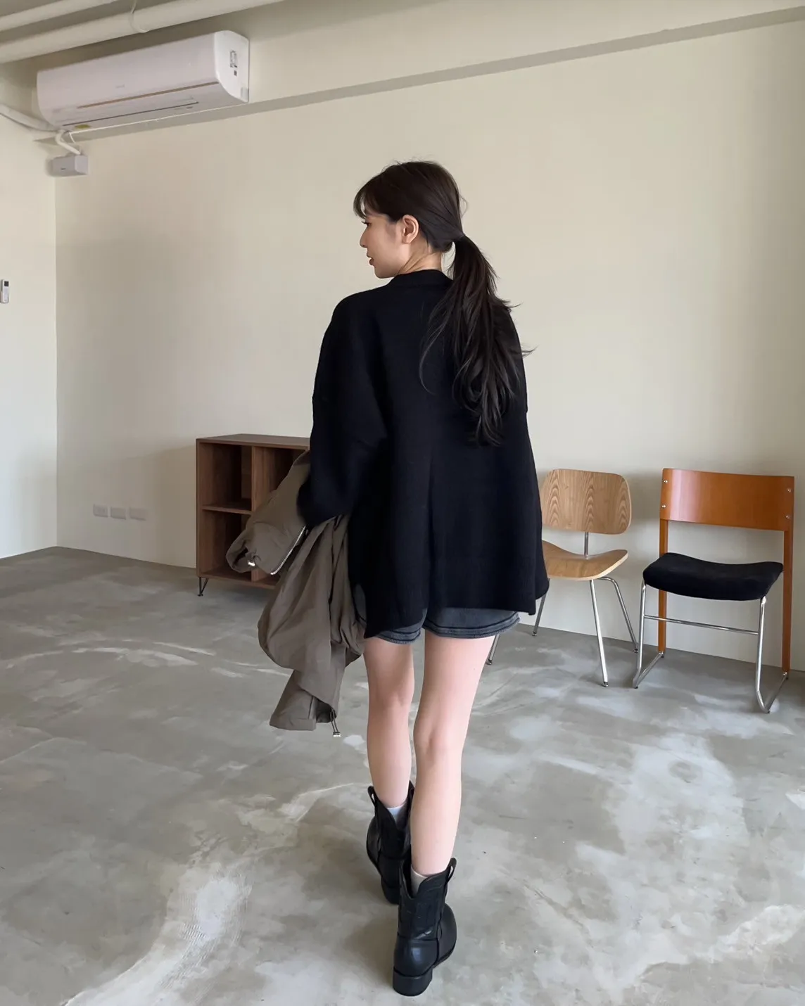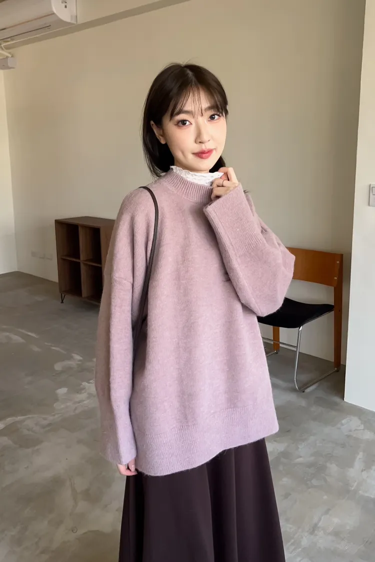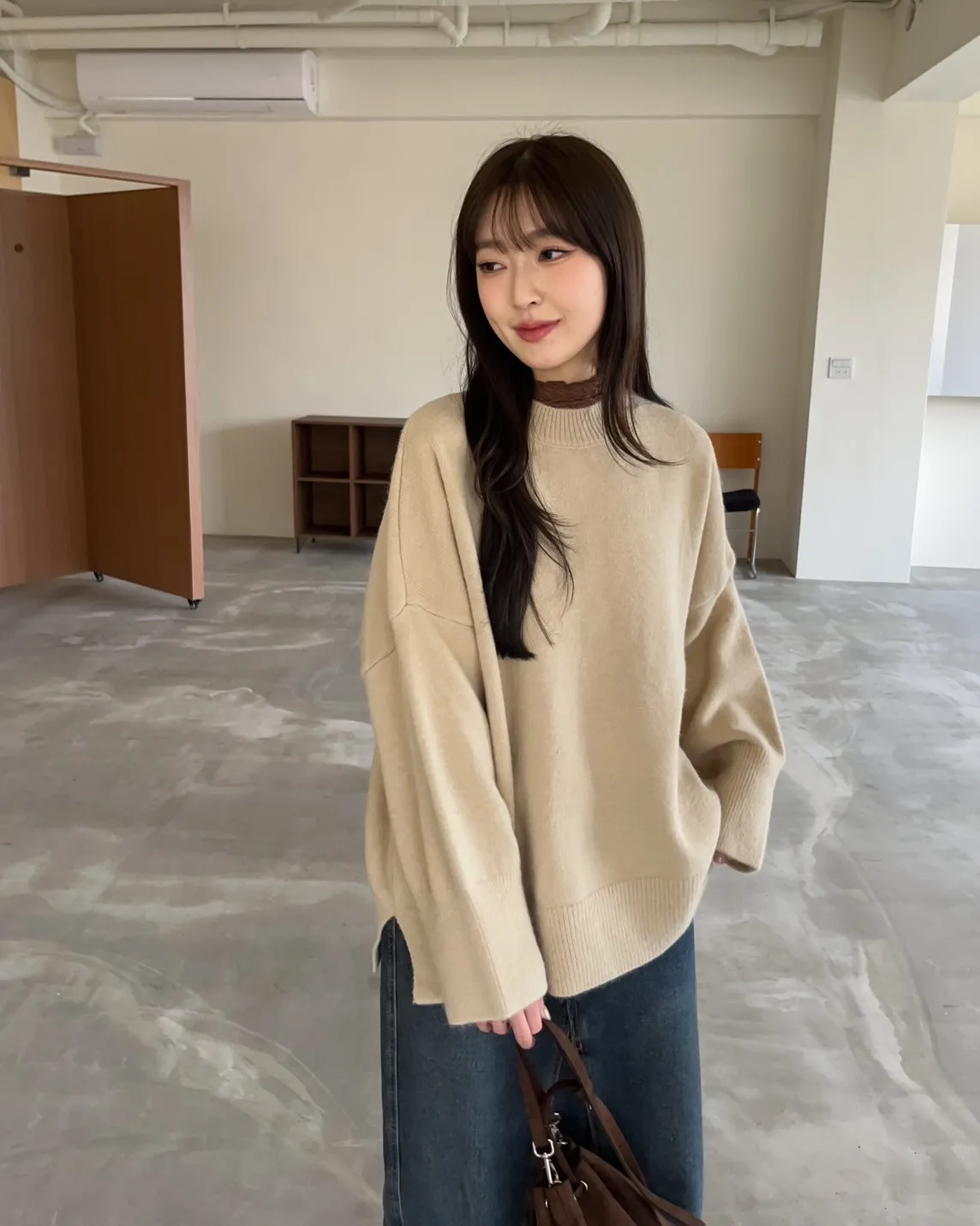 有厚度混毛針織 寬鬆大件 兩側小開岔 中長版