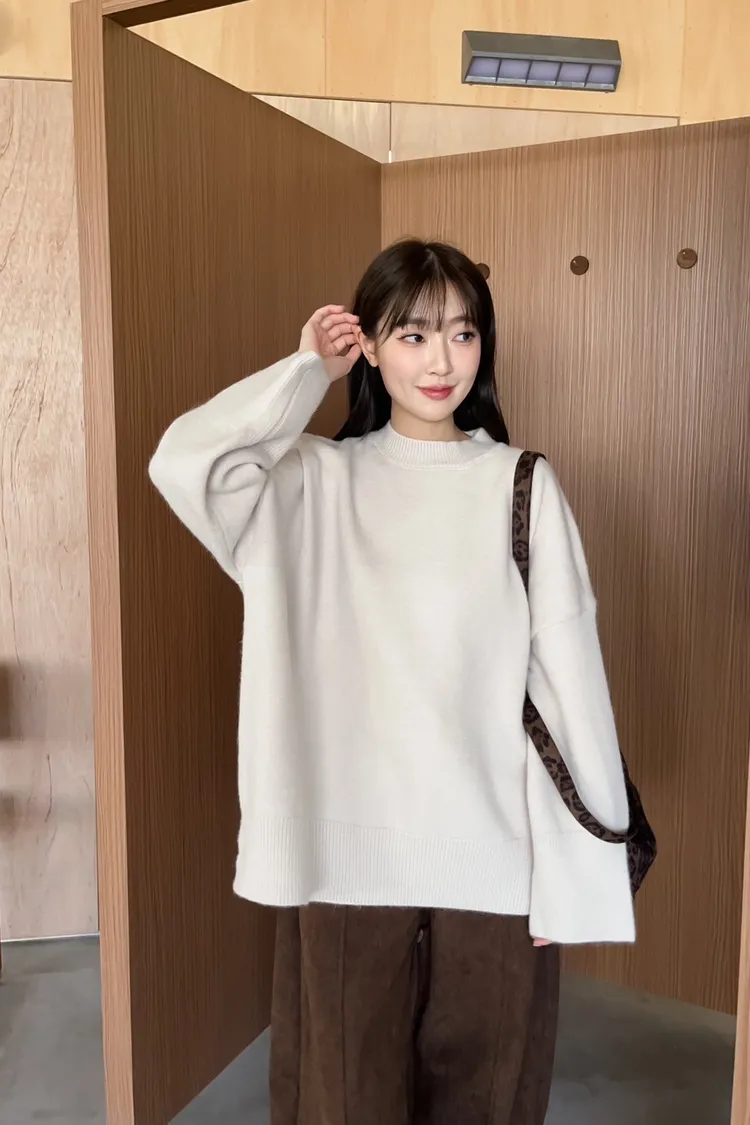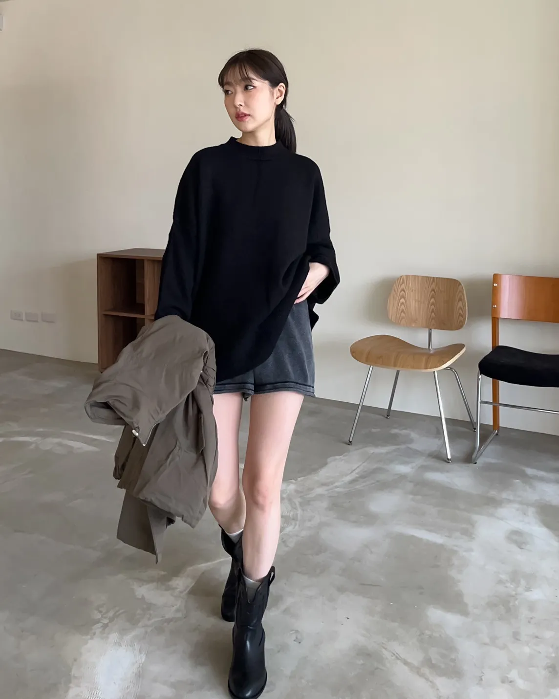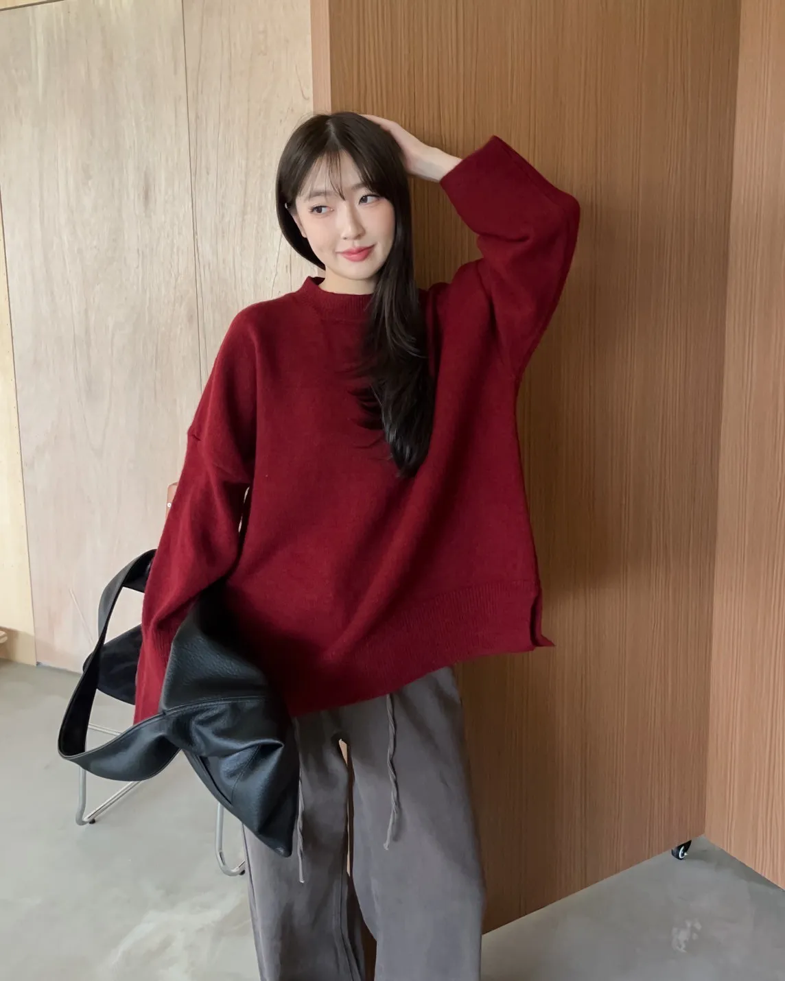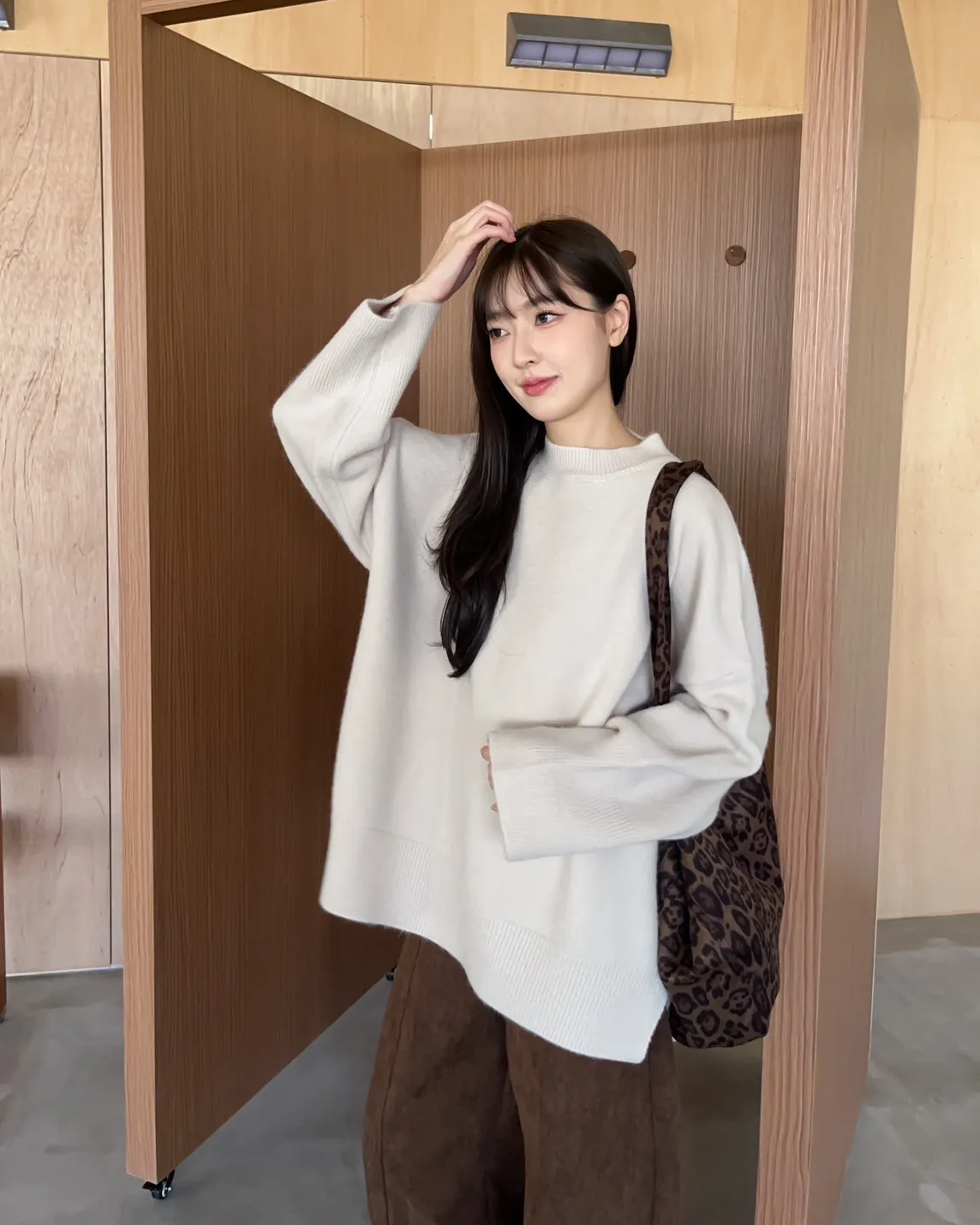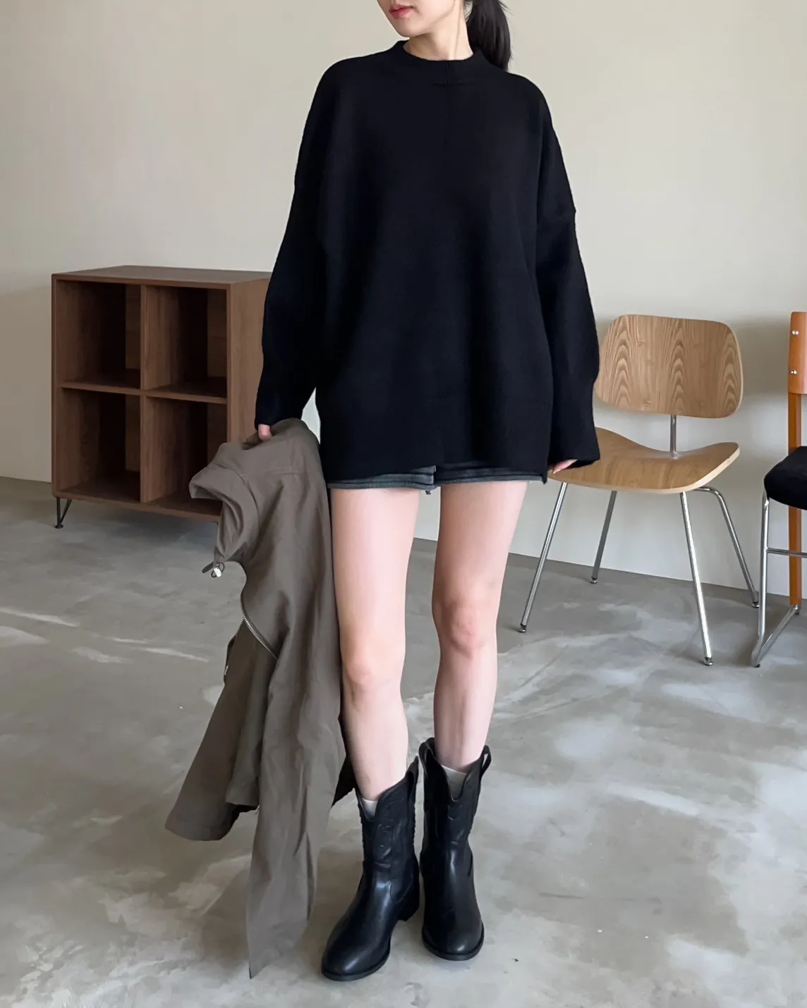 有厚度混毛針織 寬鬆大件 兩側小開岔 中長版
