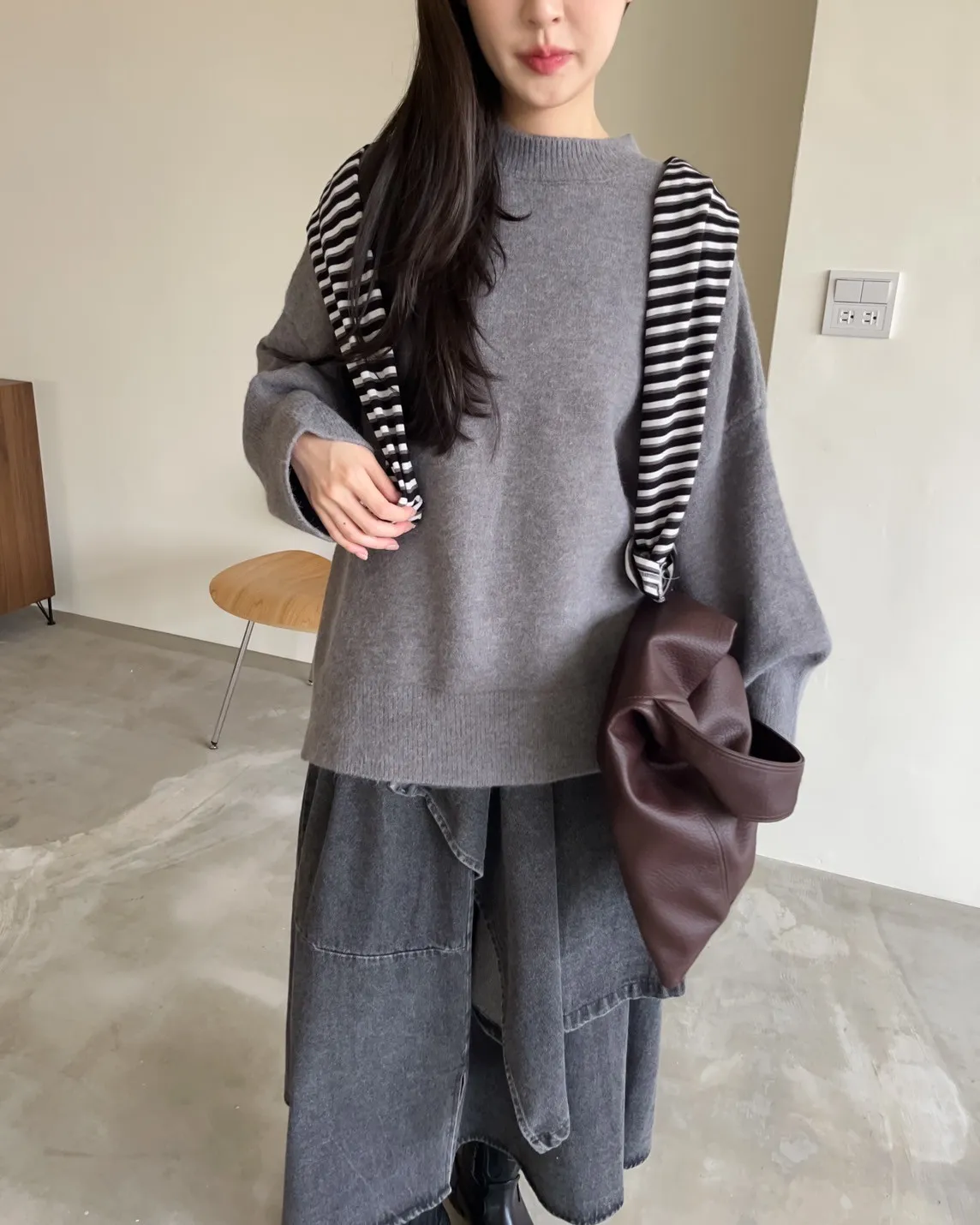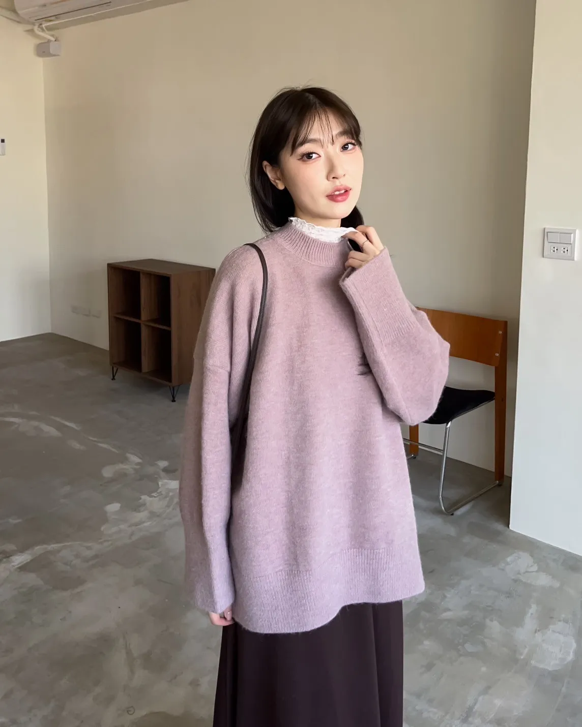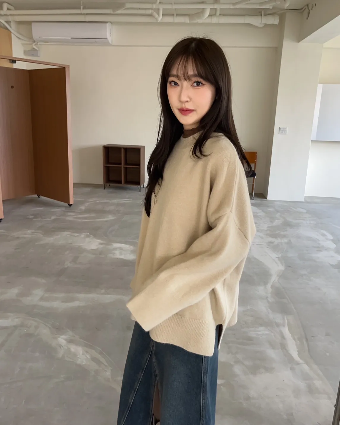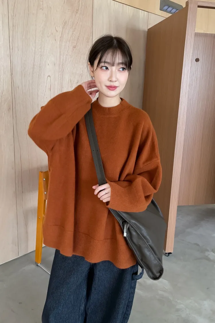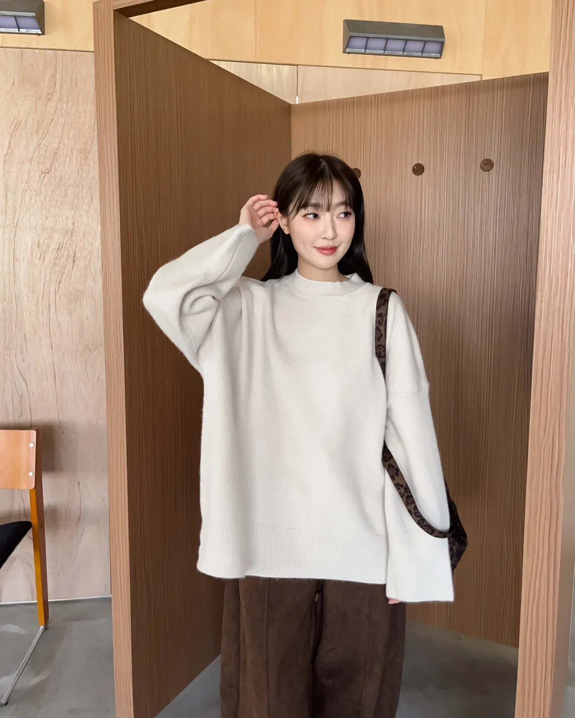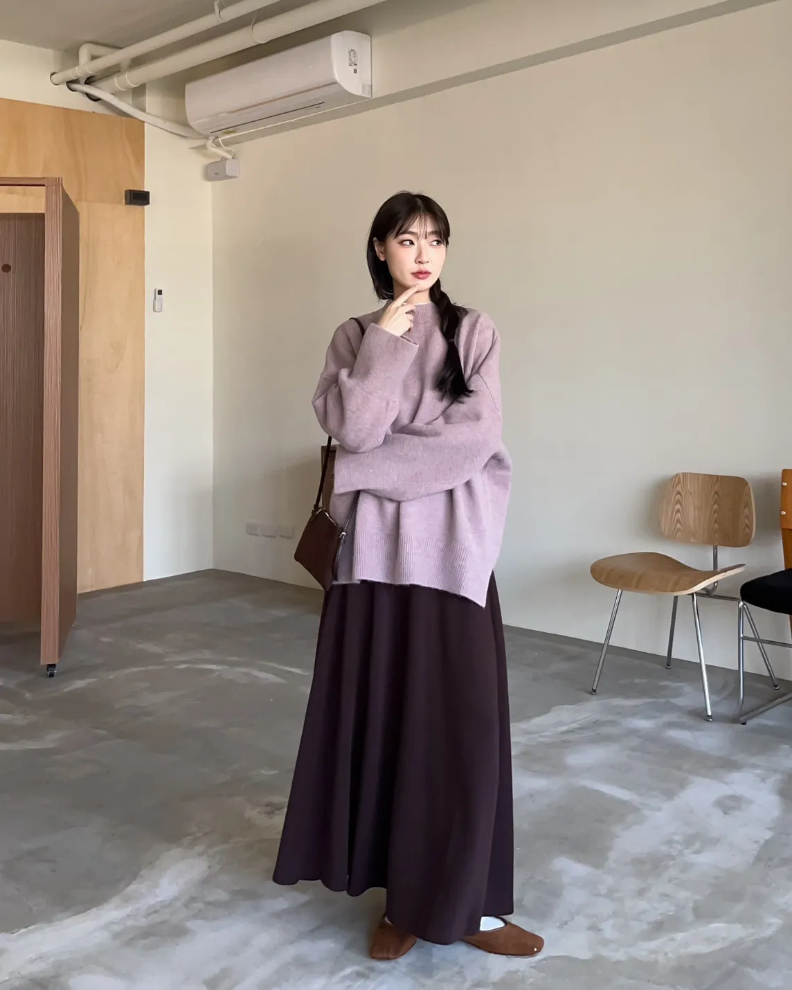 有厚度混毛針織 寬鬆大件 兩側小開岔 中長版