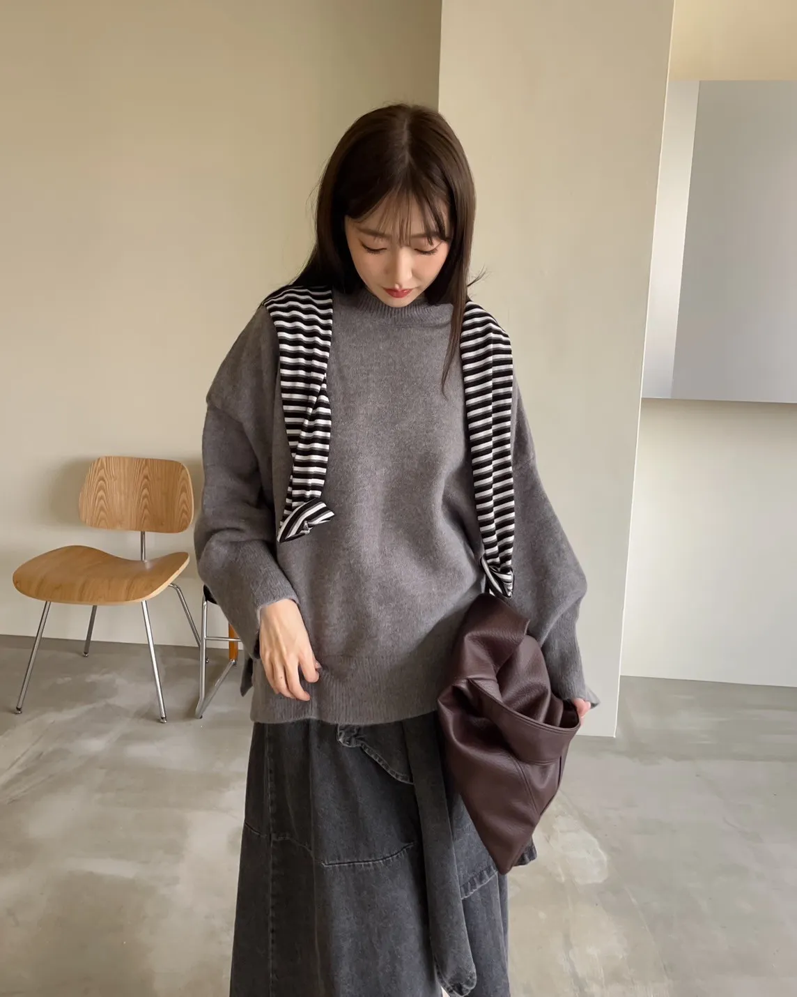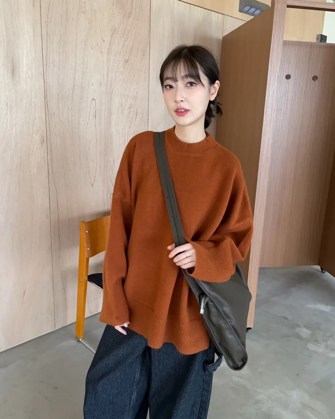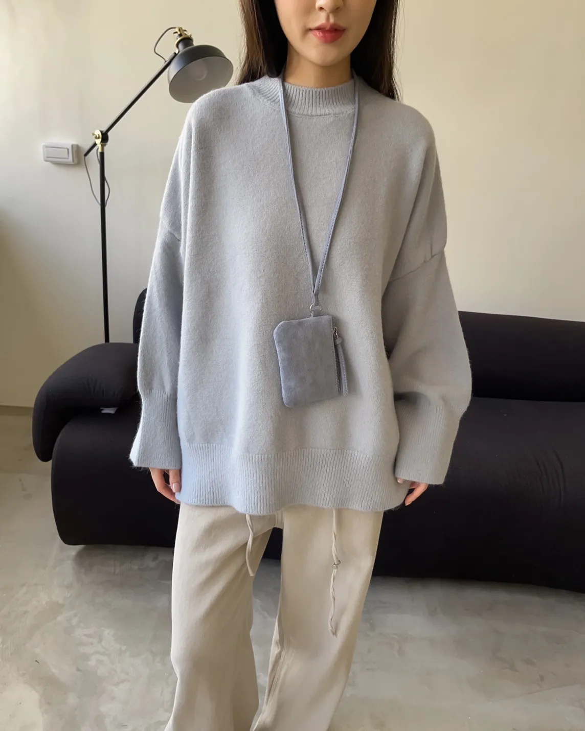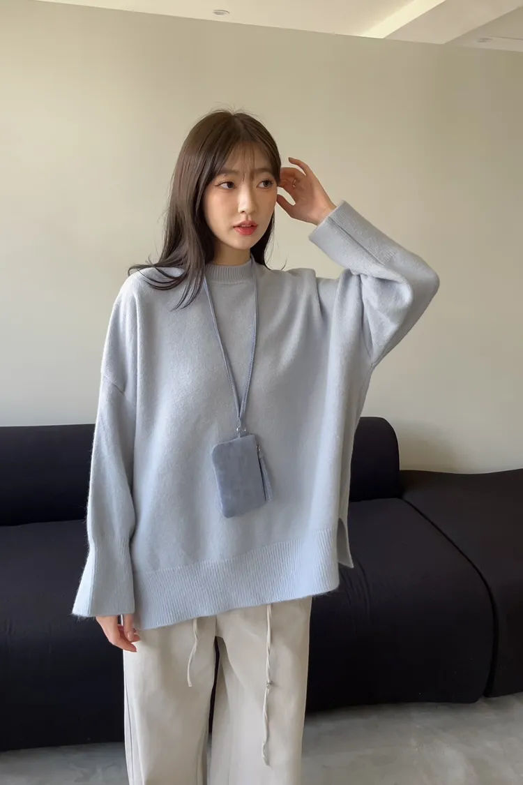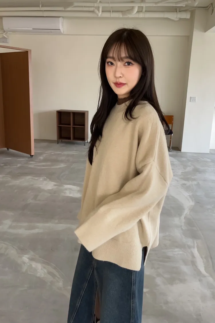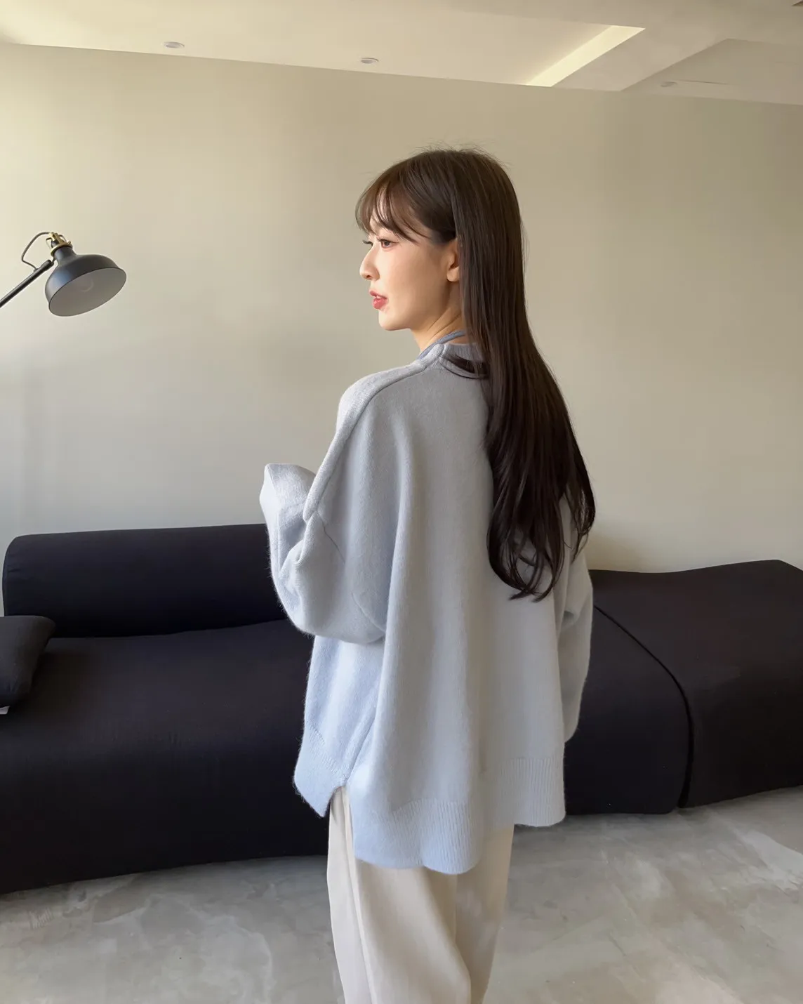 有厚度混毛針織 寬鬆大件 兩側小開岔 中長版