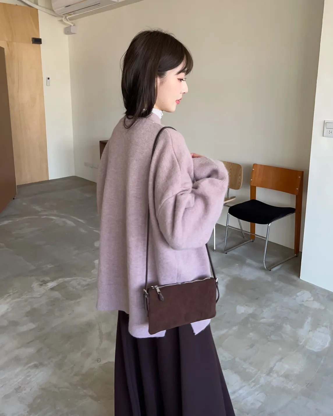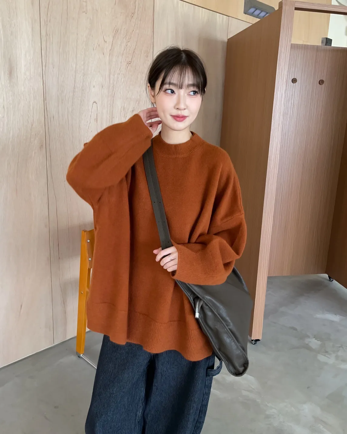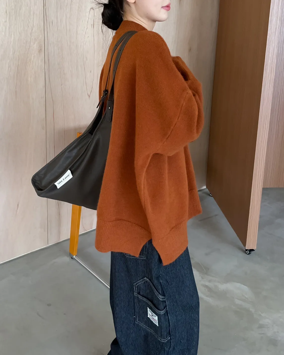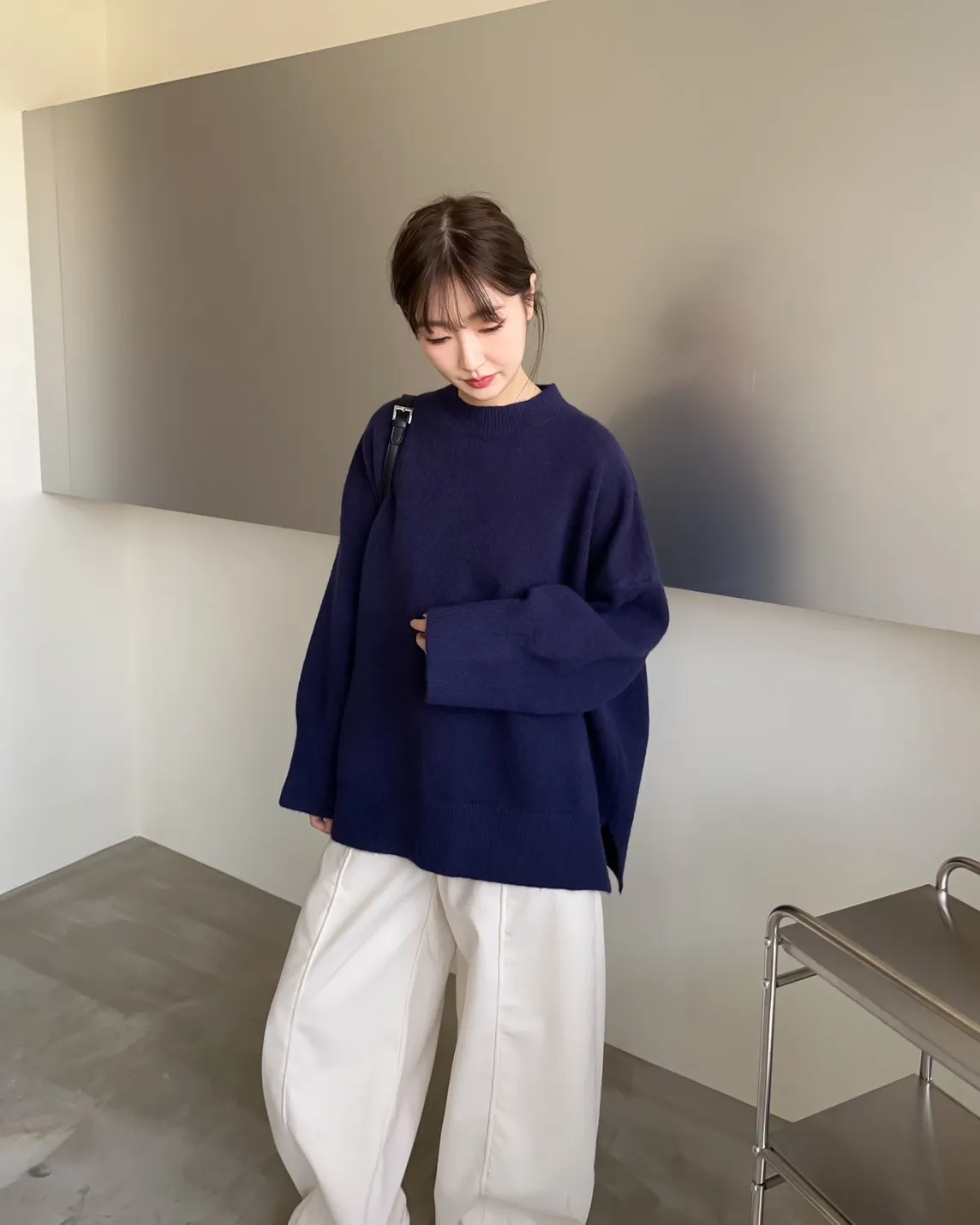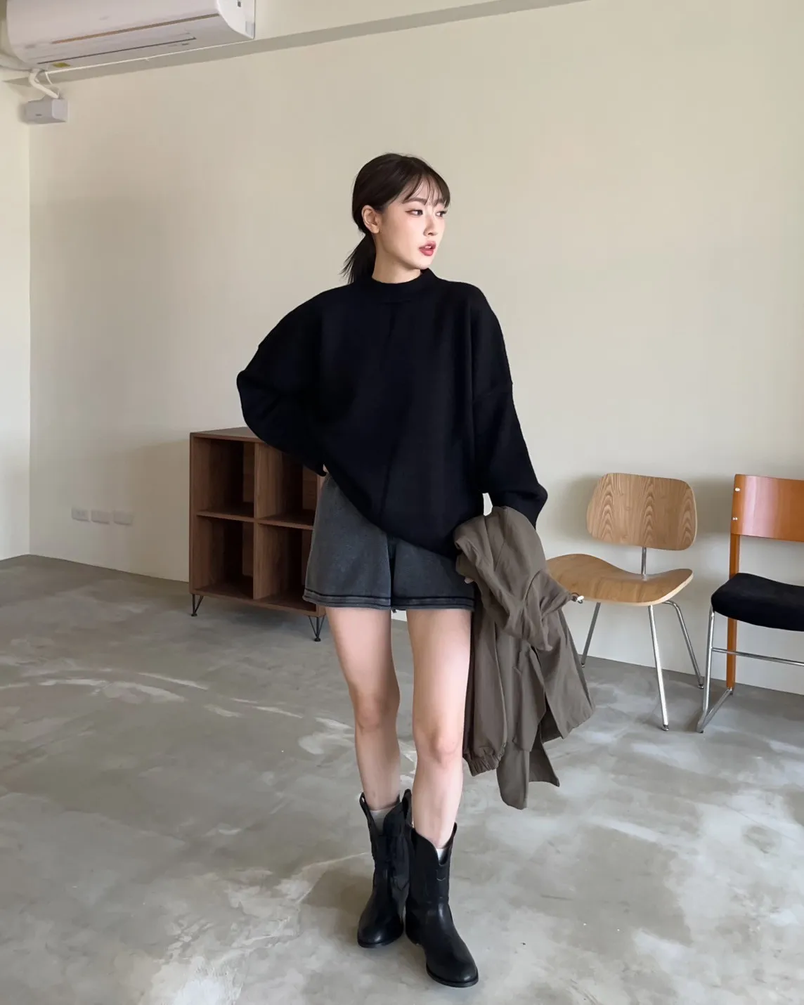 有厚度混毛針織 寬鬆大件 兩側小開岔 中長版