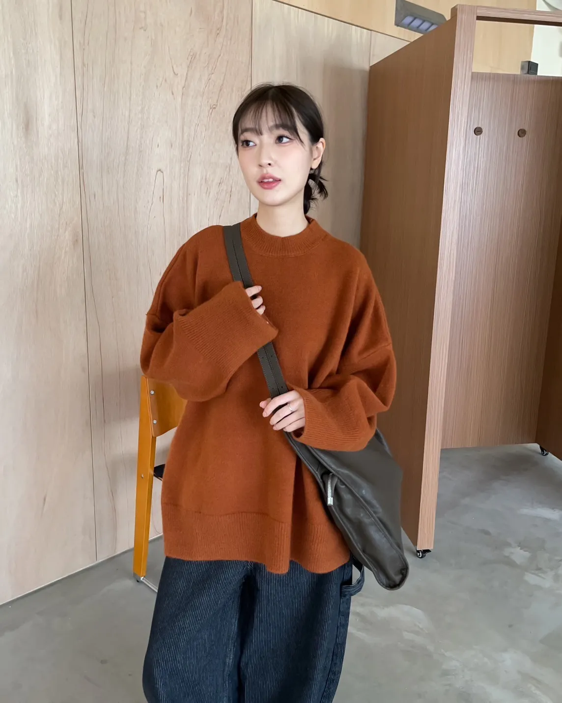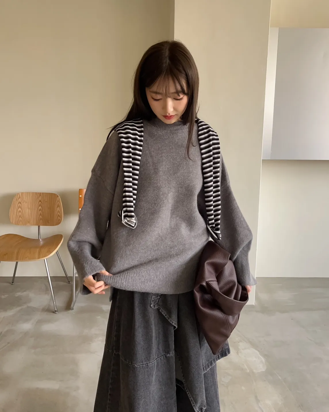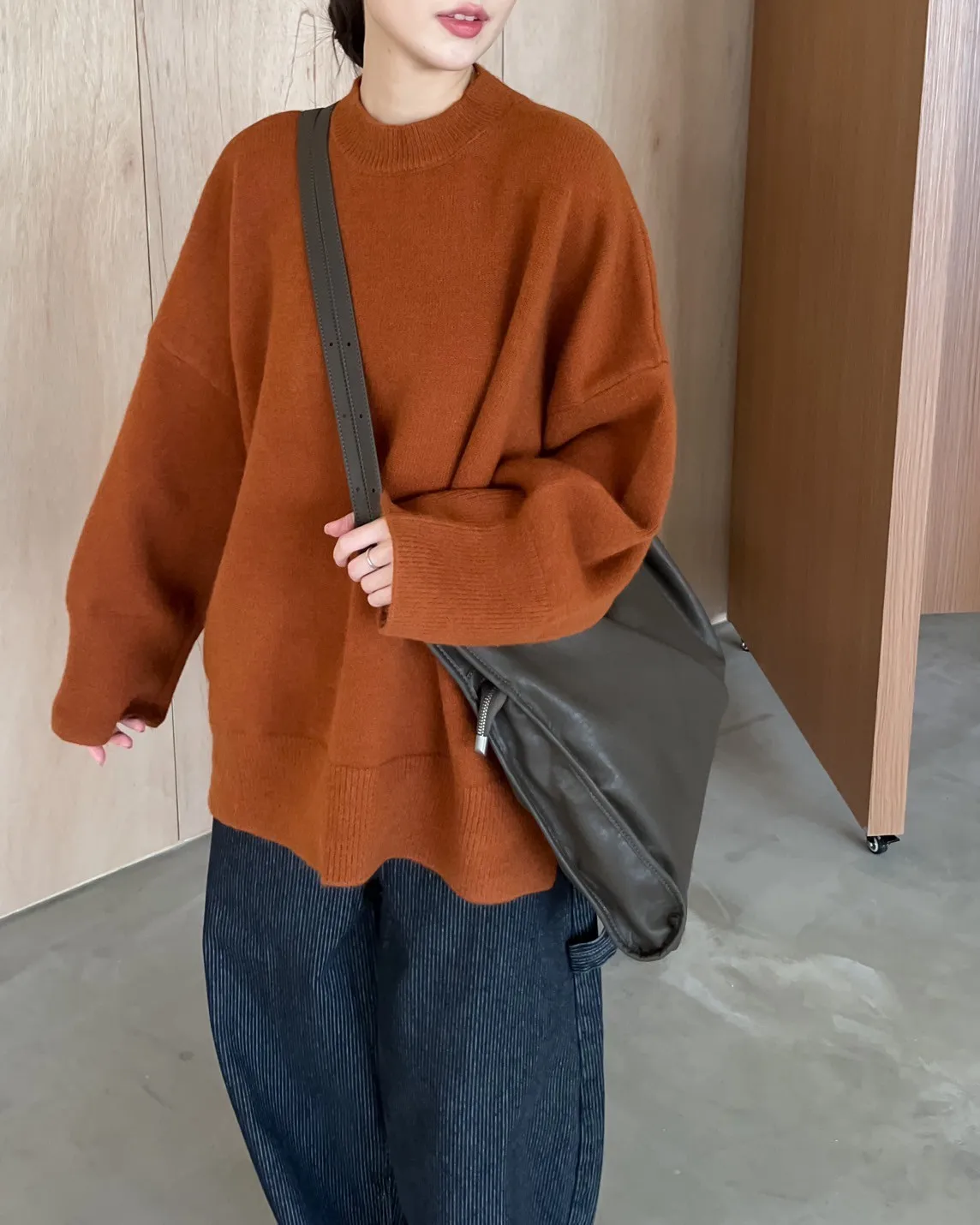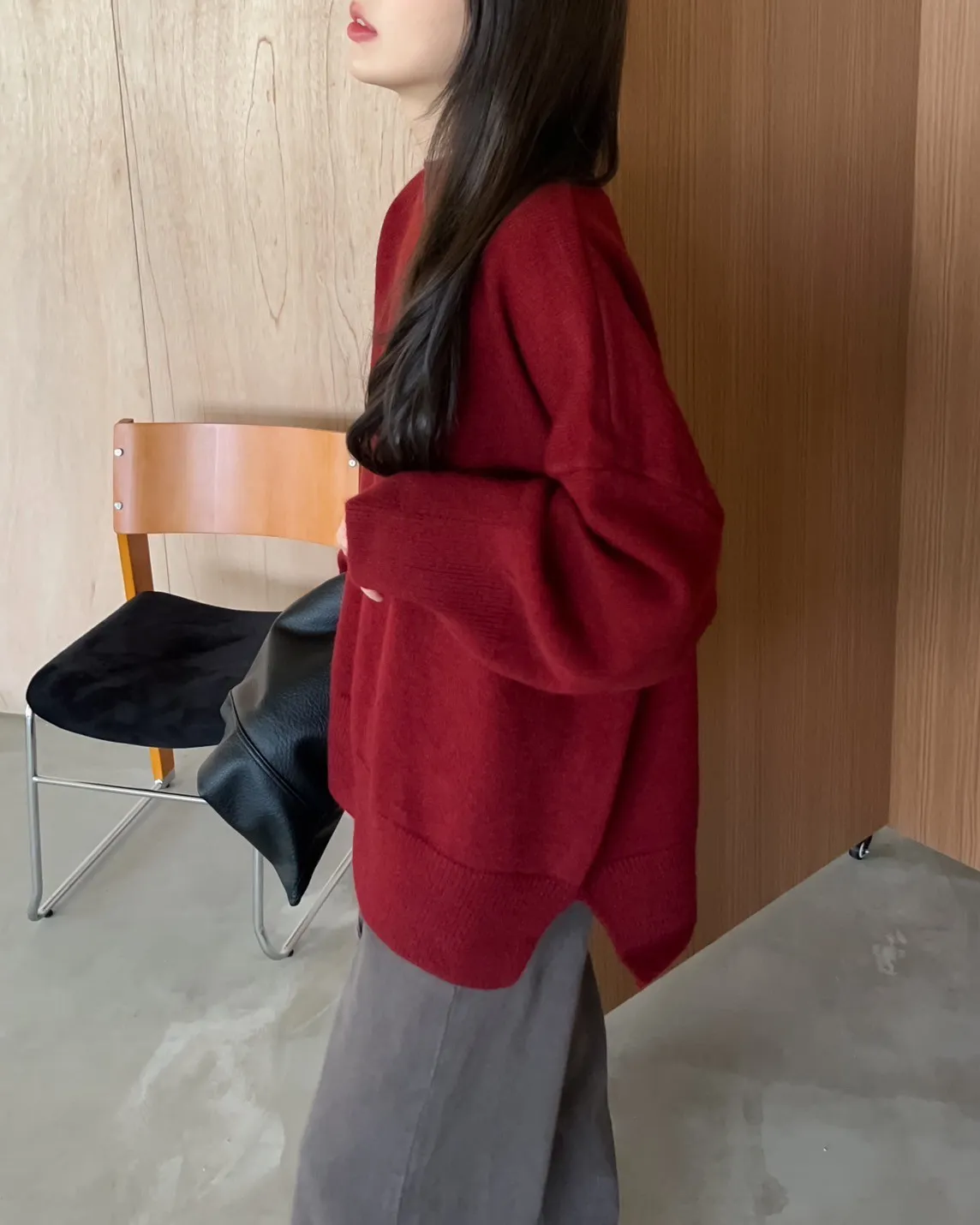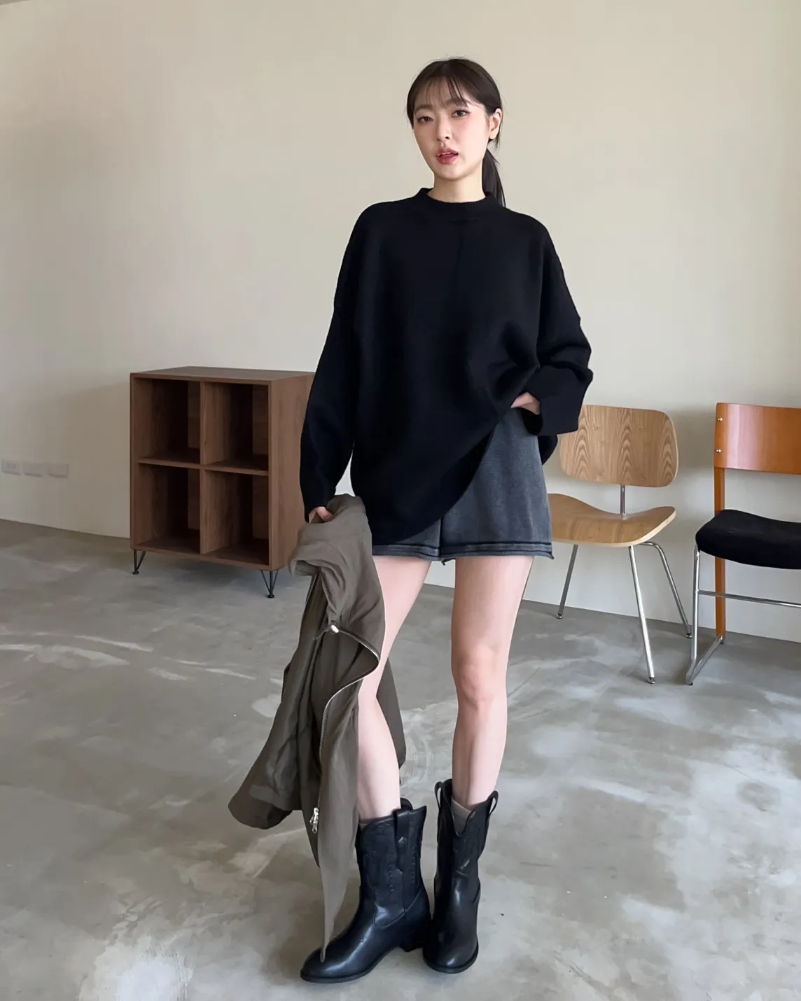 有厚度混毛針織 寬鬆大件 兩側小開岔 中長版