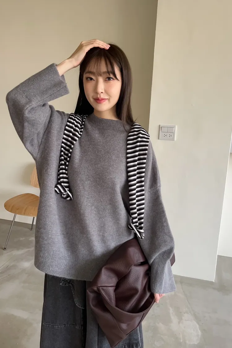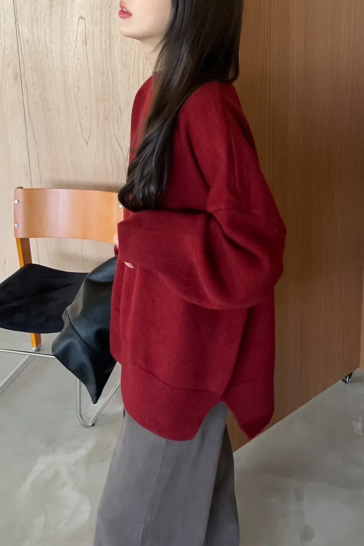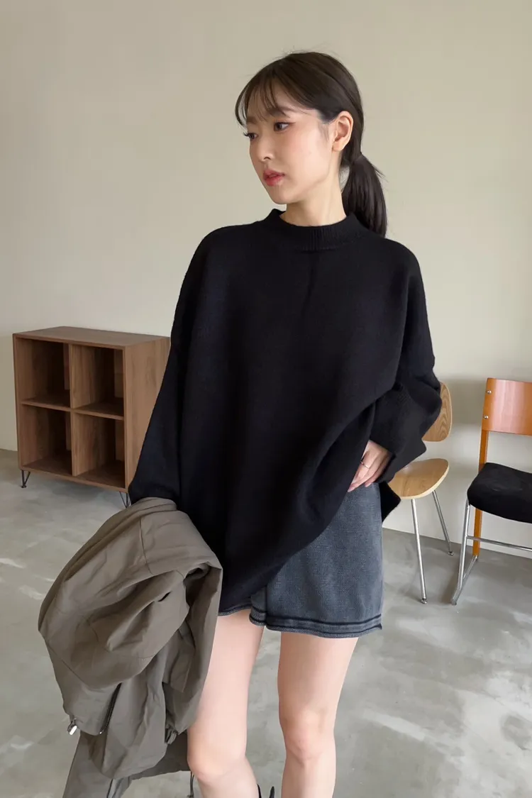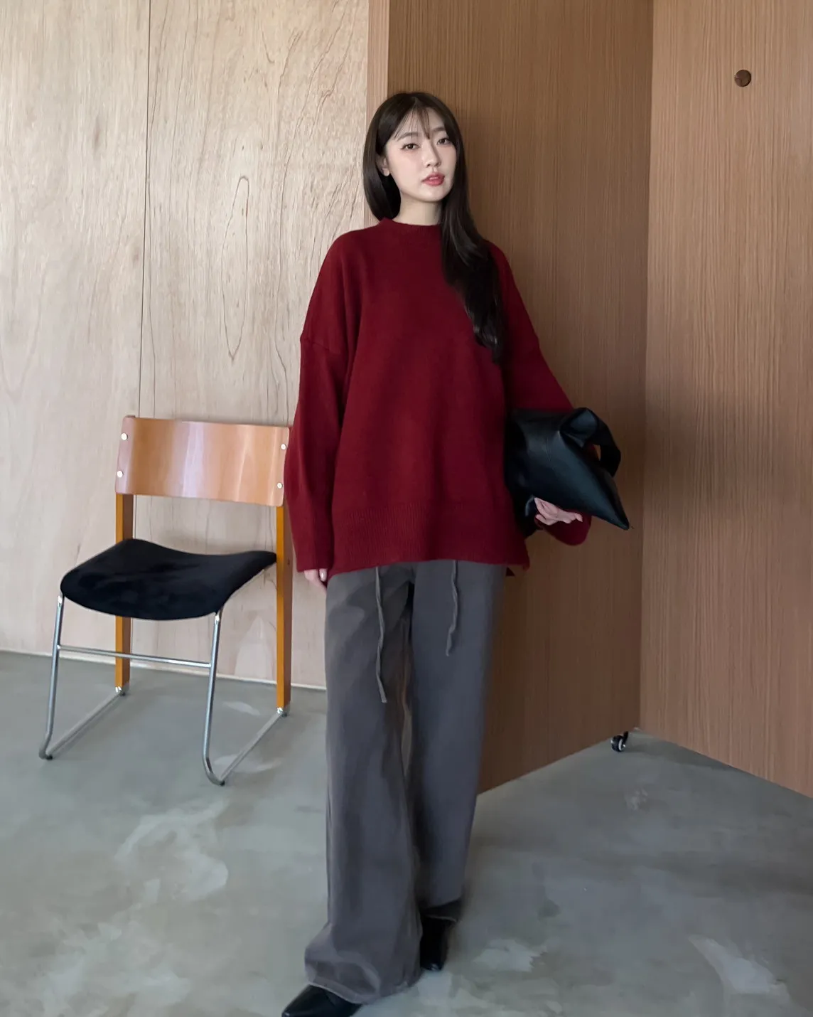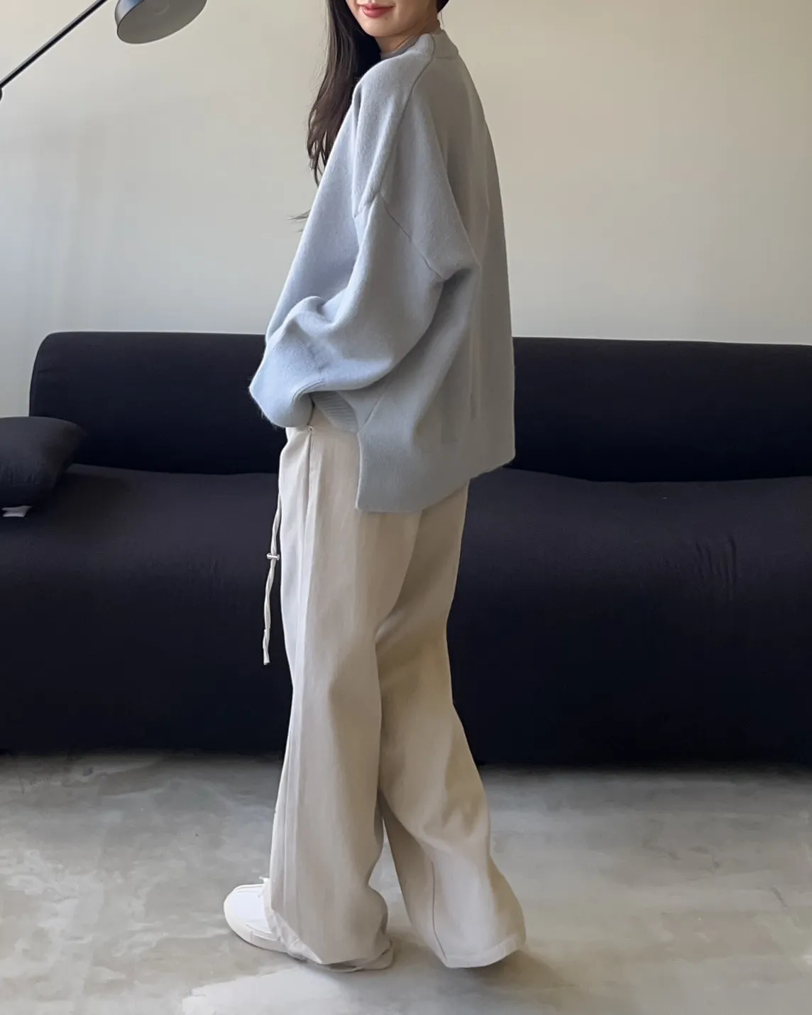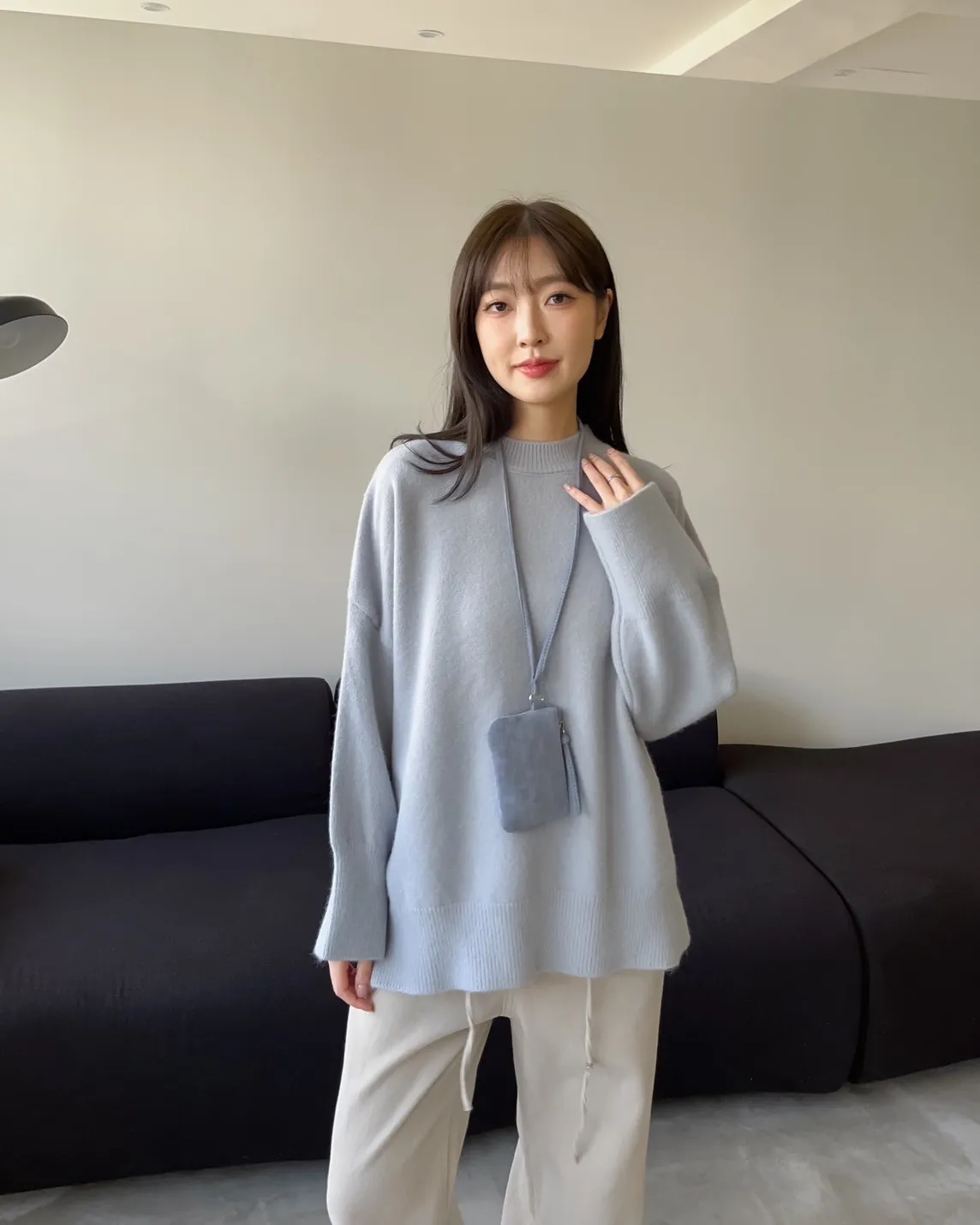 有厚度混毛針織 寬鬆大件 兩側小開岔 中長版