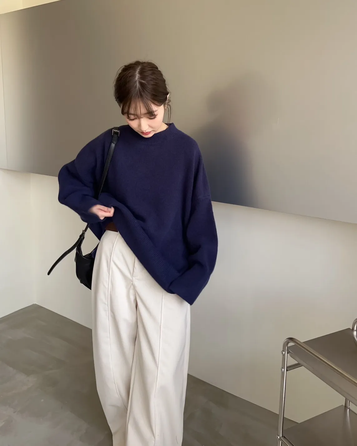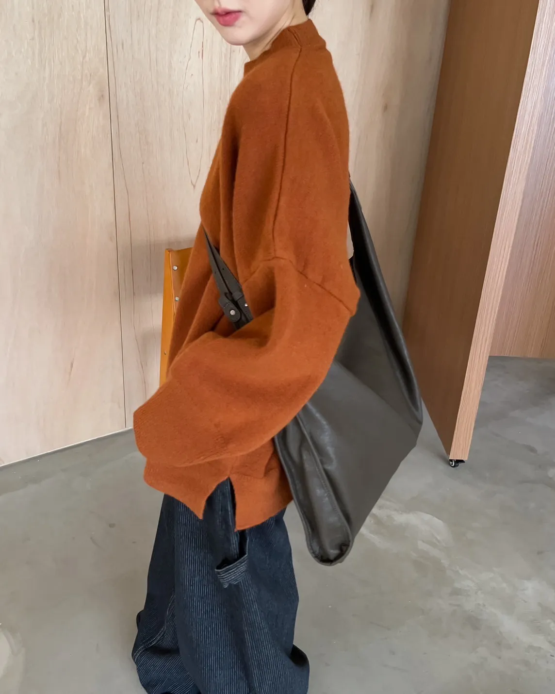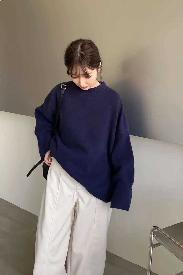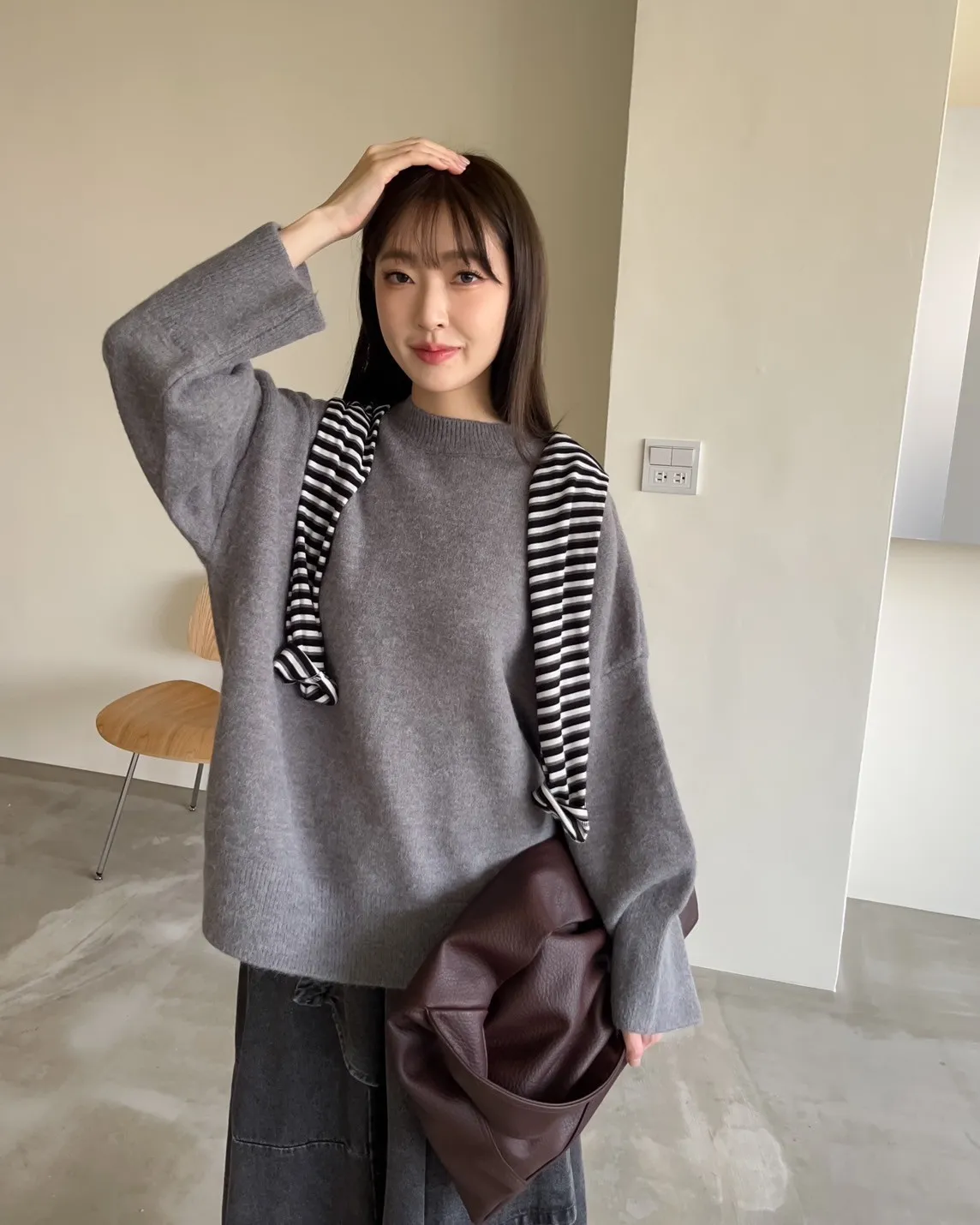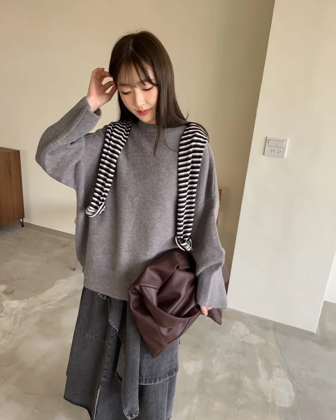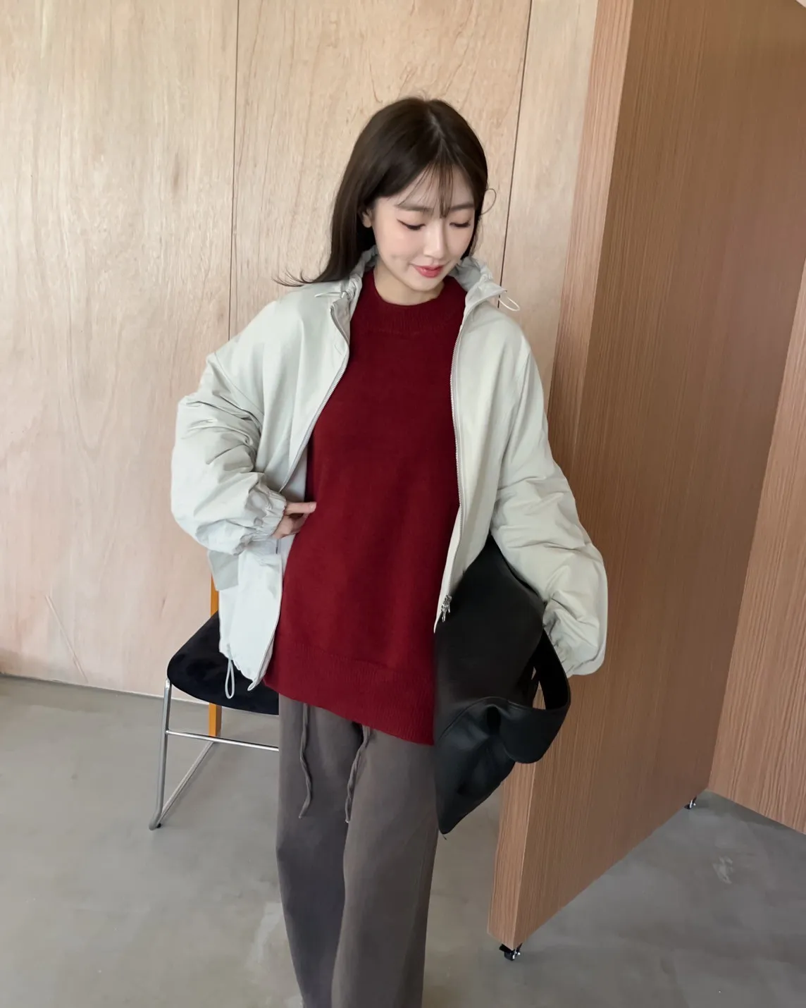 有厚度混毛針織 寬鬆大件 兩側小開岔 中長版