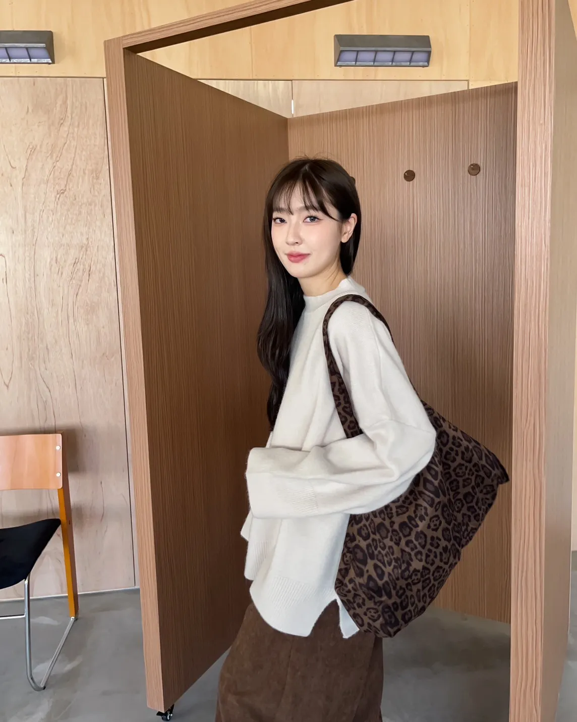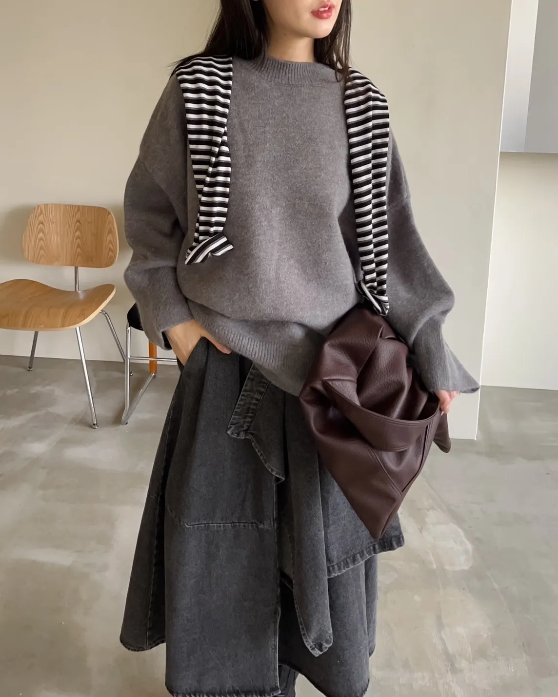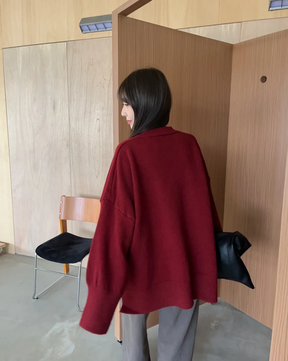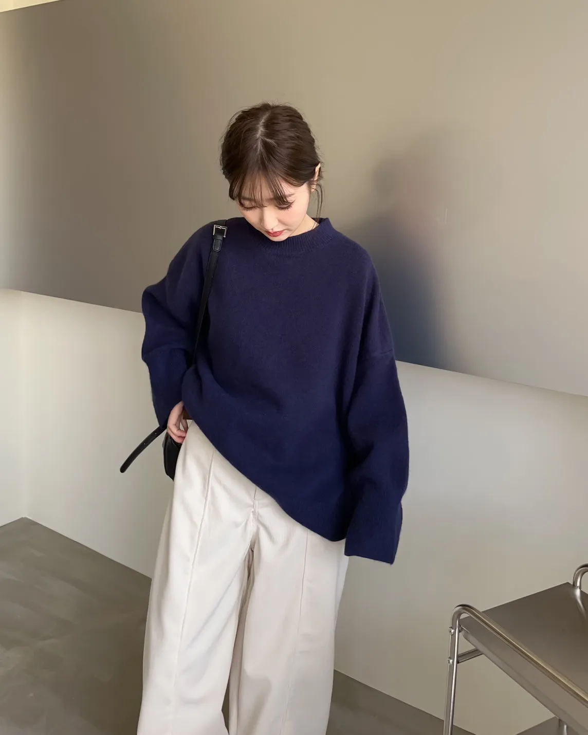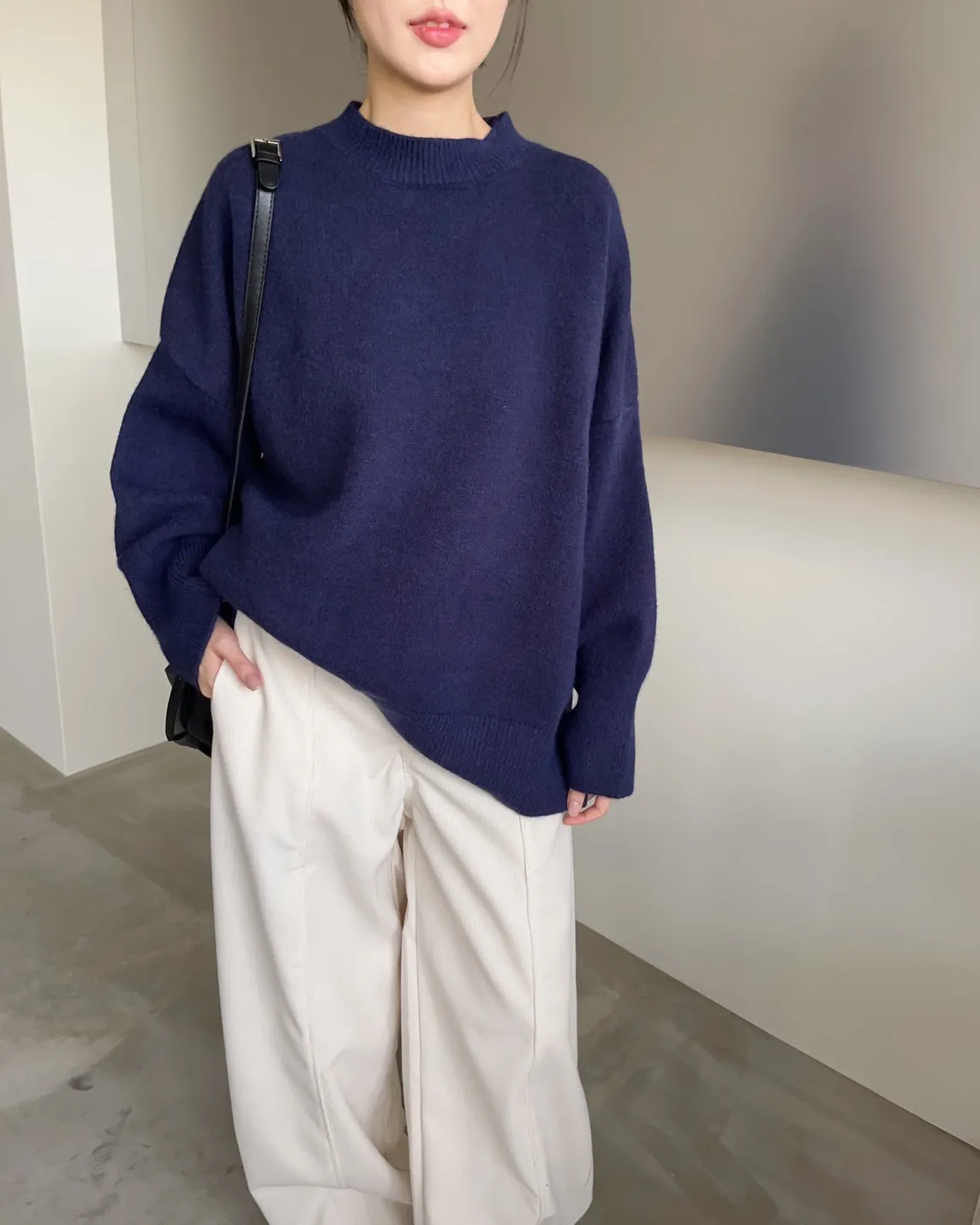 有厚度混毛針織 寬鬆大件 兩側小開岔 中長版