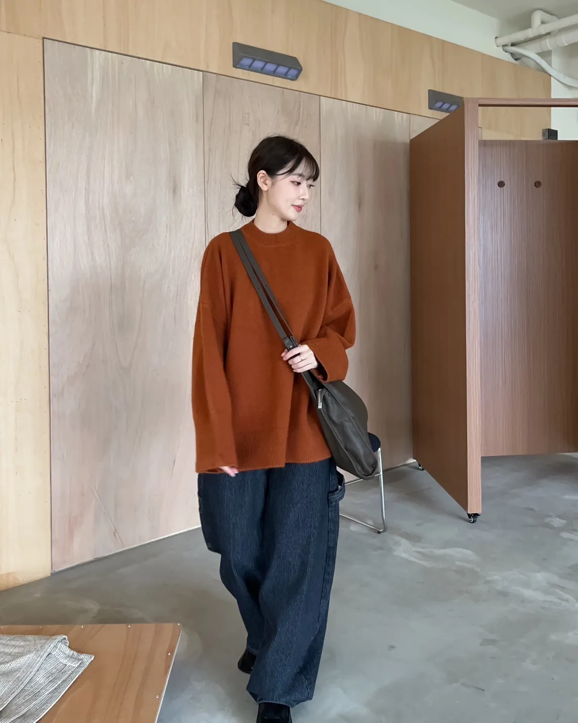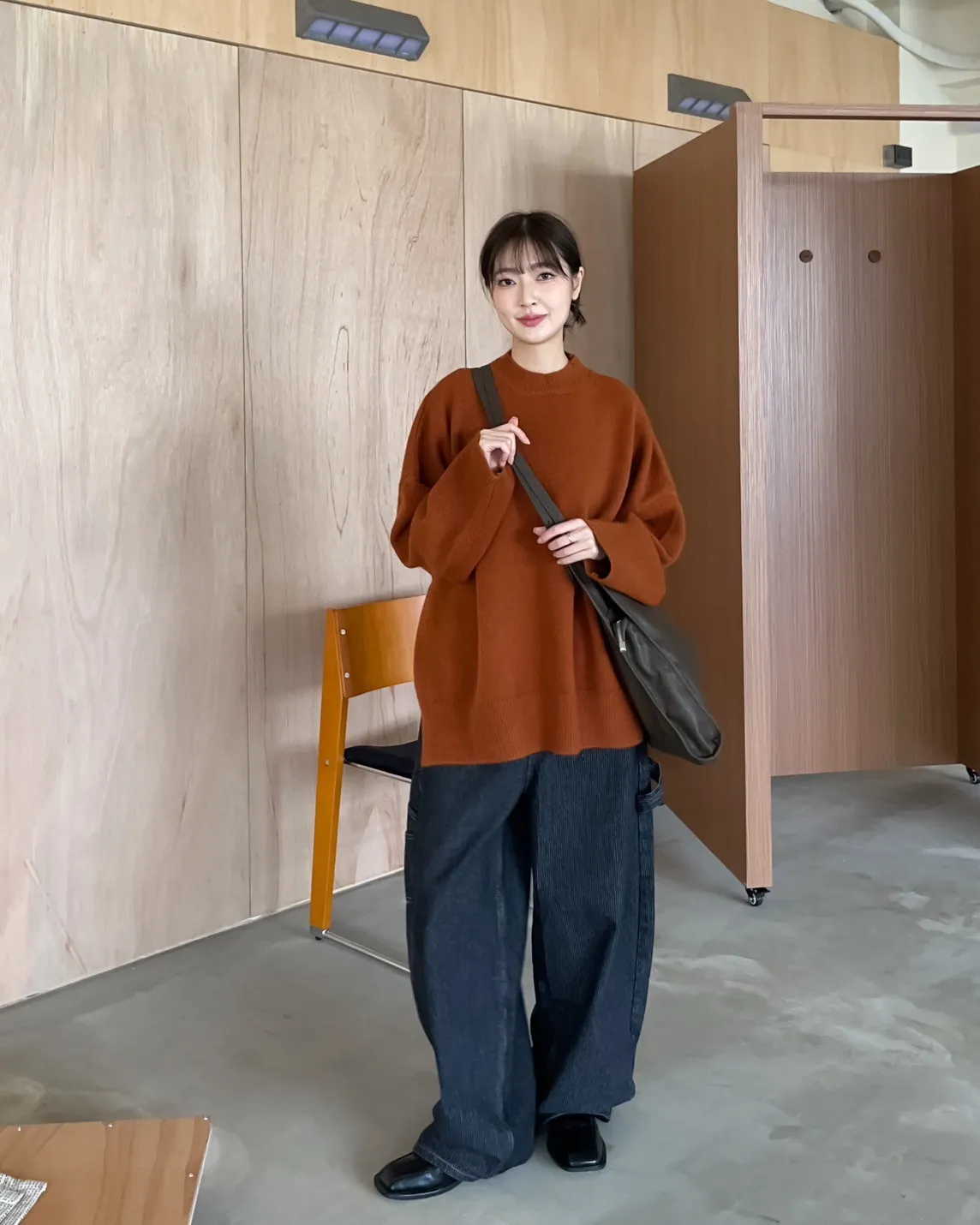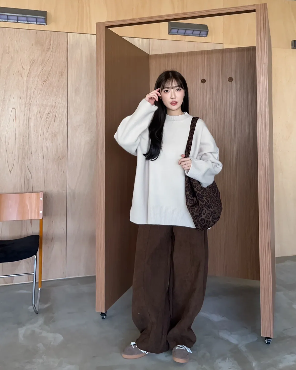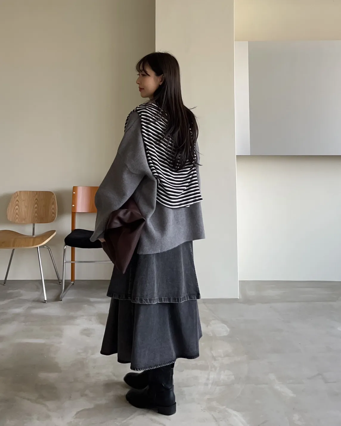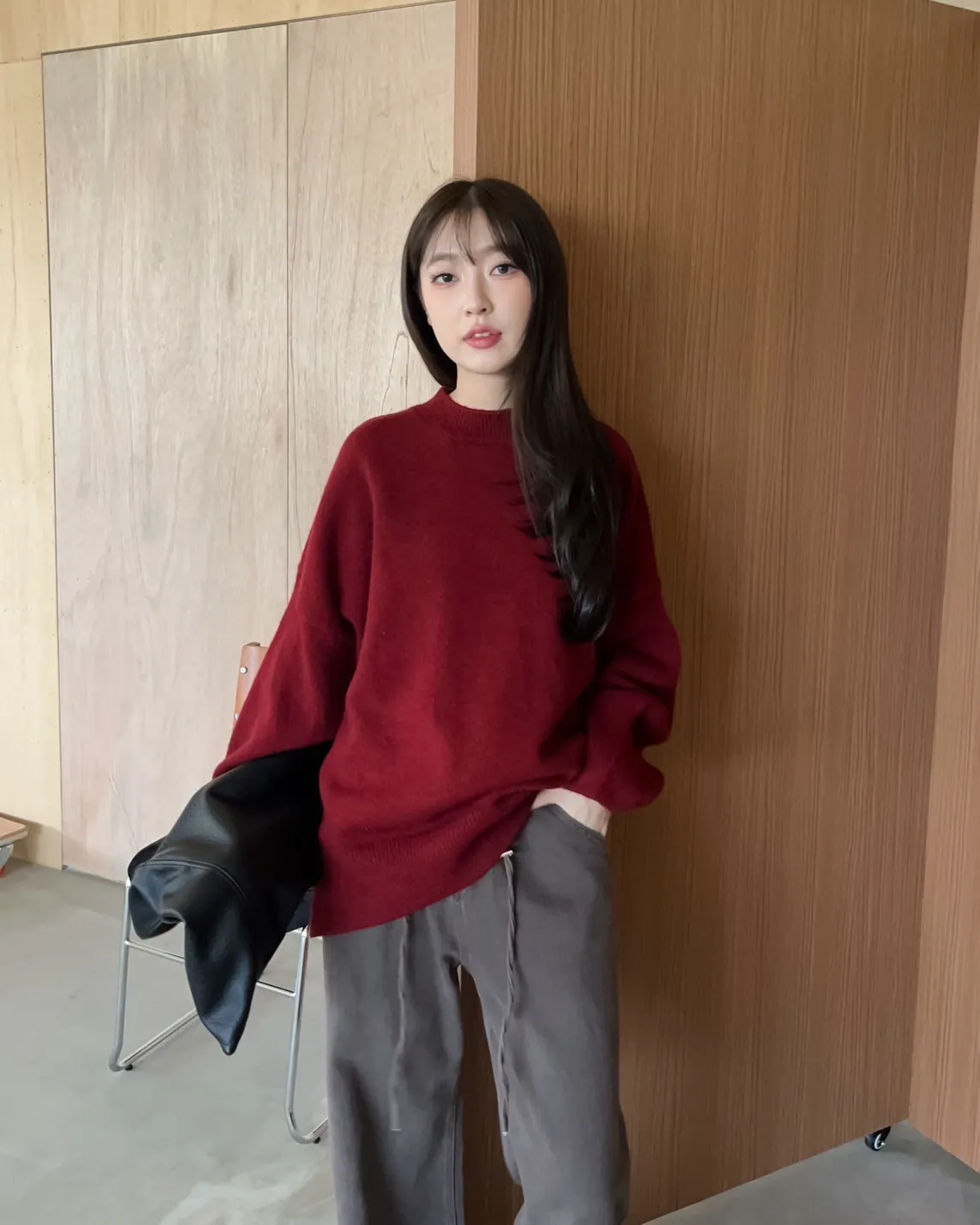 有厚度混毛針織 寬鬆大件 兩側小開岔 中長版