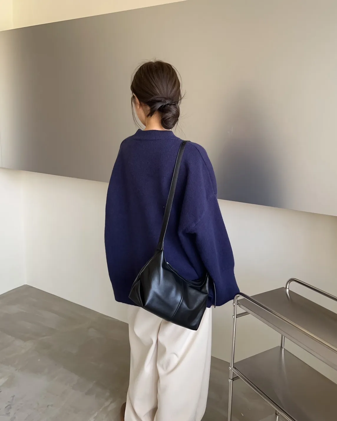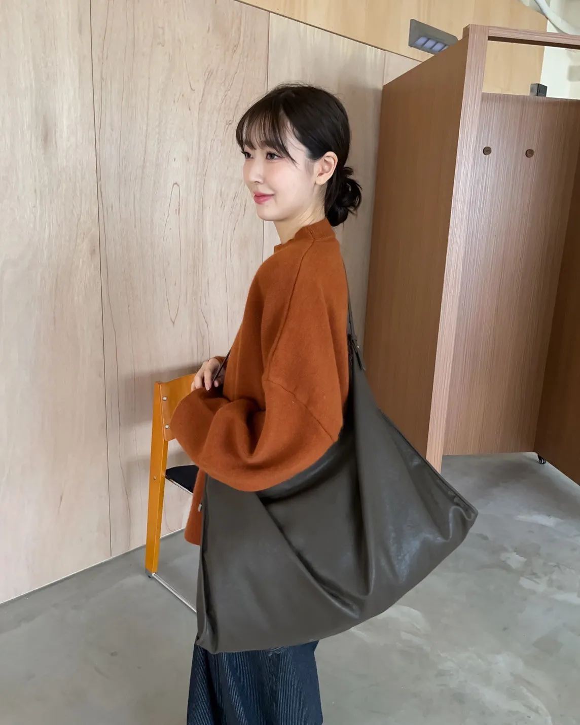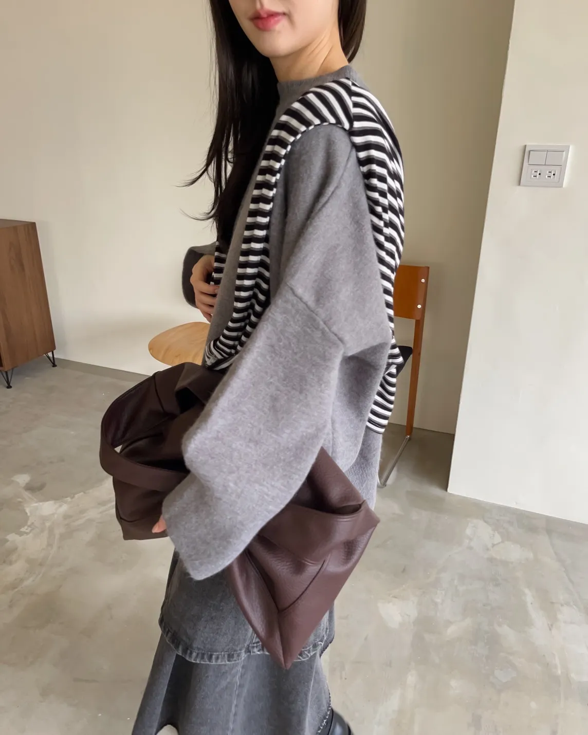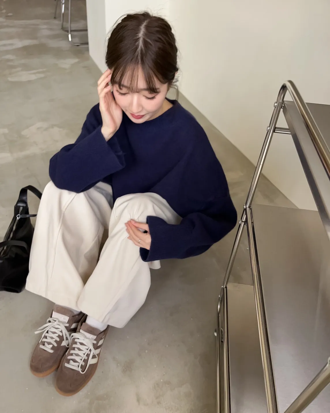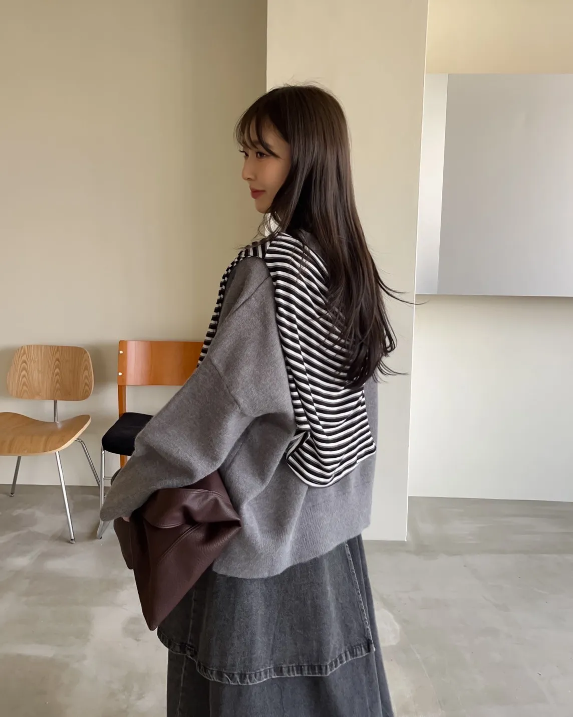 有厚度混毛針織 寬鬆大件 兩側小開岔 中長版